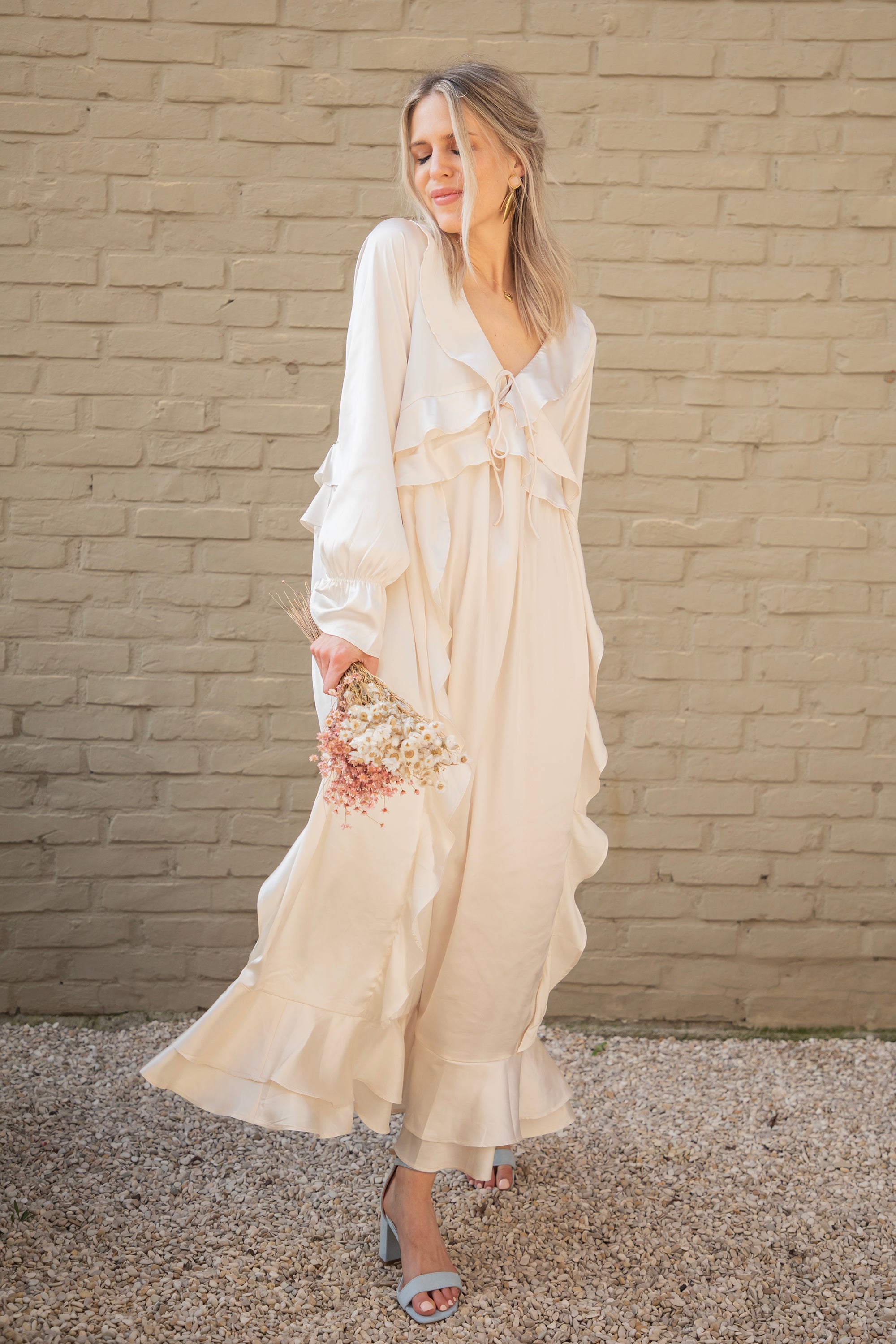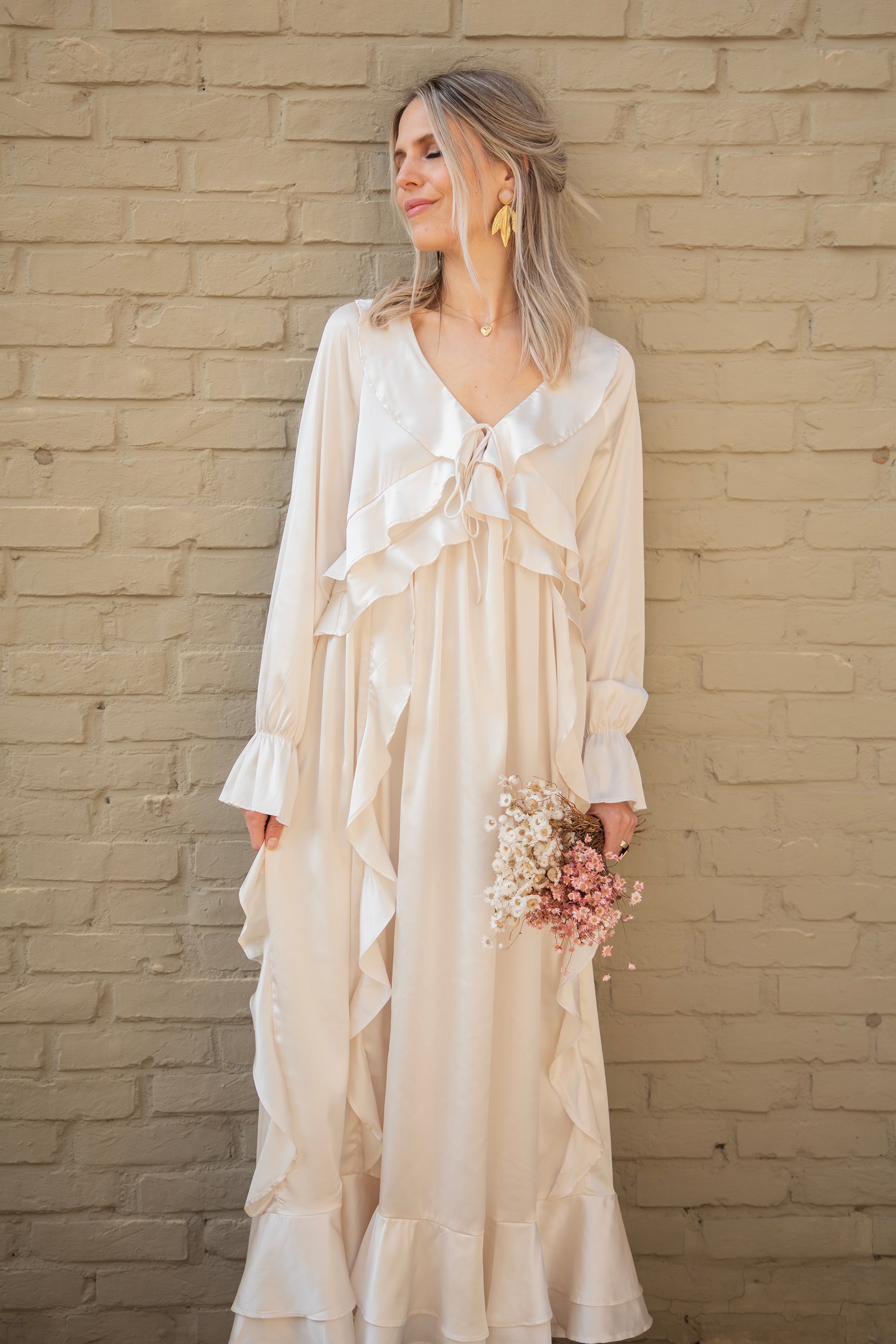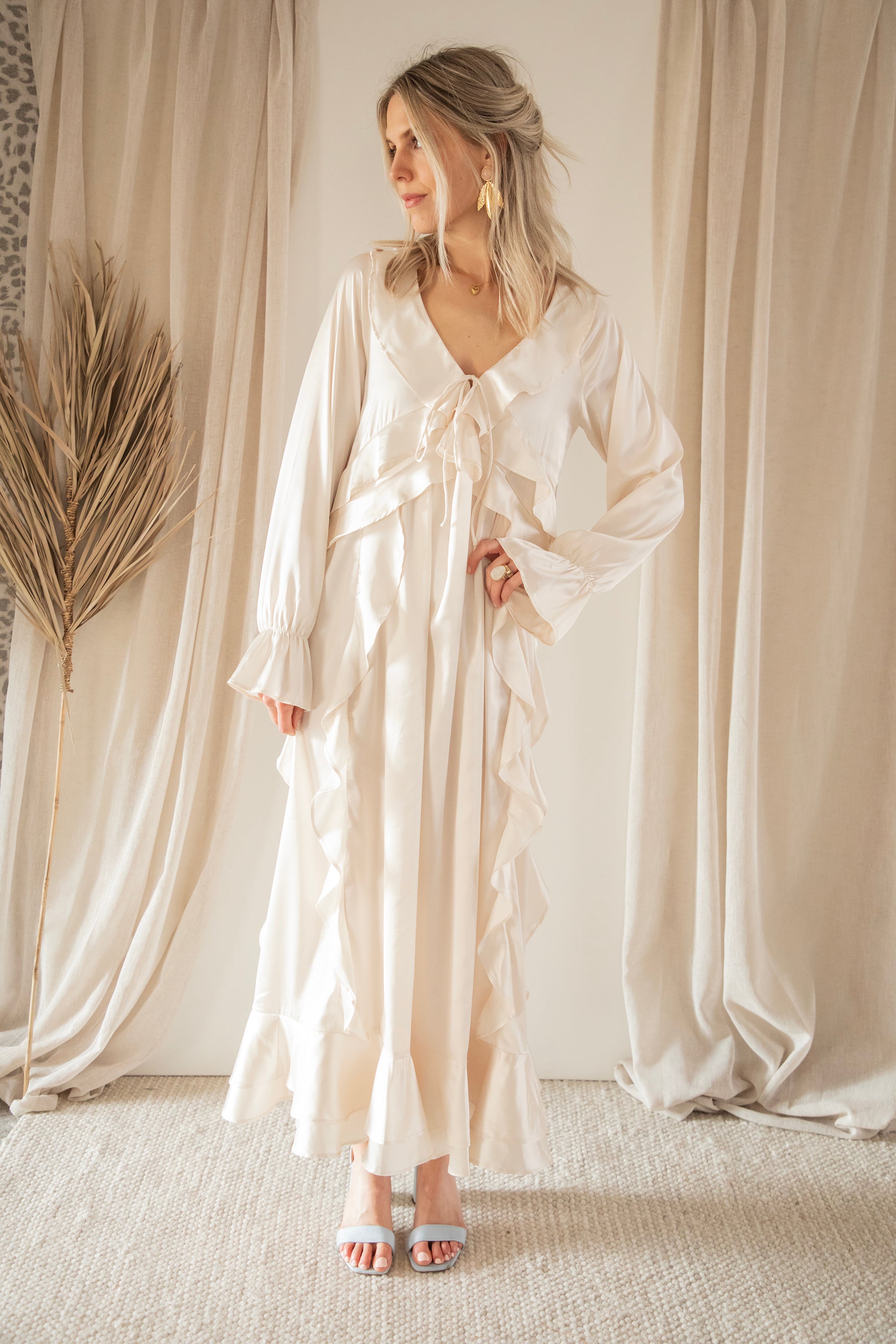 The Sidona dress is an absolute gem, ladies! β¨π€ You feel so feminine and so elegant in her! Thanks to the flowy, satin-like fabric that moves so beautifully with you. The ruffles on the skirt and around the waist give the dress even more swish and power π€© And she feels sooo smooth, thanks to the 10% silk β¨