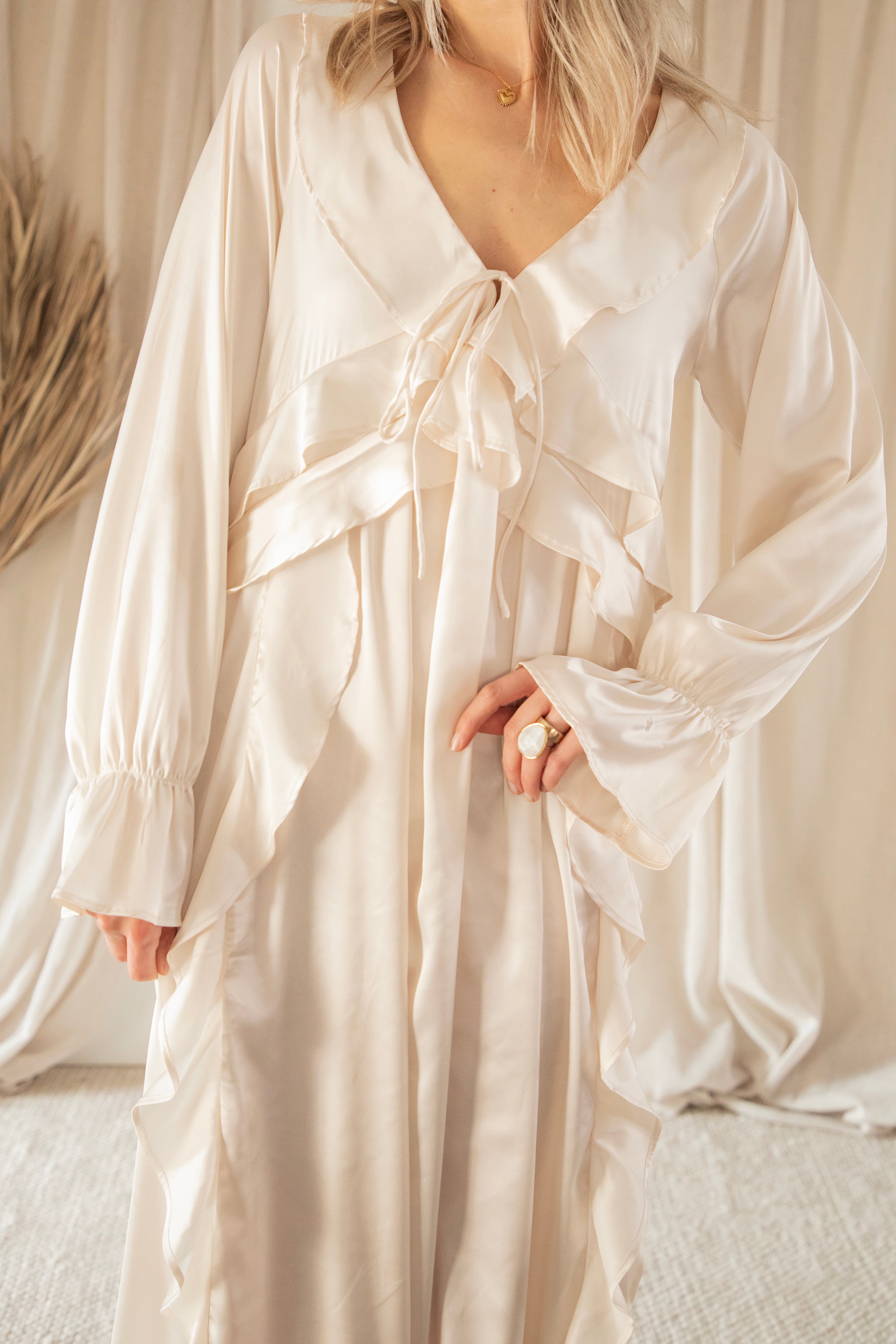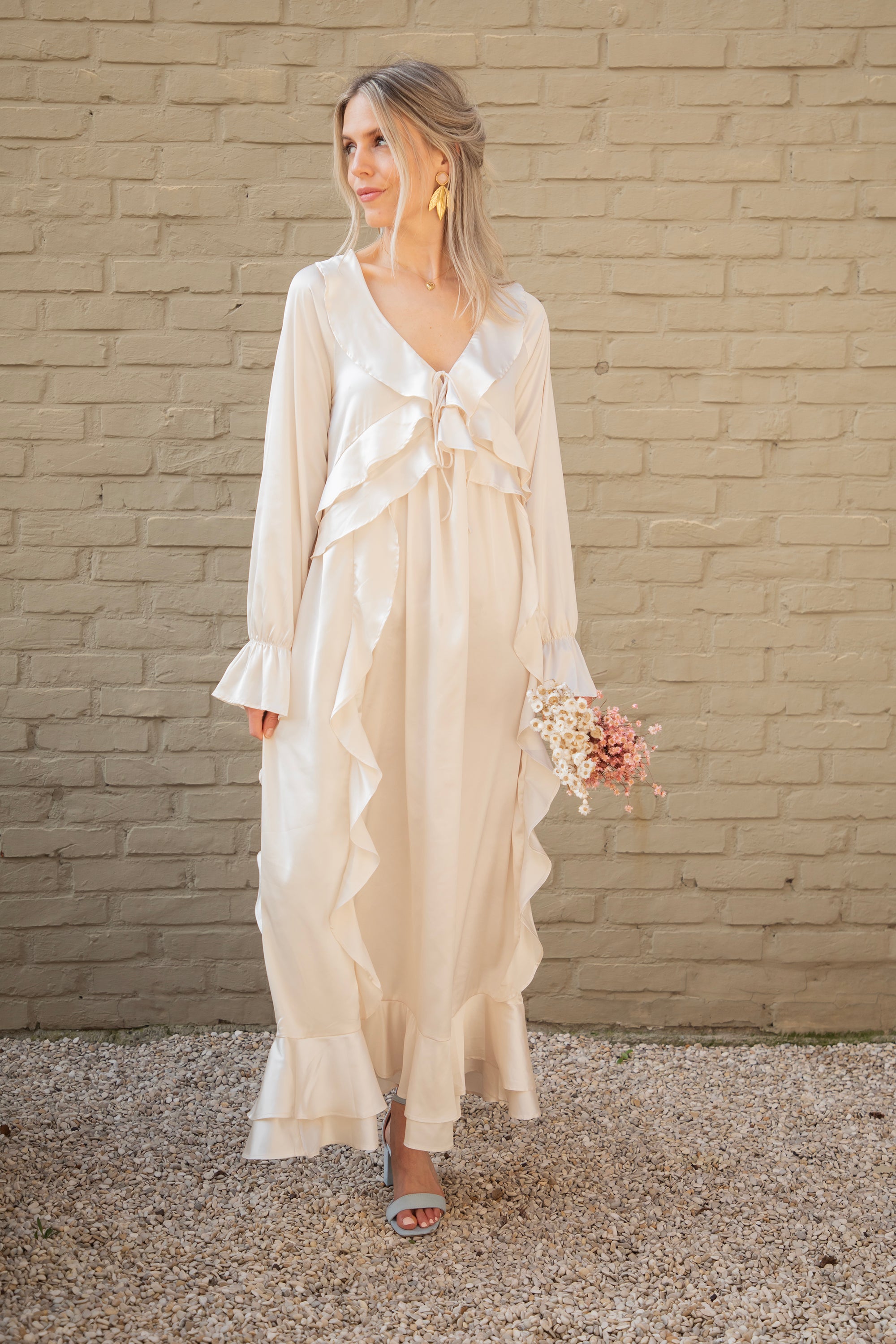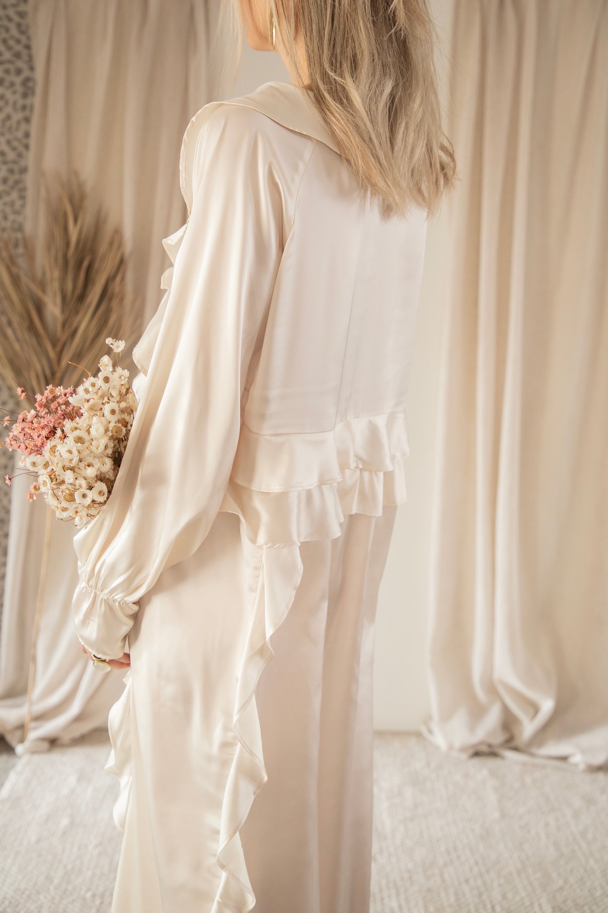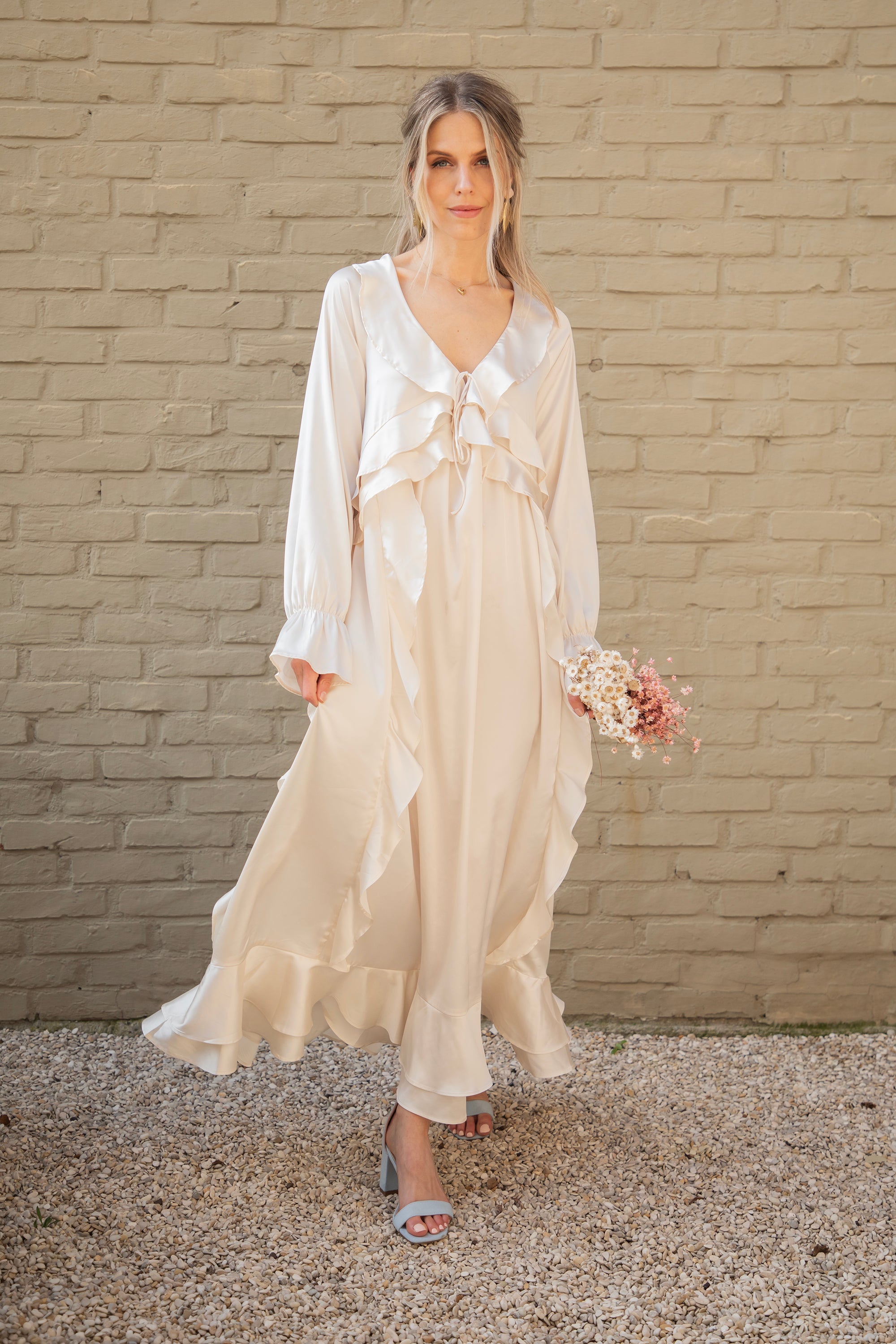 The Sidona dress is an absolute gem, ladies! β¨π€ You feel so feminine and so elegant in her! Thanks to the flowy, satin-like fabric that moves so beautifully with you. The ruffles on the skirt and around the waist give the dress even more swish and power π€© And she feels sooo smooth, thanks to the 10% silk β¨