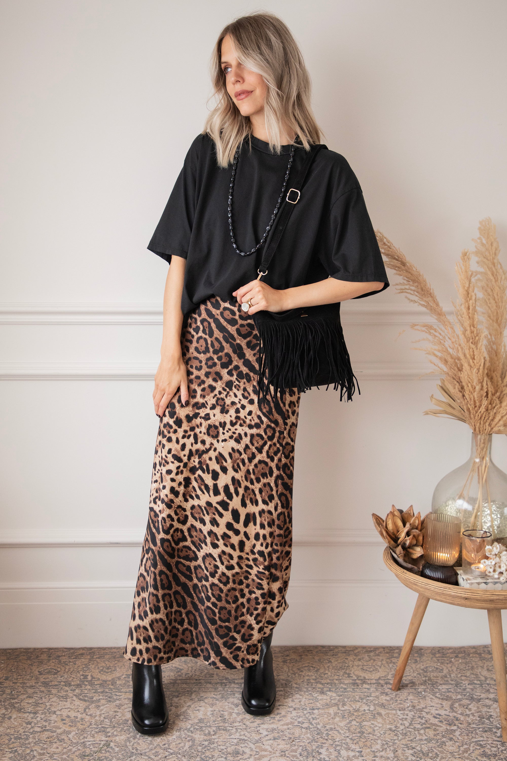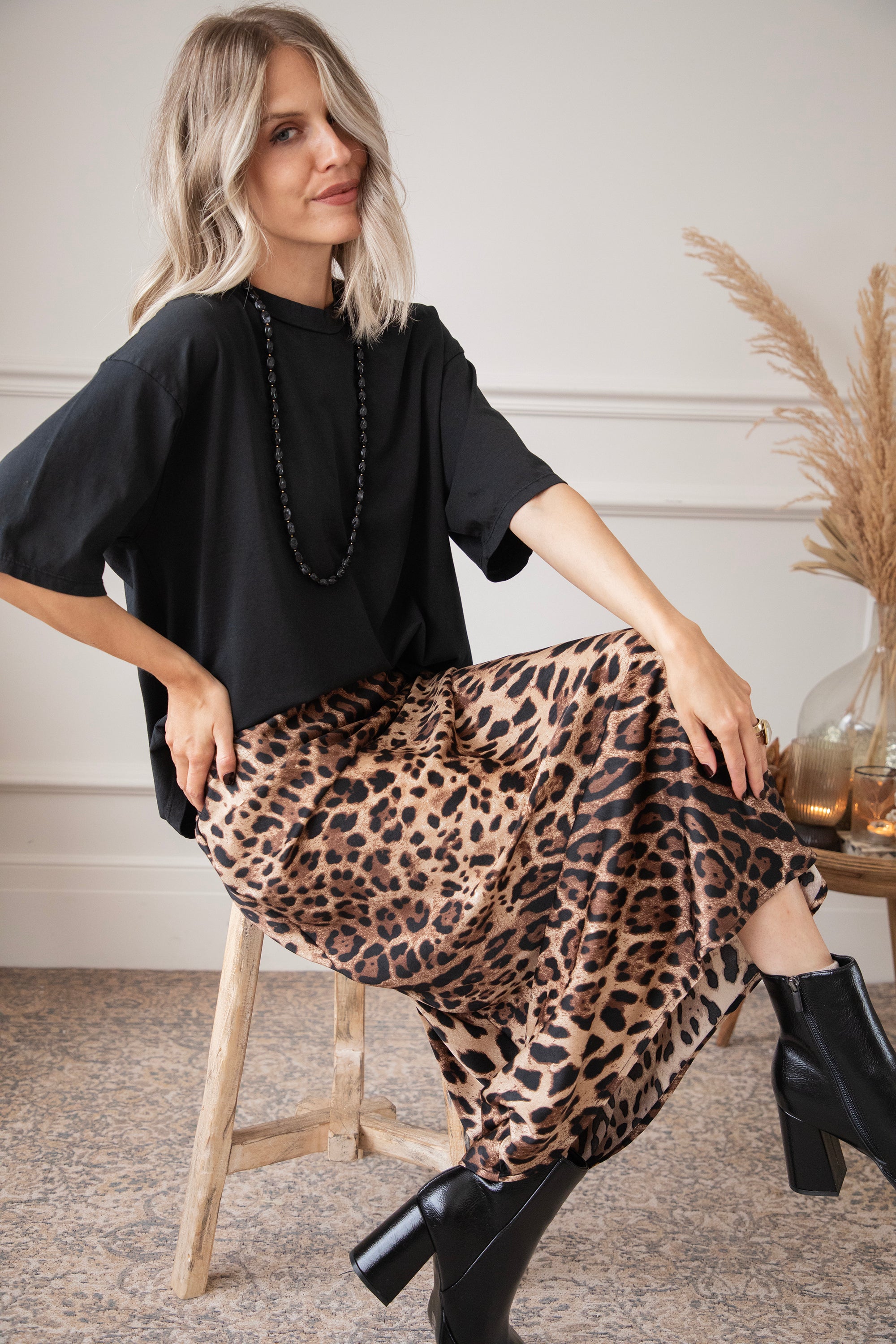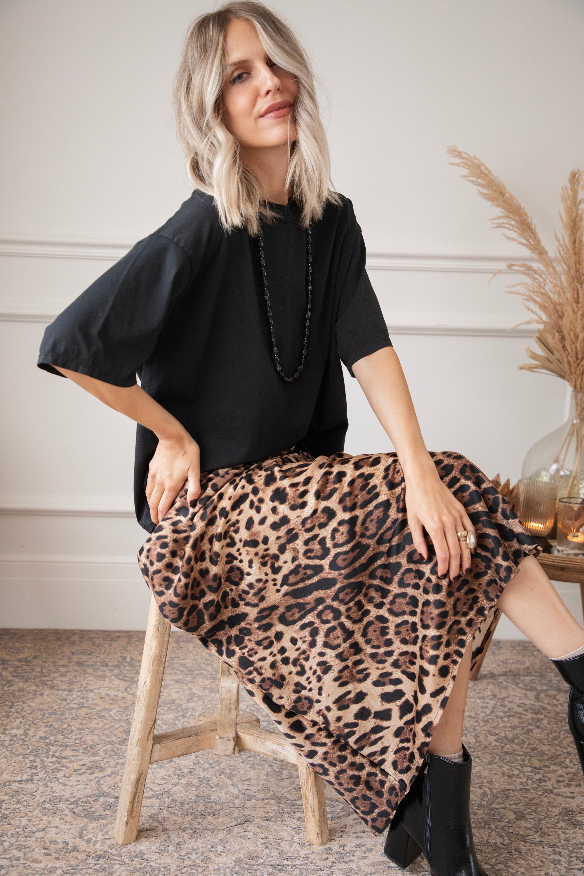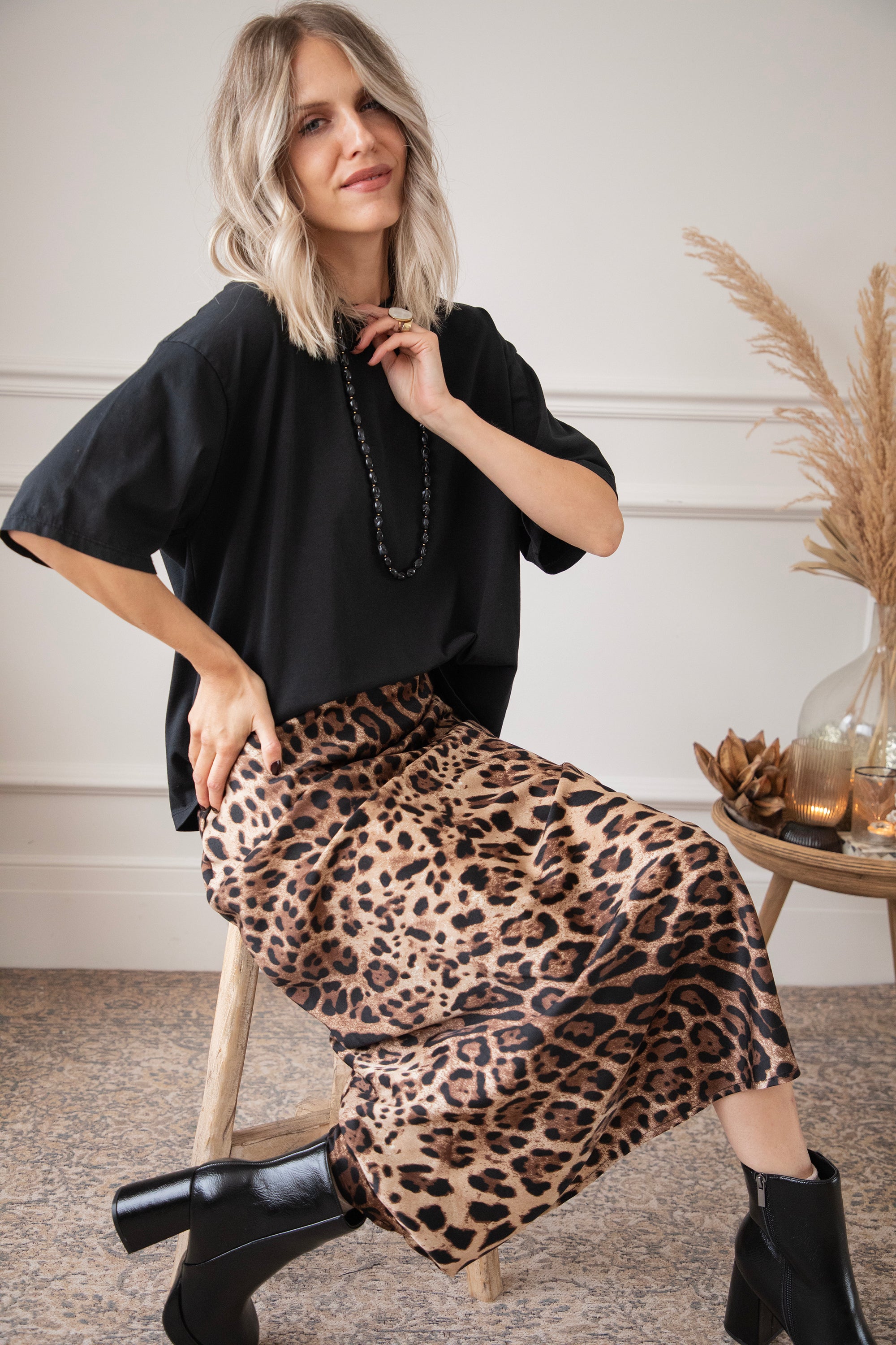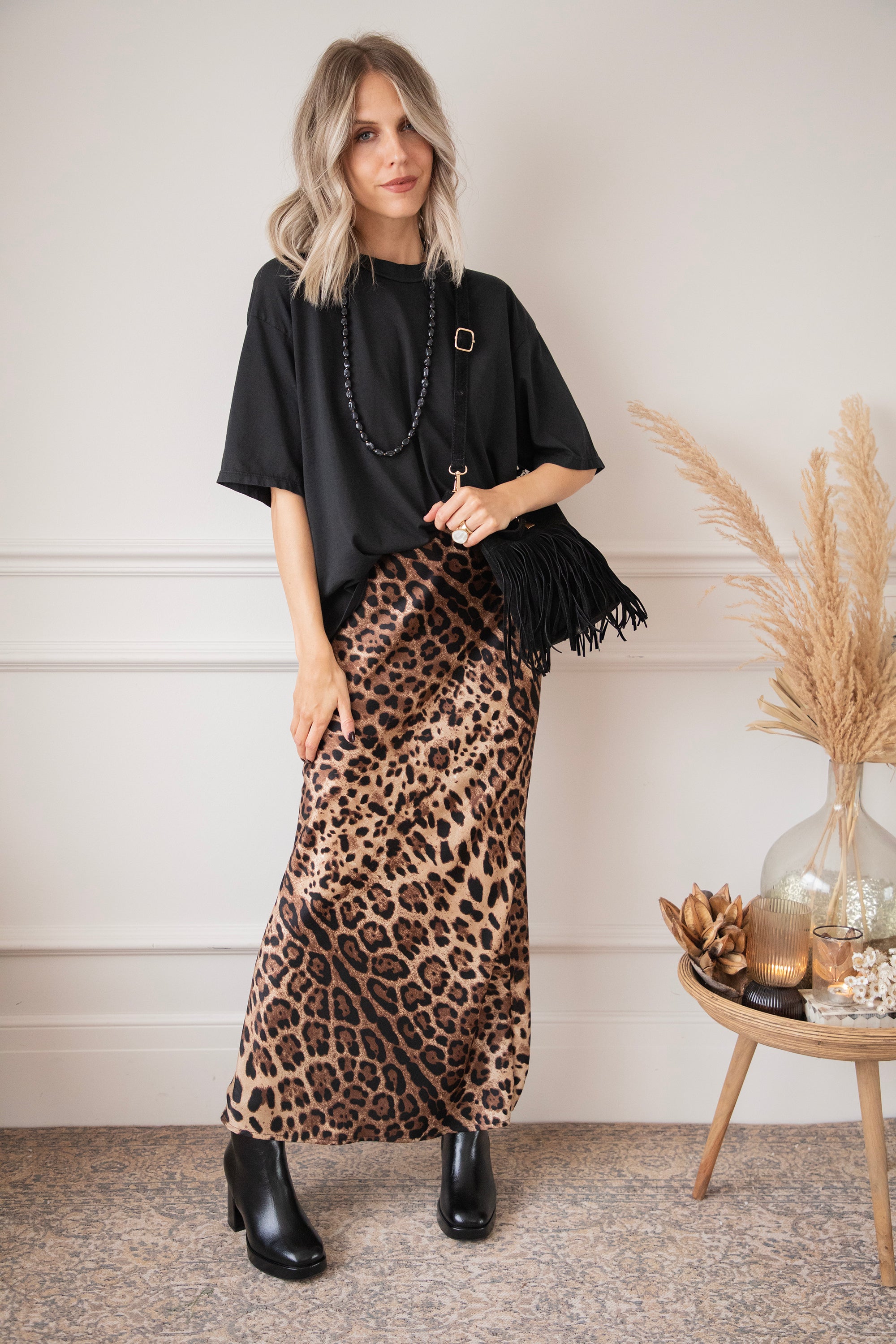 The satin Silkylicious skirt is truly a staple in the ellemilla fall collection! It's a timeless, elegant piece that instantly gives your outfit a feminine upgrade 🎀 This leopard print makes my heart beat just a little faster!