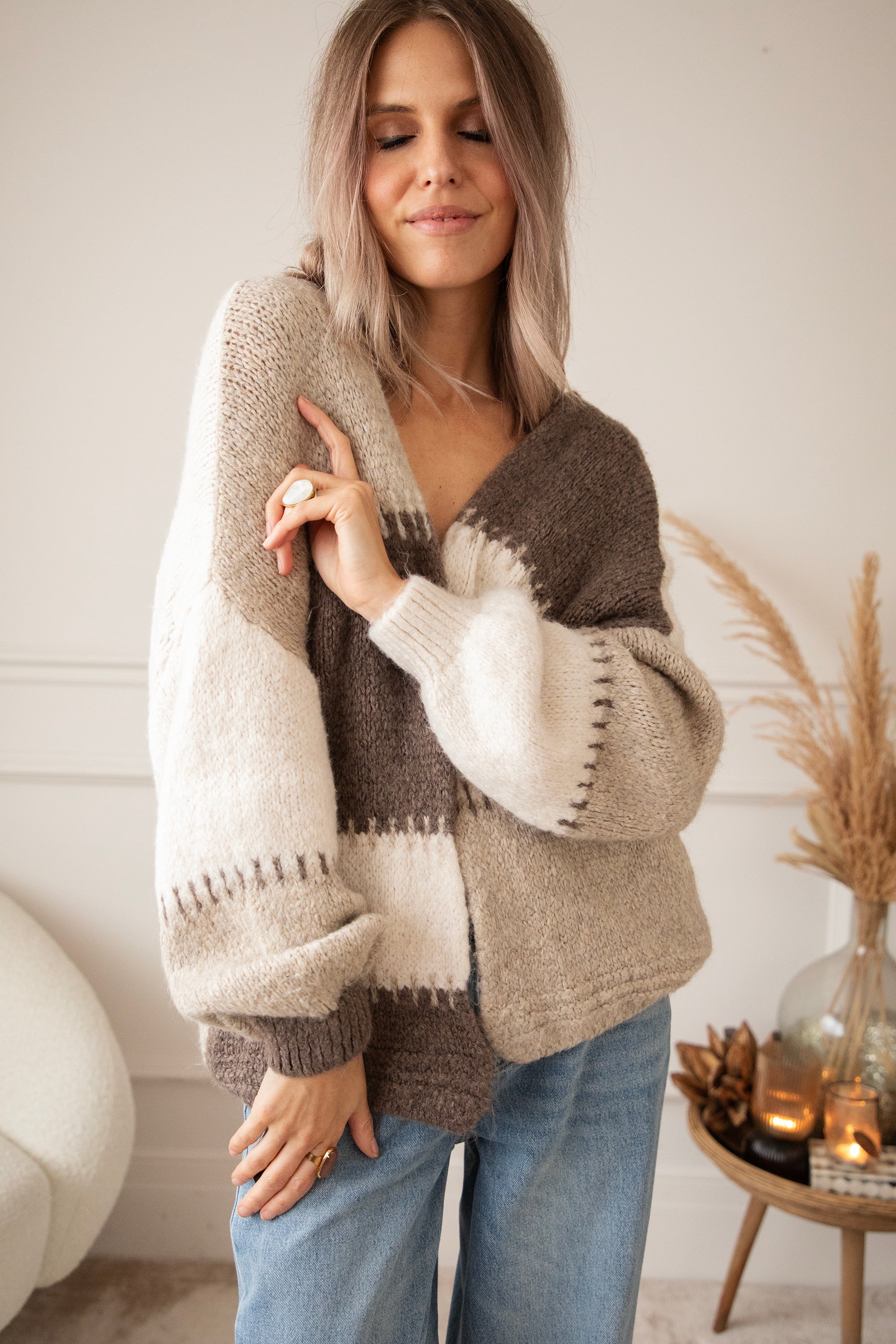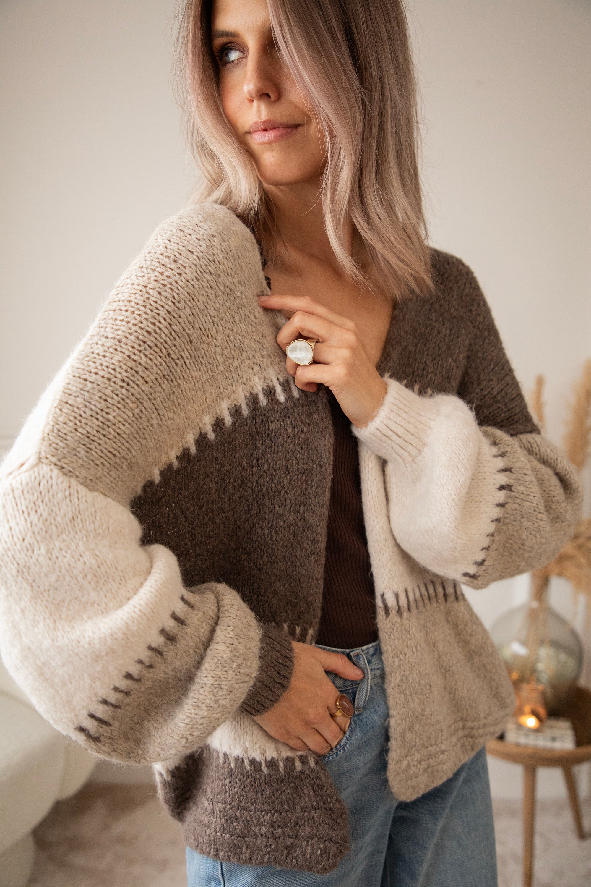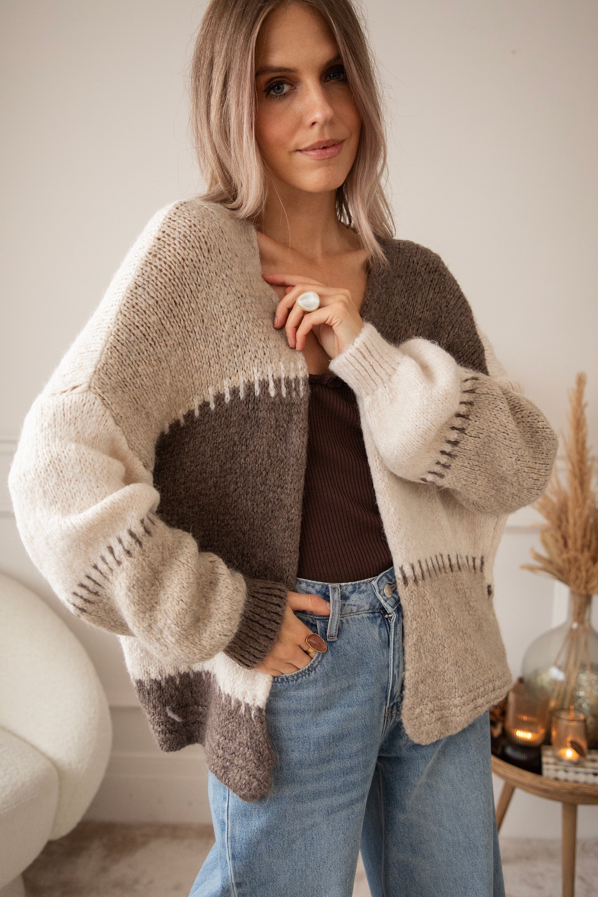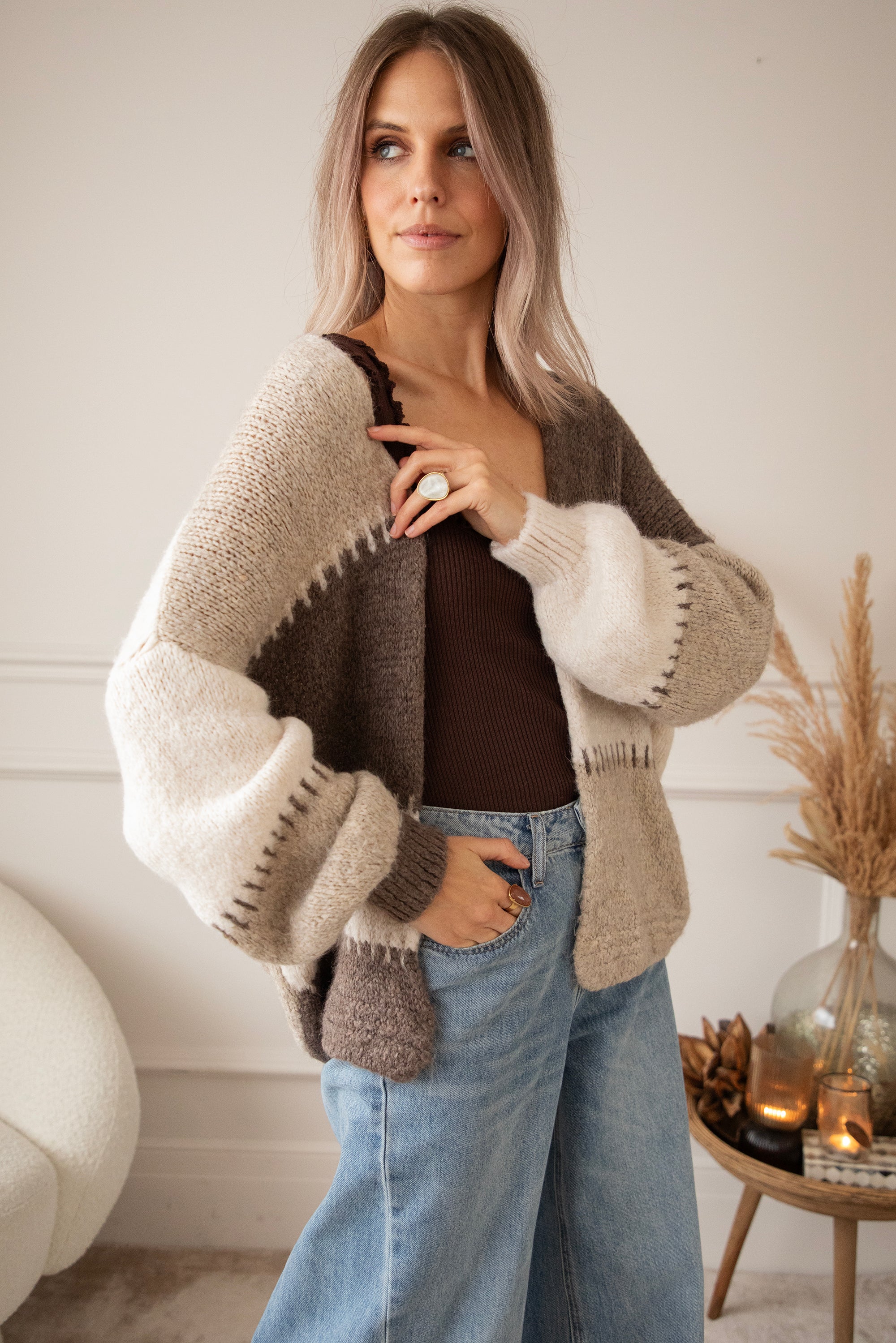 Okay, girls... this new version of our Soft Stitch Cardigan is pure neutral heaven! 🥹 Soft shades of beige, taupe, and off-white blend beautifully, creating that calm, cozy vibe that suits every season ☁️ And that cool stitch detail that connects the panels... so original! It makes the cardigan truly unique, as if each piece has been lovingly sewn together 💕