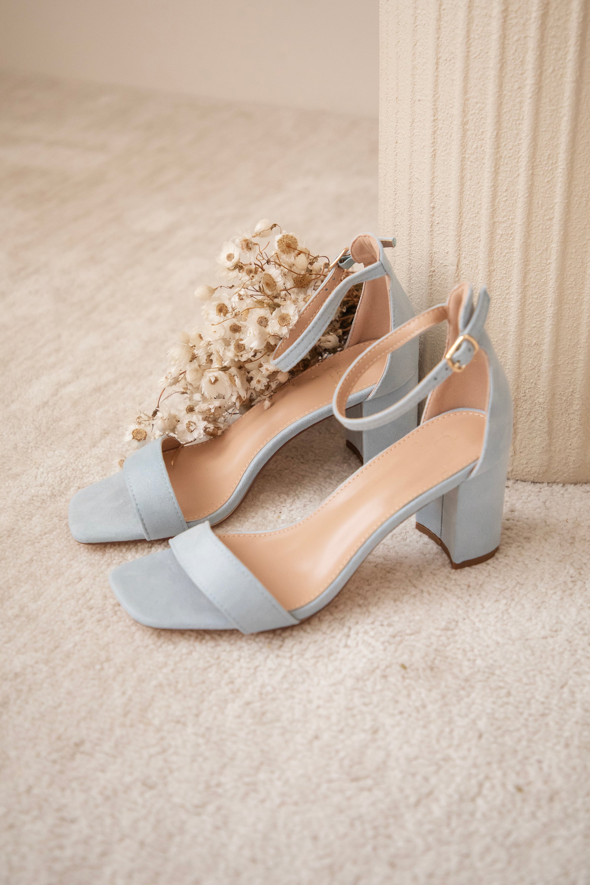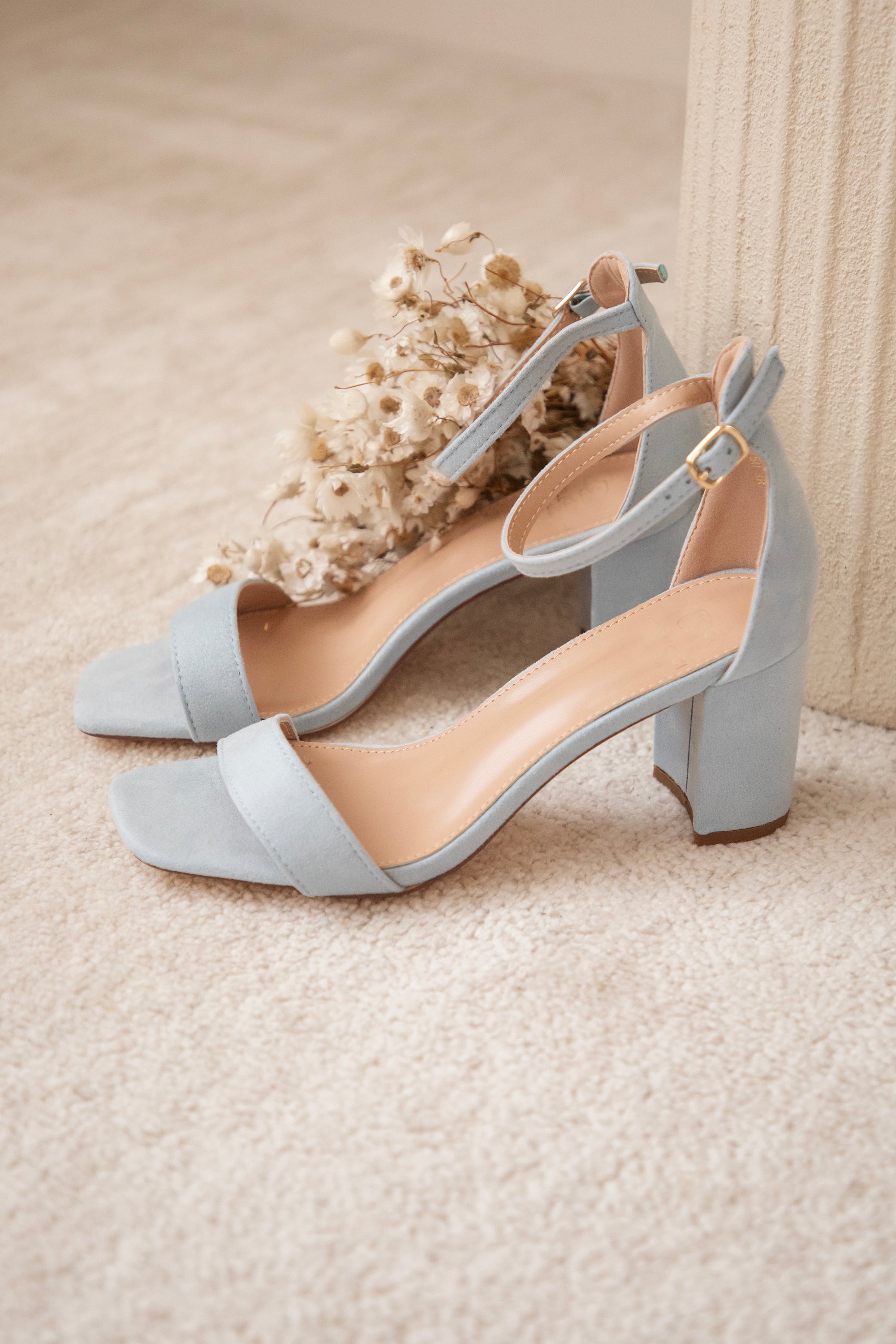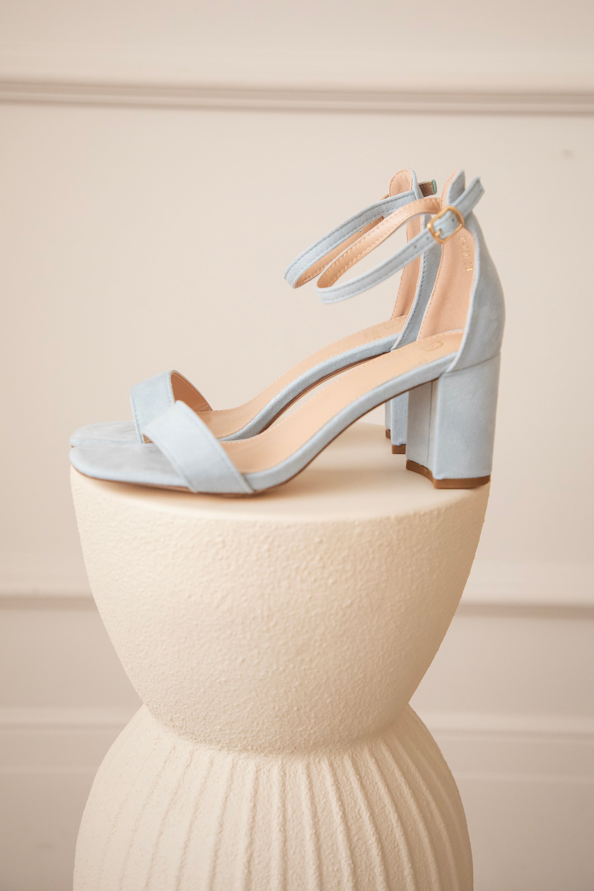 The heels are made of PU suede leather, which feels super nice to wear! The ankle strap with a golden buckle has enough holes to fasten them exactly how you like, so they stay nicely in place while you’re walking.