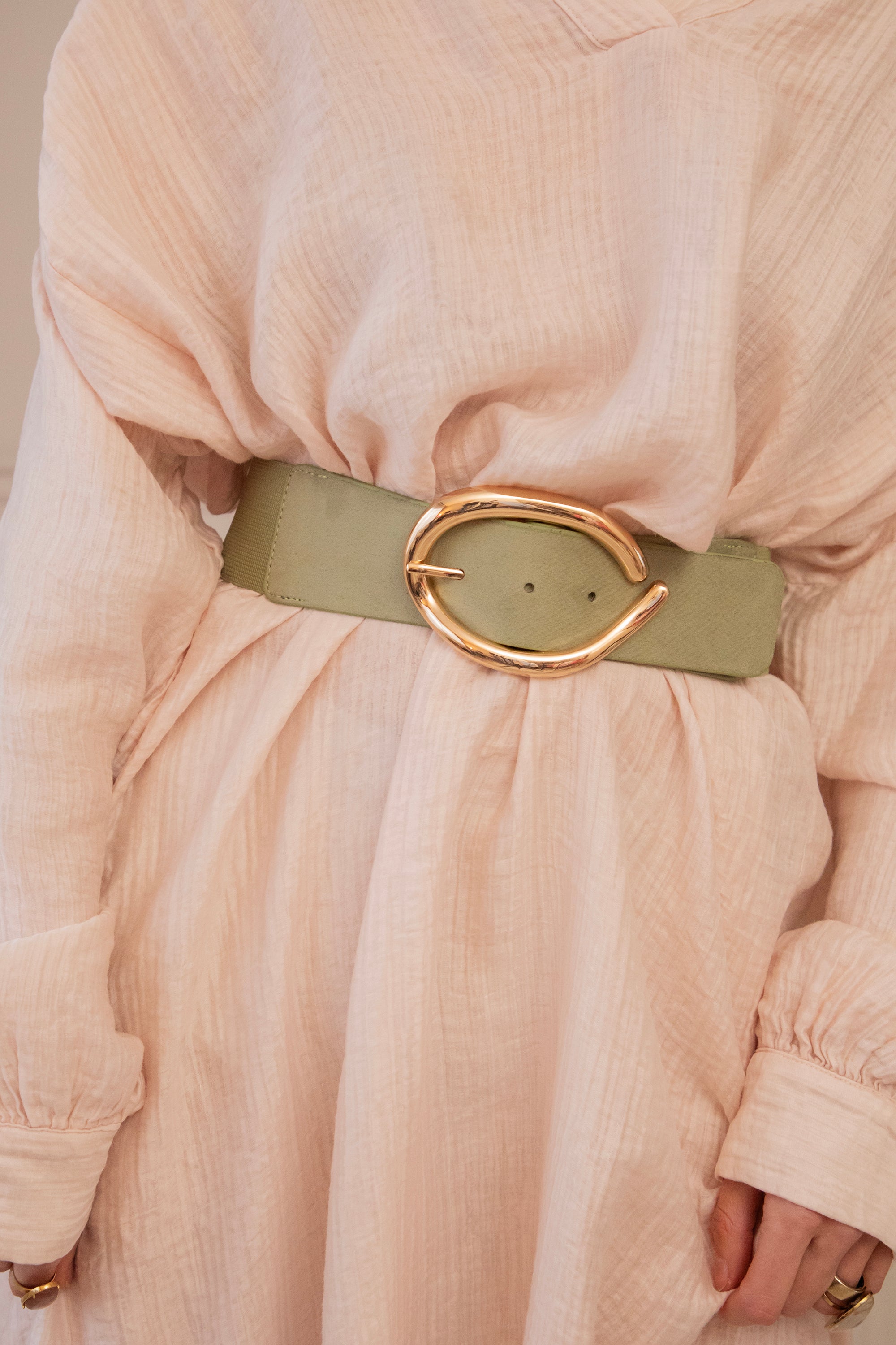 Embrace your waist with the Waist Embrace belt, an elegant finishing touch for your sweater dresses, dresses, and even longer blouses 😊 The closure is the real eye-catcher, featuring a golden metal buckle that intentionally doesn’t meet at the end—a cool detail ✨