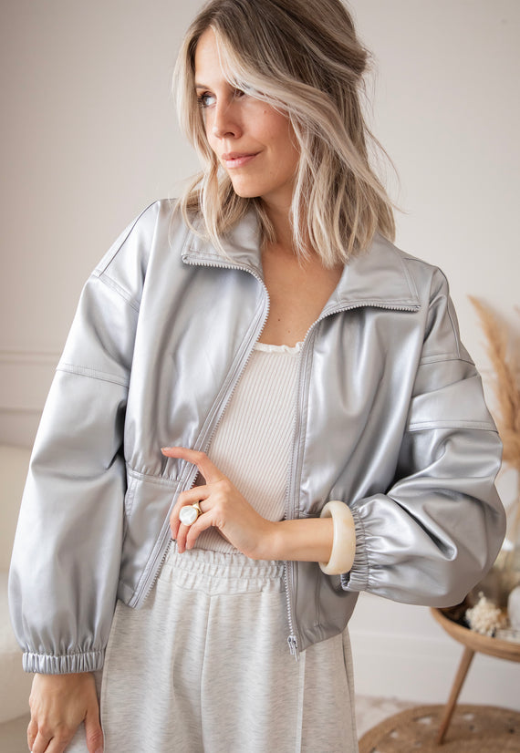 Another bomber beauty! ❤️ The trend is clear: bomber jackets are HOT, and I'm all for it! 💥 You see them in all kinds of materials—suede, leather, denim... While the Blair Bomber has a zipper and a textured leather look,...