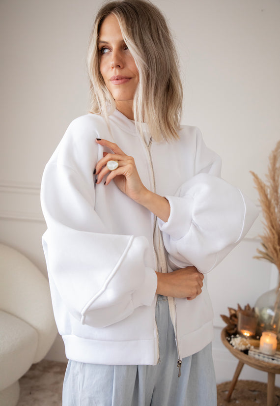 A blend of soft fabric & cool puffer 🎀 Soft Puffer Blend is my new favorite!! 🤍 Ultra-baggy, cozy, yet super stylish, with puffer details on the hood and sleeve ends that give it that sporty-luxury feel. The lovely collar...
