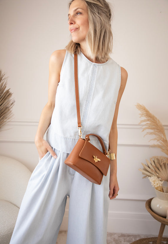 With a shiny twist ⭐️ This blazer is completely sprinkled with rhinestones that sparkle beautifully with every movement ✨ And the best part? They have a subtle rainbow color that makes them extra magical, a classy piece! The warm chocolate...