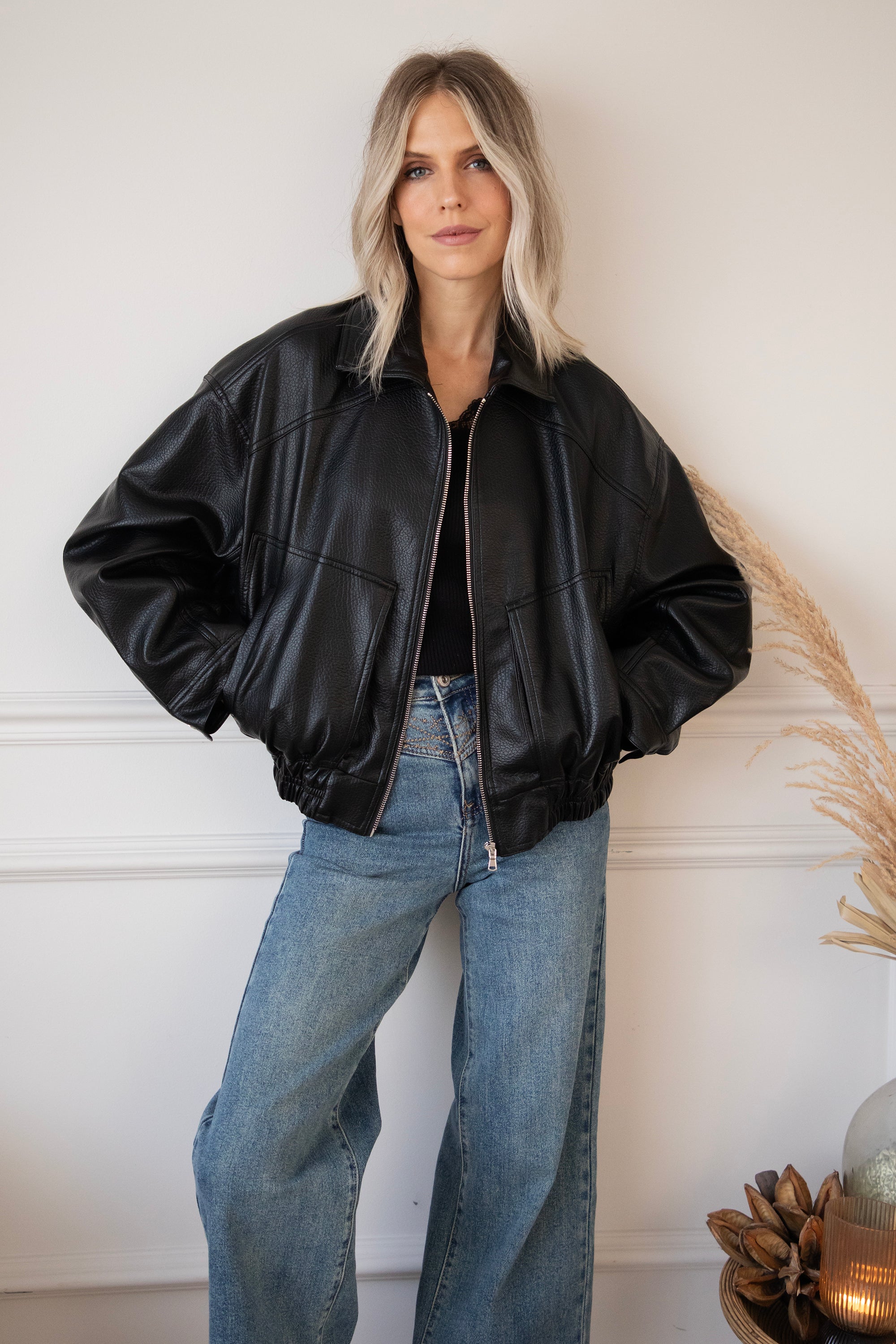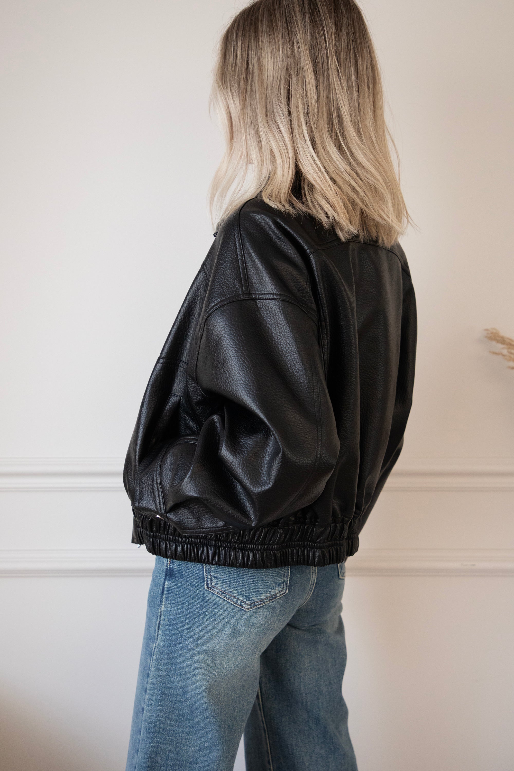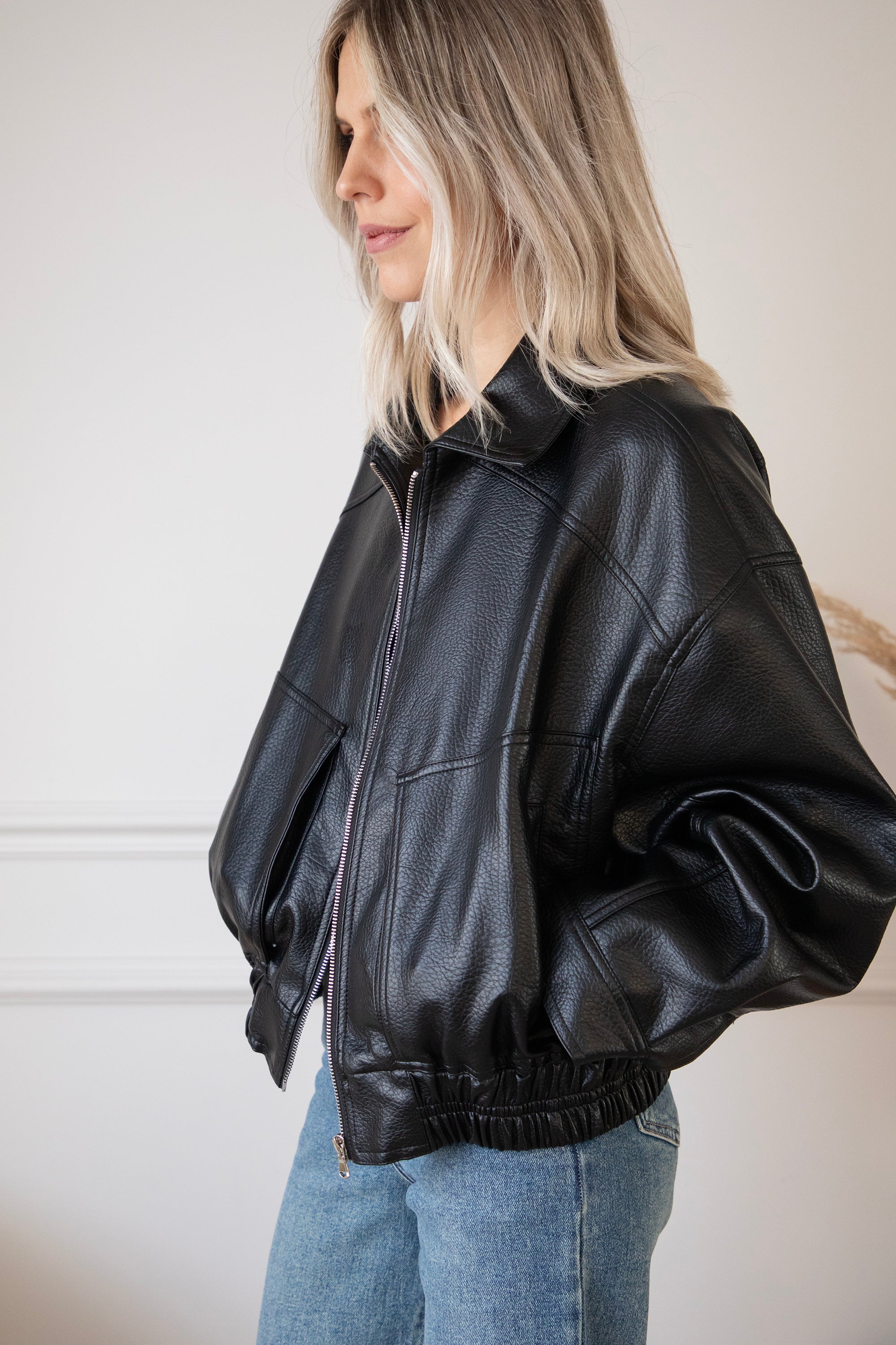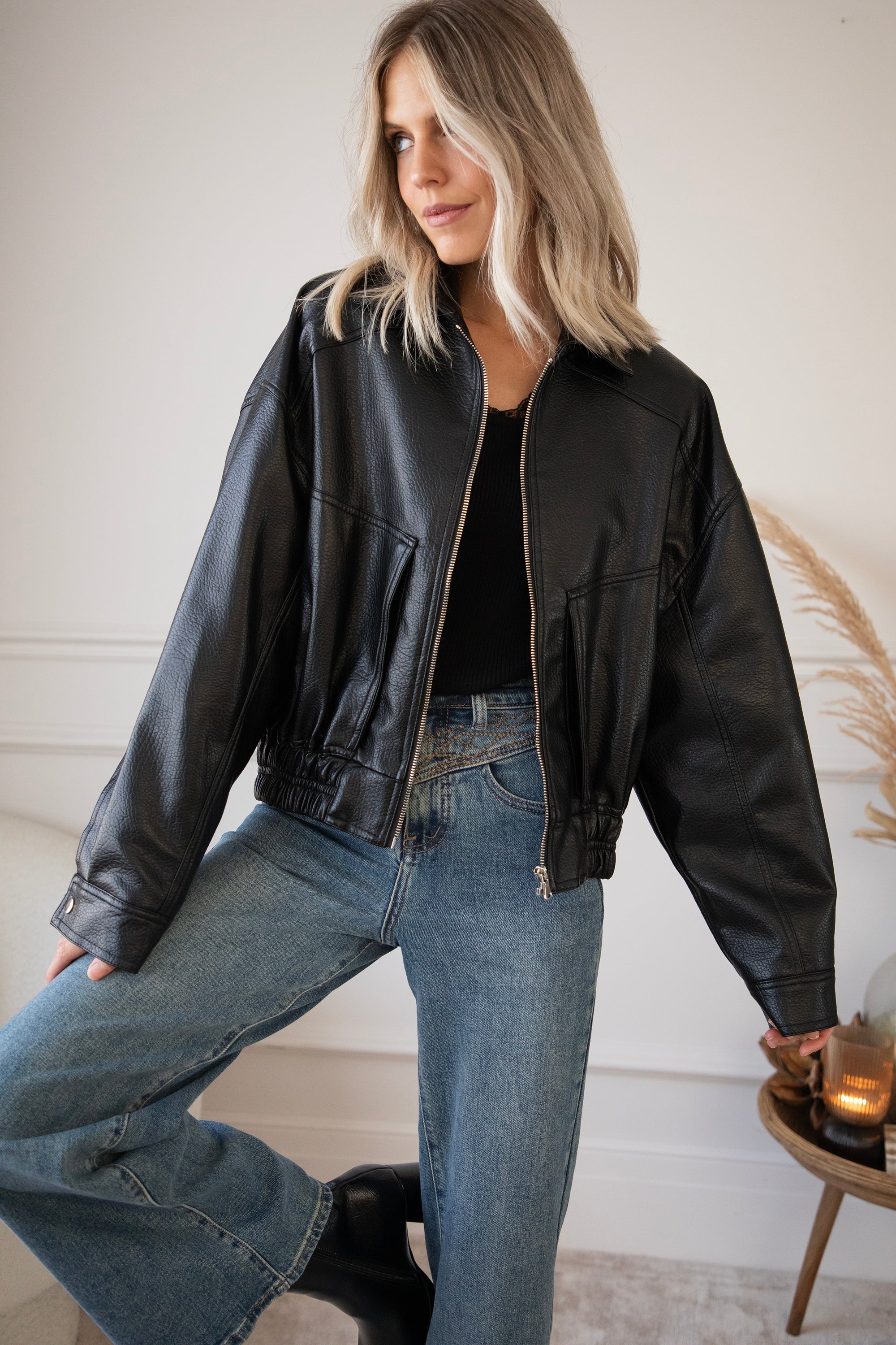 The most sought-after outerwear trend for fall/winter 2025? A faux leather or suede bomber jacket! Inspired by the 80s. Nice and oversized 😍 That's how we like it! I've picked out a few cute bomber jackets, including this cute black Blair one 🖤 A textured PU leather jacket with an elasticated hem and roomy side pockets 🎀