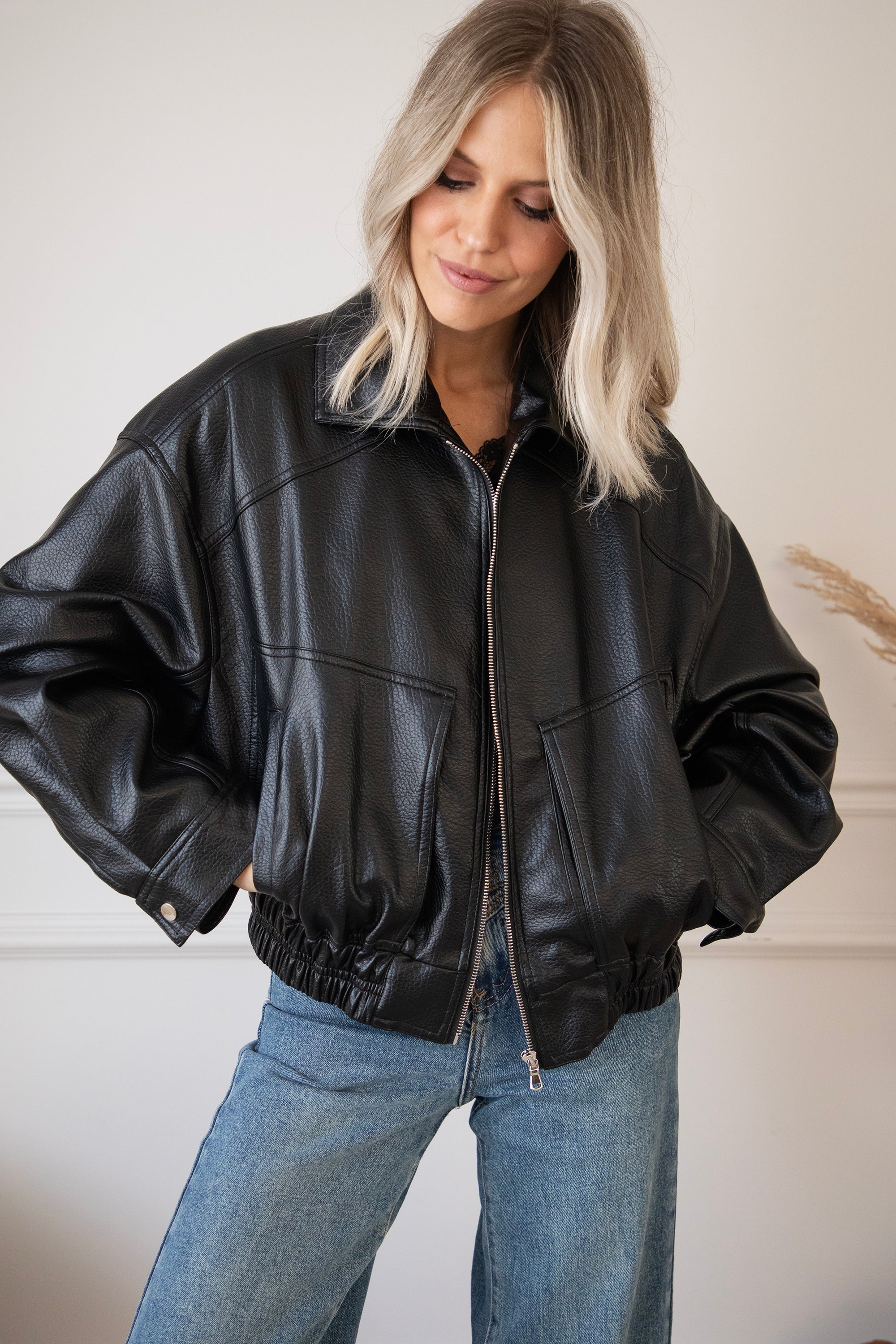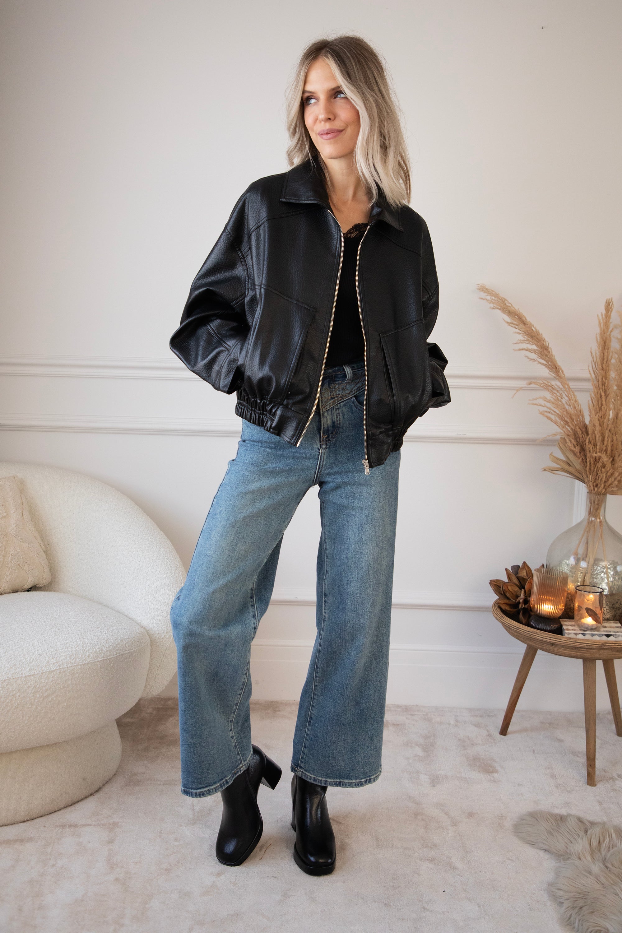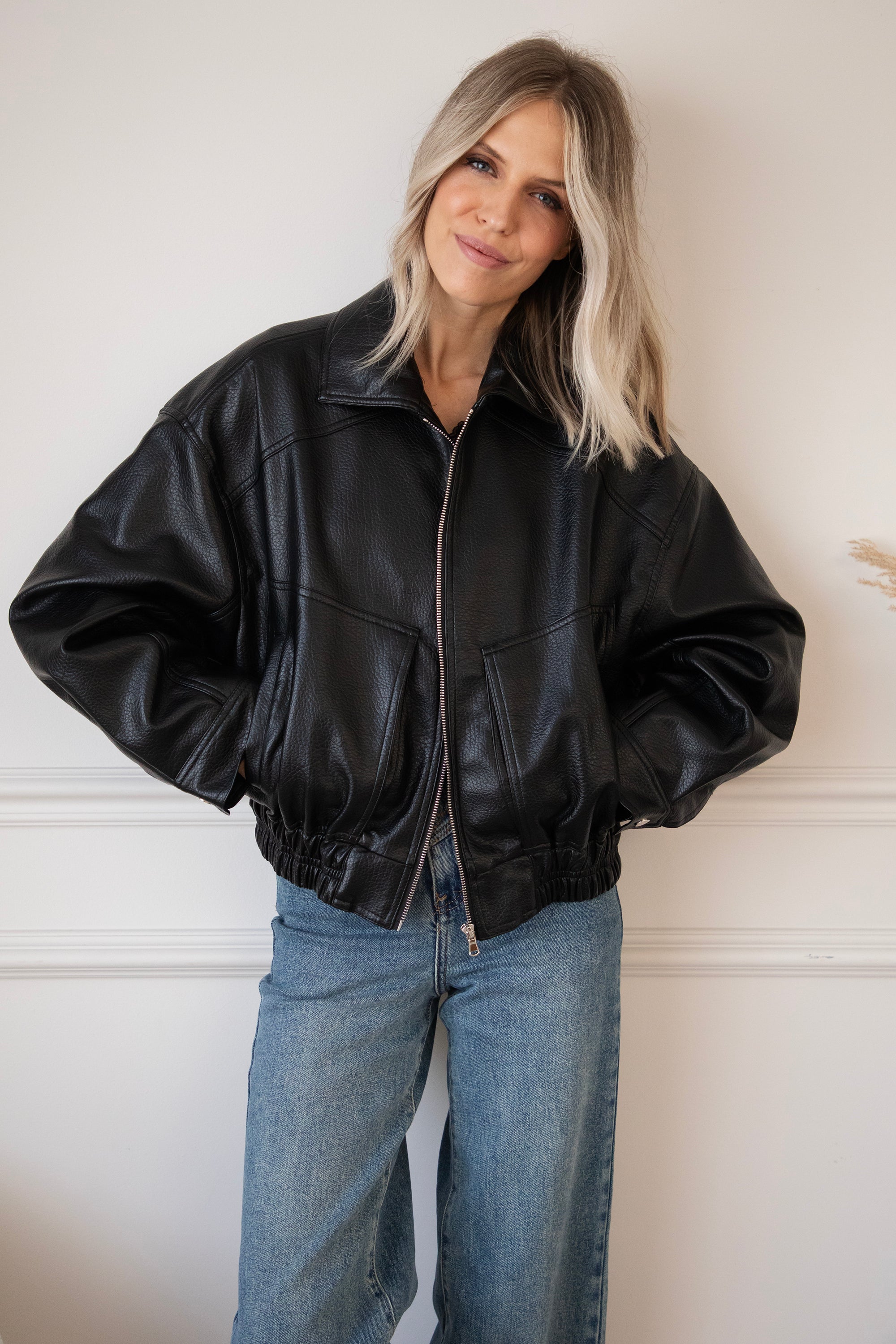 The most sought-after outerwear trend for fall/winter 2025? A faux leather or suede bomber jacket! Inspired by the 80s. Nice and oversized 😍 That's how we like it! I've picked out a few cute bomber jackets, including this cute black Blair one 🖤 A textured PU leather jacket with an elasticated hem and roomy side pockets 🎀