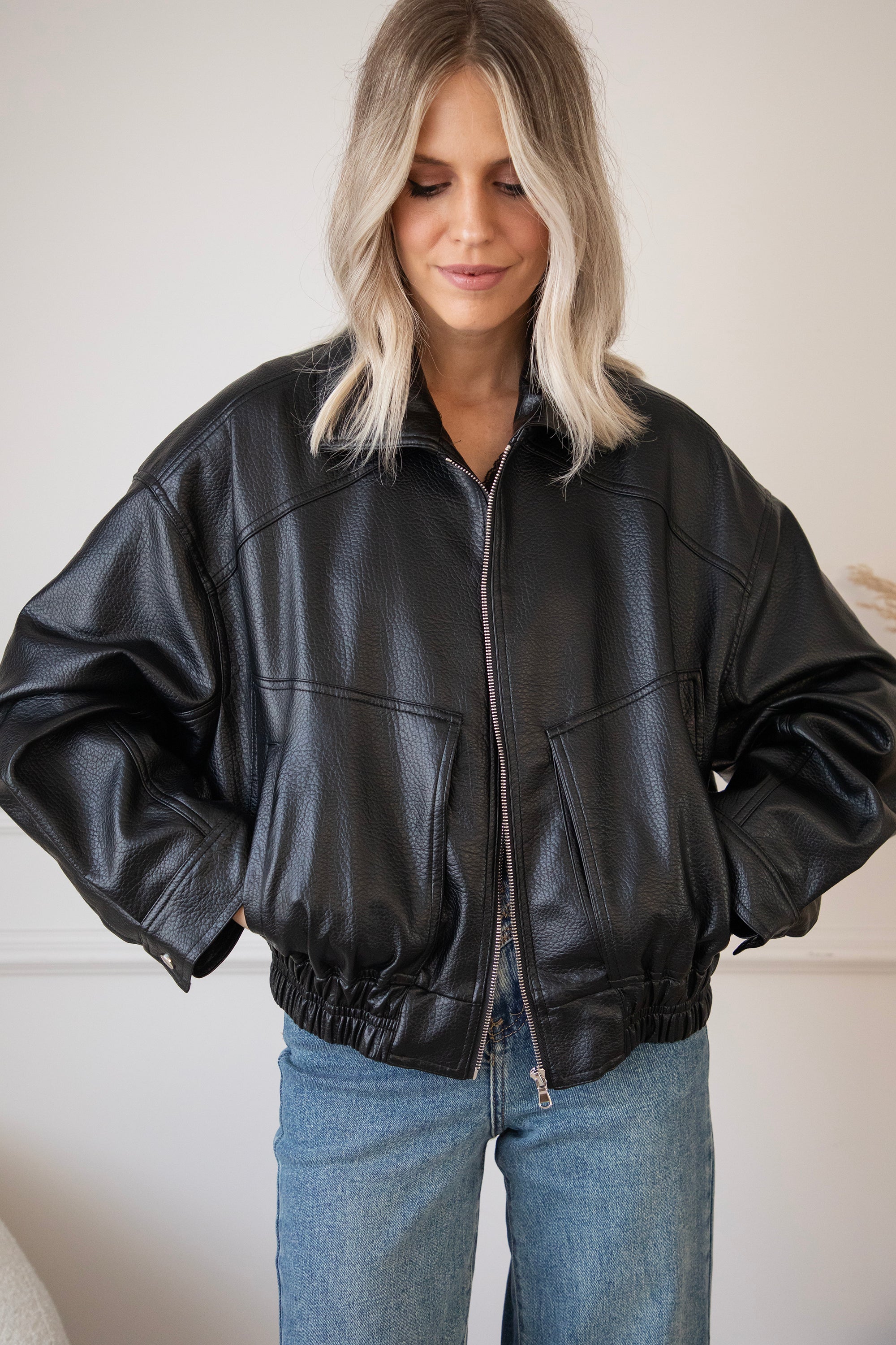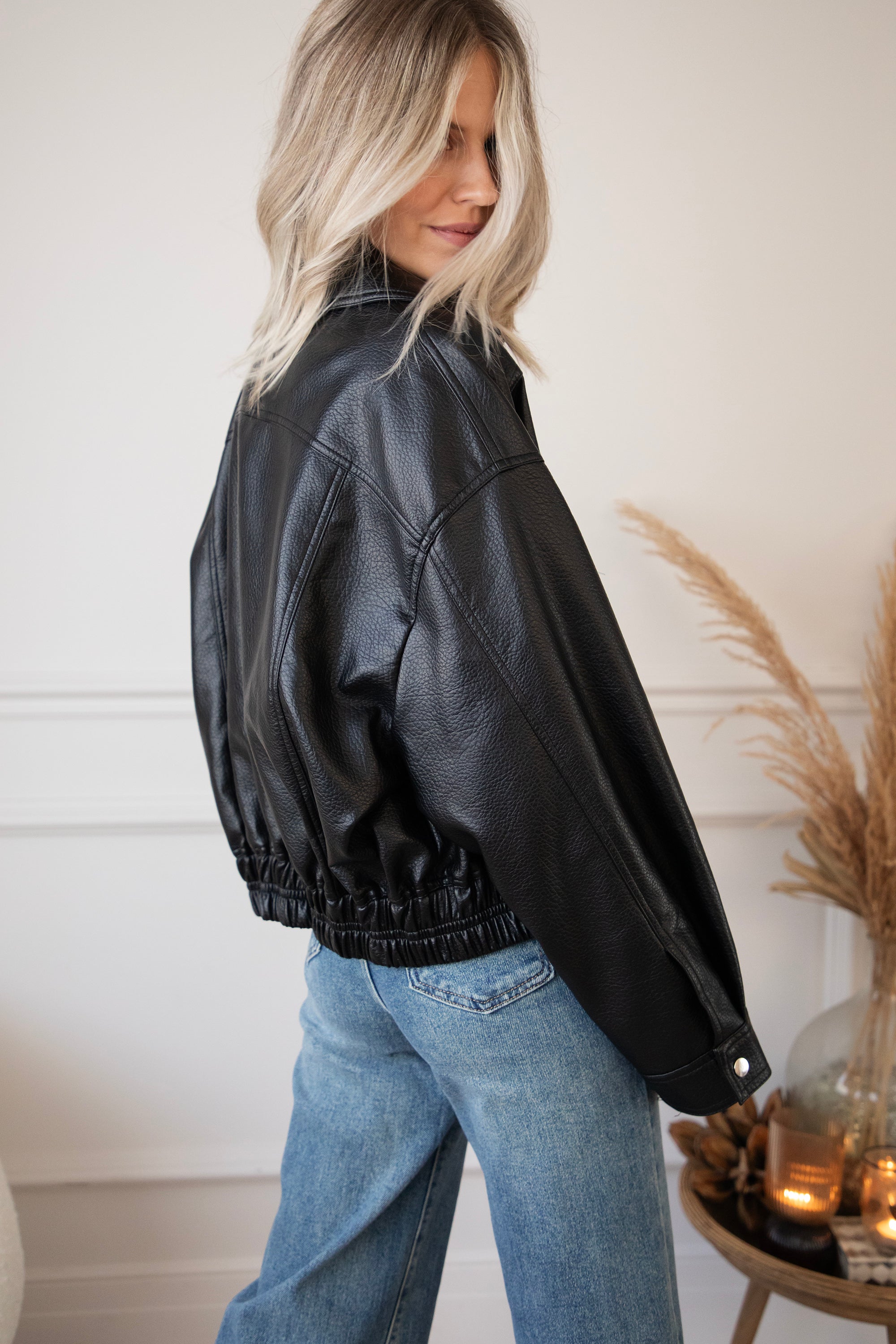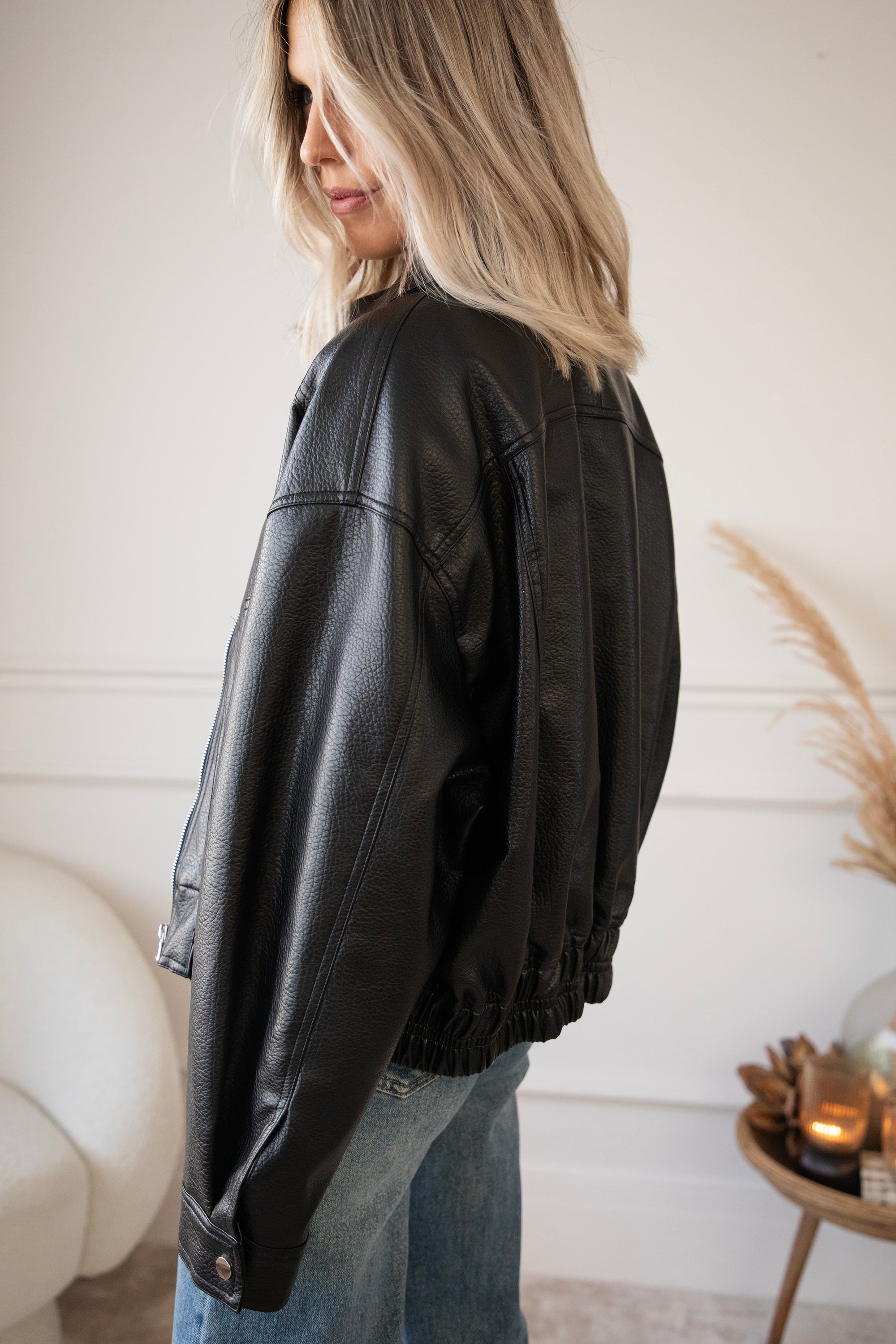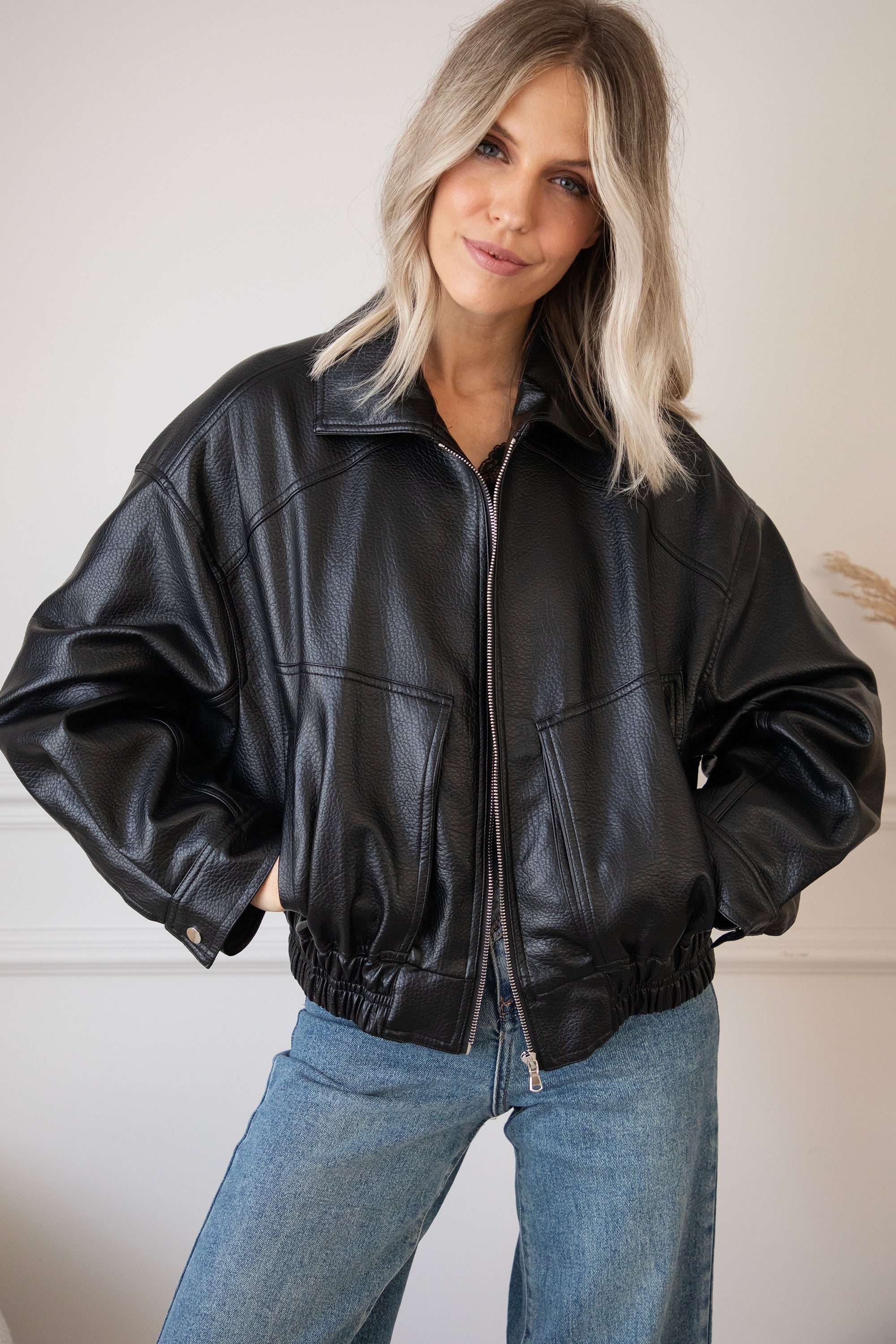 The most sought-after outerwear trend for fall/winter 2025? A faux leather or suede bomber jacket! Inspired by the 80s. Nice and oversized 😍 That's how we like it! I've picked out a few cute bomber jackets, including this cute black Blair one 🖤 A textured PU leather jacket with an elasticated hem and roomy side pockets 🎀