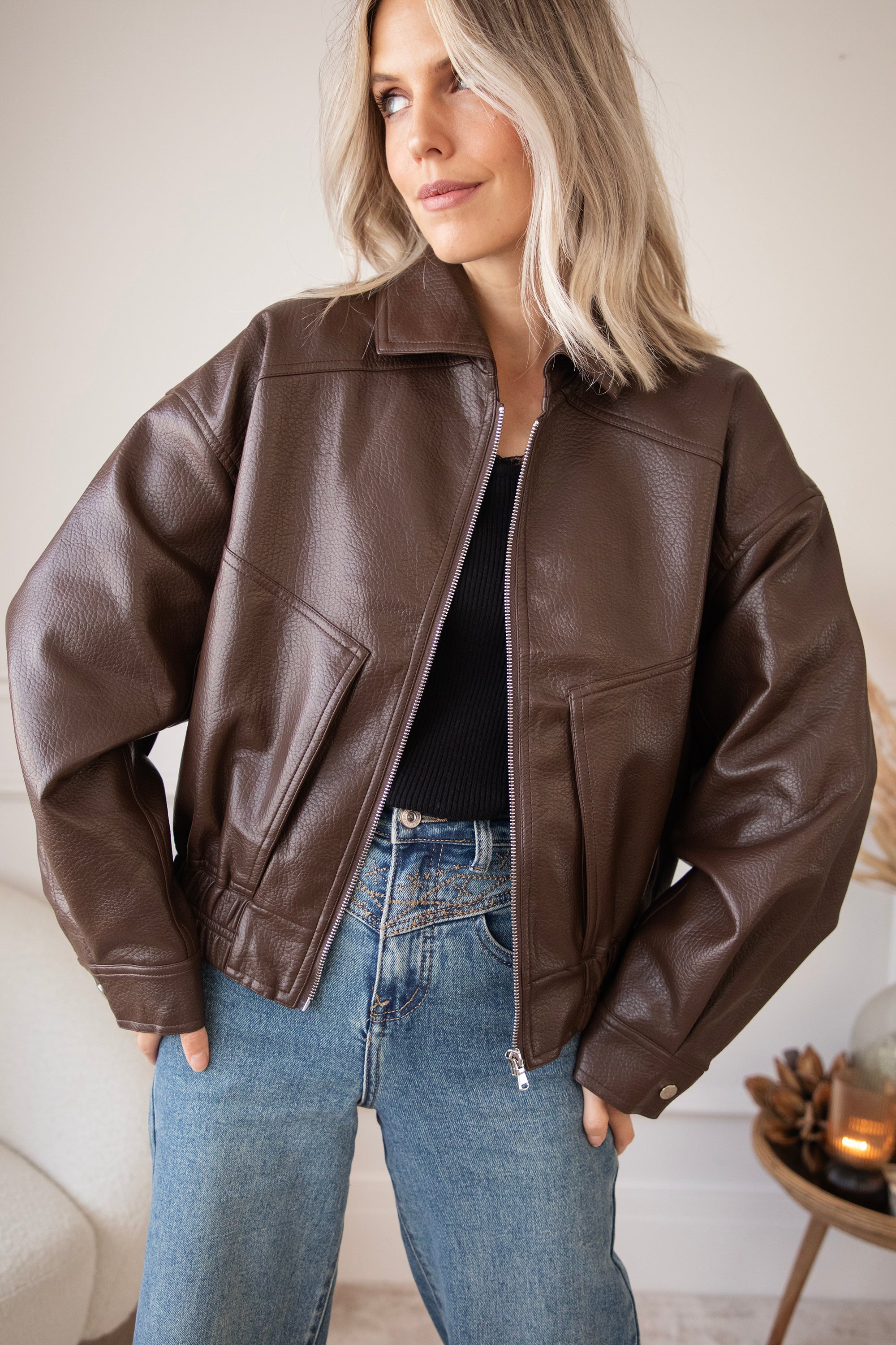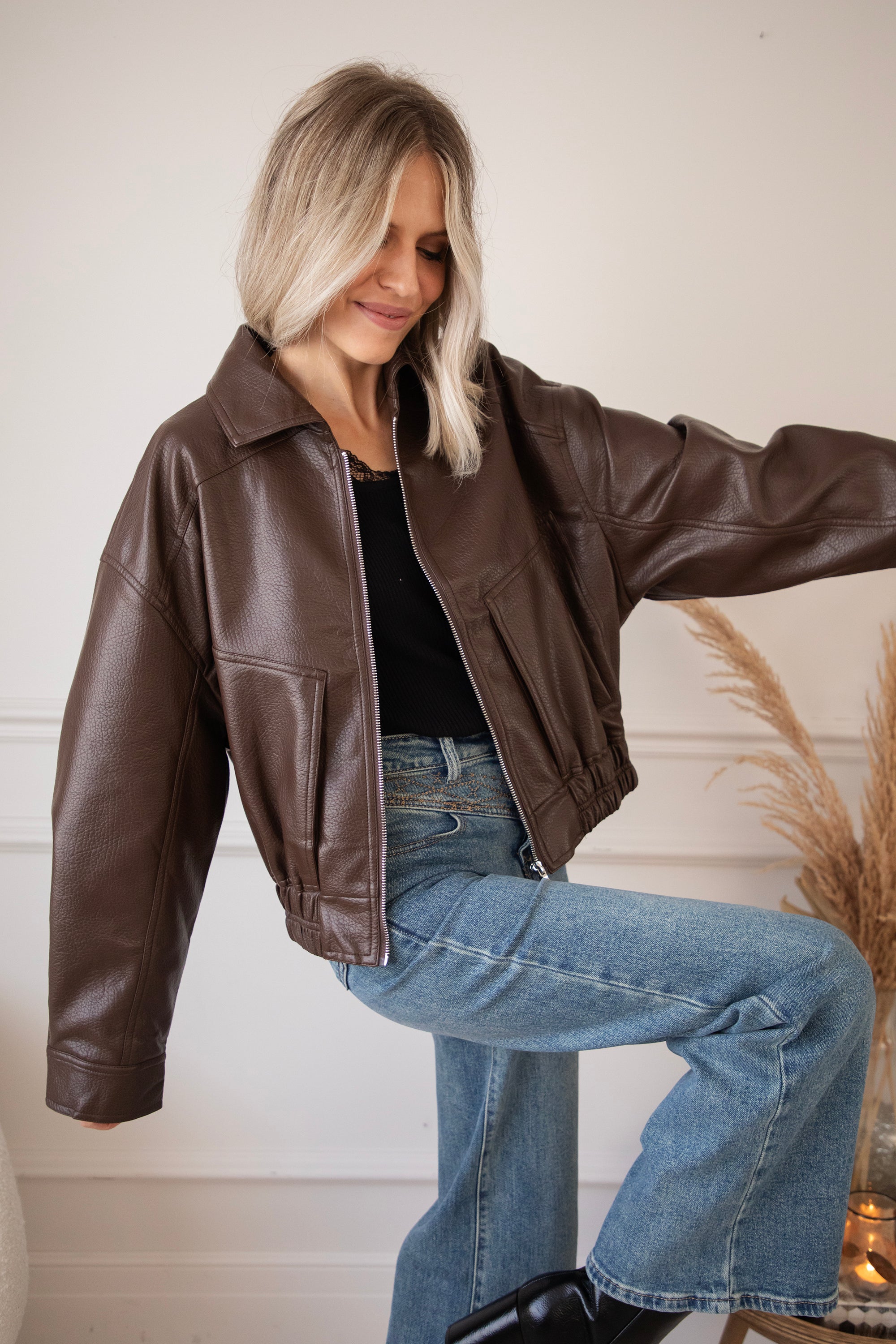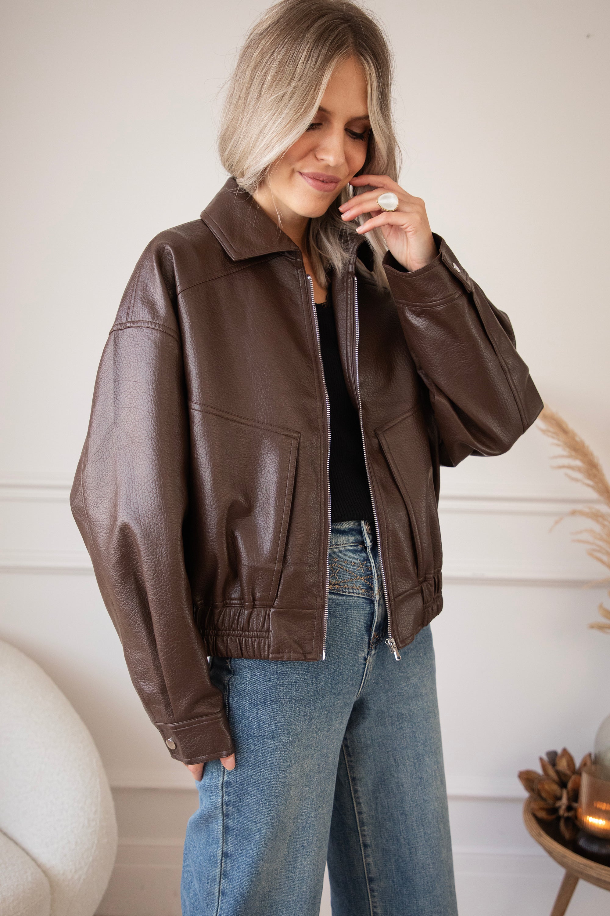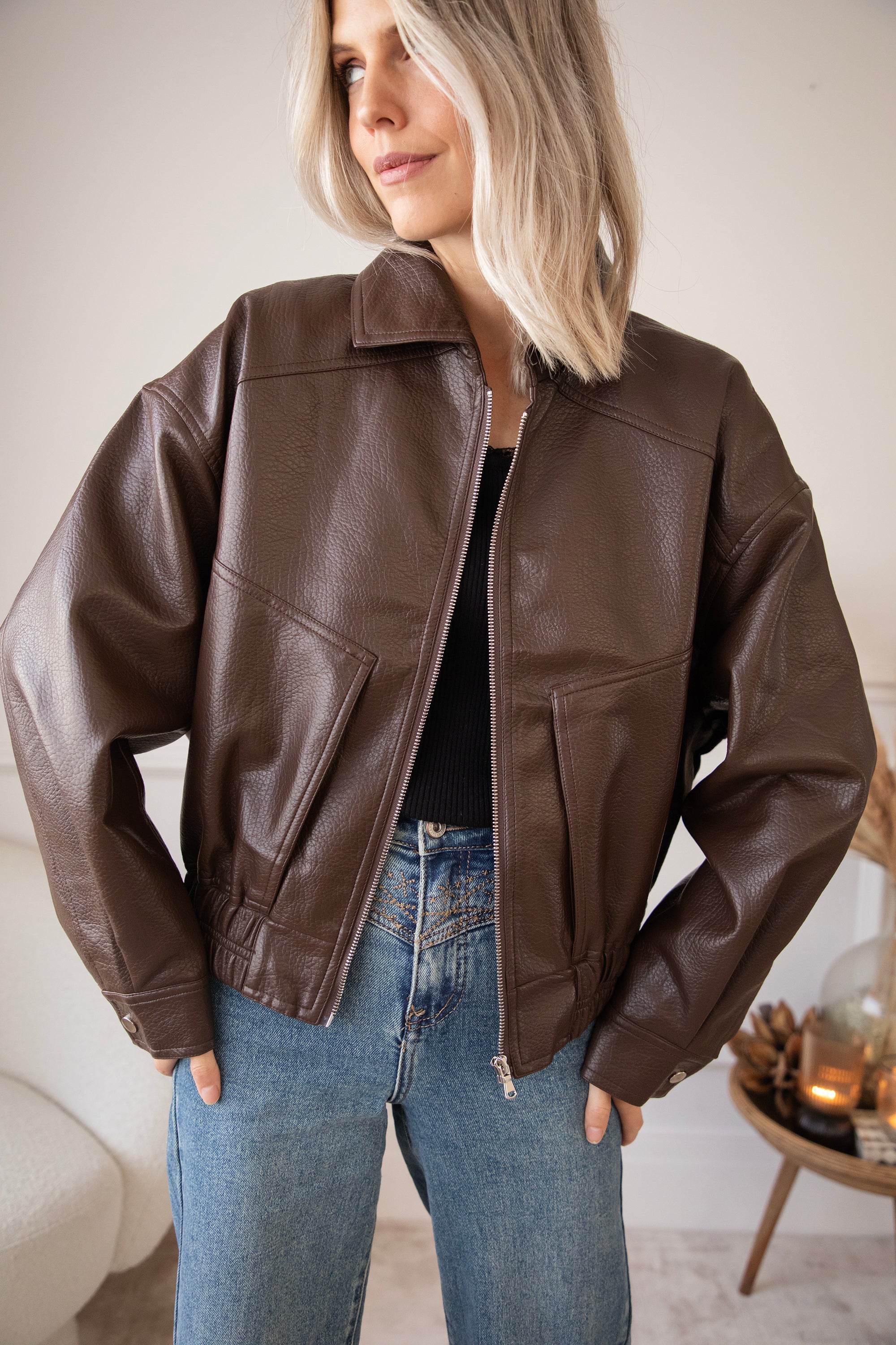 The most sought-after outerwear trend for fall/winter 2025? A faux leather or suede bomber jacket! Inspired by the 80s. Nice and oversized 😍 That's how we like it! I've picked out a few cute bomber jackets, including this cute black Blair one 🤎 A textured PU leather jacket with an elasticated hem and roomy side pockets 🎀