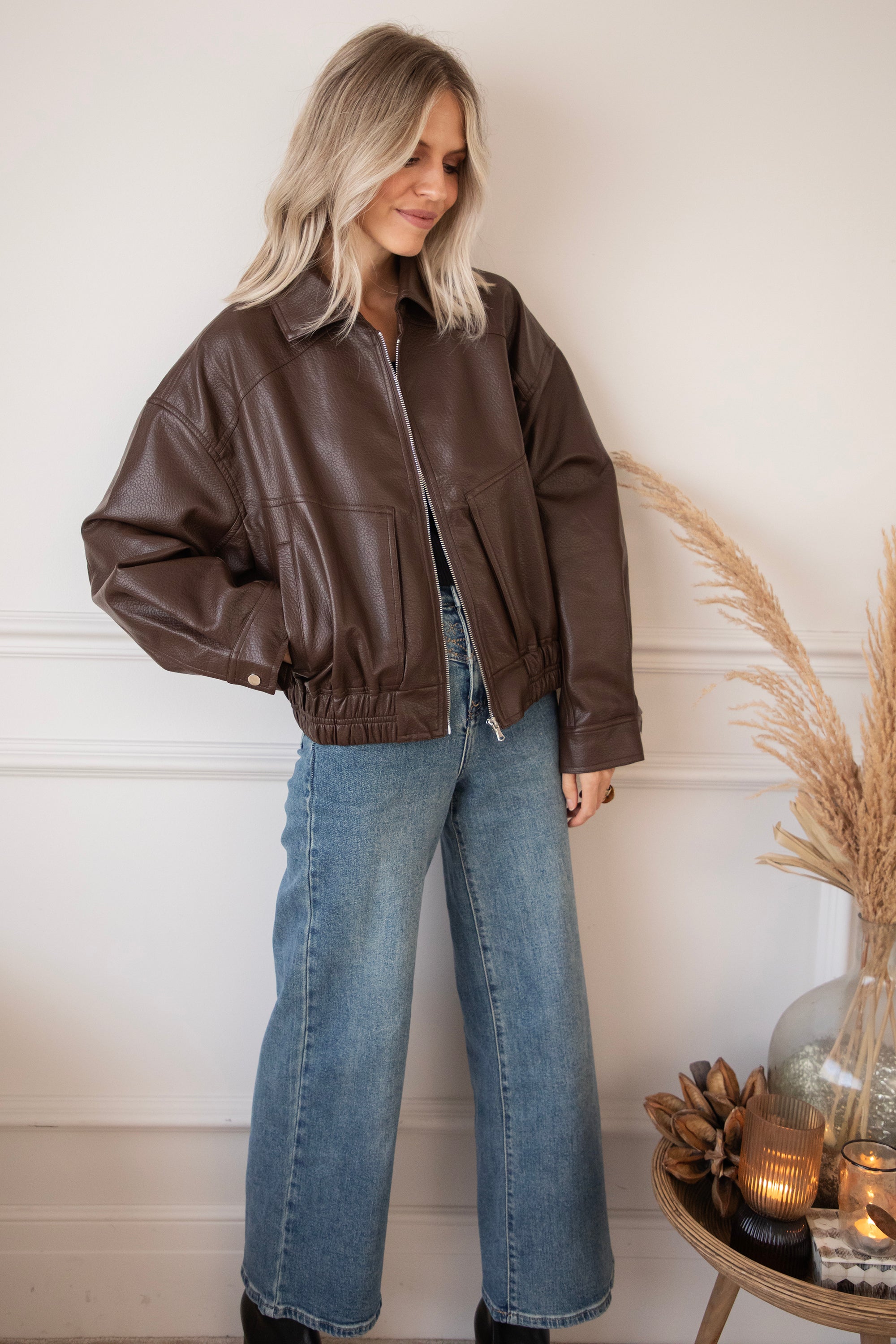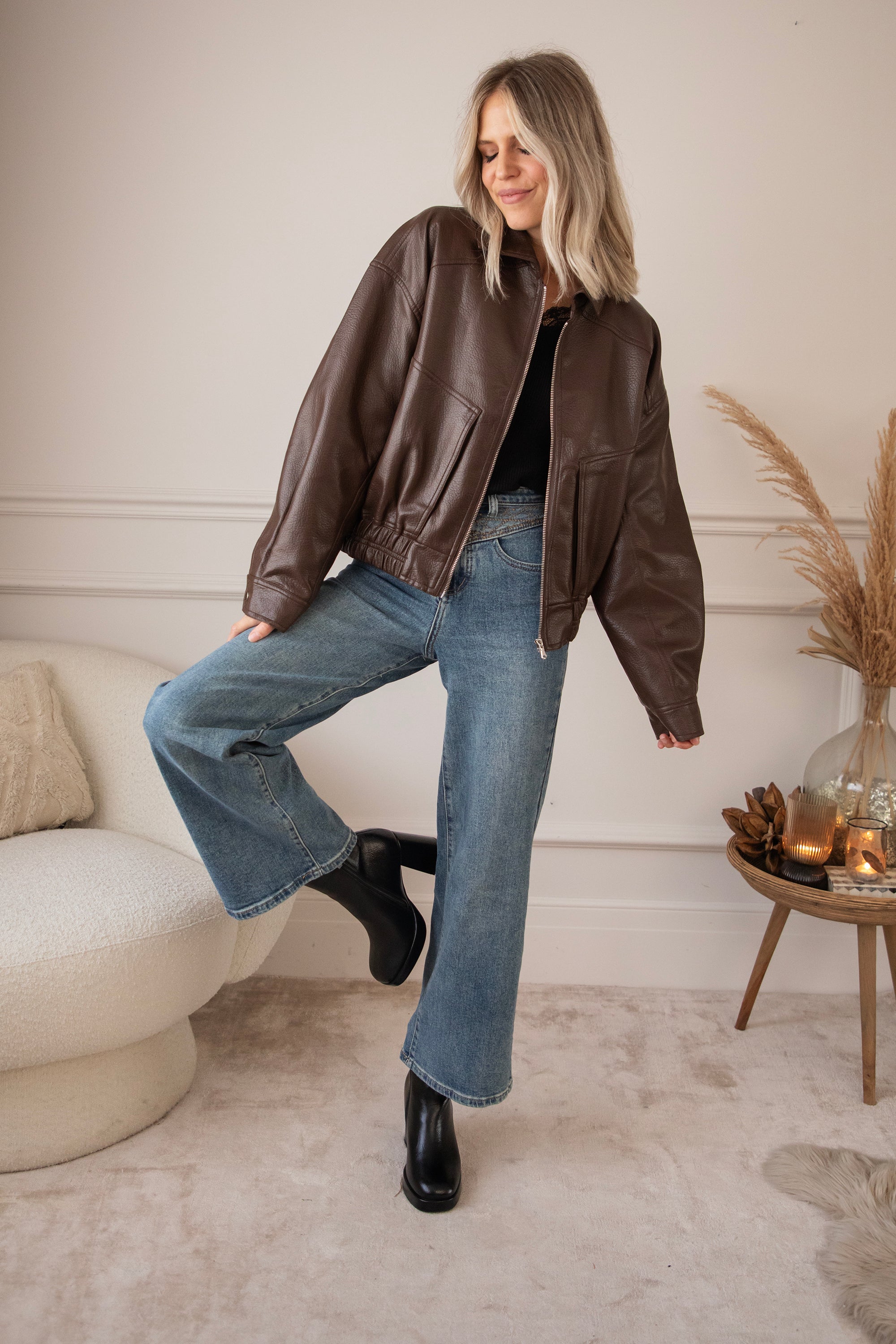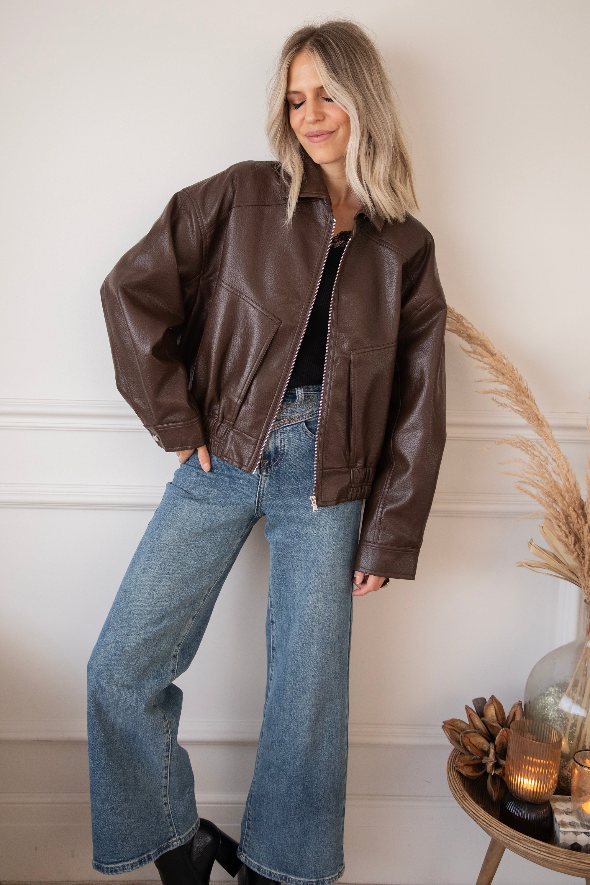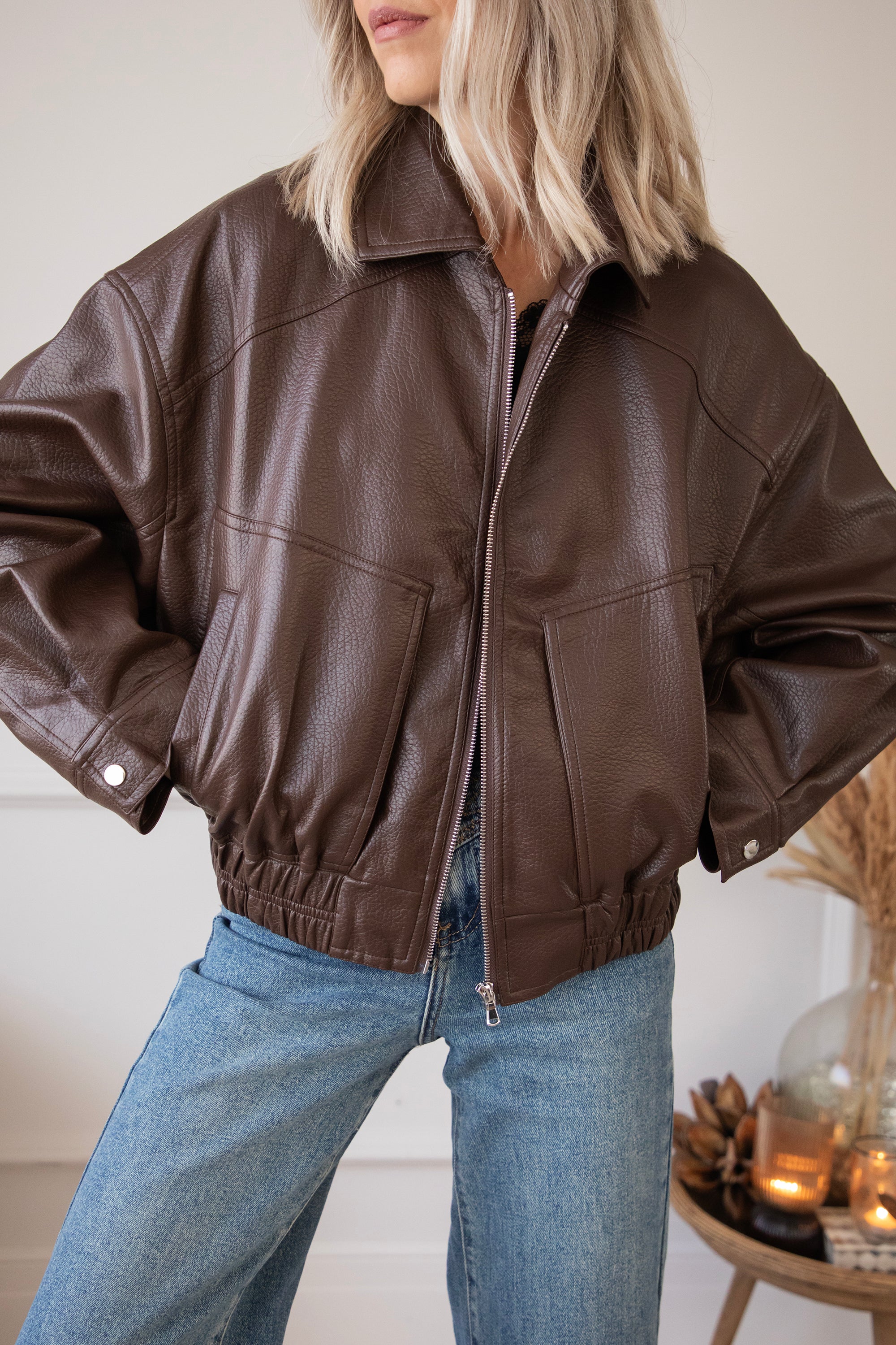 The most sought-after outerwear trend for fall/winter 2025? A faux leather or suede bomber jacket! Inspired by the 80s. Nice and oversized 😍 That's how we like it! I've picked out a few cute bomber jackets, including this cute black Blair one 🤎 A textured PU leather jacket with an elasticated hem and roomy side pockets 🎀