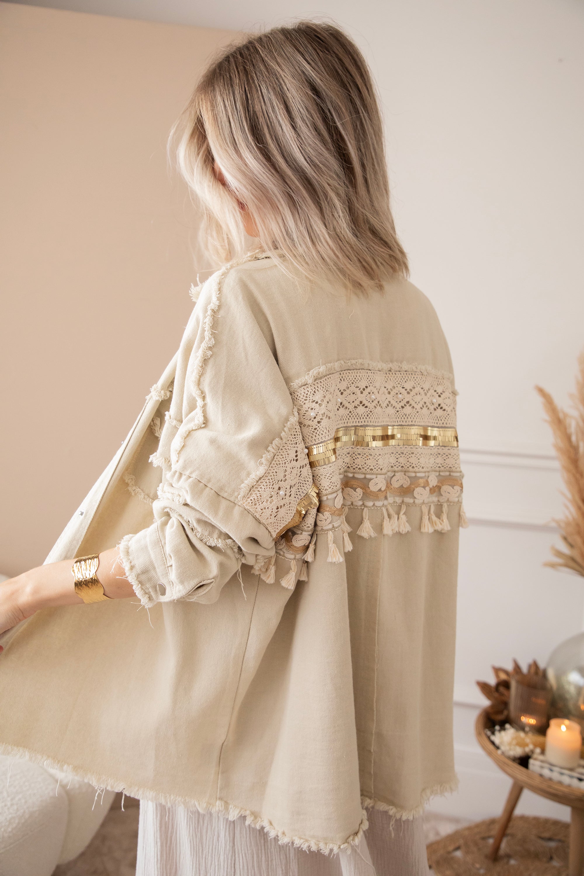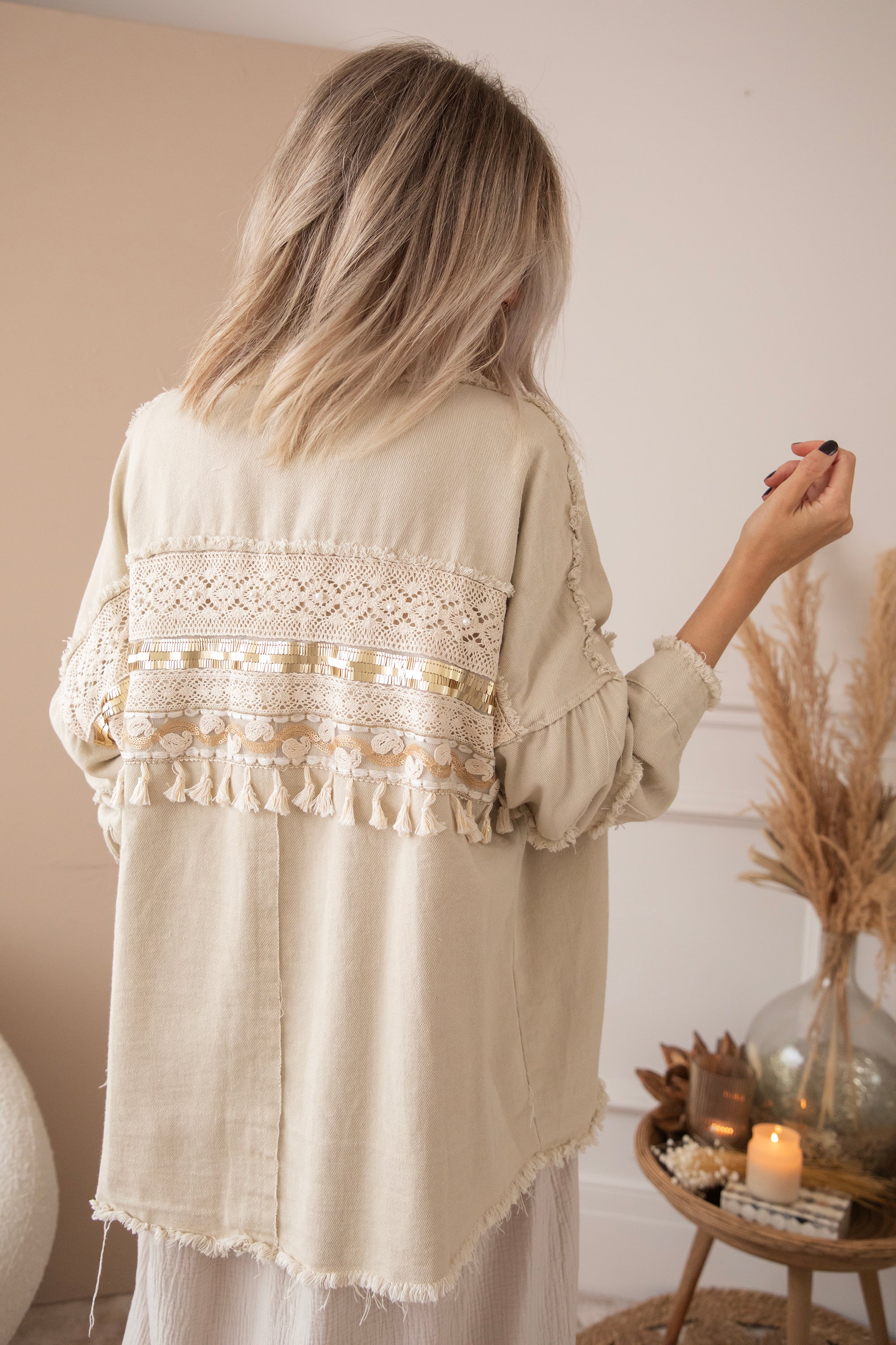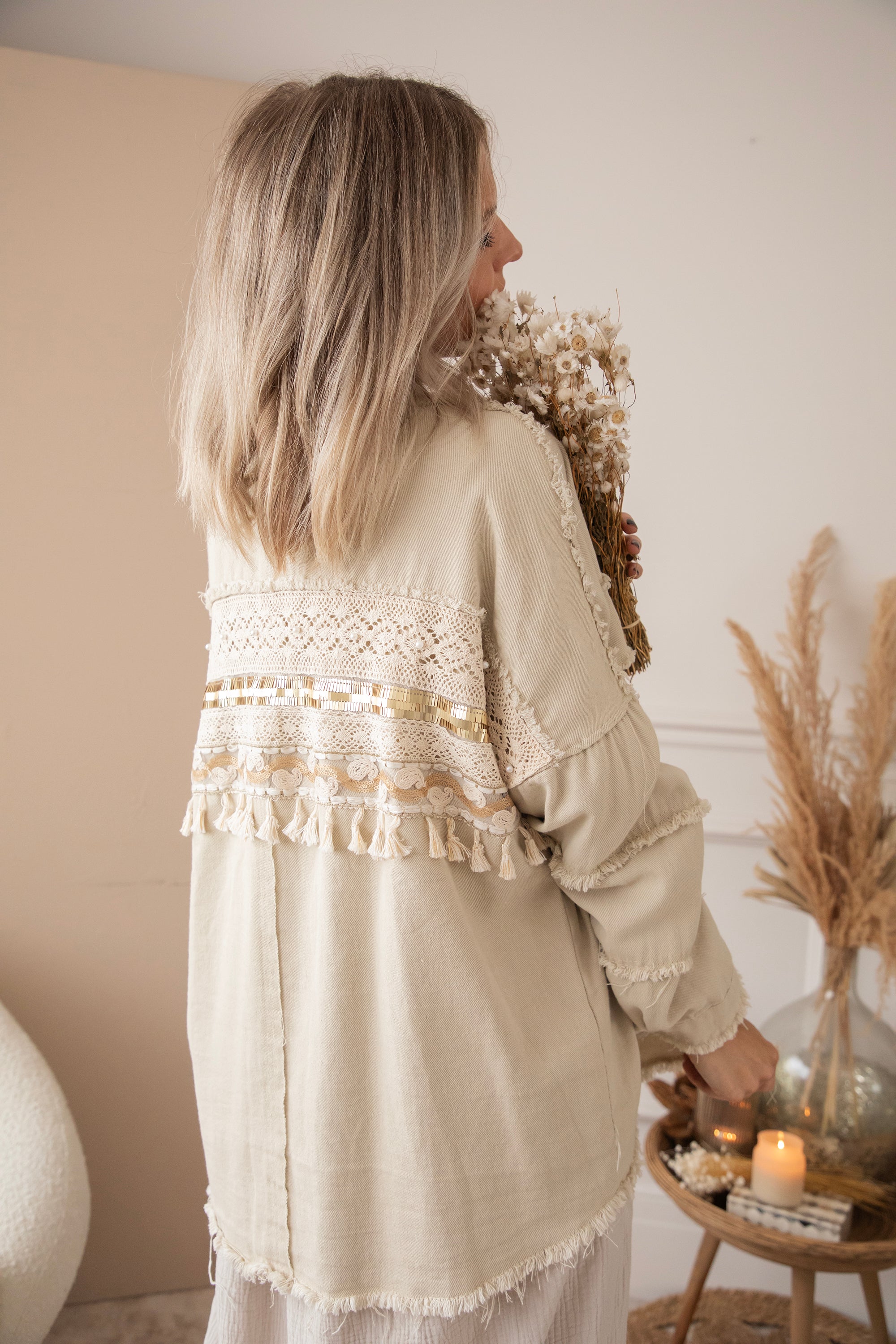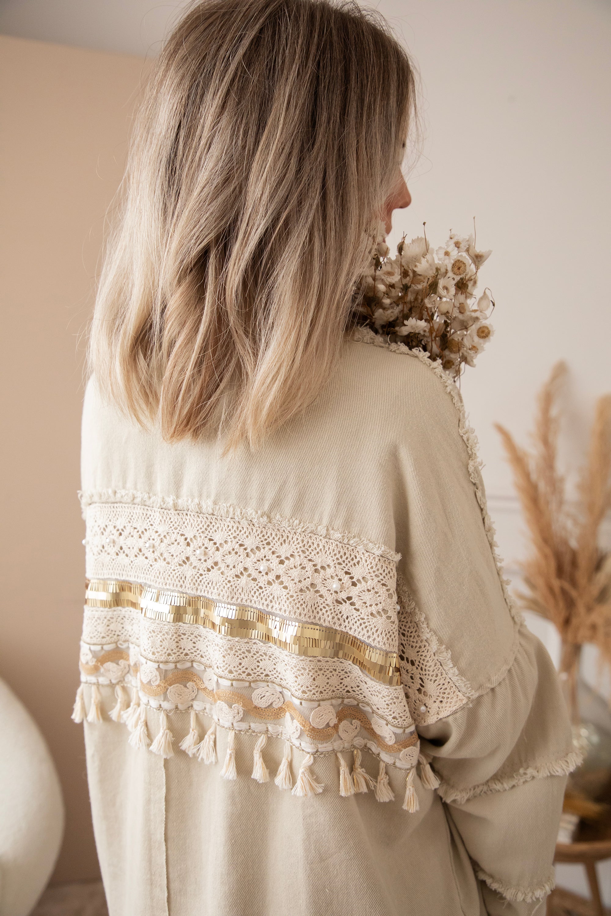 The ‘Boho Back’ jacket has been a staple in our shop for years! She'll always be our forever favorite 😍 Beige is always a winner! A soft color that you can wear every season, from summer to winter! The beautiful BOHO back, the oversized fit, and the comfortable fabric make this jacket a must-have item! Ideal as a layered piece over your basic tee or top 🎀