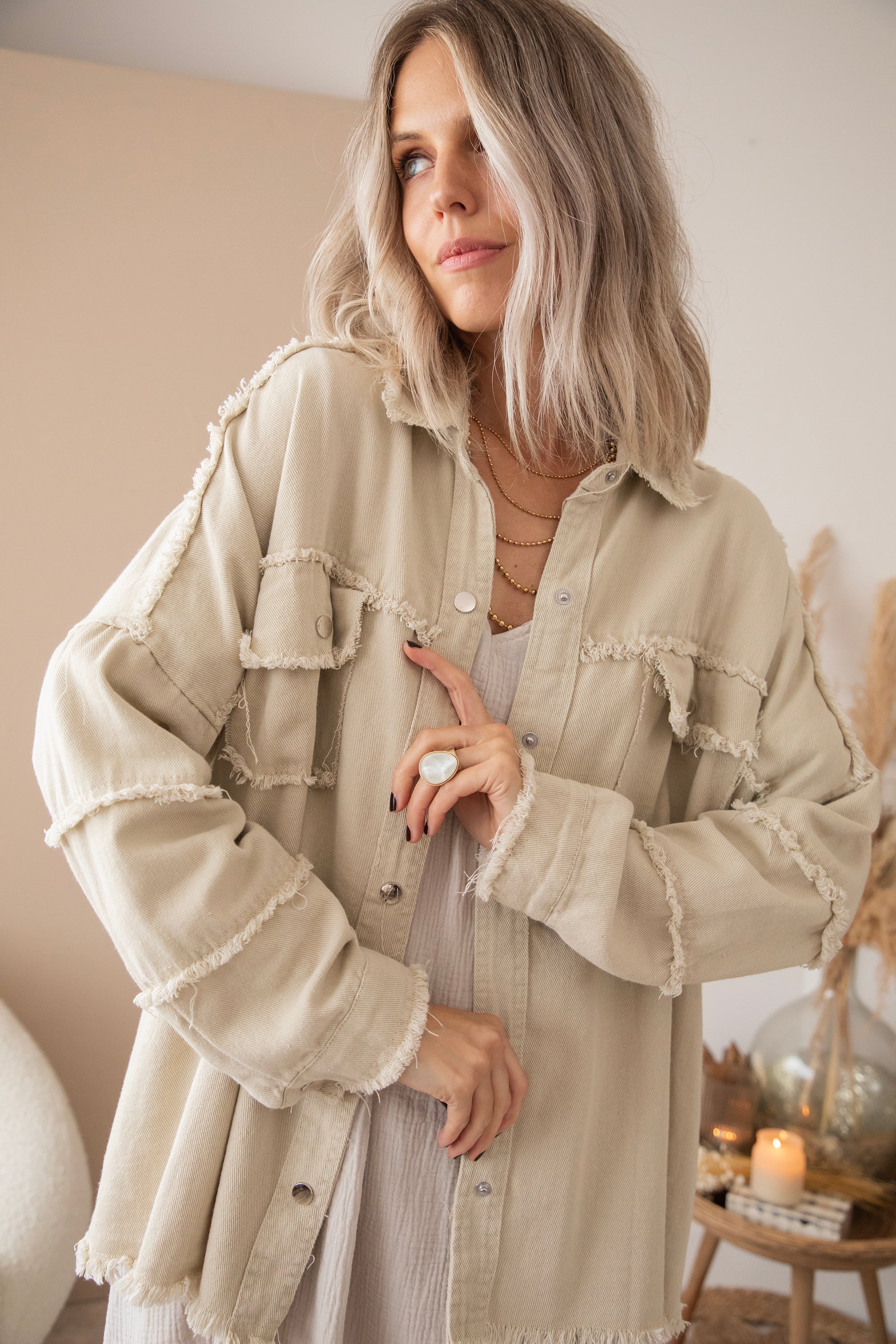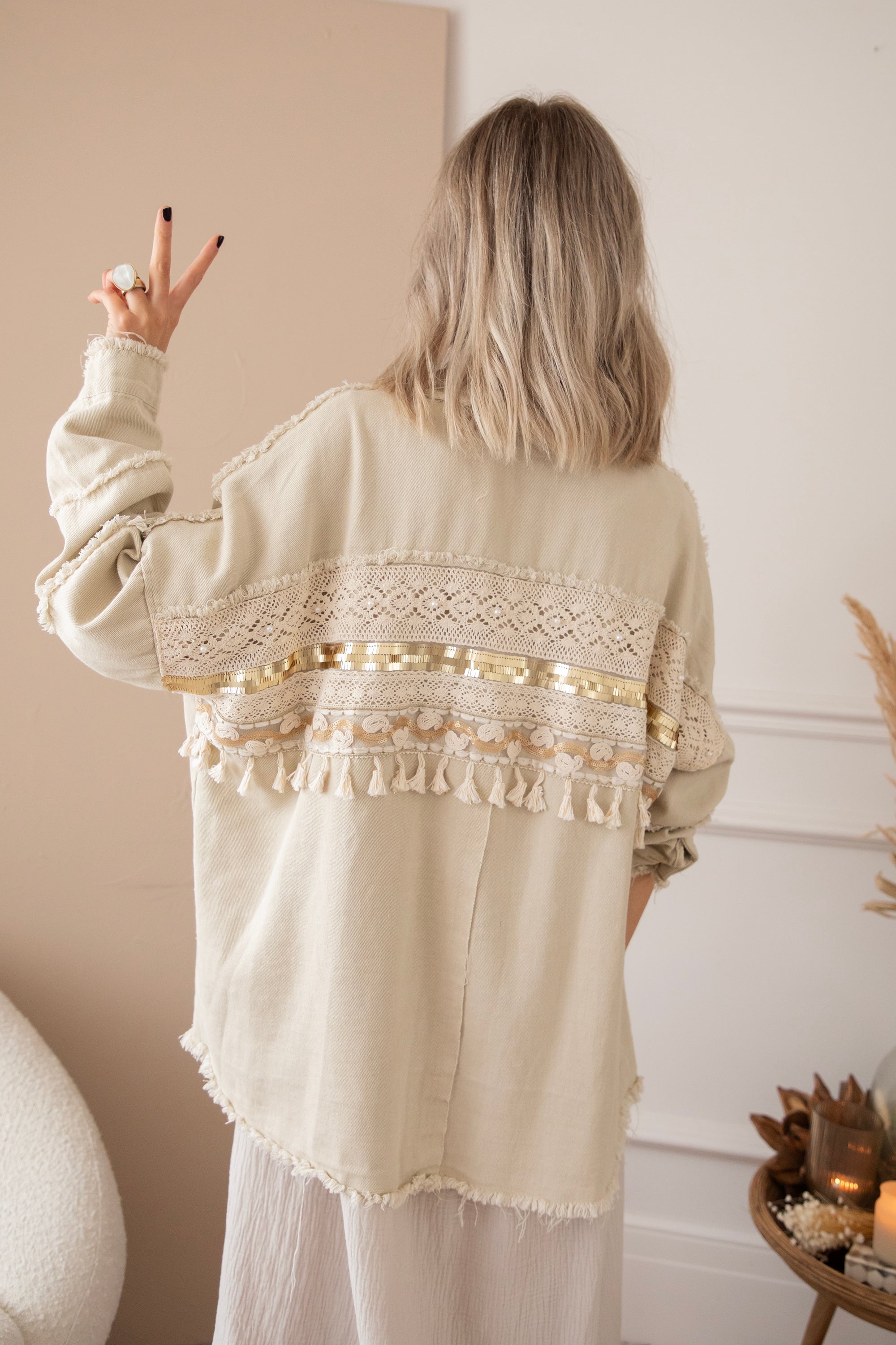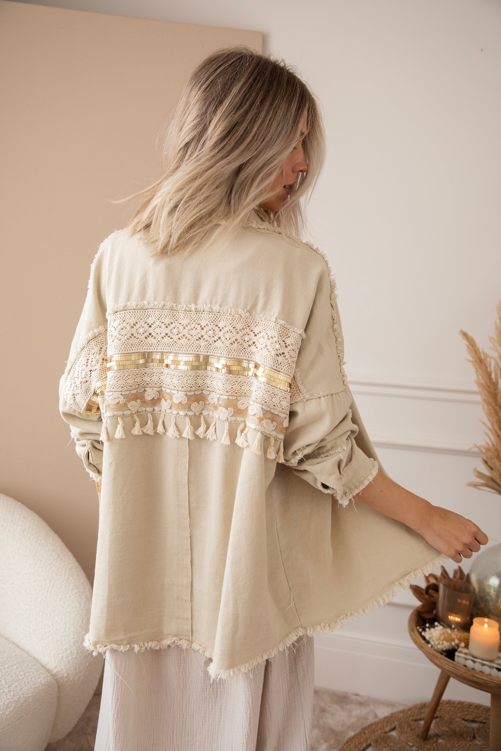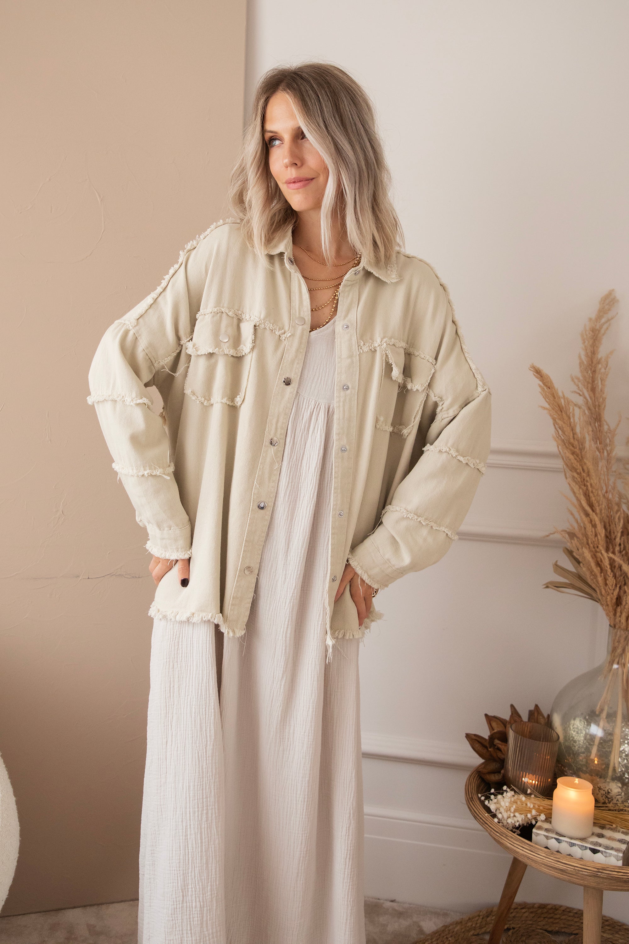 The ‘Boho Back’ jacket has been a staple in our shop for years! She'll always be our forever favorite 😍 Beige is always a winner! A soft color that you can wear every season, from summer to winter! The beautiful BOHO back, the oversized fit, and the comfortable fabric make this jacket a must-have item! Ideal as a layered piece over your basic tee or top 🎀