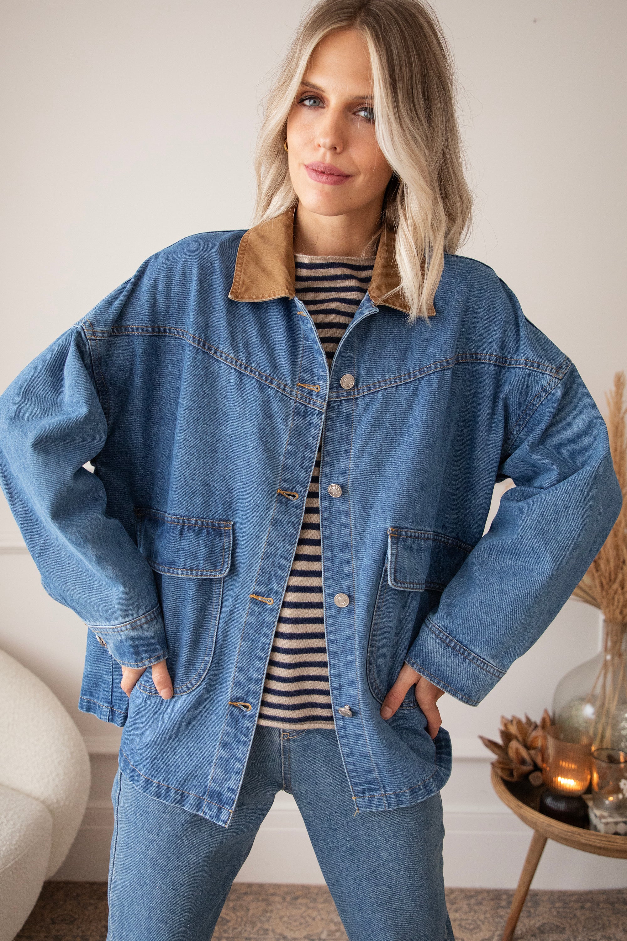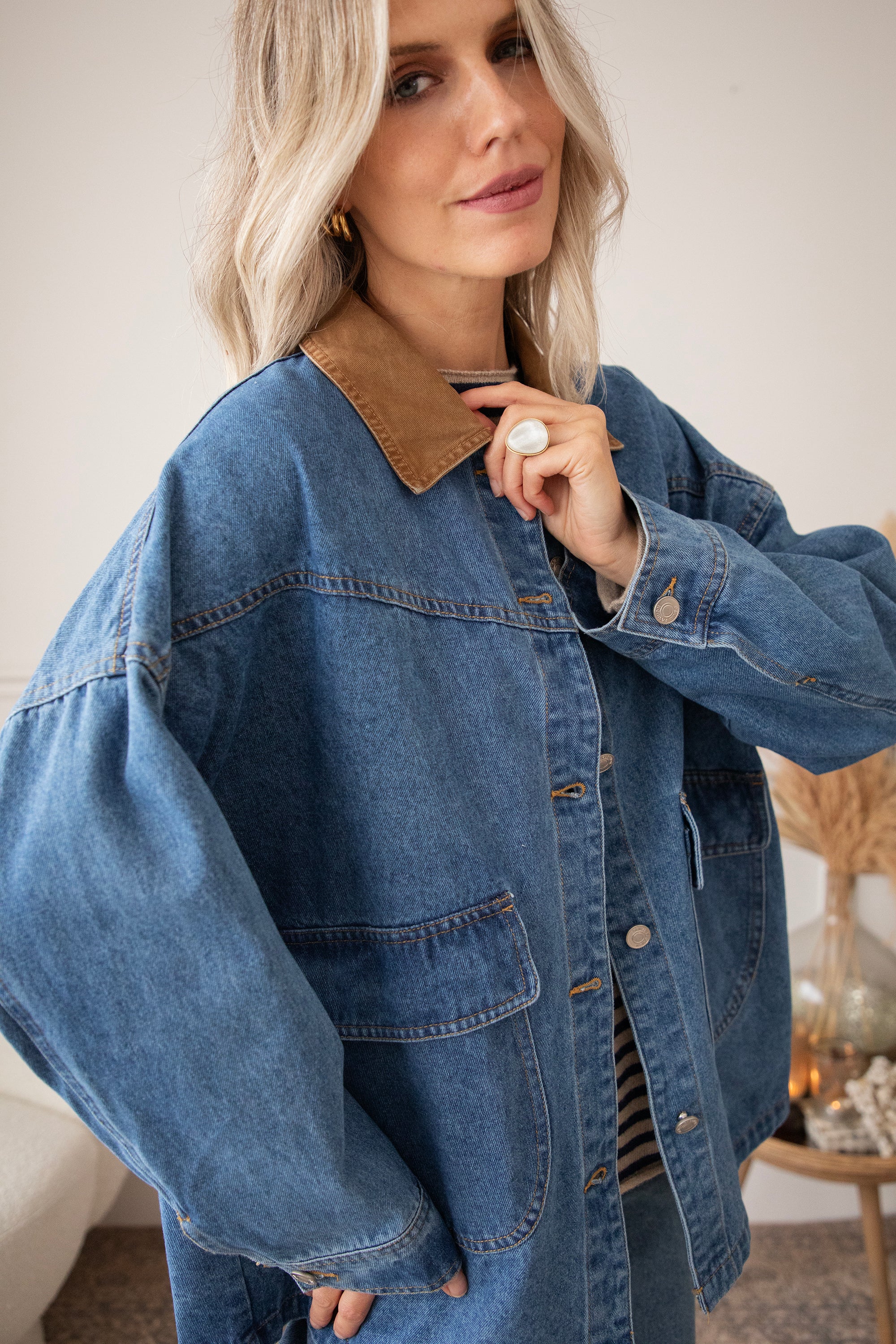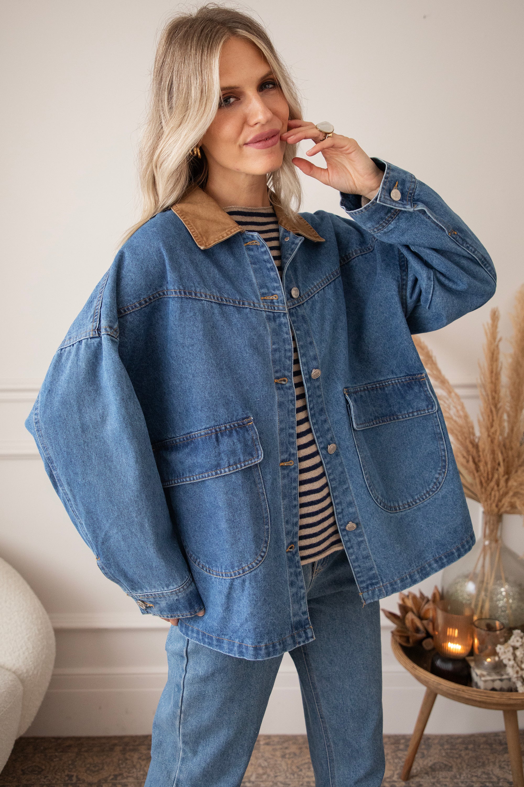 Oversized jackets are a must-have this season! Charly Jean stands out with its camel-colored collar and is the perfect companion for the first chilly autumn months 😍 It's so nice that you can wear a thick sweater underneath! Personally, I think it has a bit of a cozy lumberjack shirt vibe 🪵 And for those who prefer a slightly darker color, it also comes in brown!