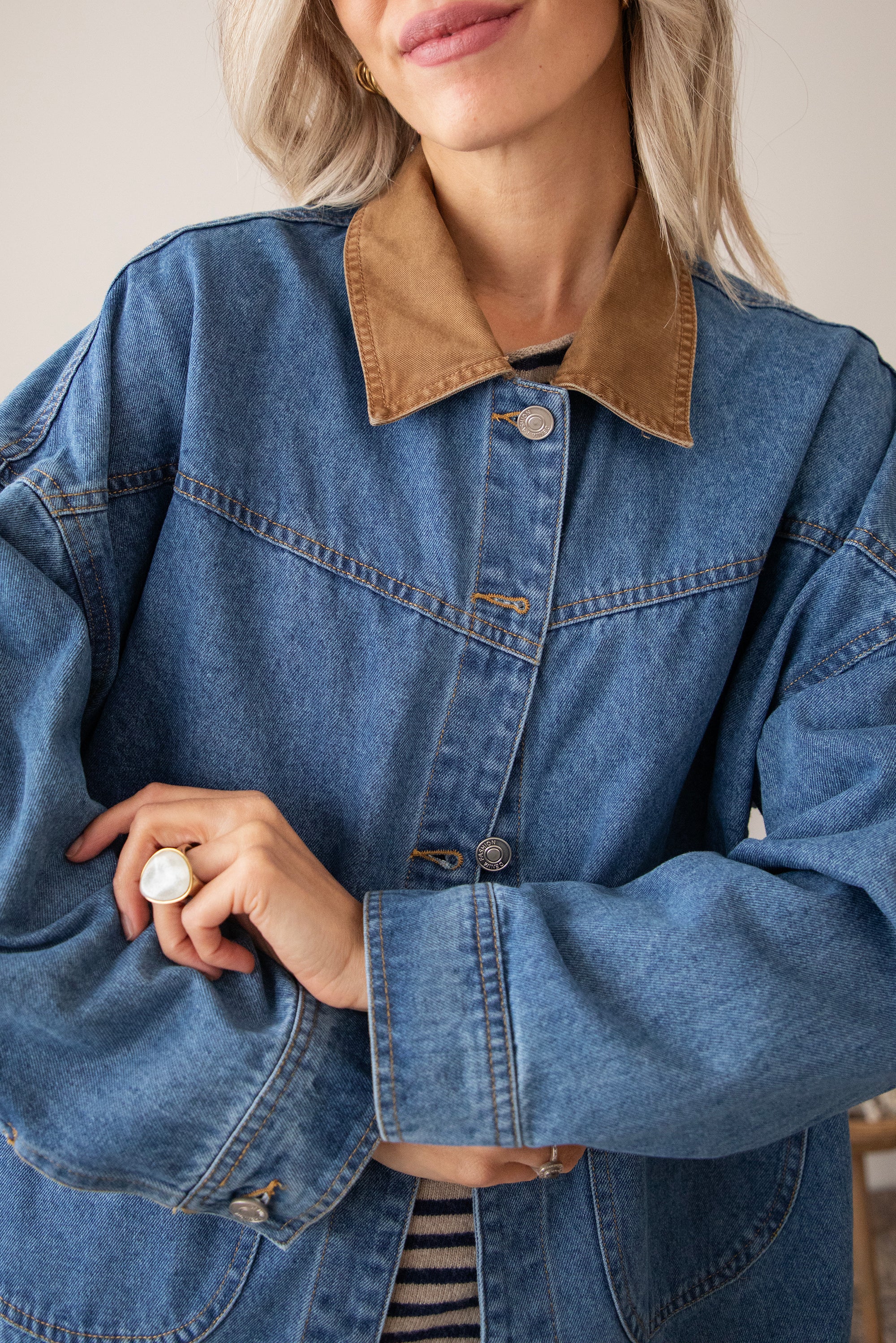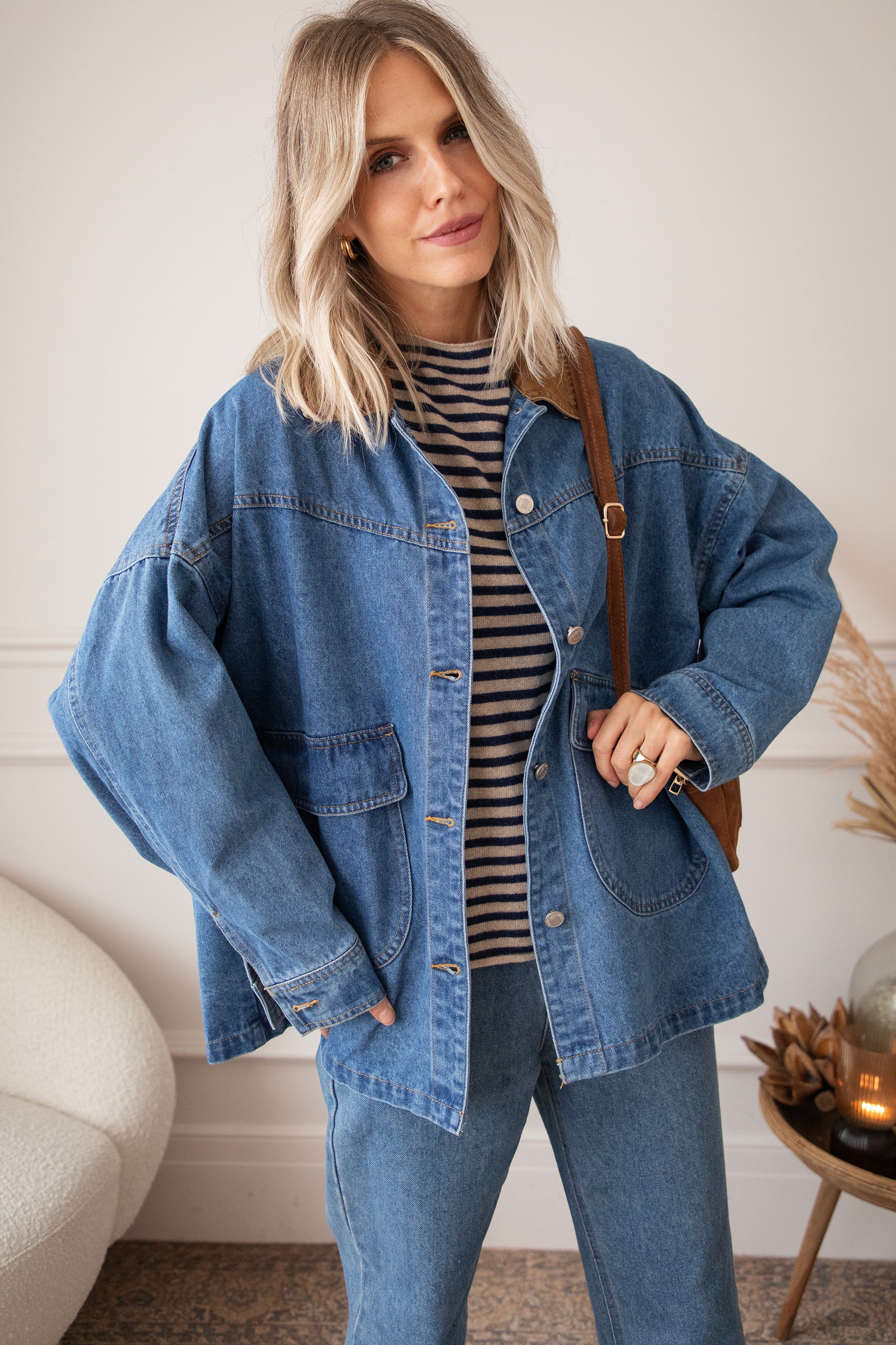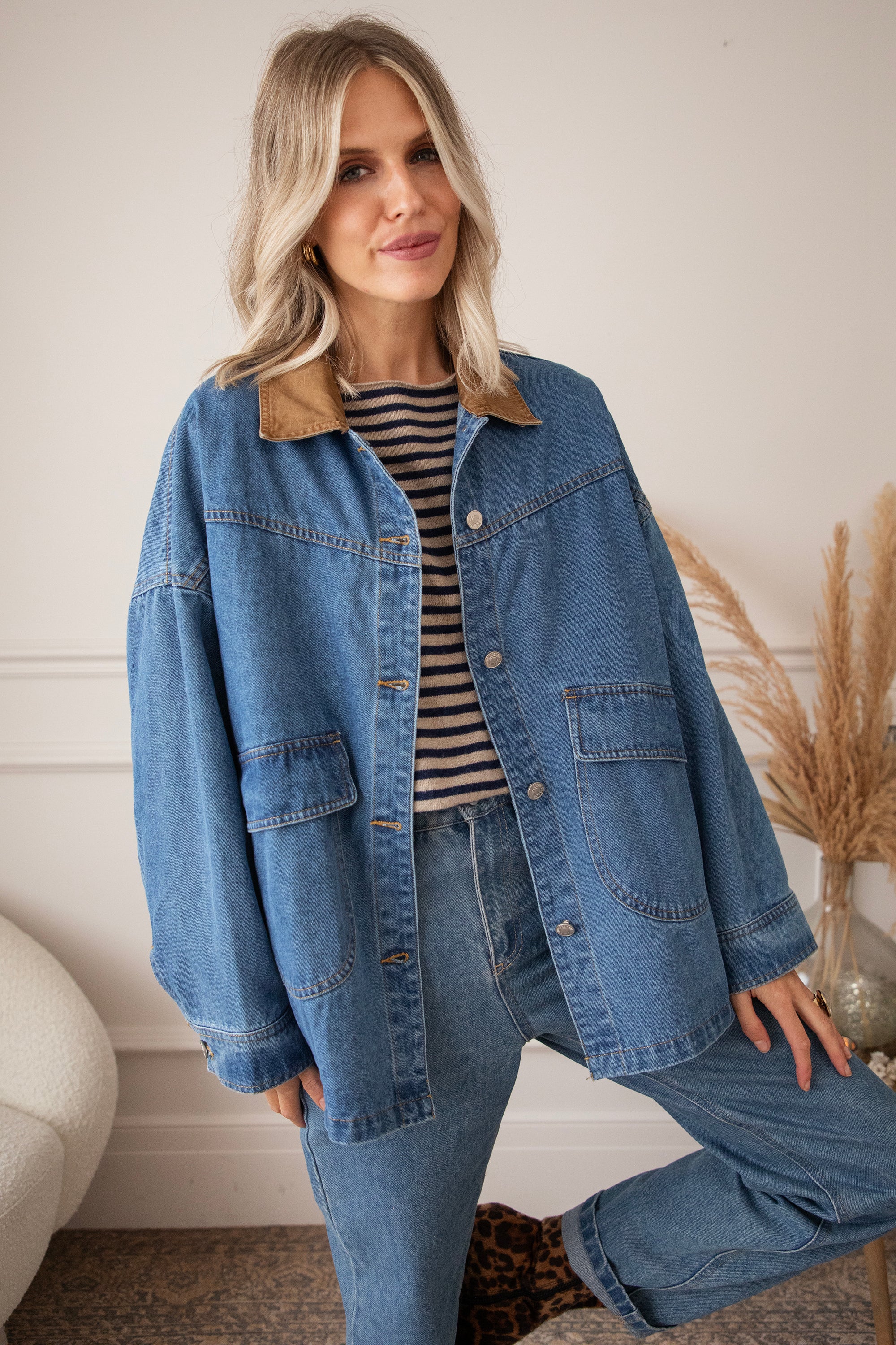 Oversized jackets are a must-have this season! Charly Jean stands out with its camel-colored collar and is the perfect companion for the first chilly autumn months 😍 It's so nice that you can wear a thick sweater underneath! Personally, I think it has a bit of a cozy lumberjack shirt vibe 🪵 And for those who prefer a slightly darker color, it also comes in brown!