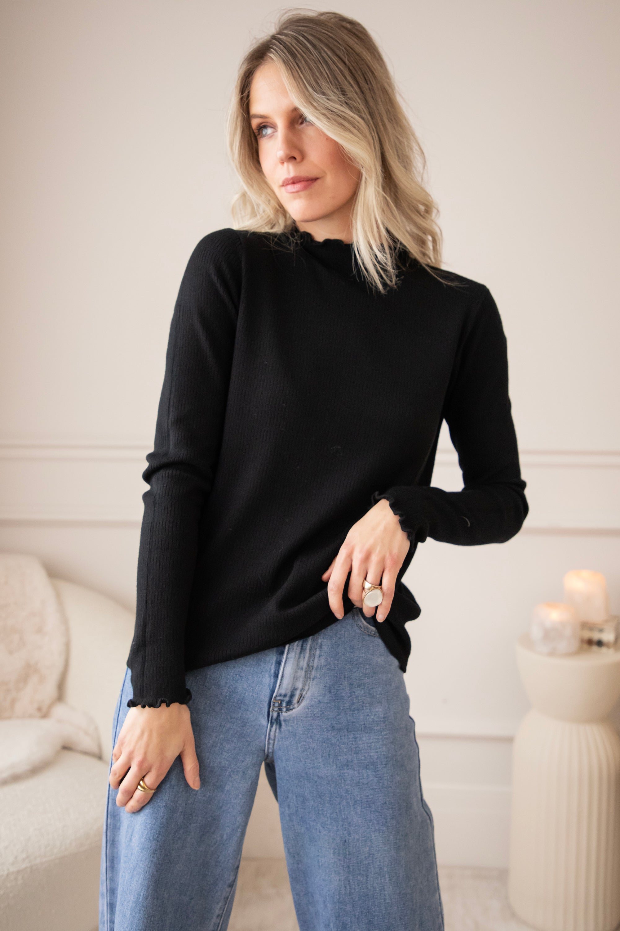 The Cute Collar Ruches are such great basics thanks to their solid color, higher collar, super-fine stretch, and ease of pairing π What characterizes them are the subtle ruffles on the collar and sleeve ends π€
