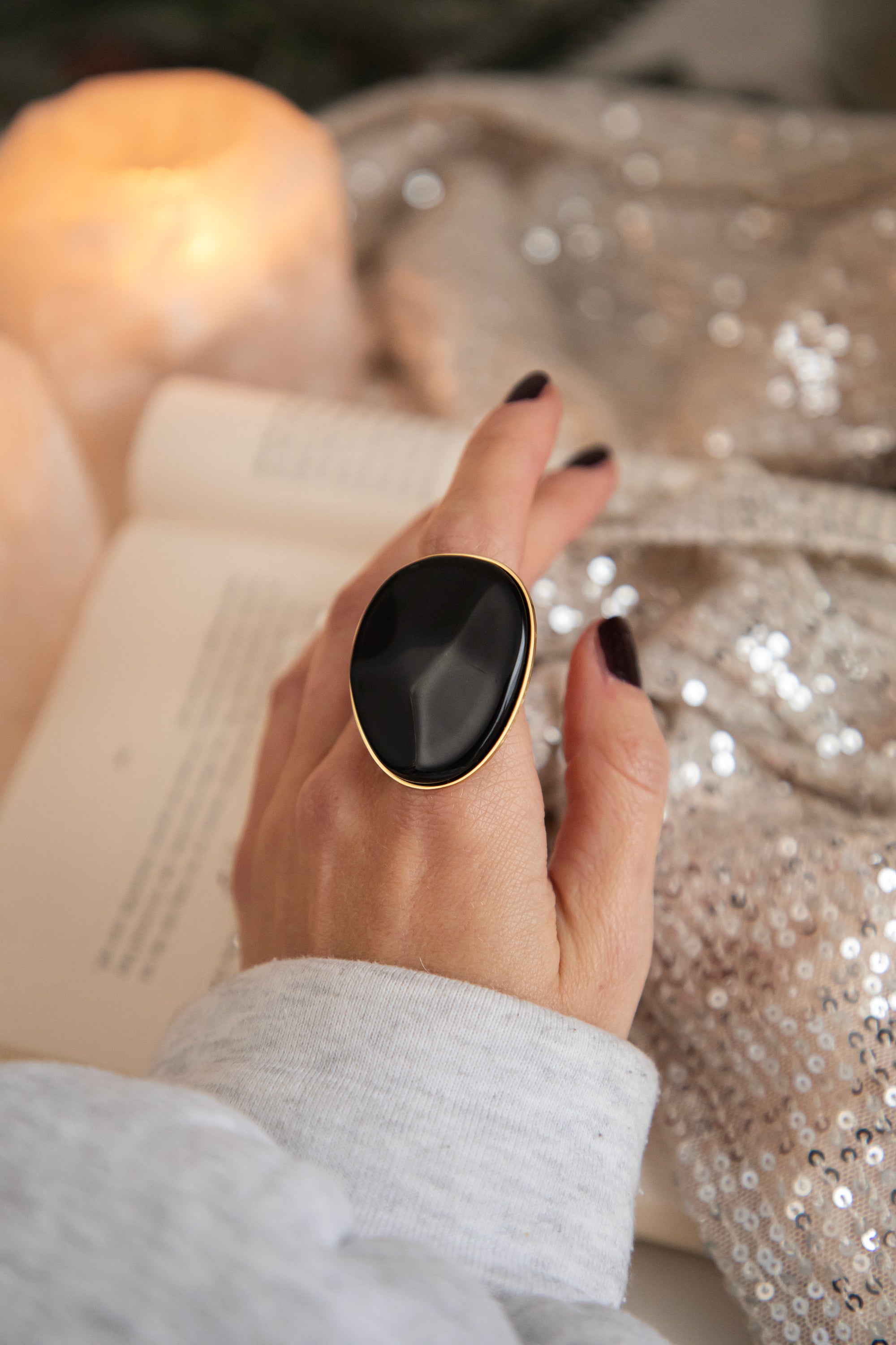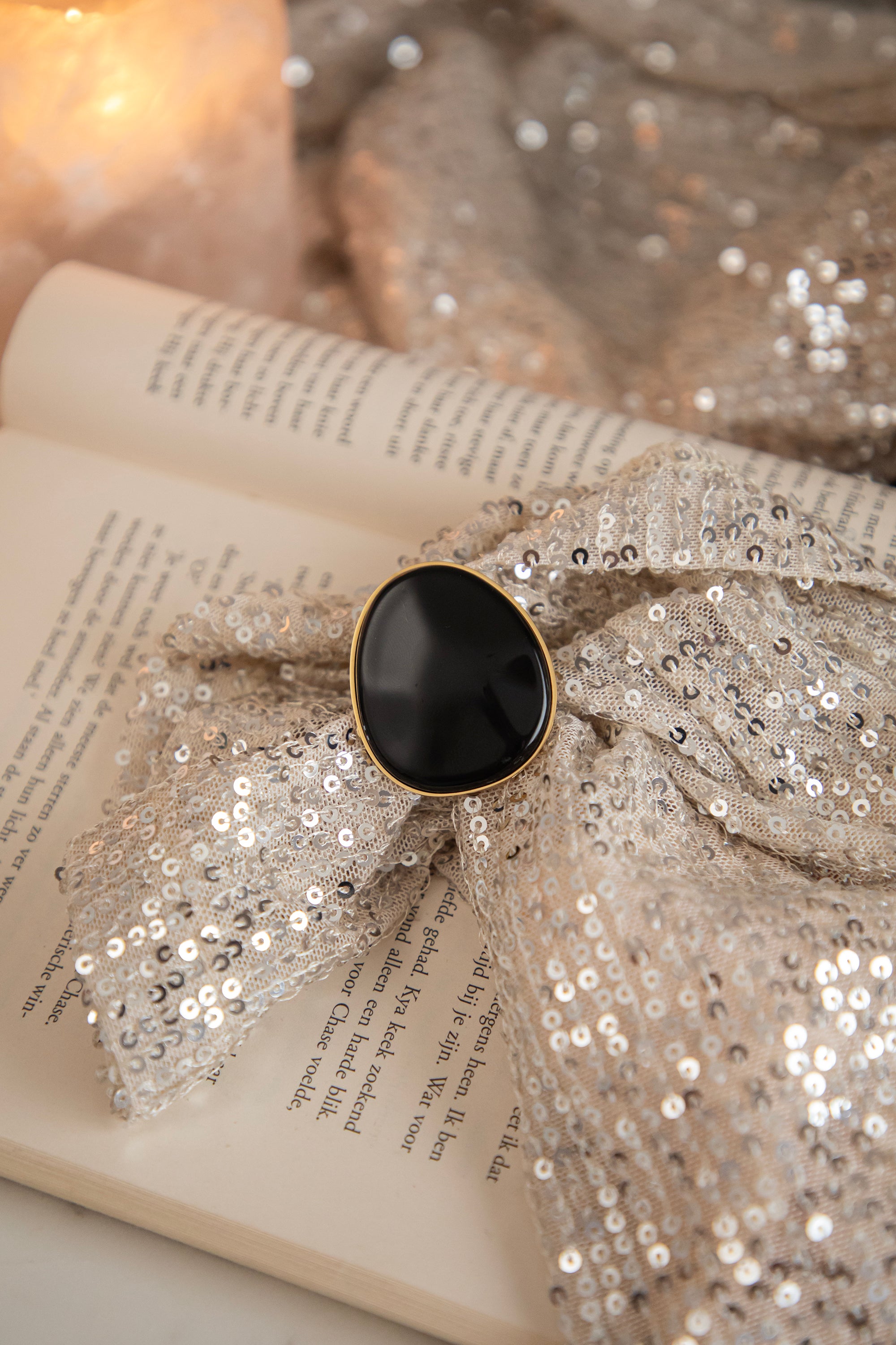 Yaaaay, if there's one ring I love to wear more than any other, it's Caia 🖤 I wear it almost every day and it will always remain in our collections because it's just so lovely! This larger version is timeless, classy, and super easy to combine with all your outfits. The black stone is a real combination winner, with beautiful color shades and even a touch of sparkle ✨ It is slightly raised and has a striking shape that gives every look that little bit extra.