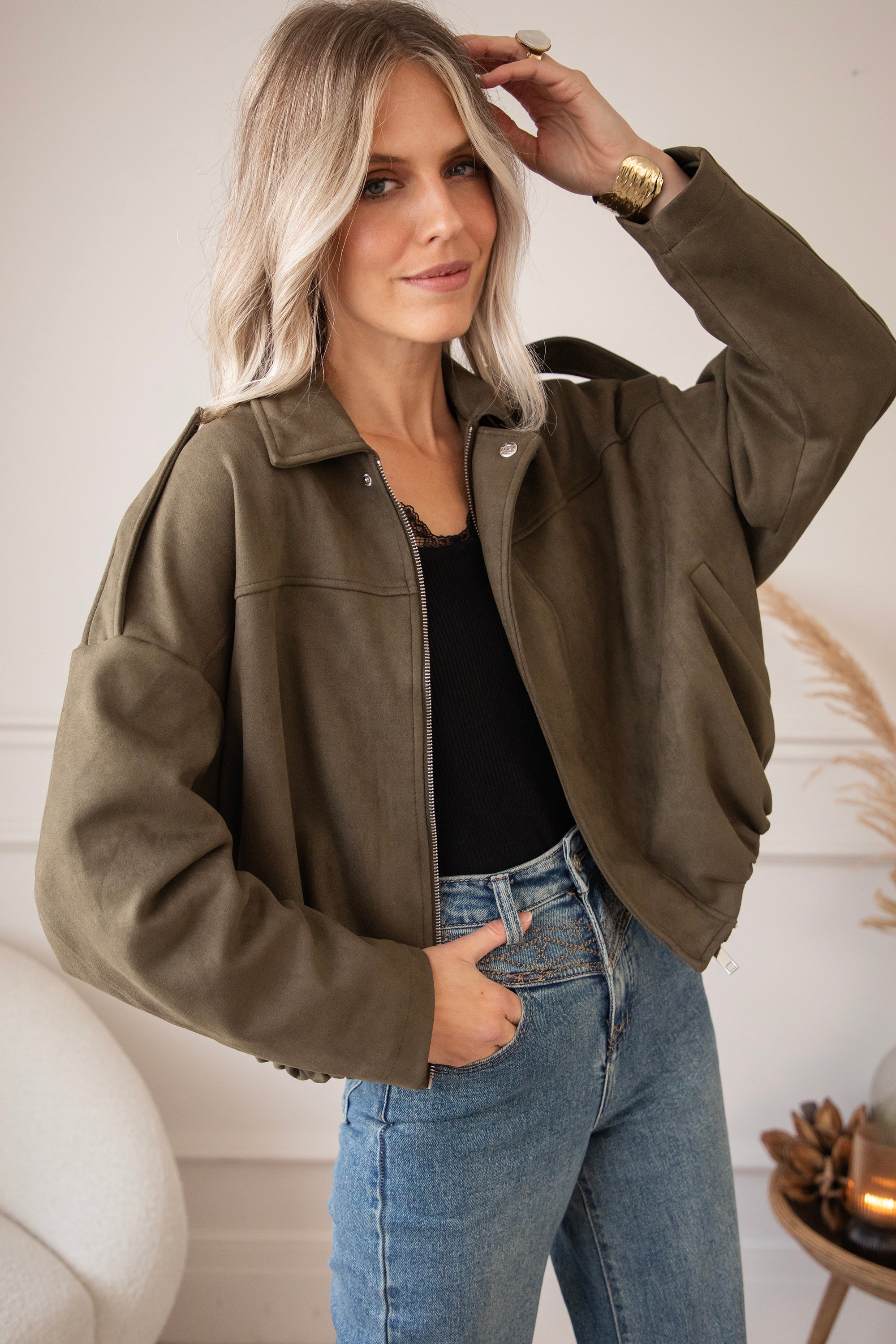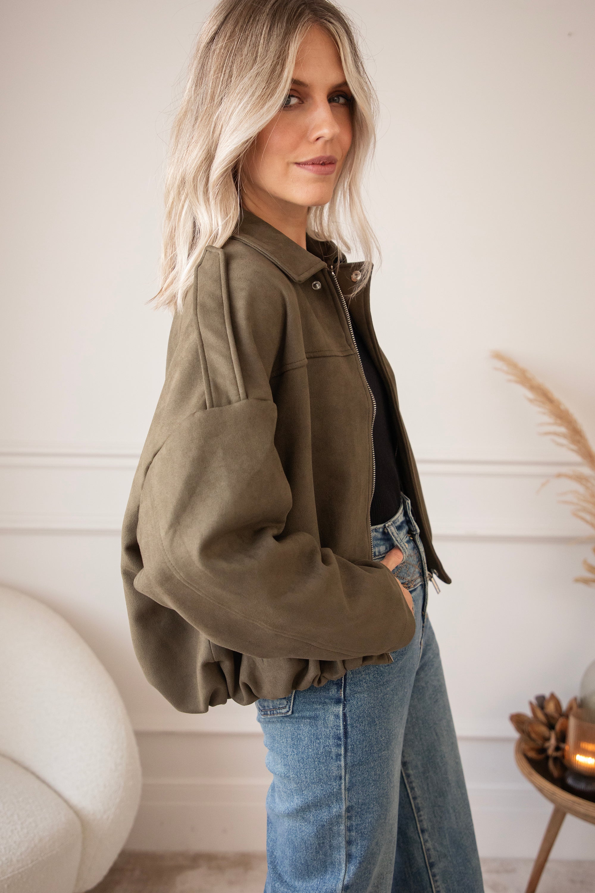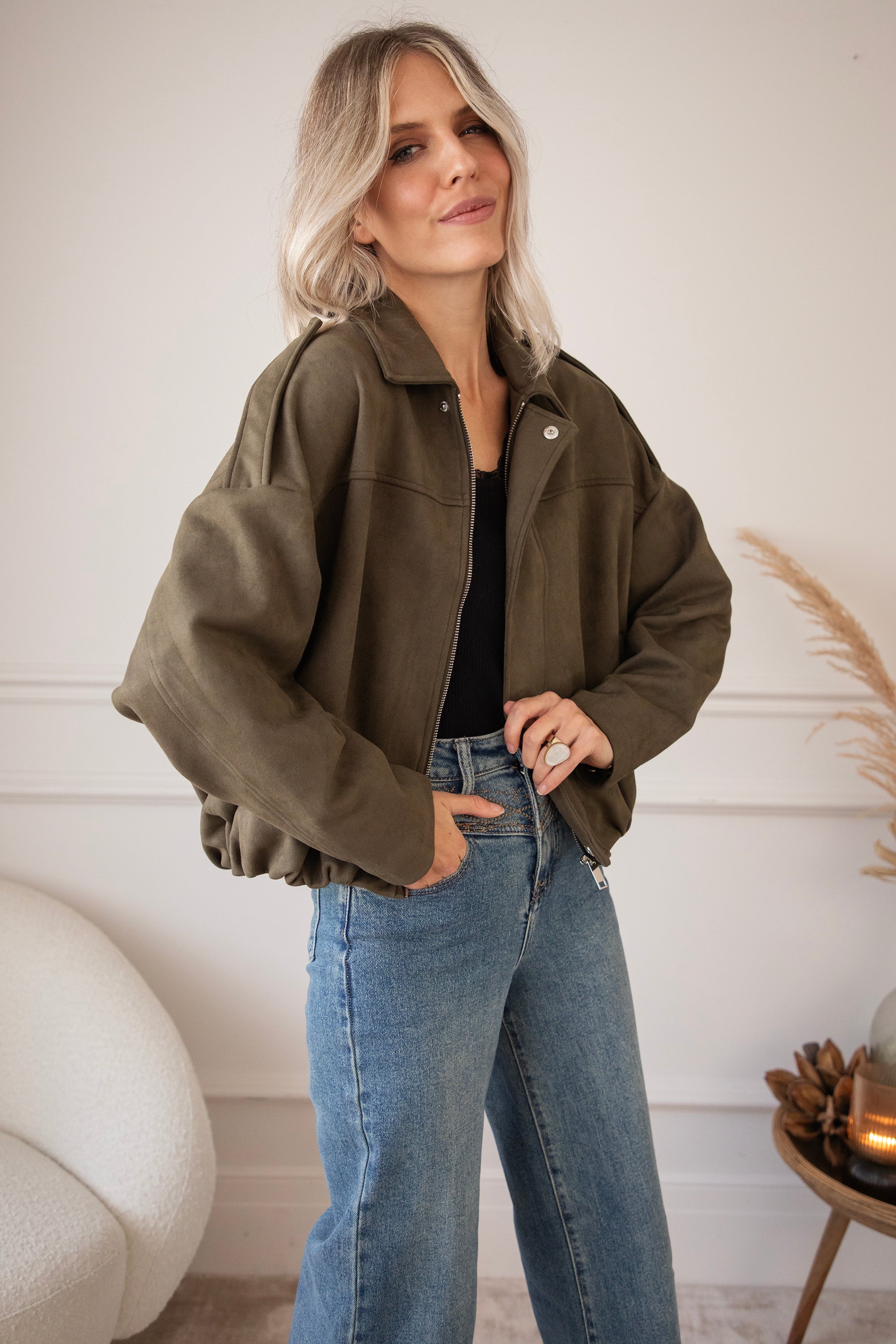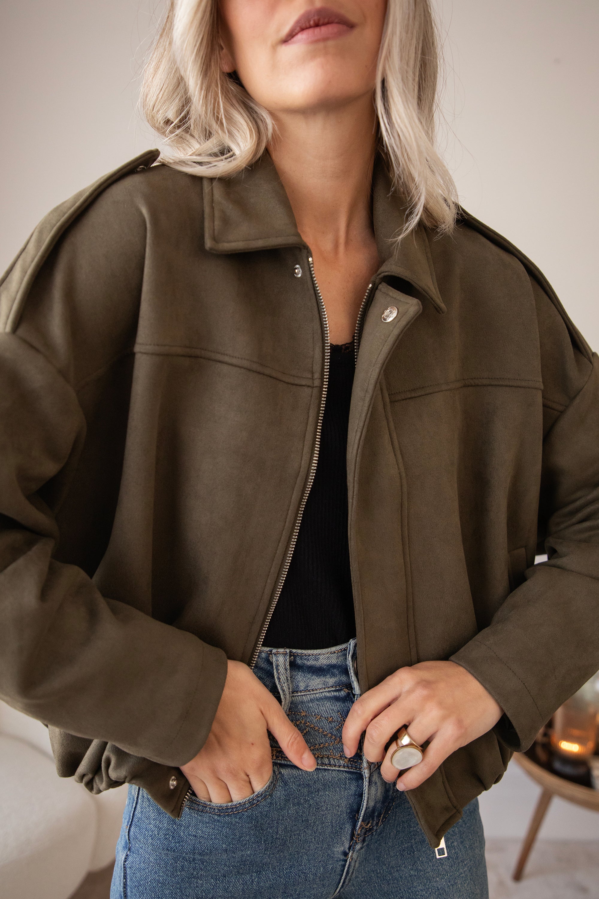 The most sought-after outerwear trend for fall/winter 2025? Yep... the bomber jacket is back! 🤎 Think cool '80s vibes, but with a modern twist: faux leather or suede, oversized, and totally cozy. Just how we like it! This gem—the Marlow—has stolen my heart with its autumnal forest green color 🌲 Suede jackets are so popular this season, and trust me: the bigger, the better!