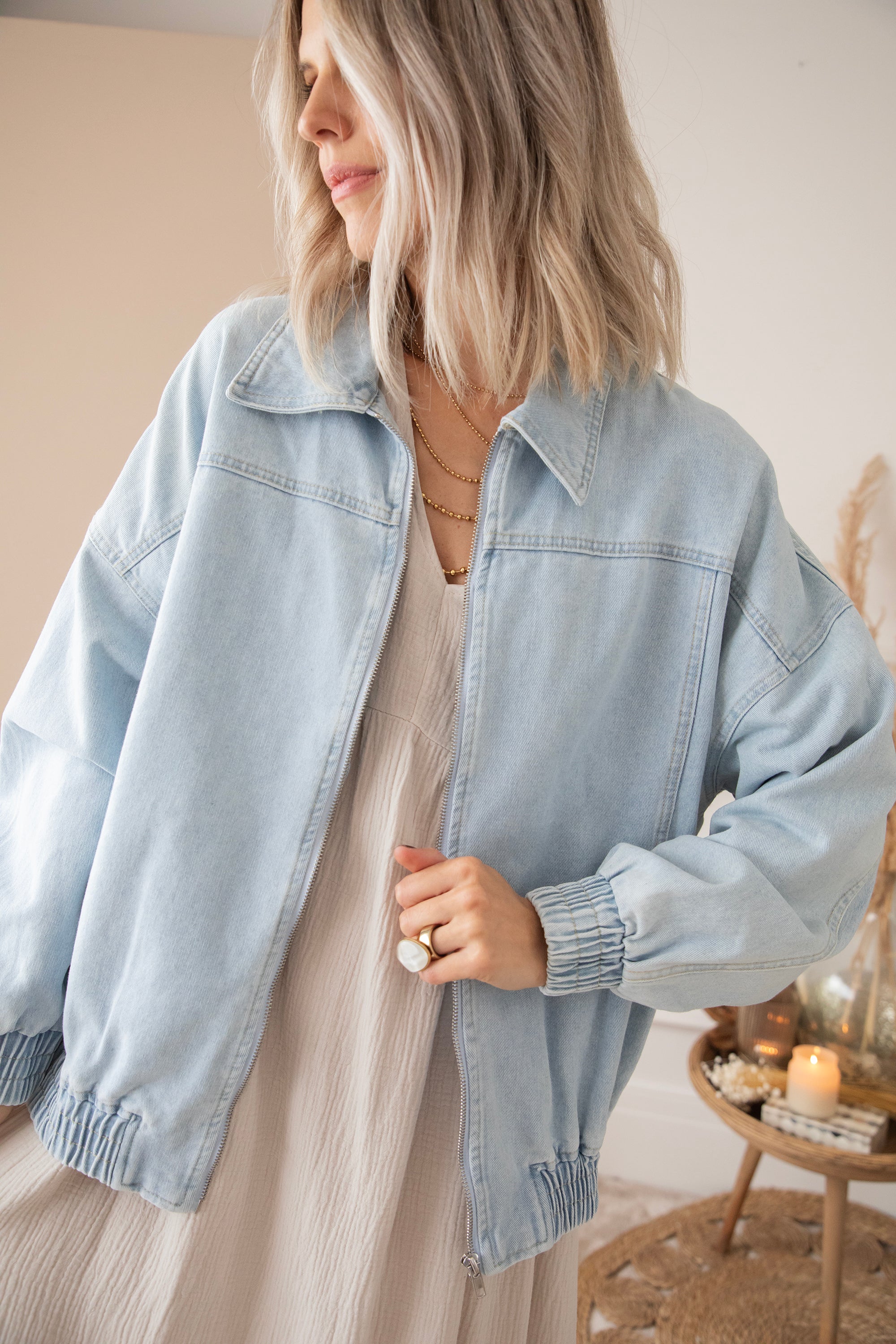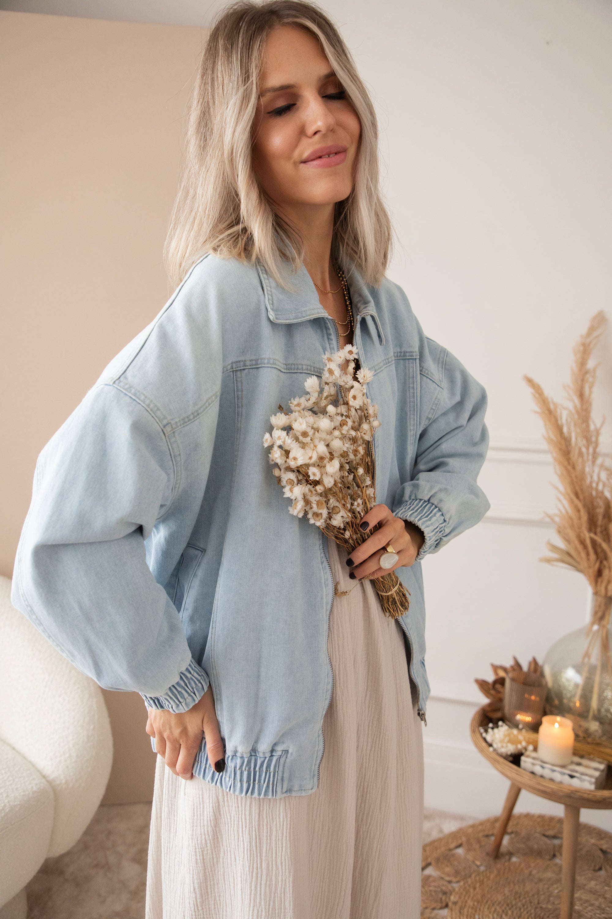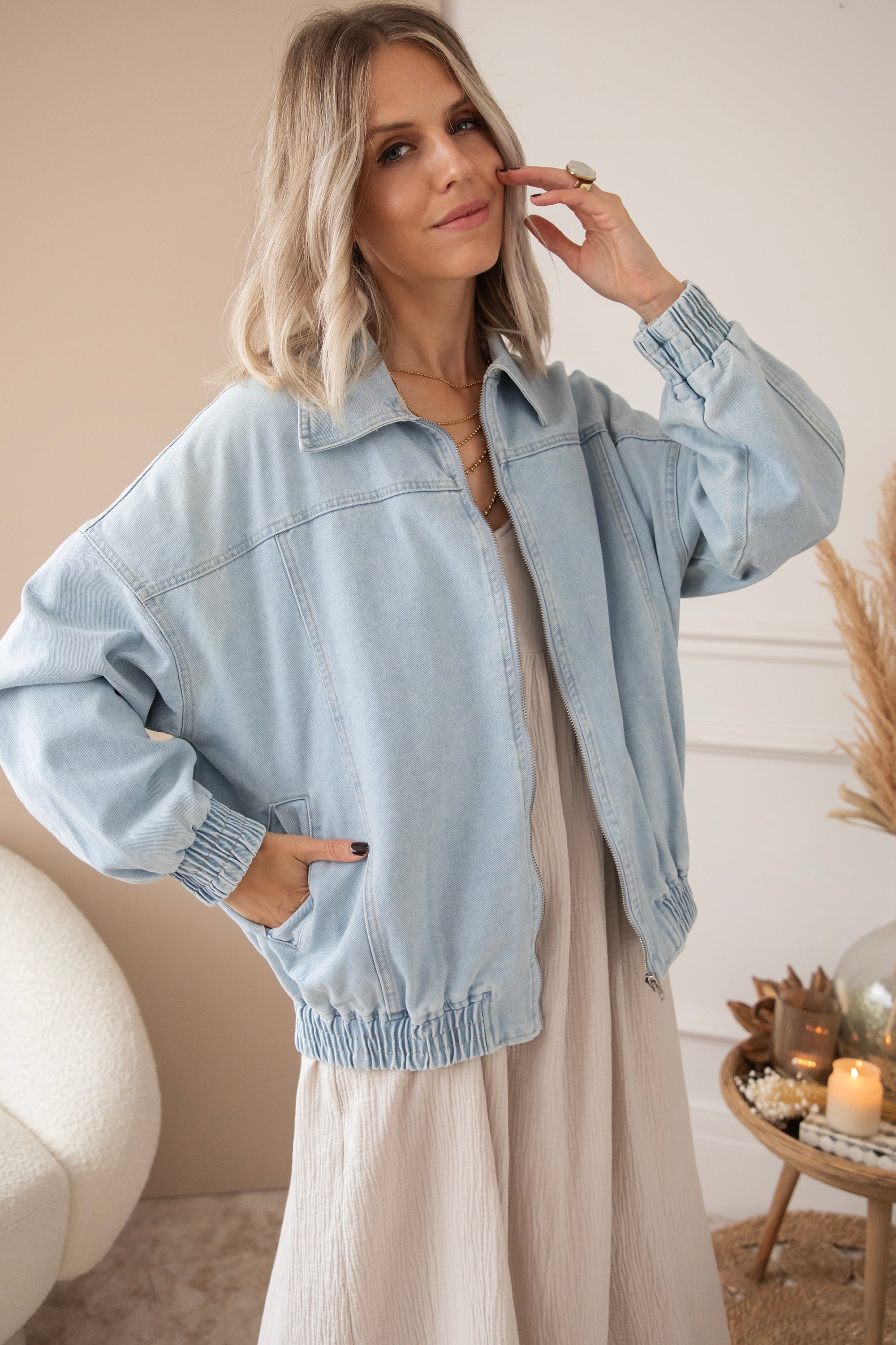 The bomber fit creates a casual, playful look, with an elasticated hem that fits nicely. The silver-colored zipper and side pockets that are seamlessly integrated into the design complete the look ✨