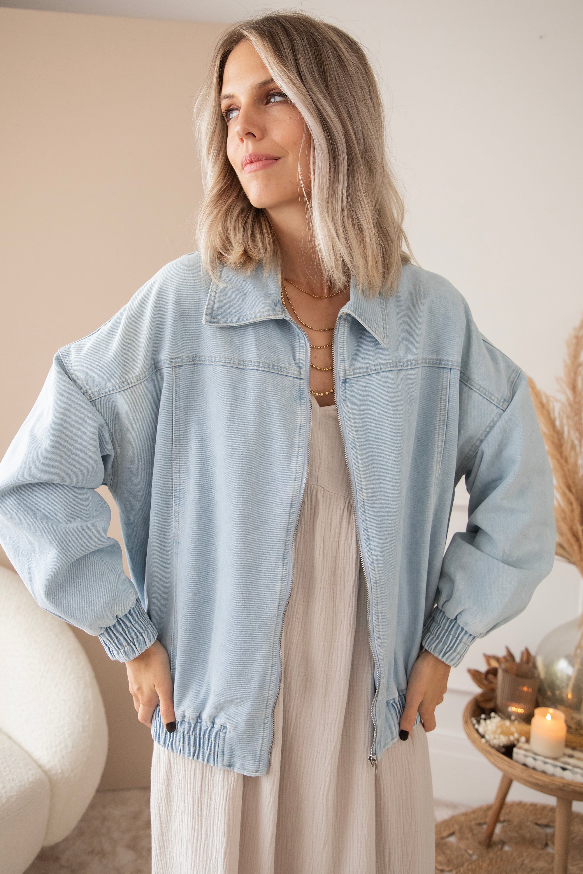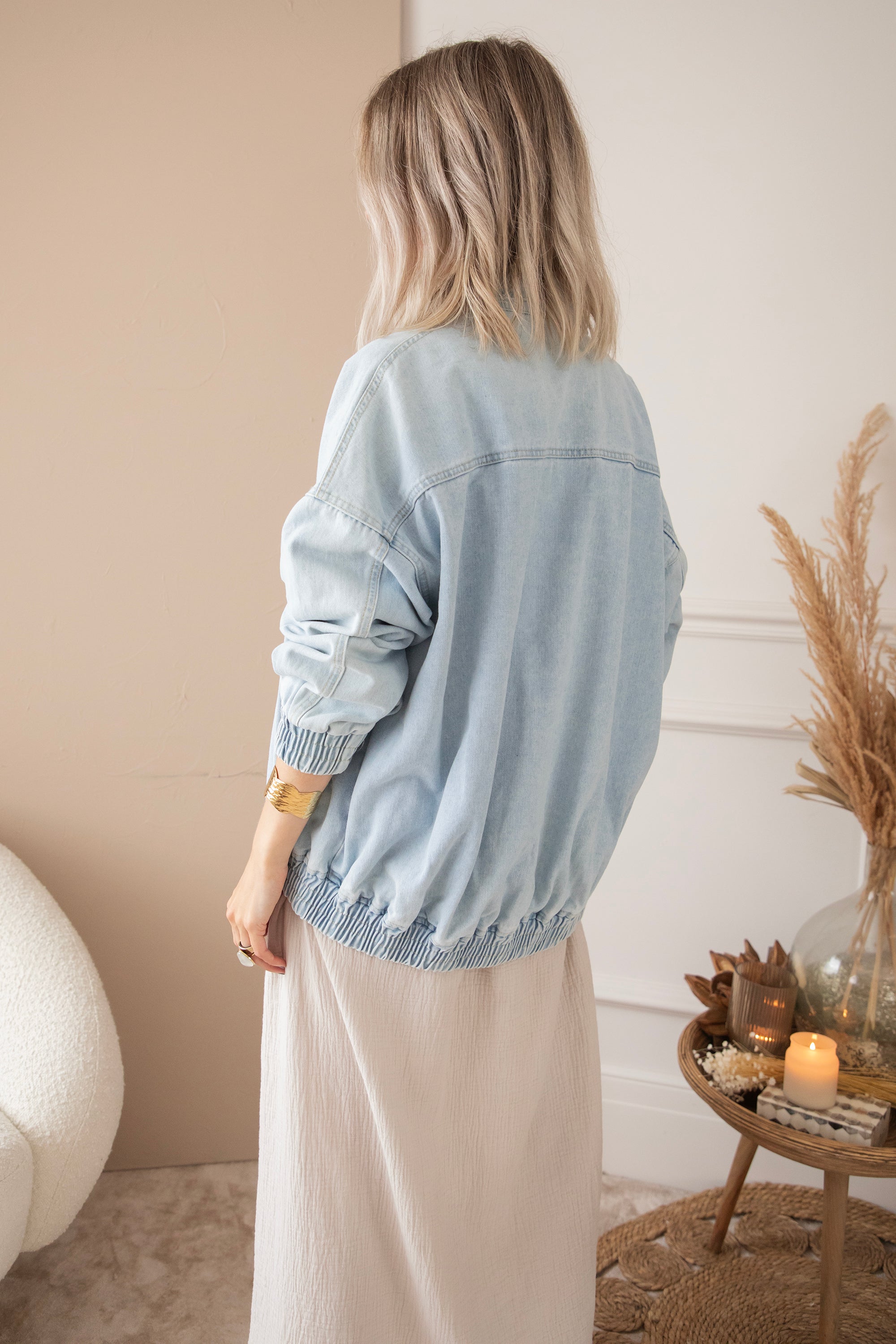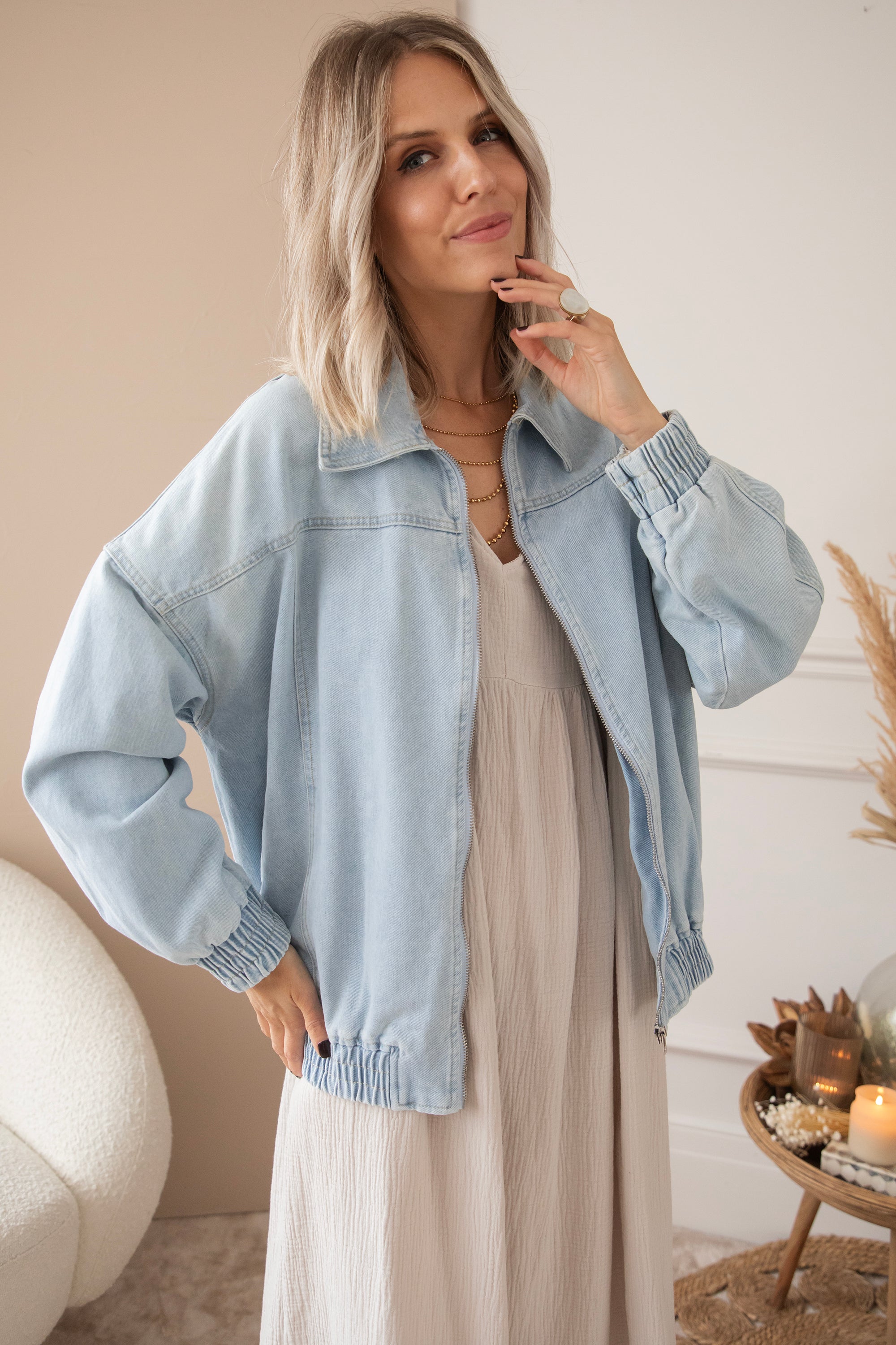 The bomber fit creates a casual, playful look, with an elasticated hem that fits nicely. The silver-colored zipper and side pockets that are seamlessly integrated into the design complete the look ✨