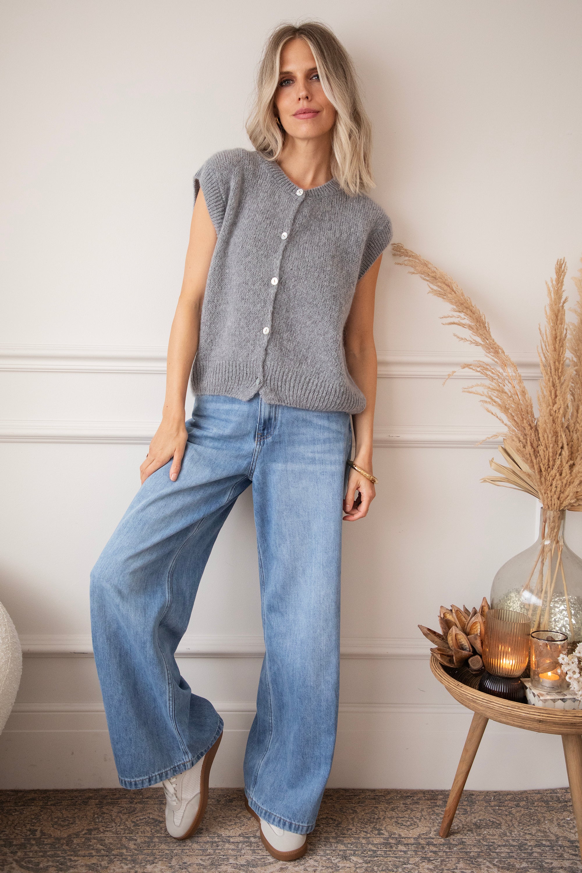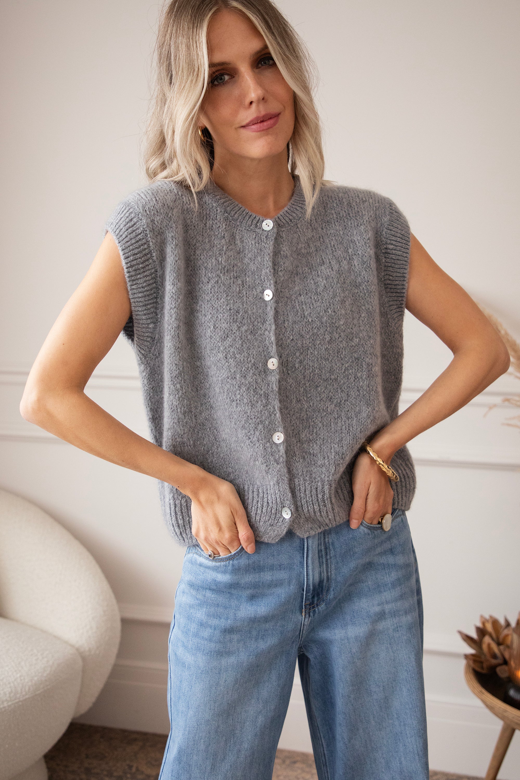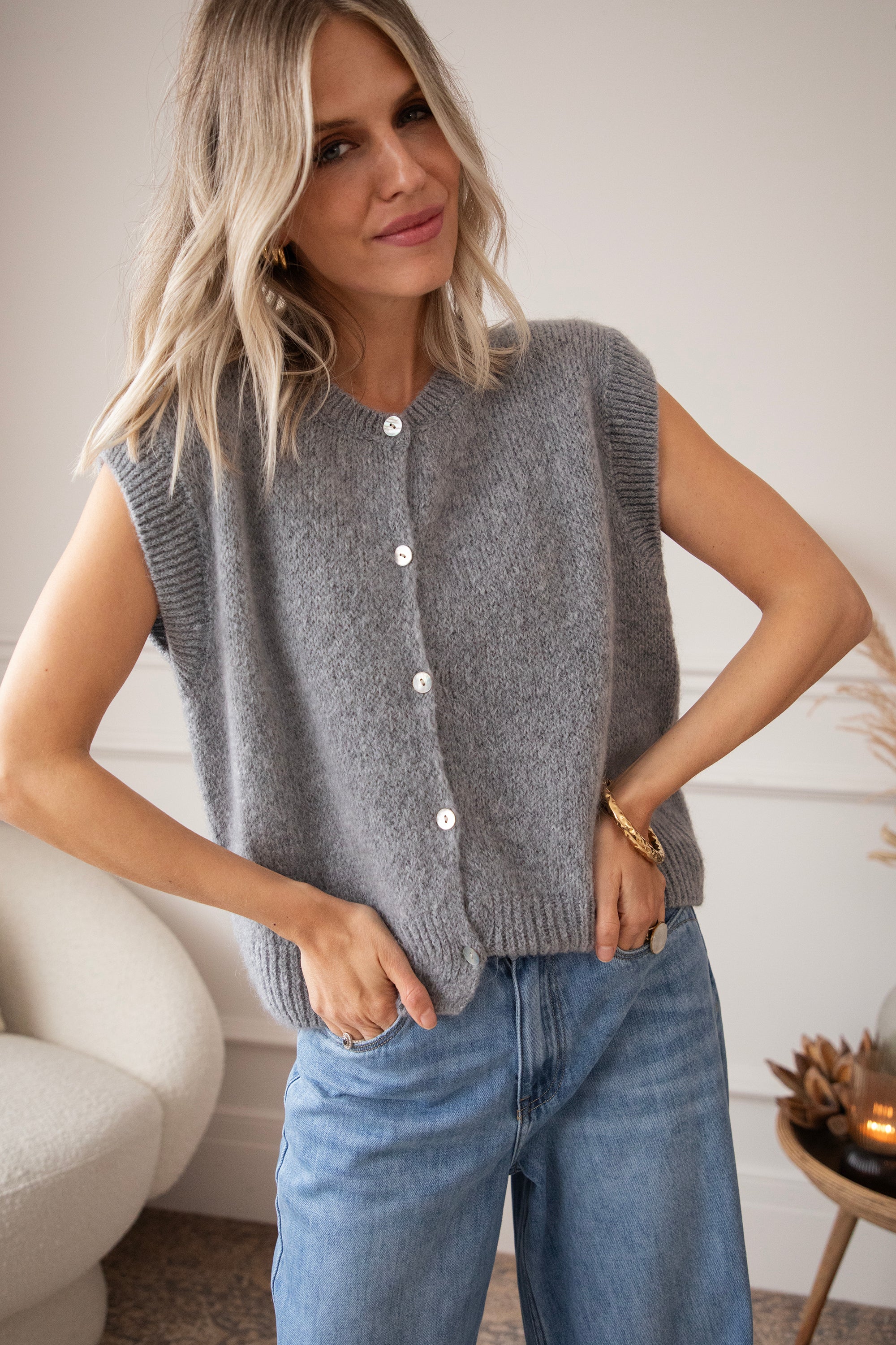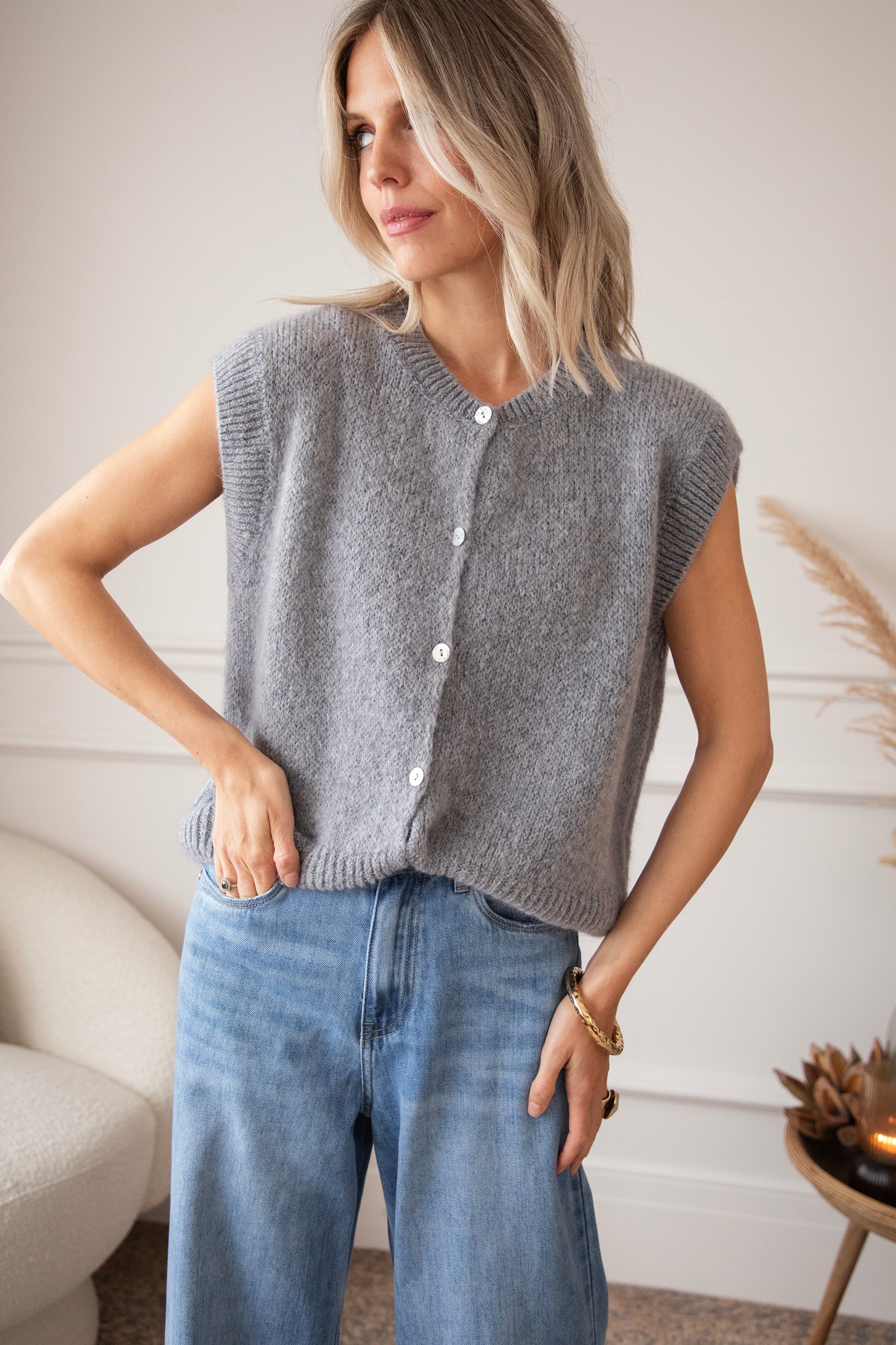 Debardeurs... they instantly bring pure nostalgia to your wardrobe 😊 They have that typical preppy look, a touch of retro and at the same time completely back in fashion. It's such a comfy piece that still looks classy, especially this one with its cute row of pearly buttons ✨ The 30% mohair makes it extra warm and cozy, perfect for diving into the fall season!
