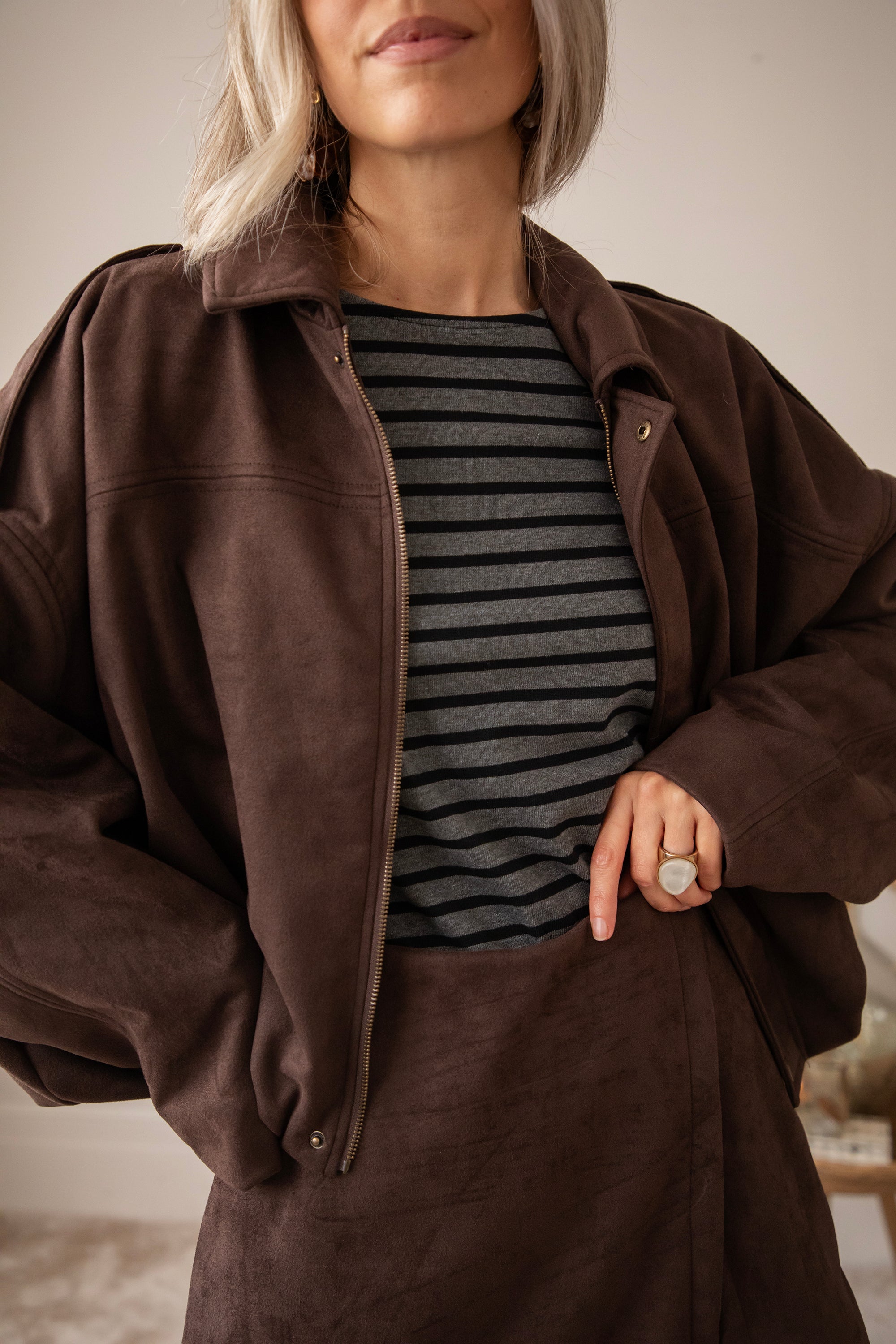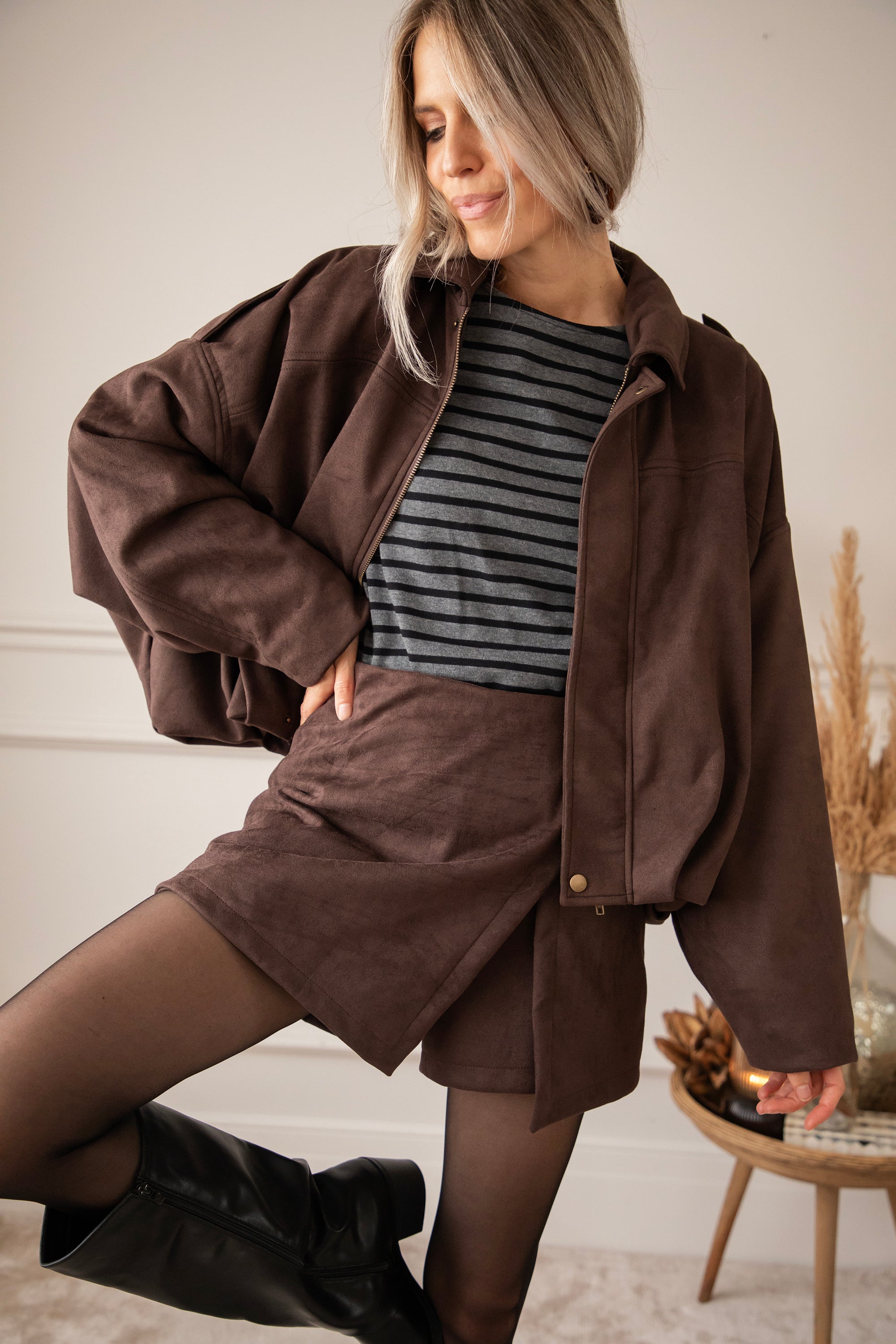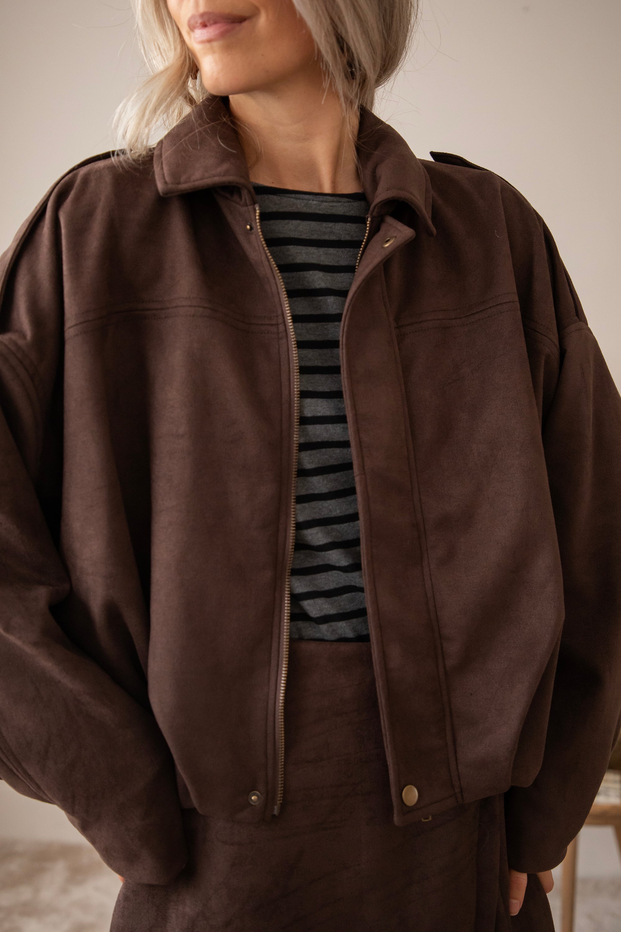 Omg girls… this jacket is such a vibe! 😍 Our Sienna Suede bomber jacket comes in this season's trendiest color and feels like pure luxury in jacket form 🤎 Suede is totally hot & happening this fall, and believe me, the bigger, the better!