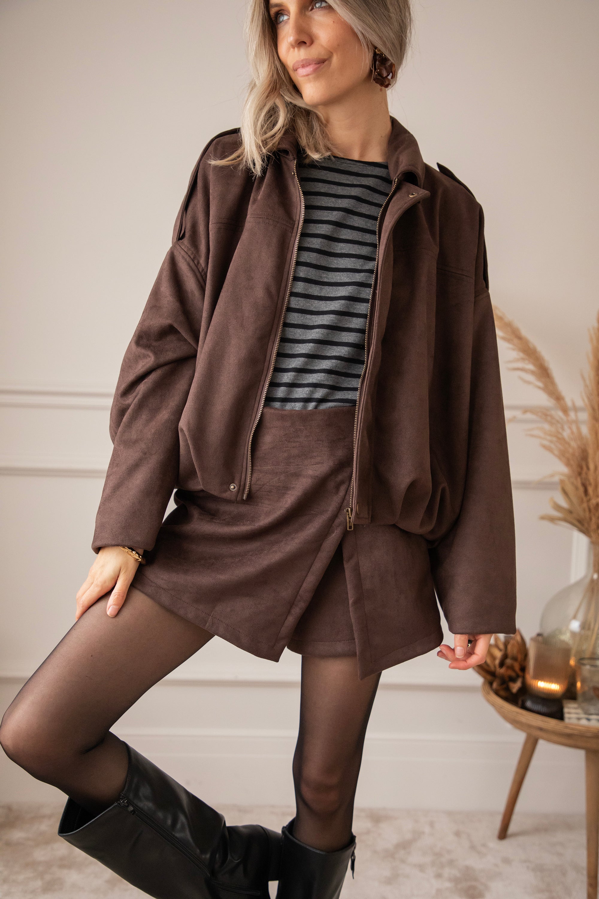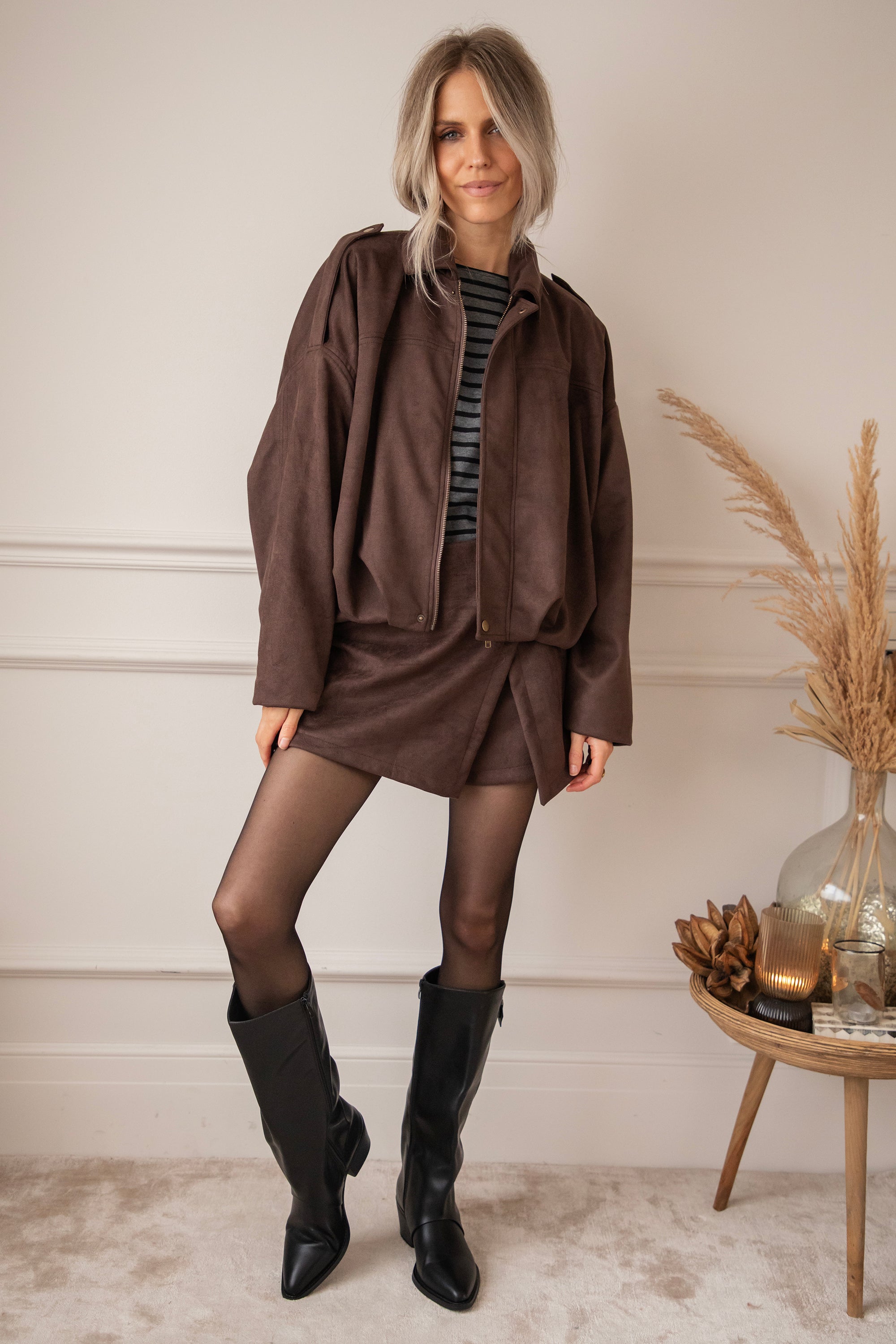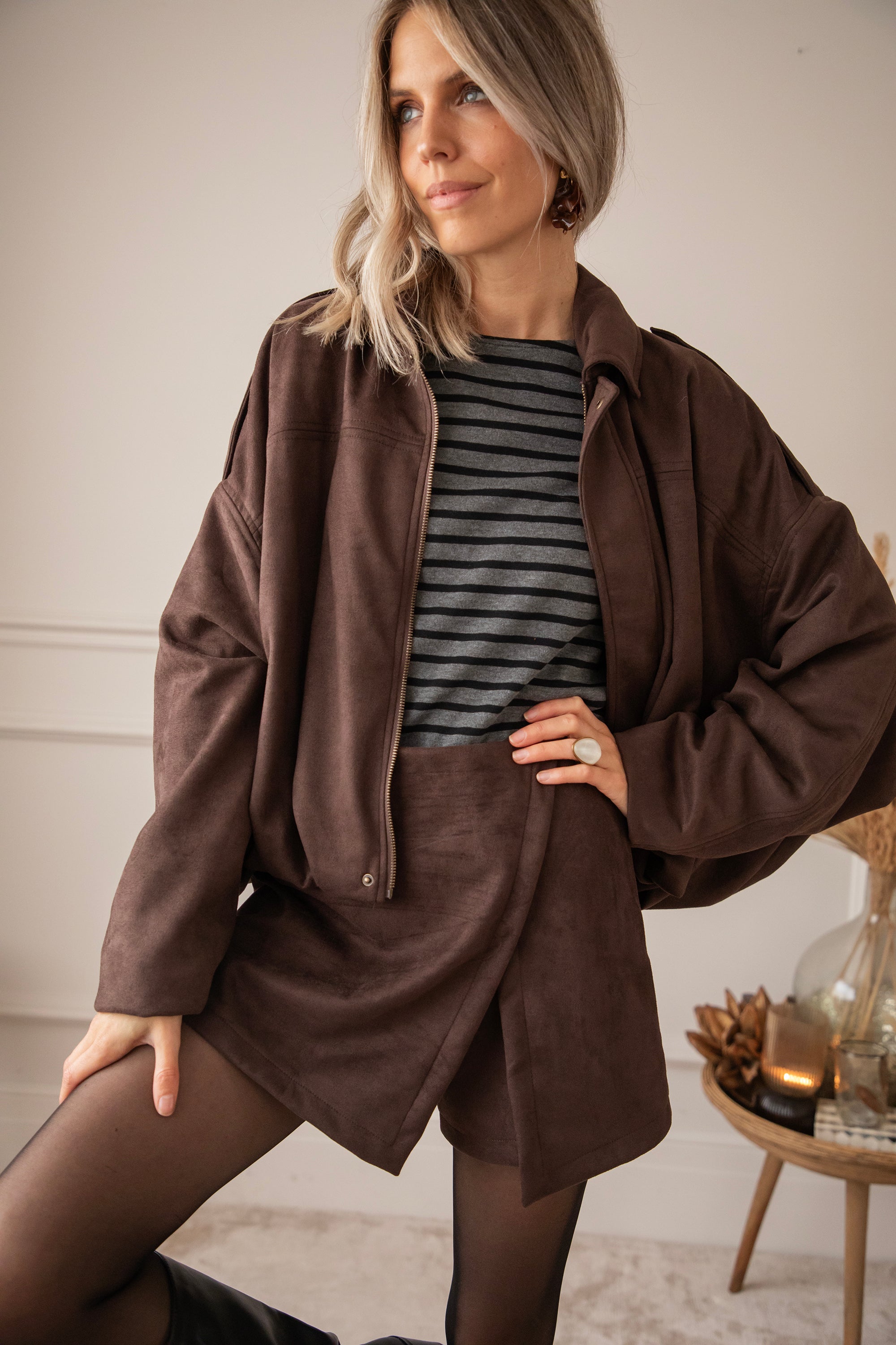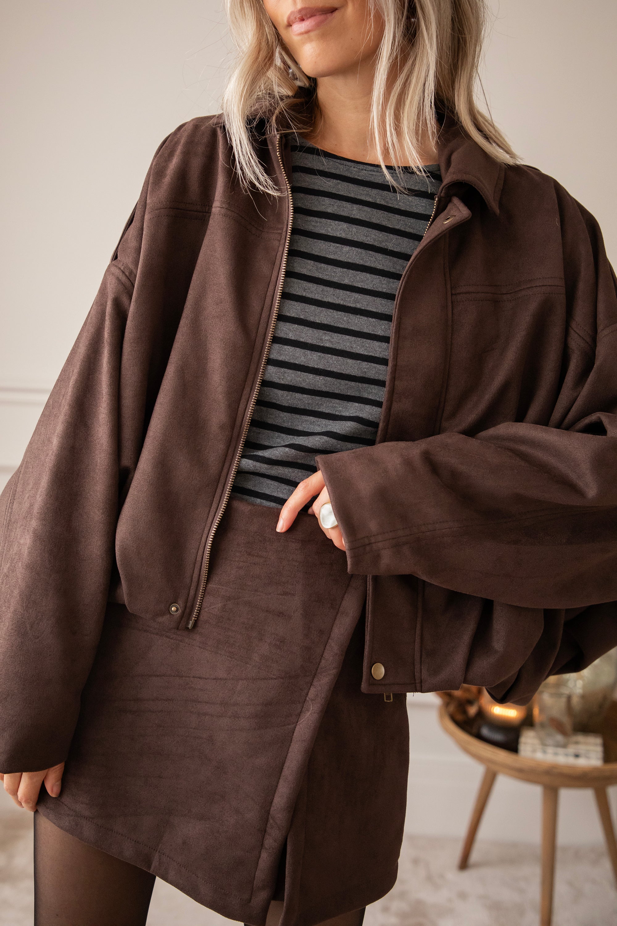 Omg girls… this jacket is such a vibe! 😍 Our Sienna Suede bomber jacket comes in this season's trendiest color and feels like pure luxury in jacket form 🤎 Suede is totally hot & happening this fall, and believe me, the bigger, the better!
