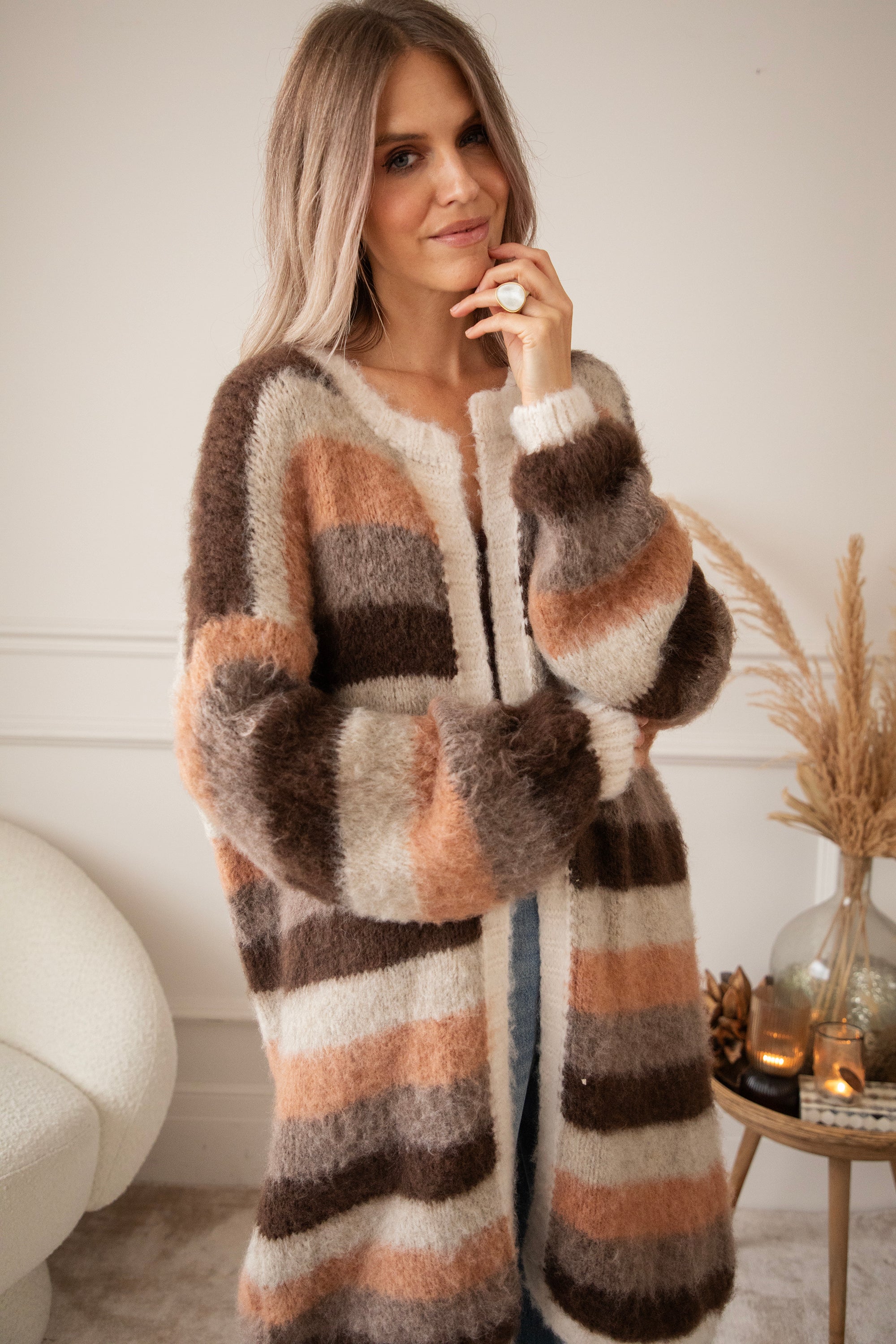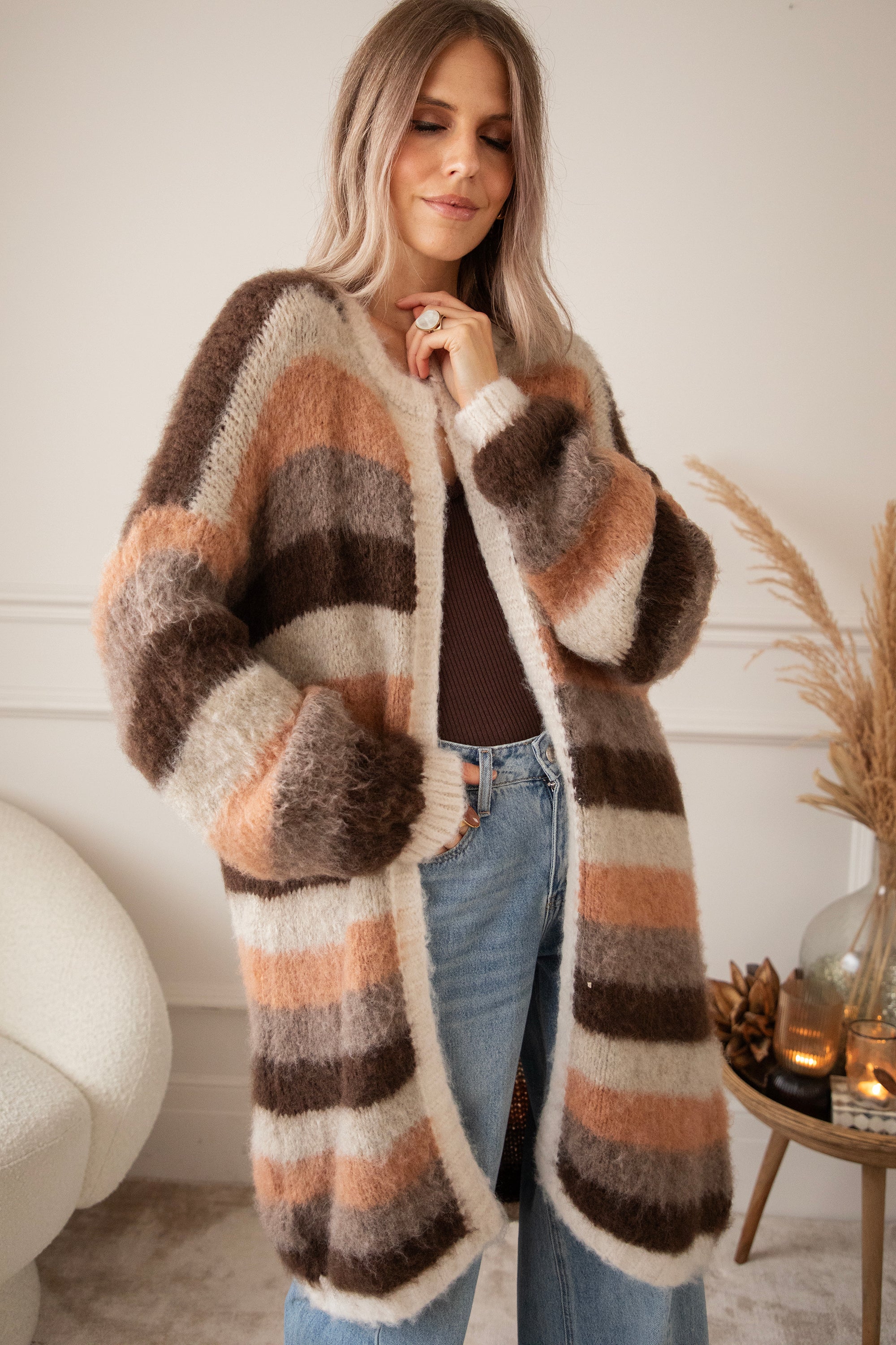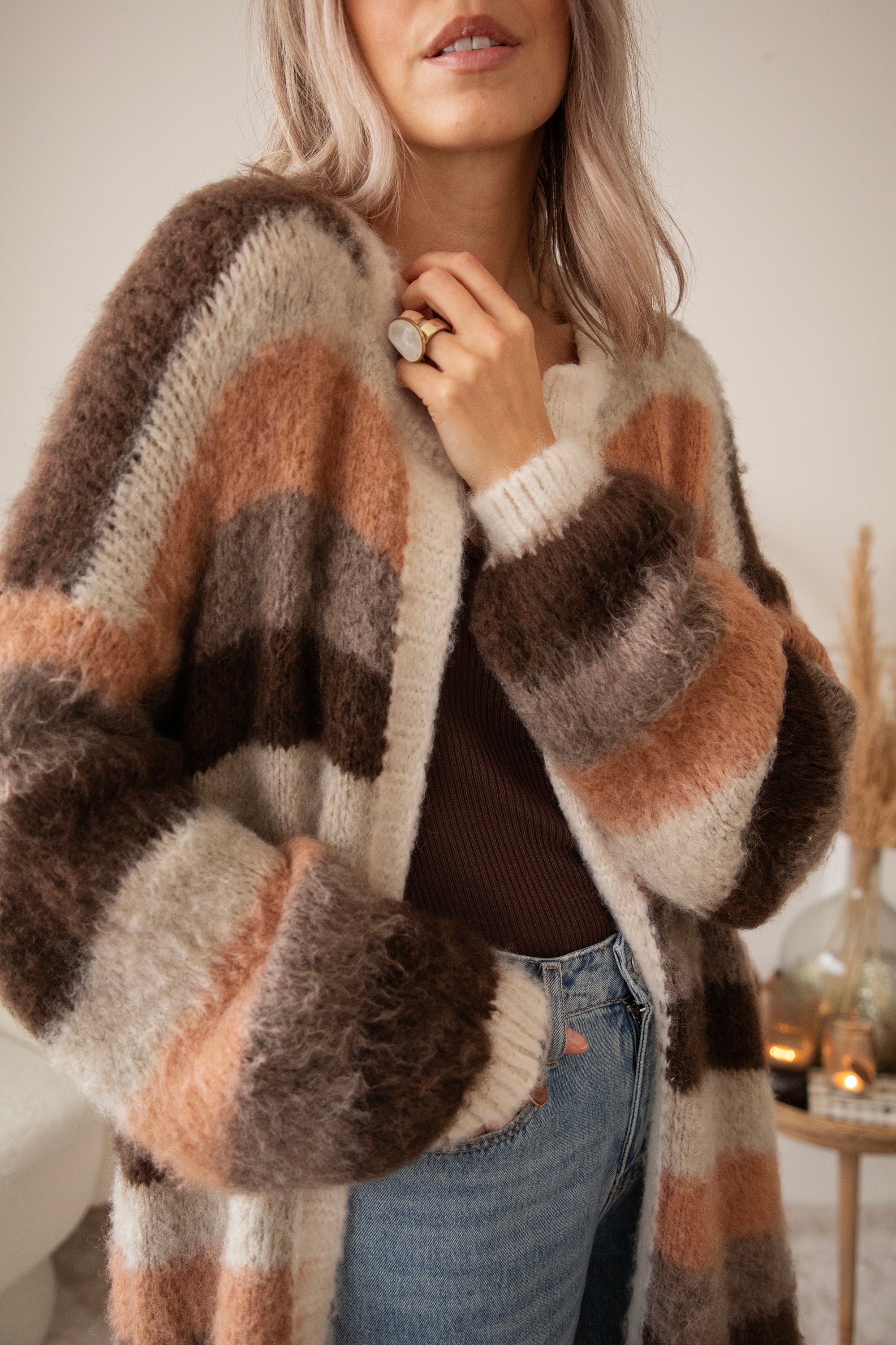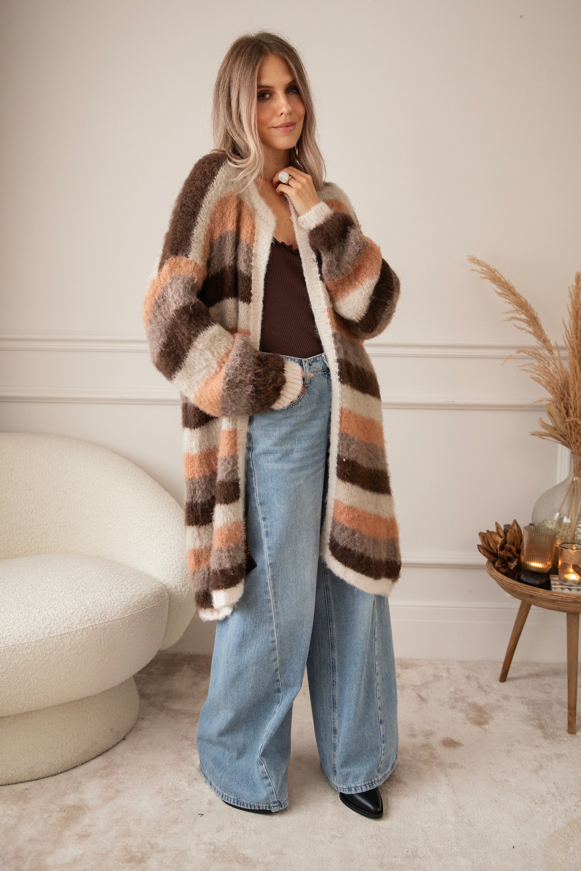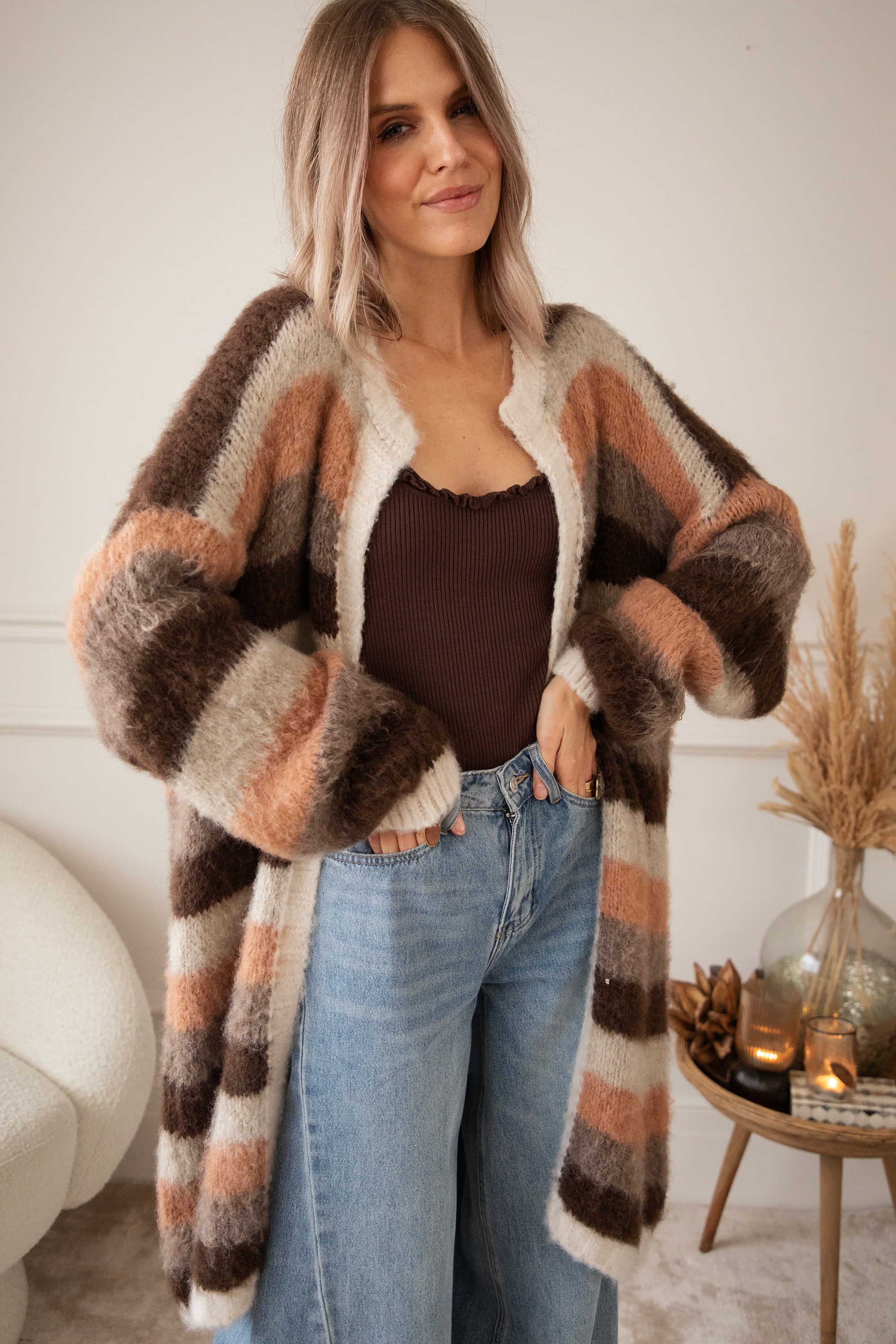 Stripes On Repeat Choco/Camel - Cardigan