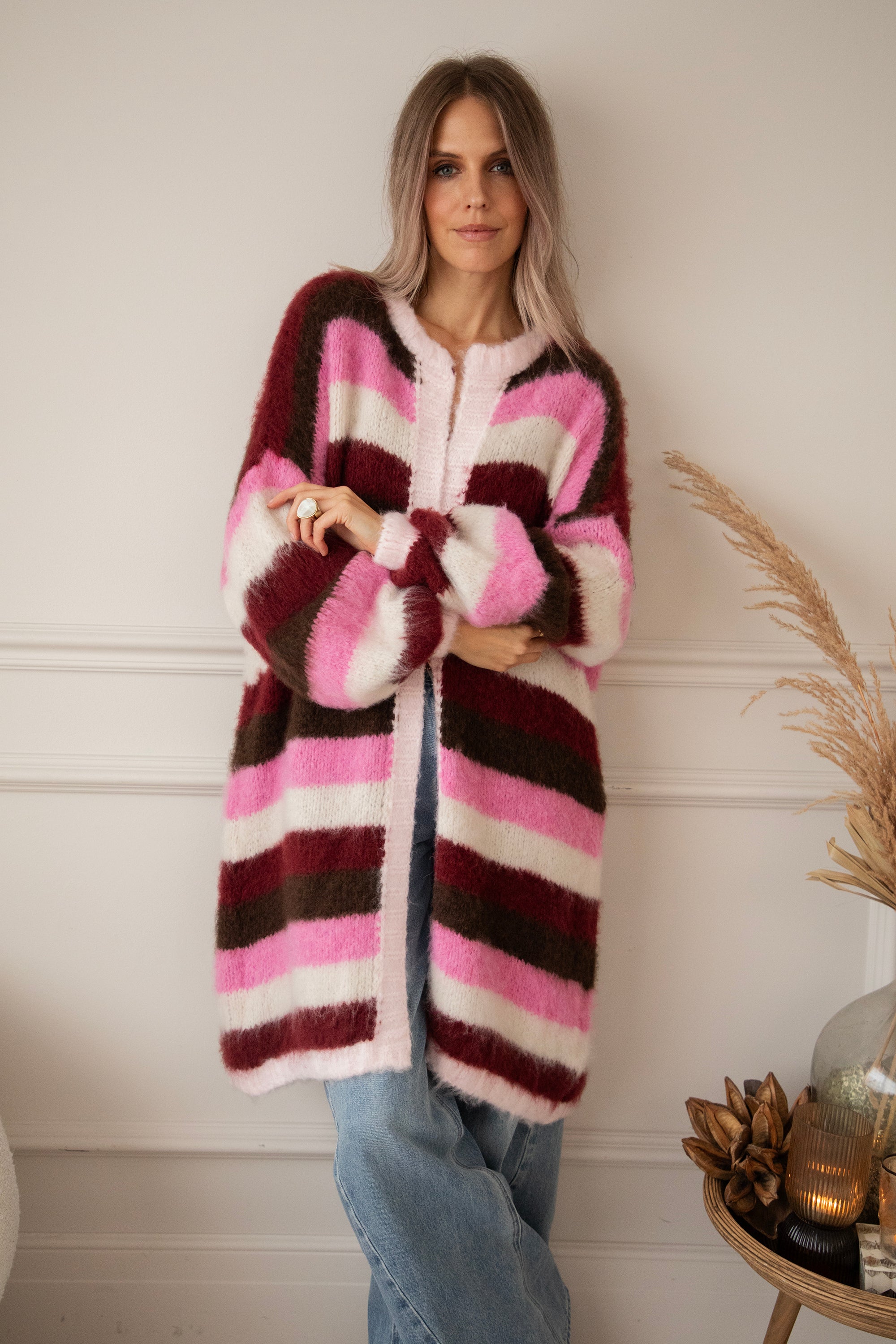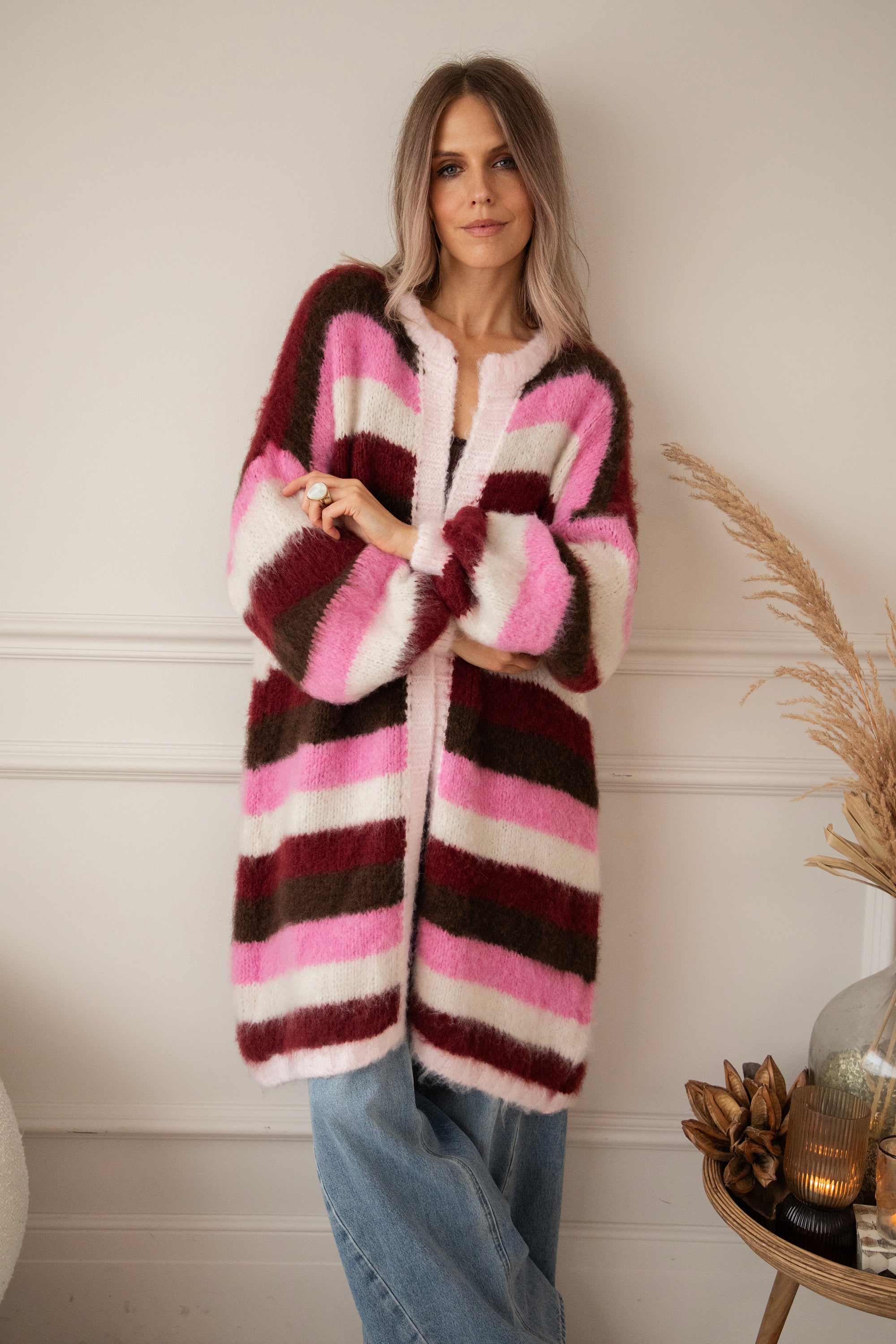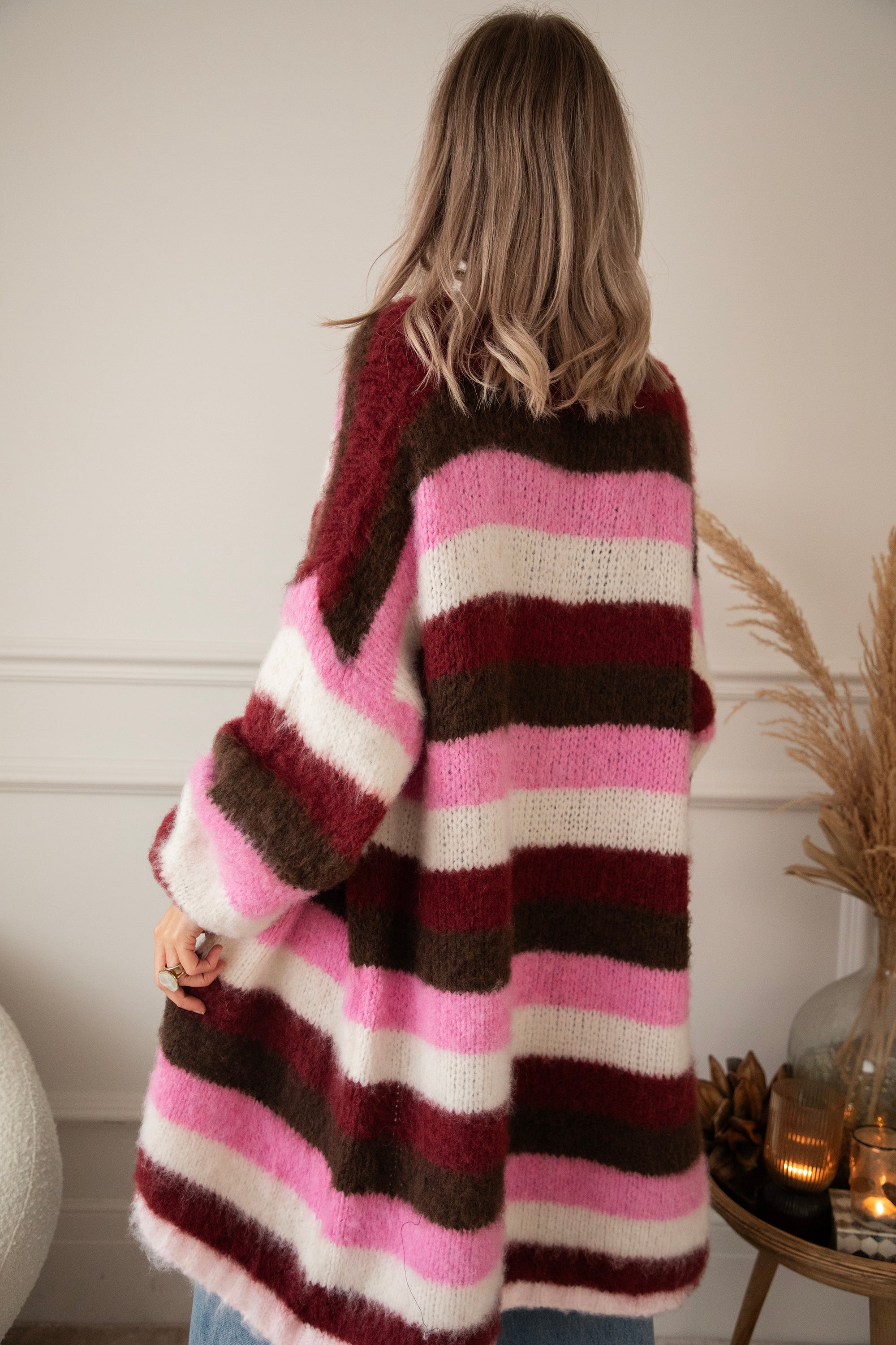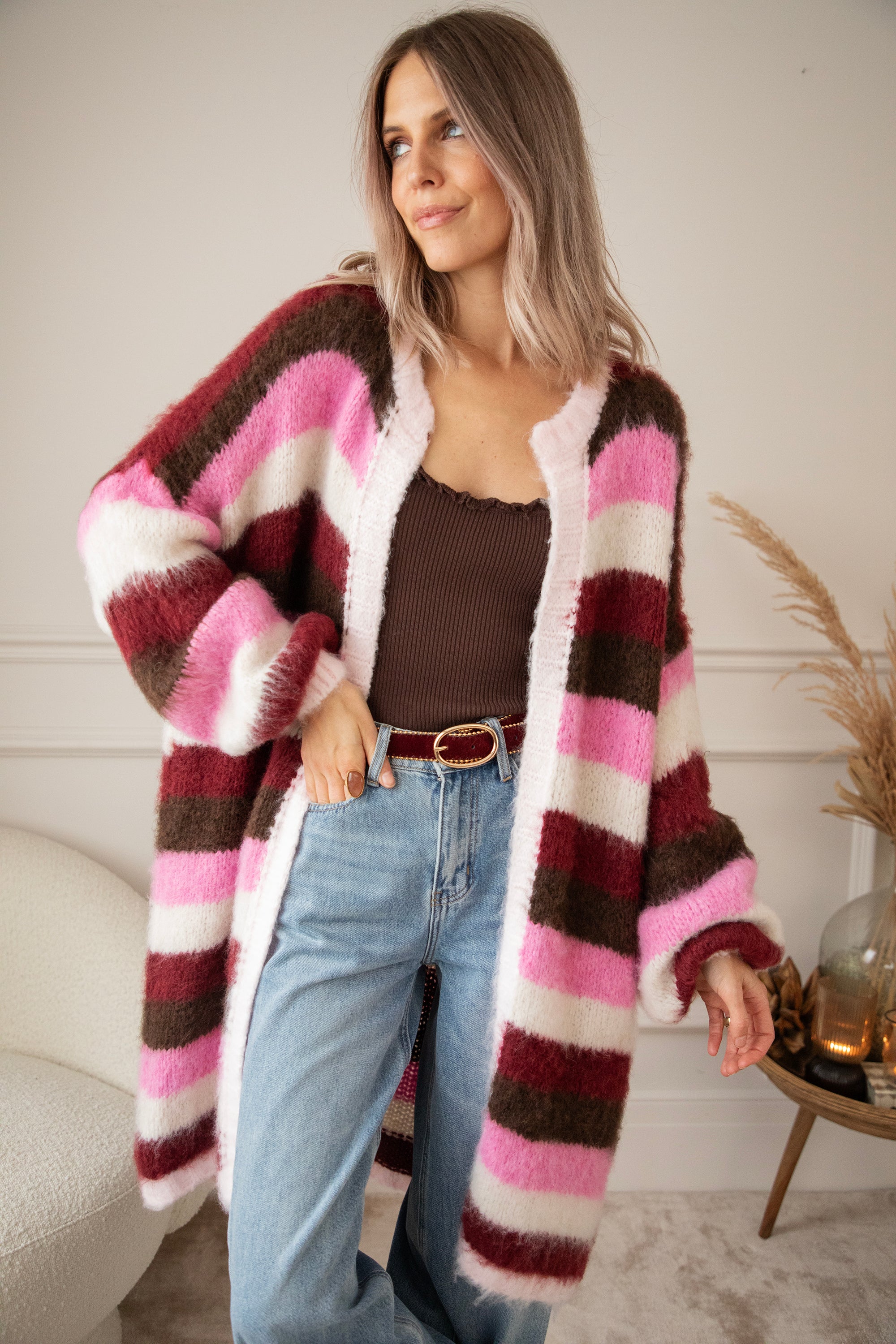 Stripes On Repeat Pink/Bordeaux - Cardigan