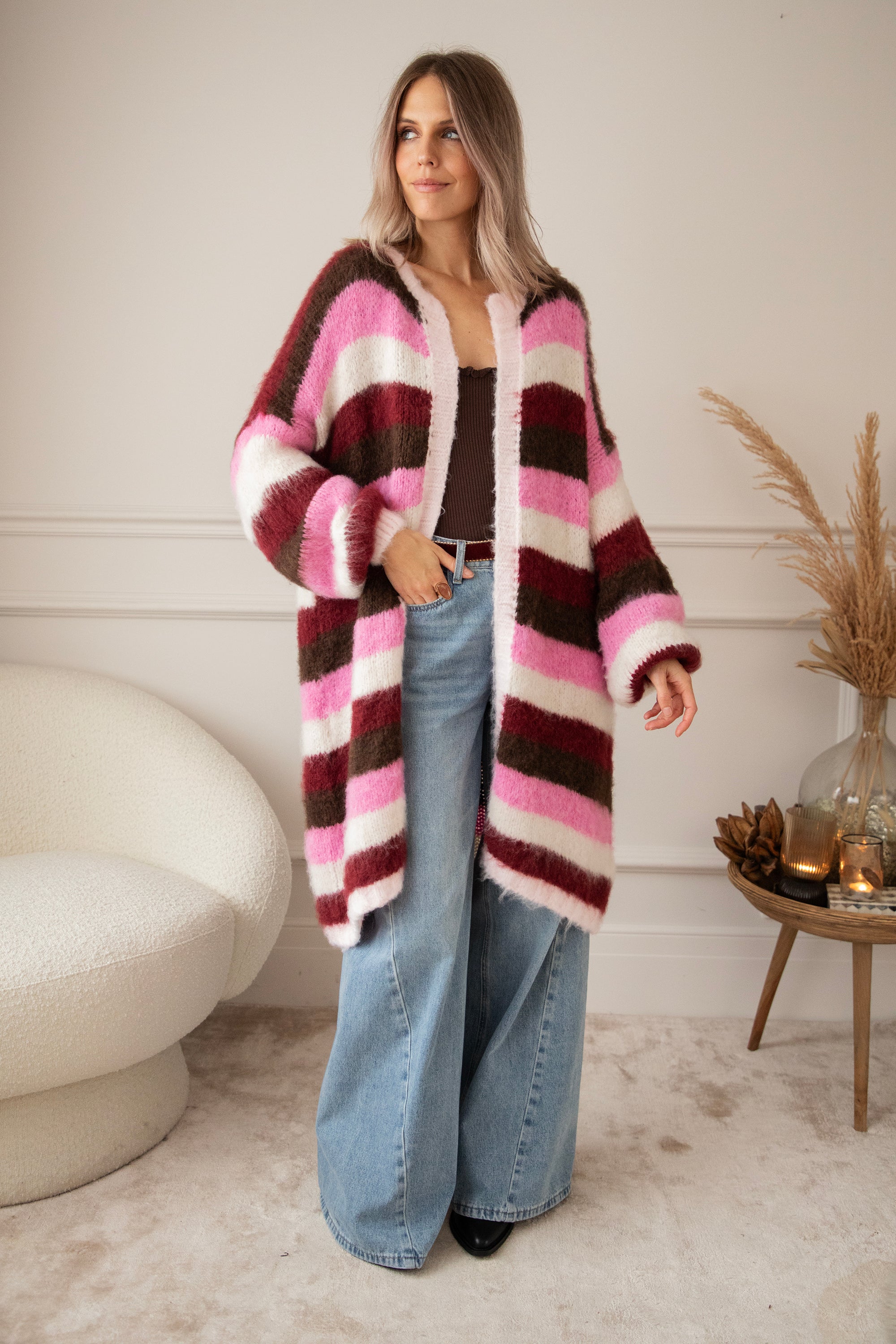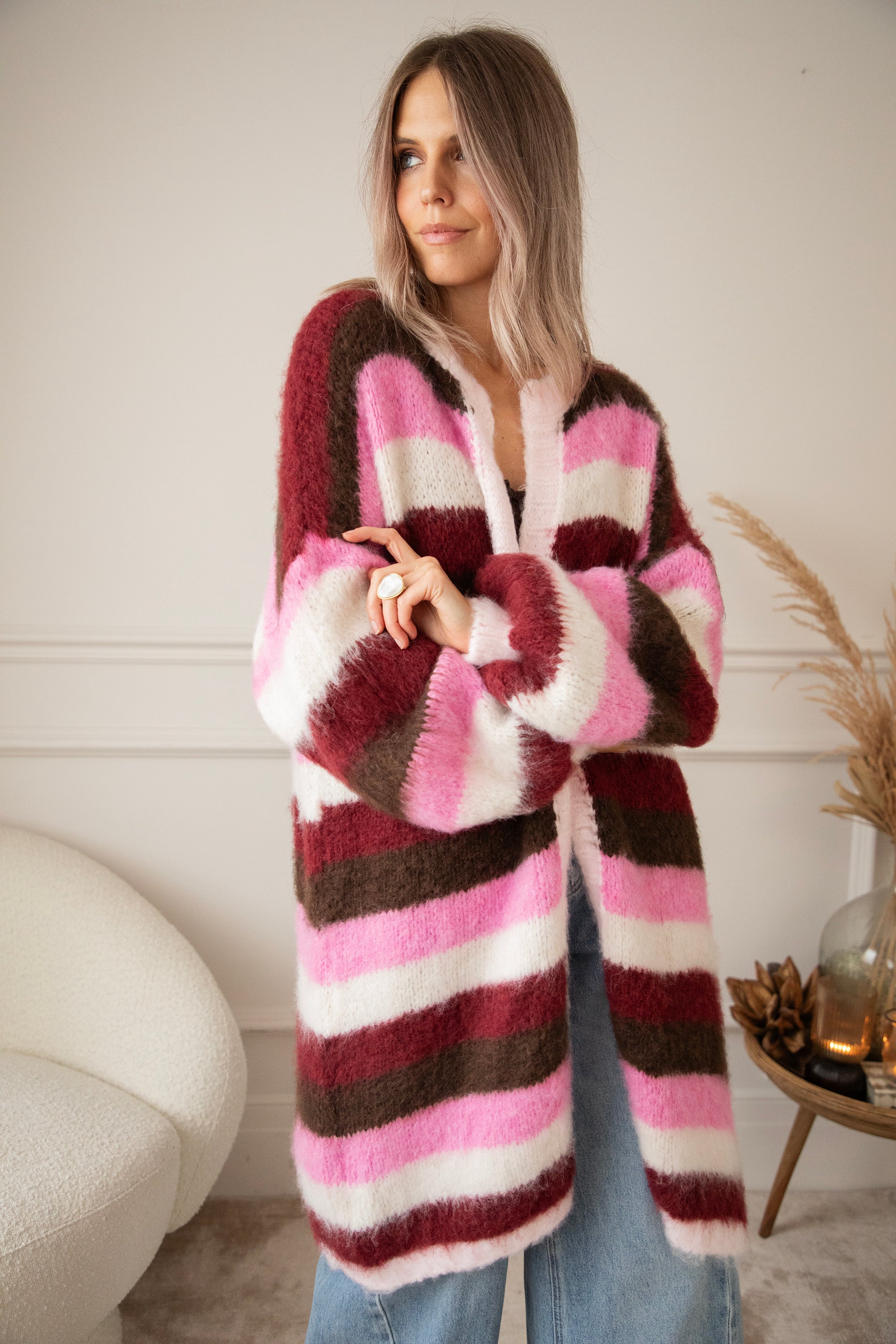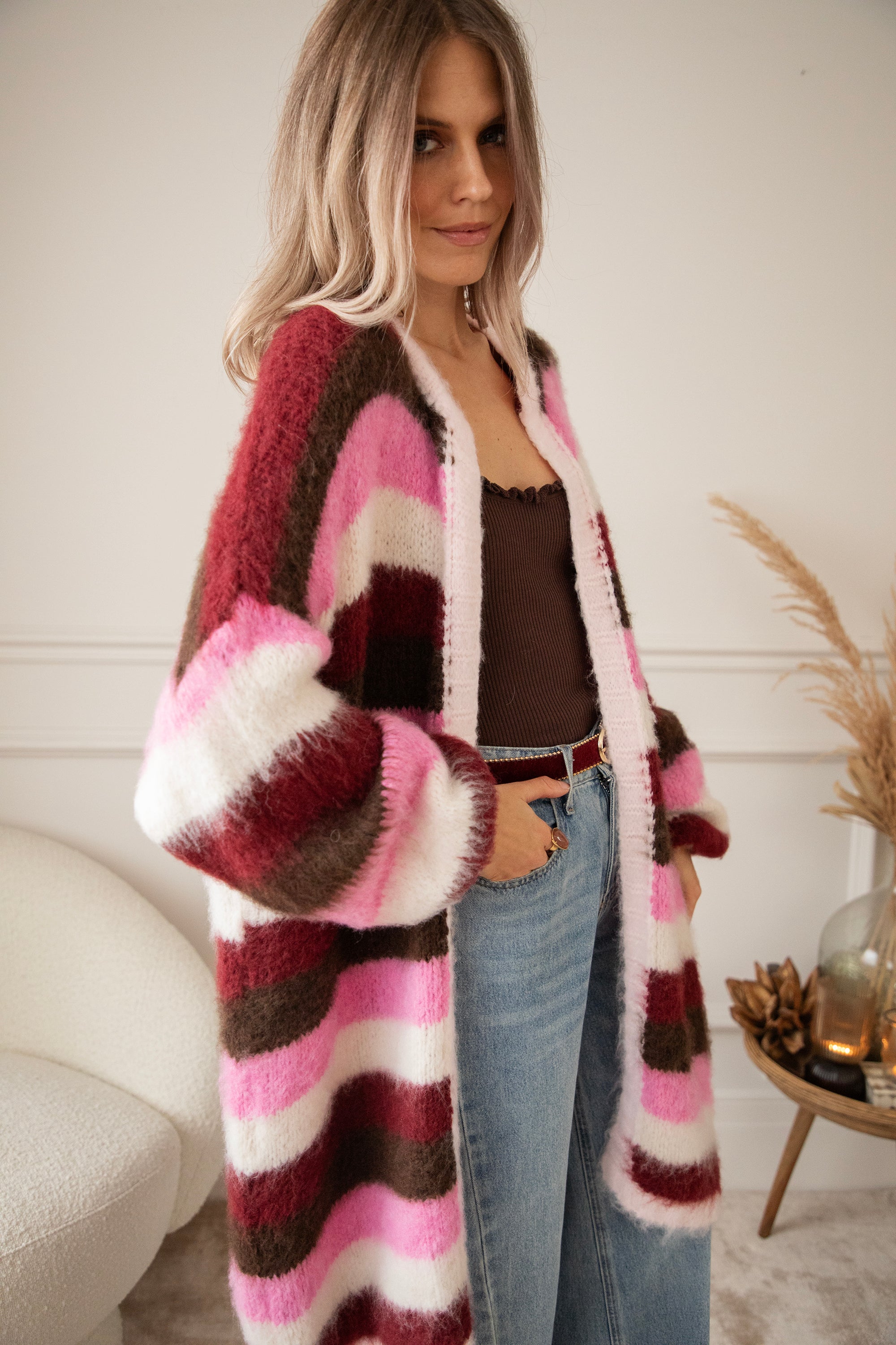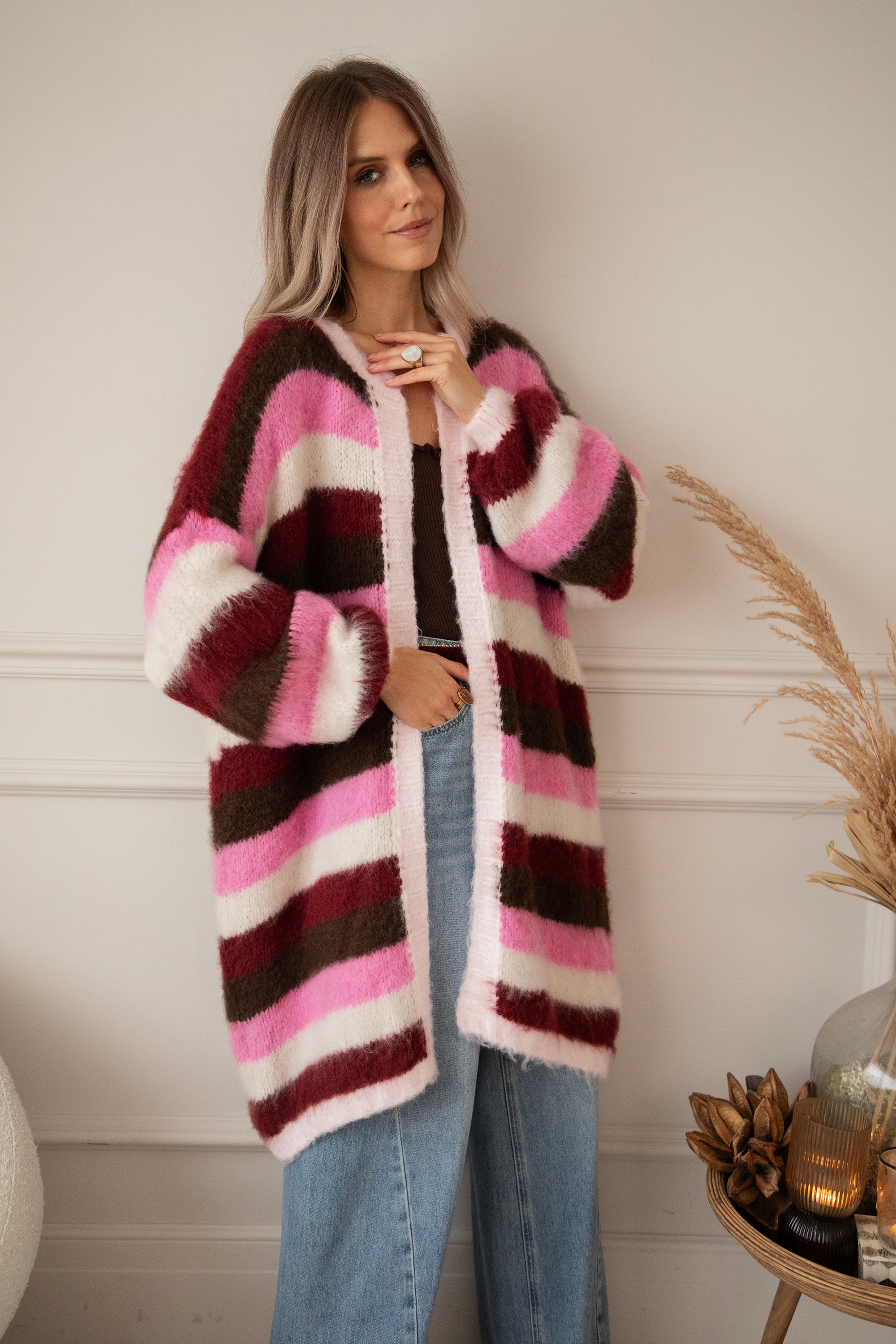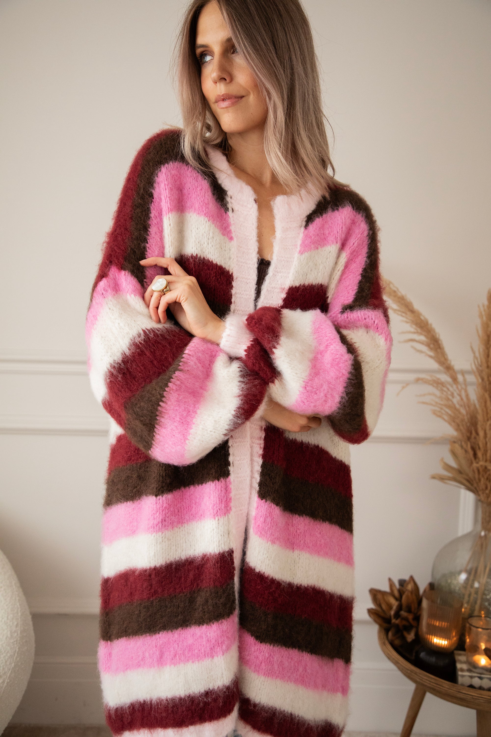 Stripes On Repeat Pink/Bordeaux - Cardigan