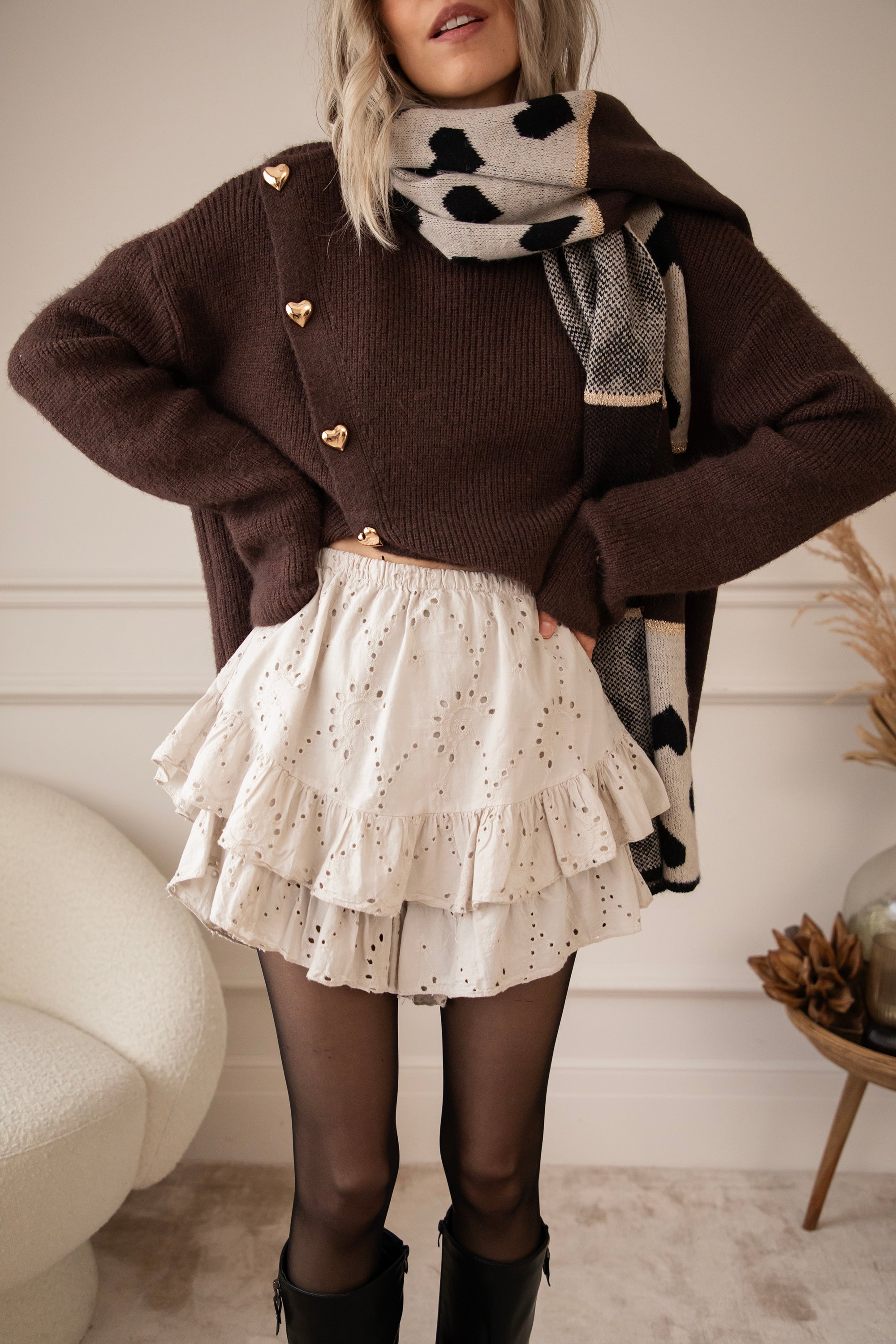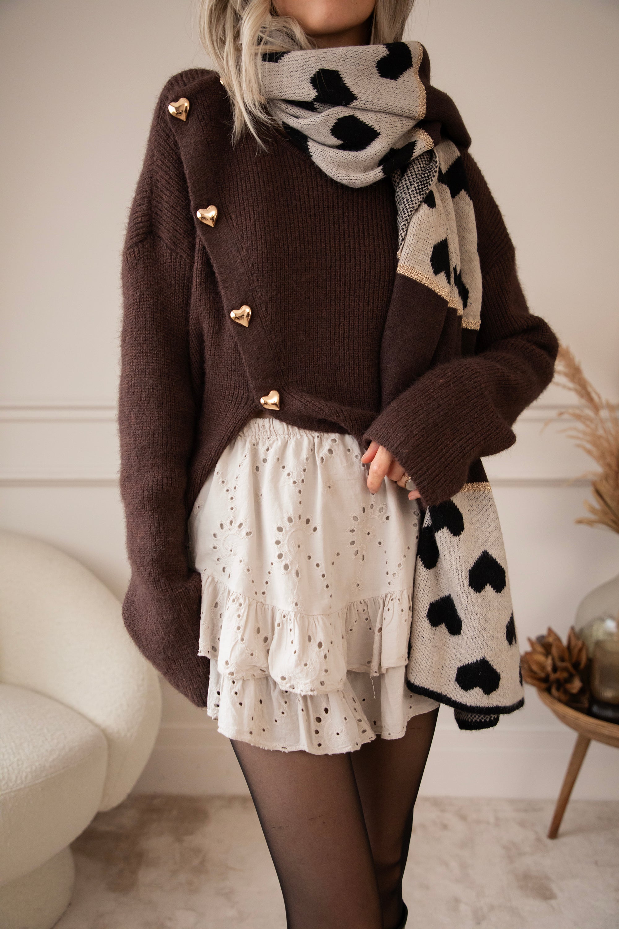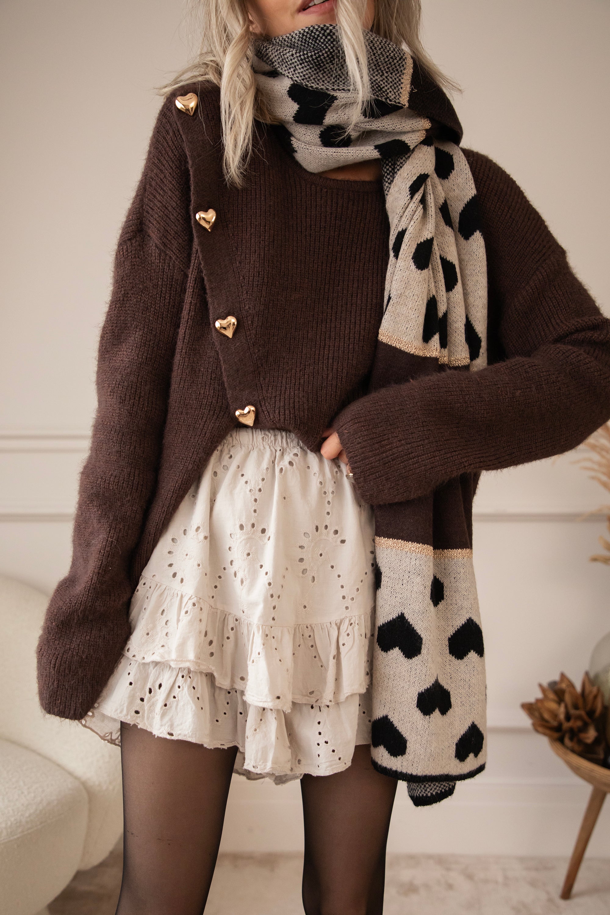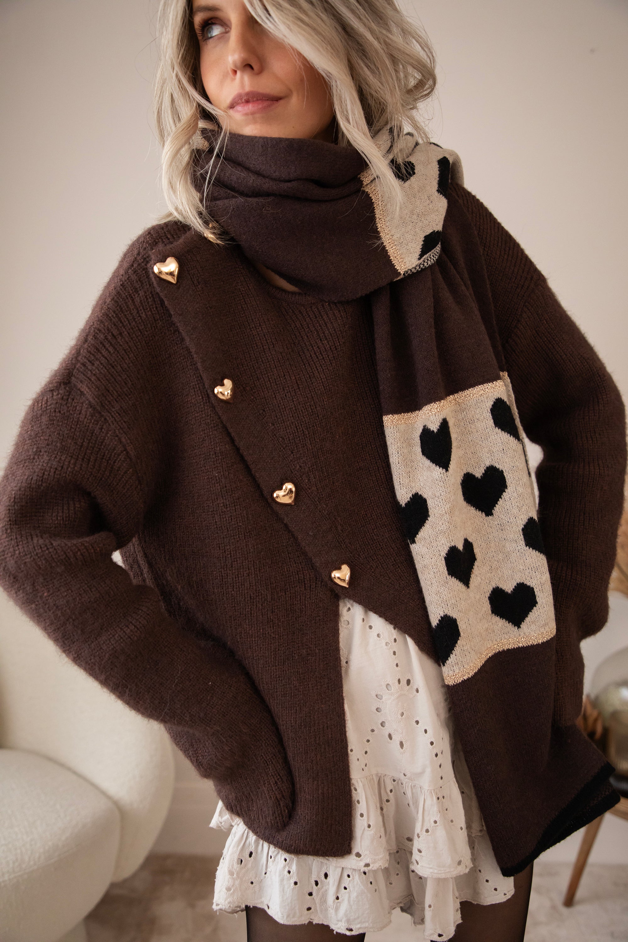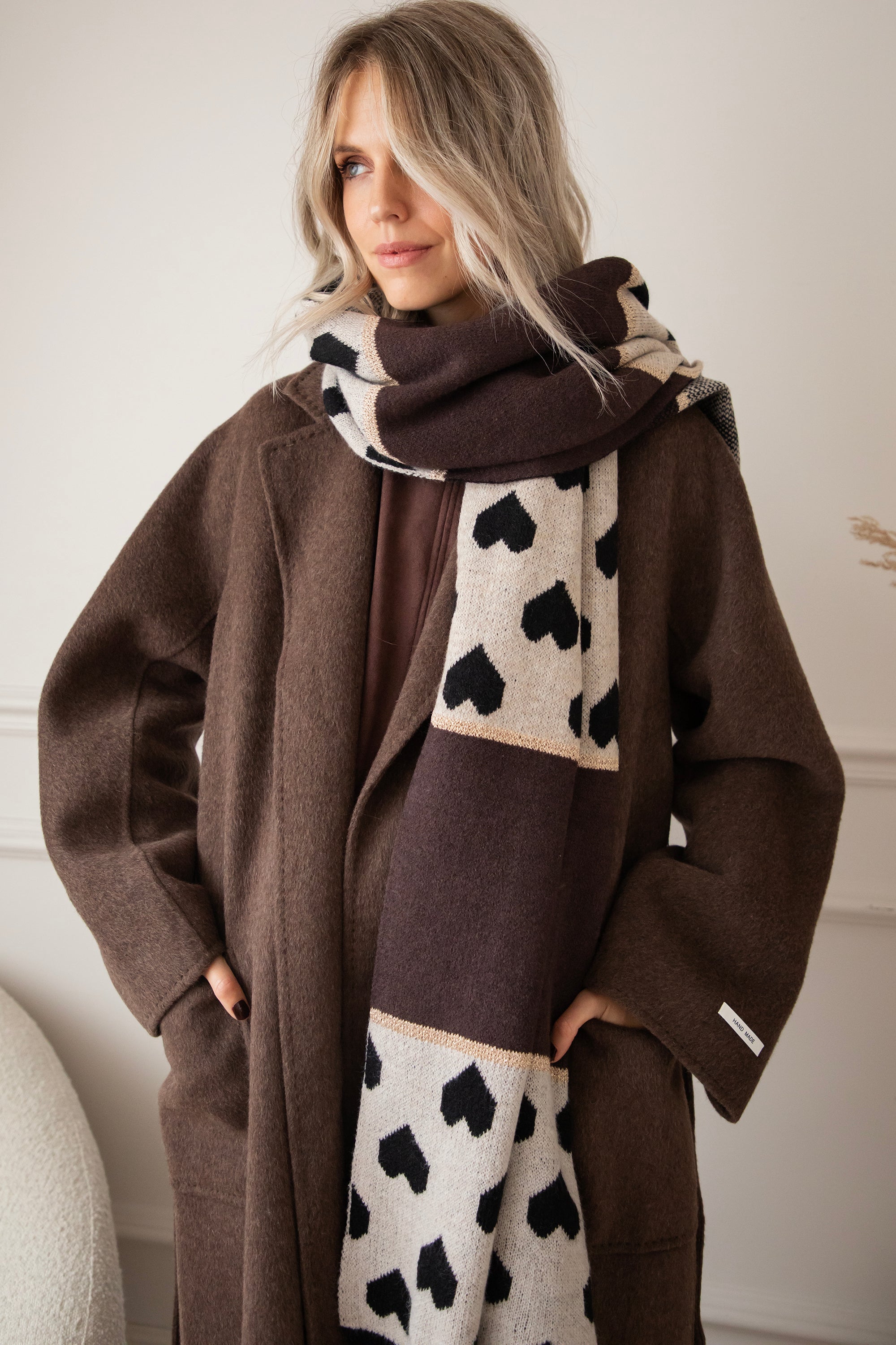 Surrounded by love, hihi, you can take that literally here because the scarf is printed with cute little black hearts on different panels! 🖤 The heart patterns are accented with a glittery gold border ✨ Love & bling, what more could a scarf need, hihi? It also feels very soft! No itchy feeling 😊