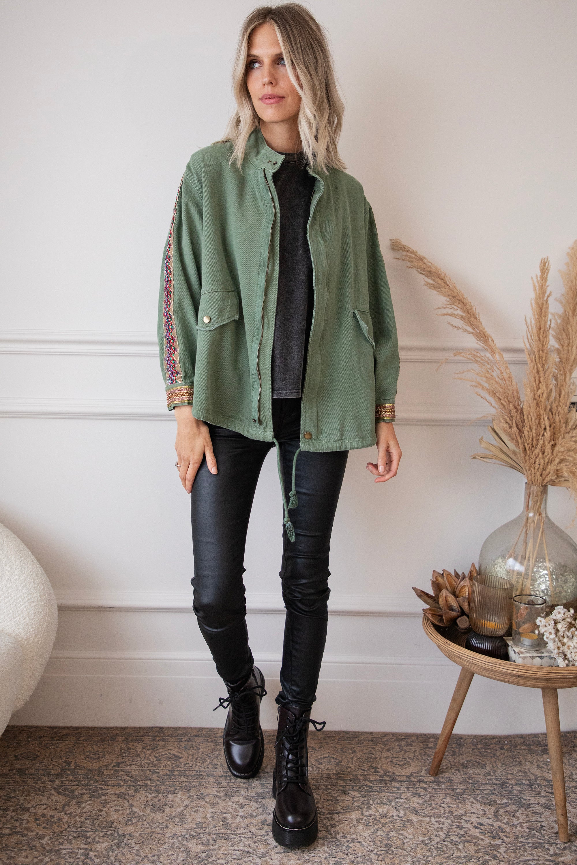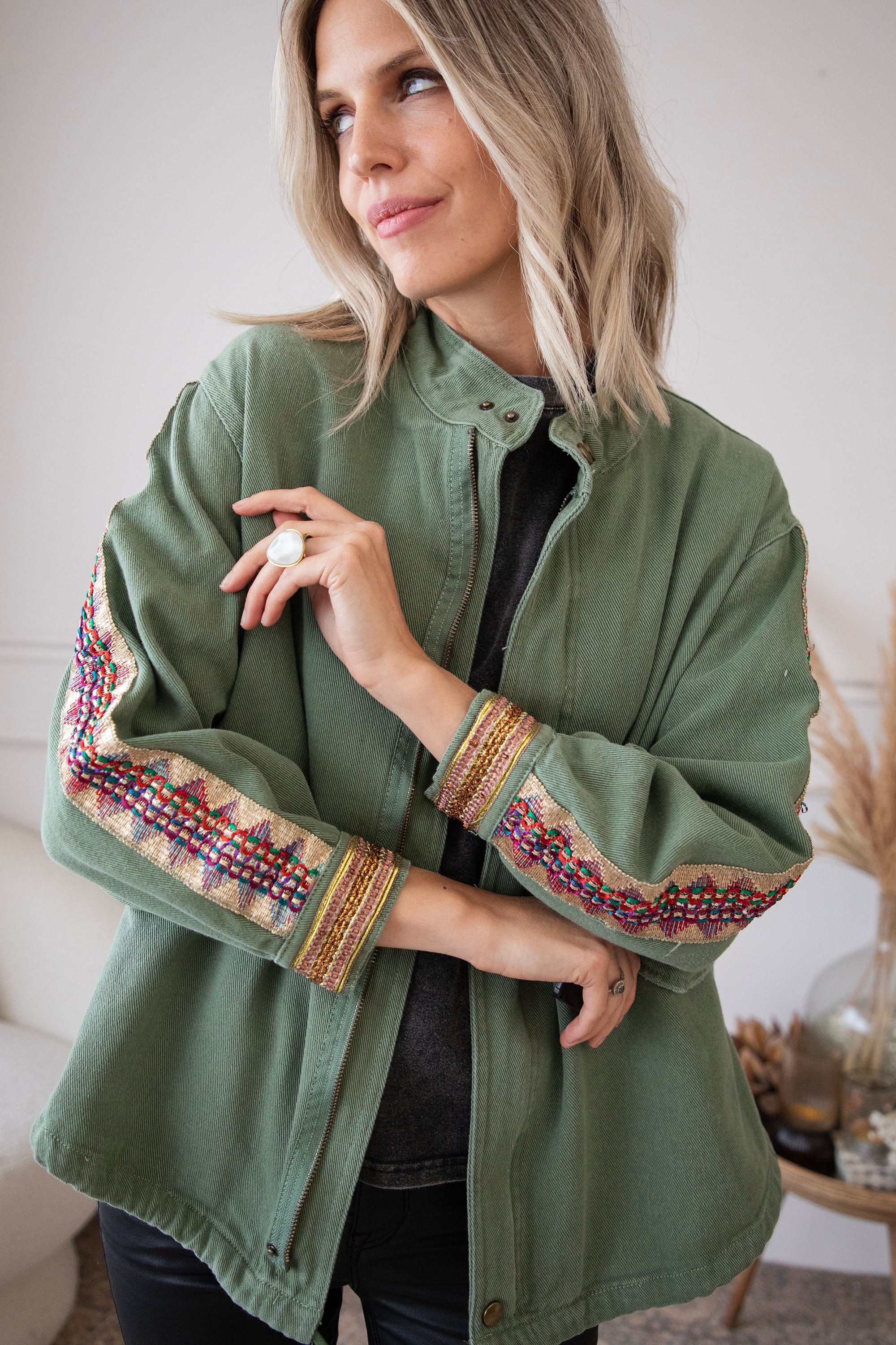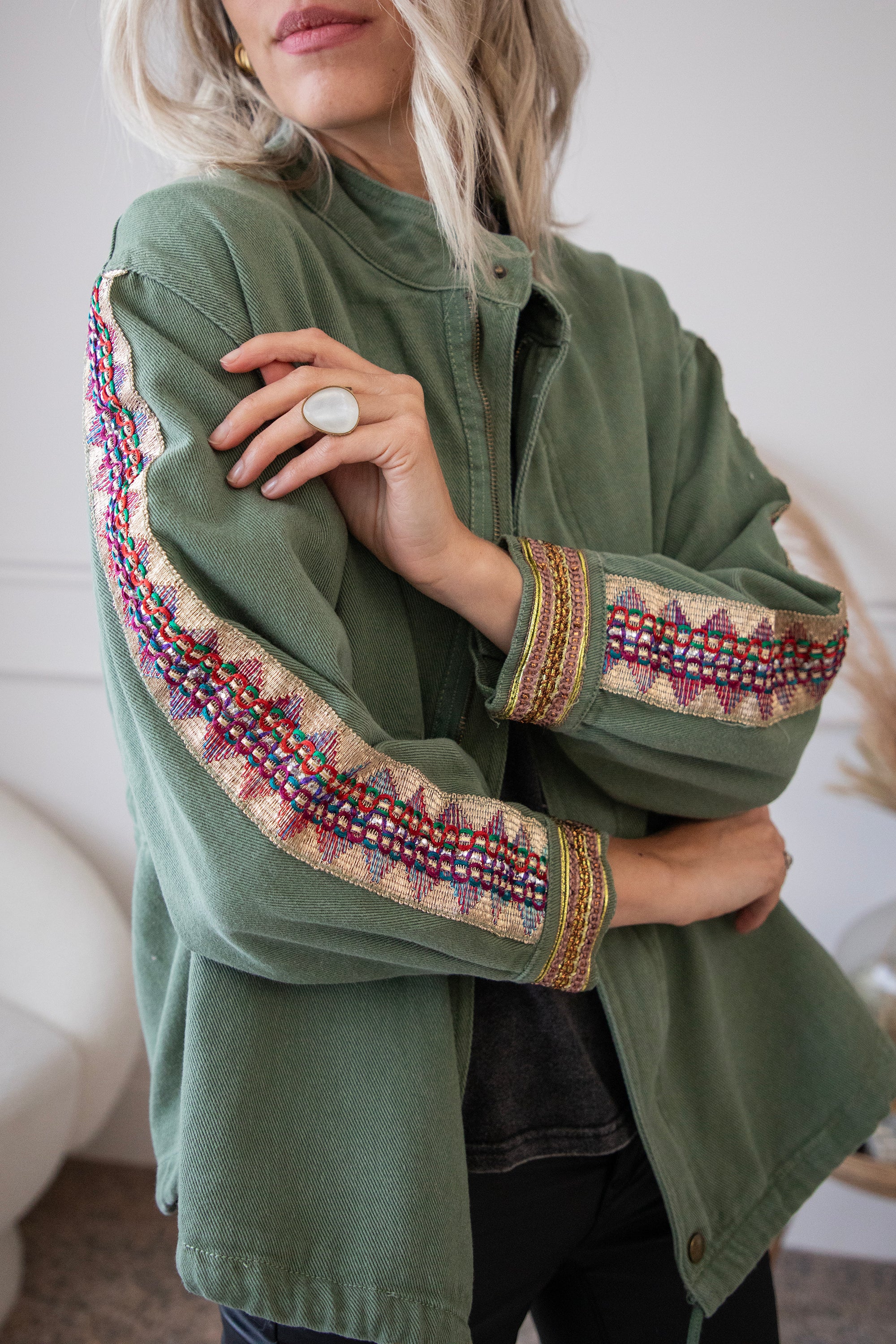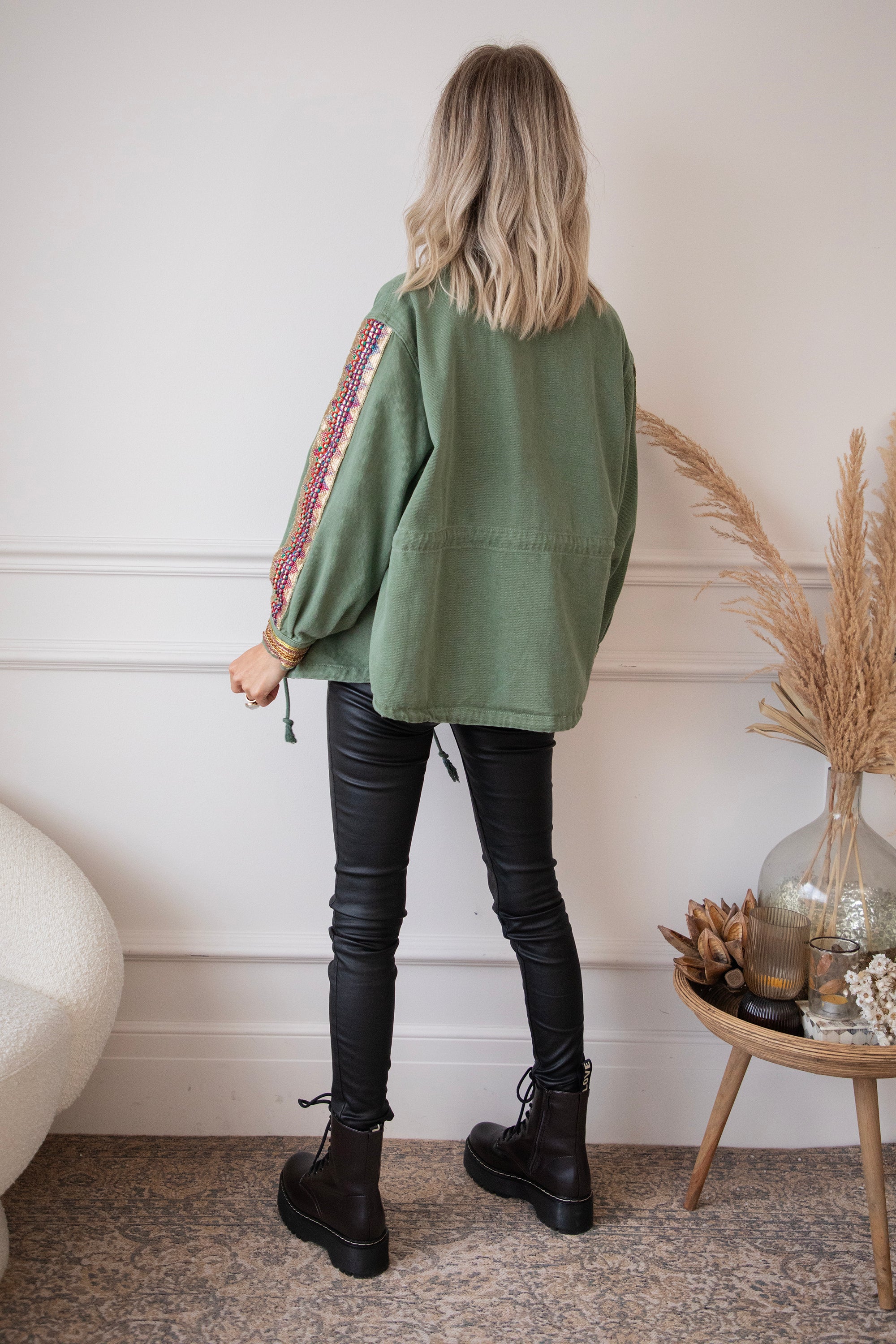 Aaaah, do you remember The Charm?! 🥹 The jacket with those fancy sleeves? Yesss, she's back! The sleeves show off their shiny stitched pattern in bright colors 🩷🩵 A real charmer, hehe.