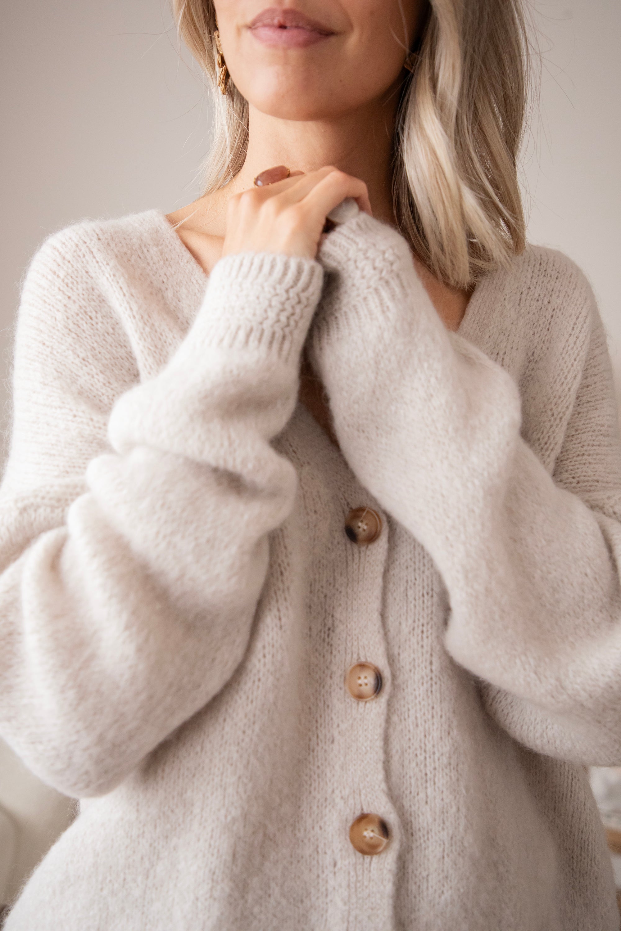 A wonderfully cozy piece that feels like a soft embrace. It's the perfect addition to your knitwear collection, a piece you'll reach for every day. Not just any cardigan, but one that instantly completes your outfit and allows you to be yourself. Soft, stylish, and so easy to mix and match! 🤍
