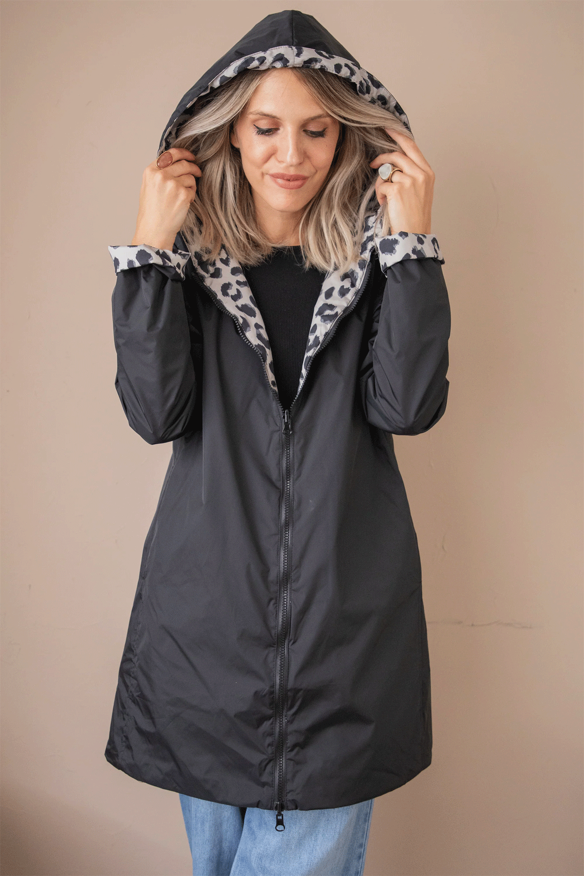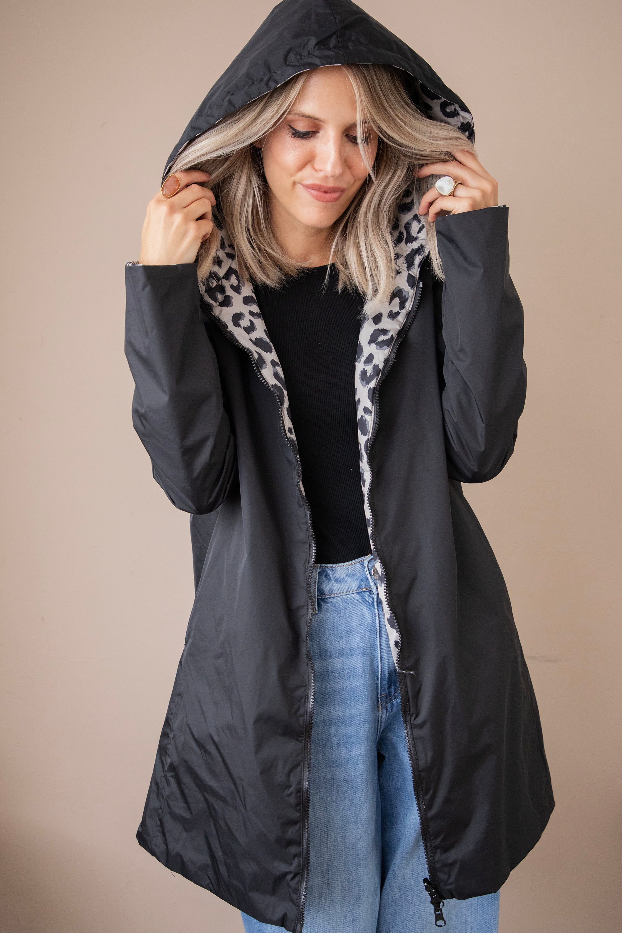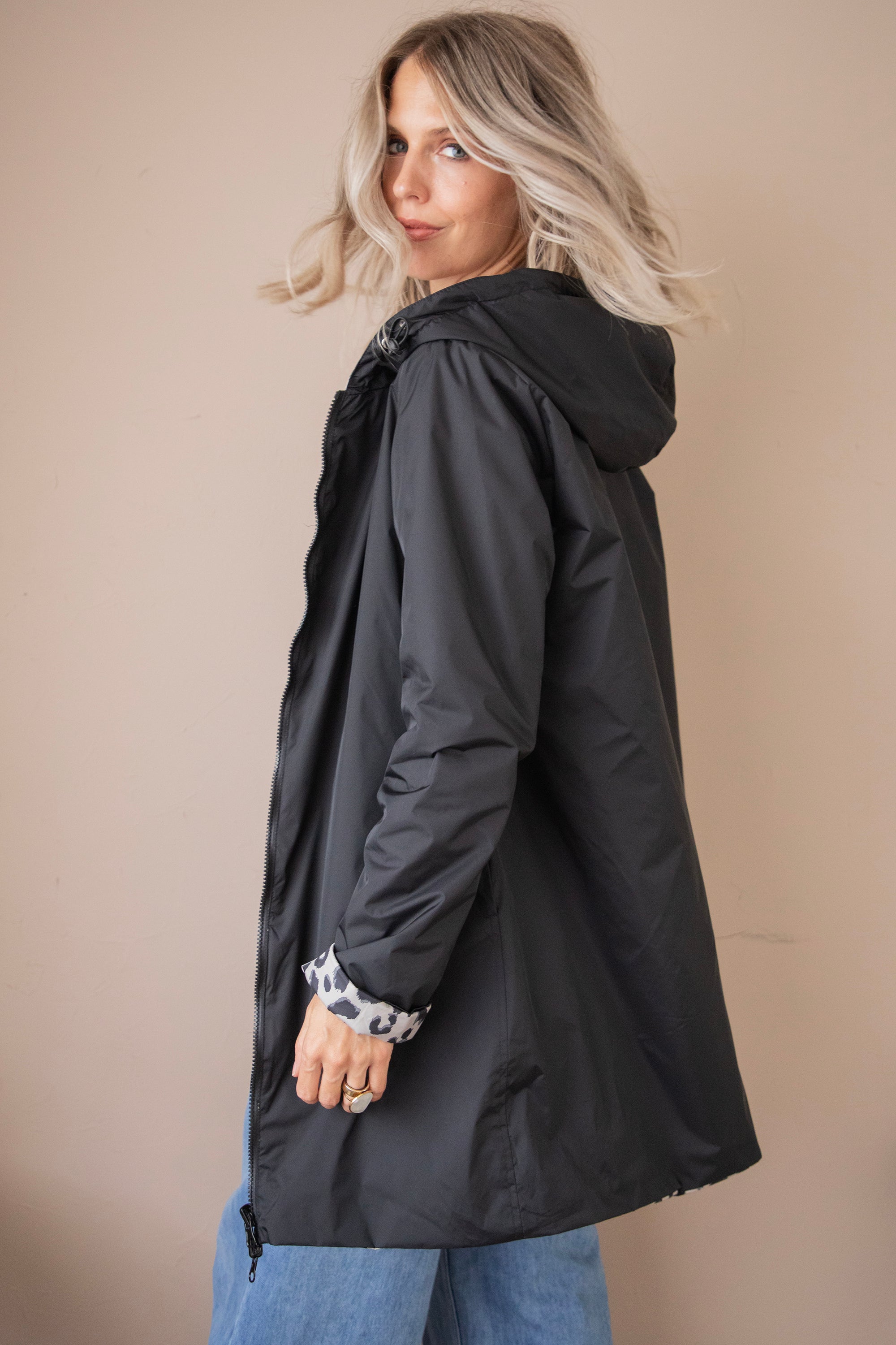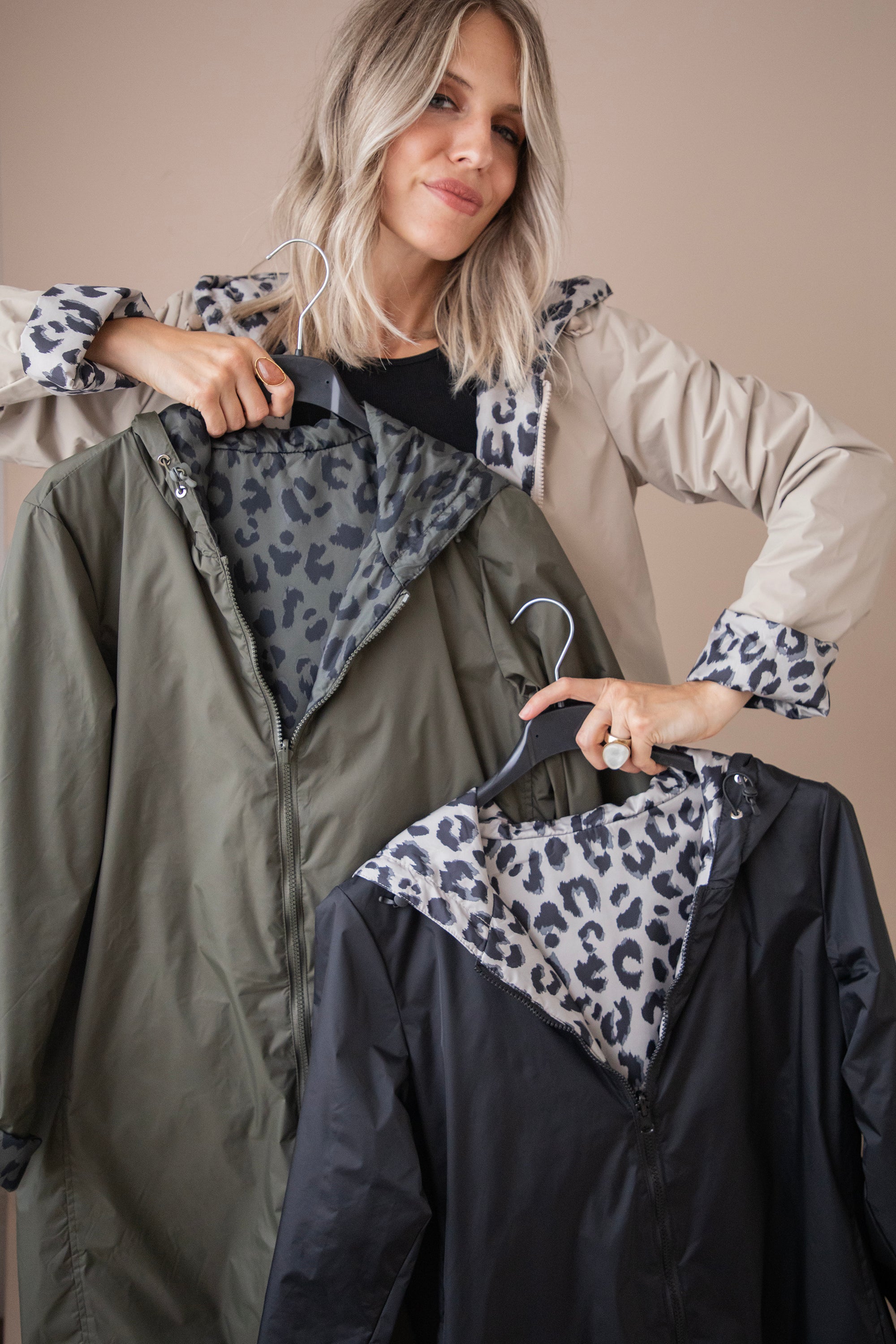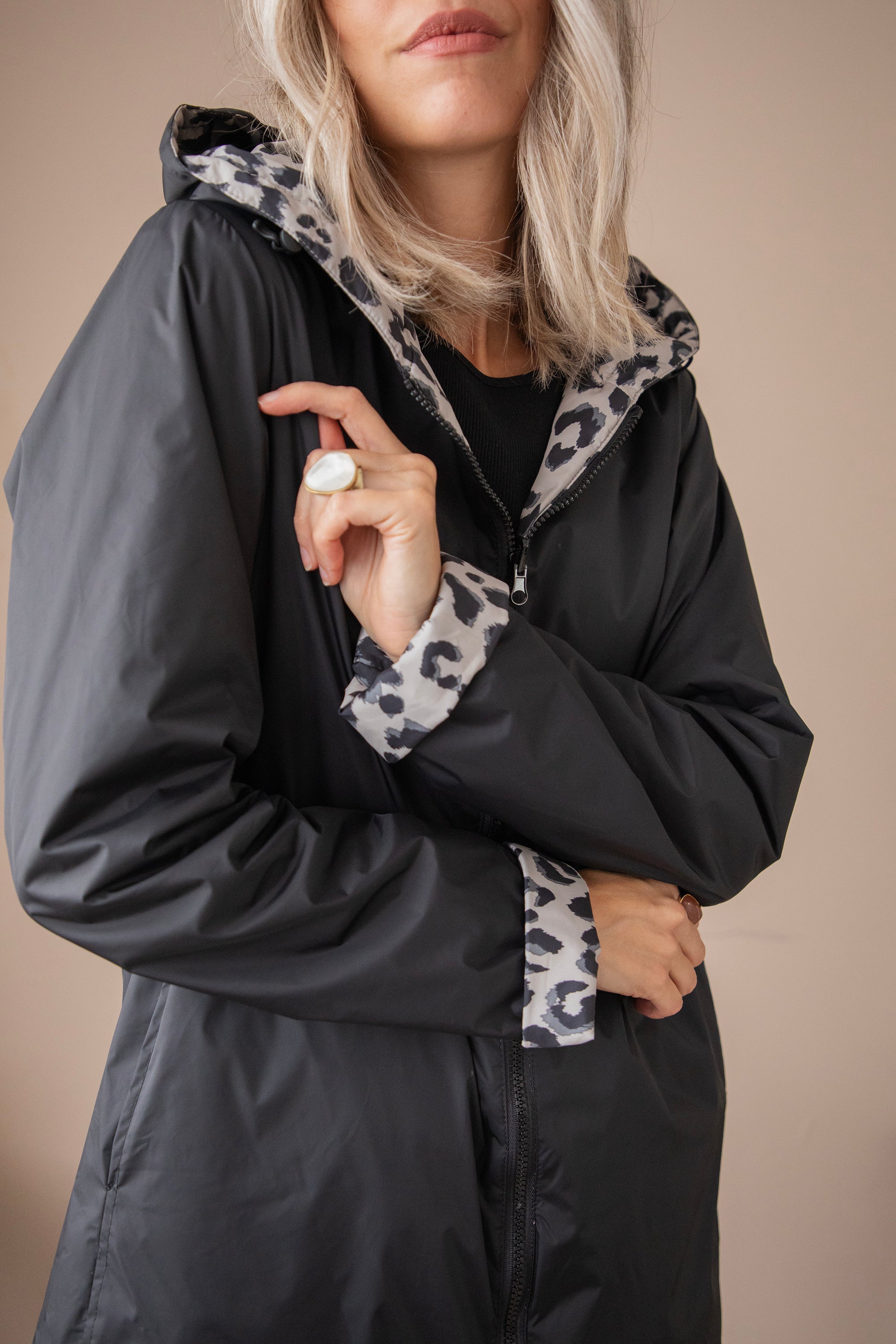 After the success of our reversible raincoats, we couldn't resist adding a new color! Black is always a winner and super easy to combine 🖤 And if you're in the mood for something a little more exciting... hello wild side, hehe 🐆