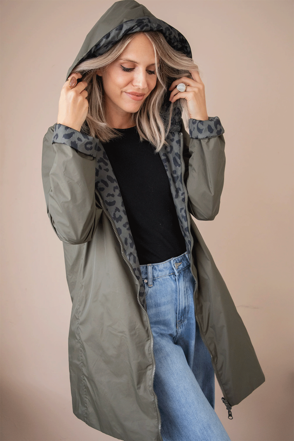 The Leo Reverse is your ultimate fall buddy: waterproof, stylish, and versatile ✨ The mid-length model with hood keeps you dry and cozy, even during those unexpected rain showers we'd rather run away from 😉