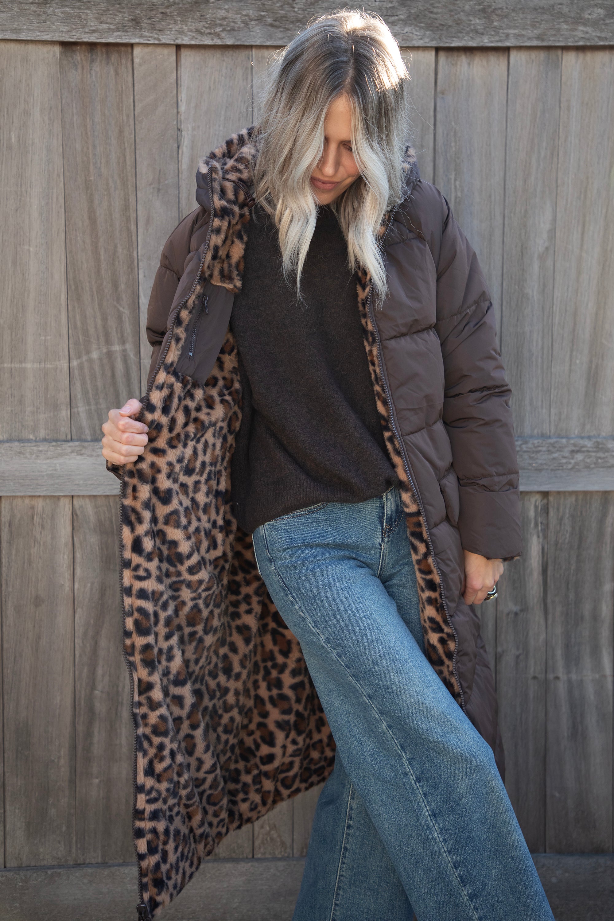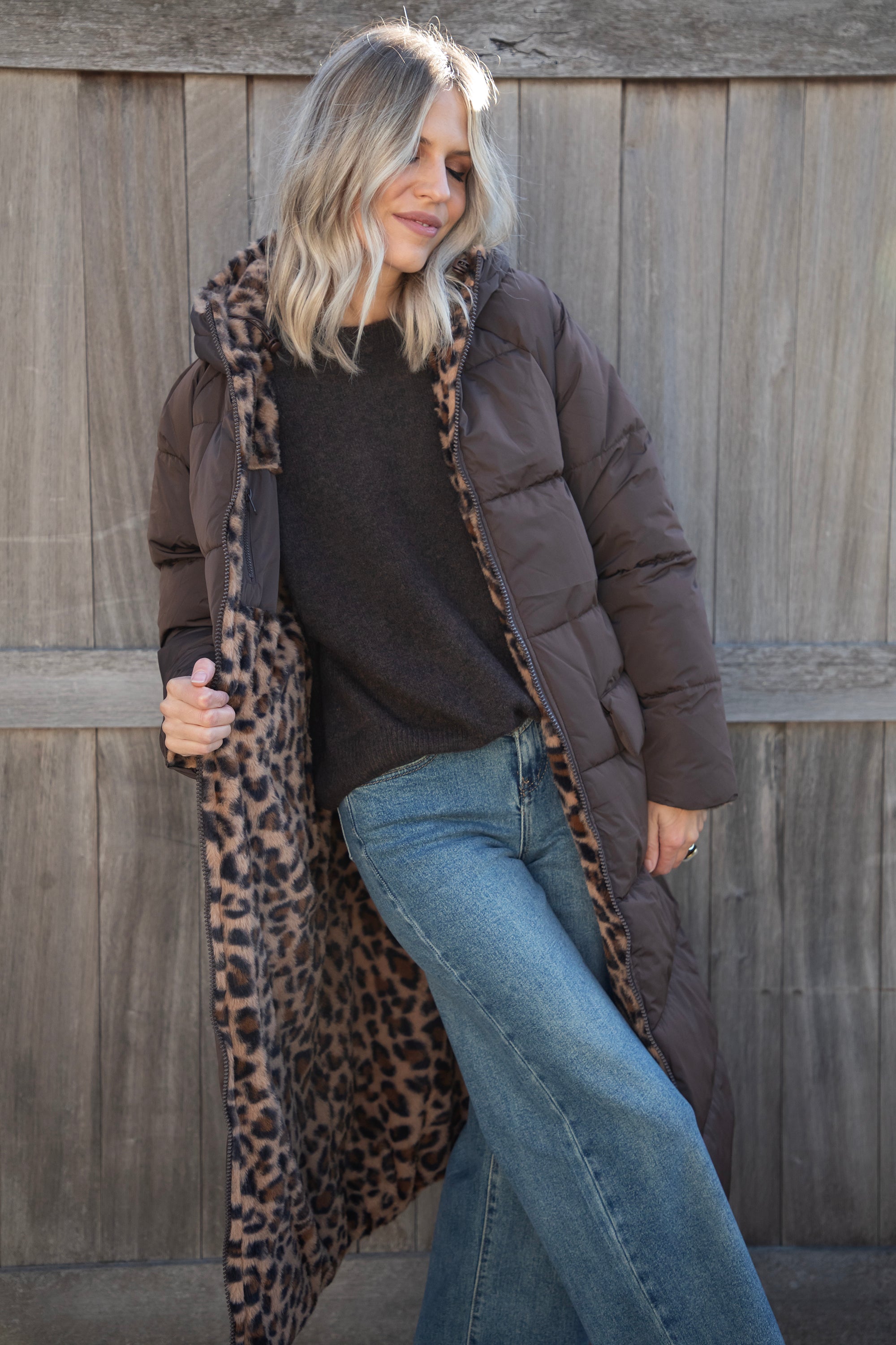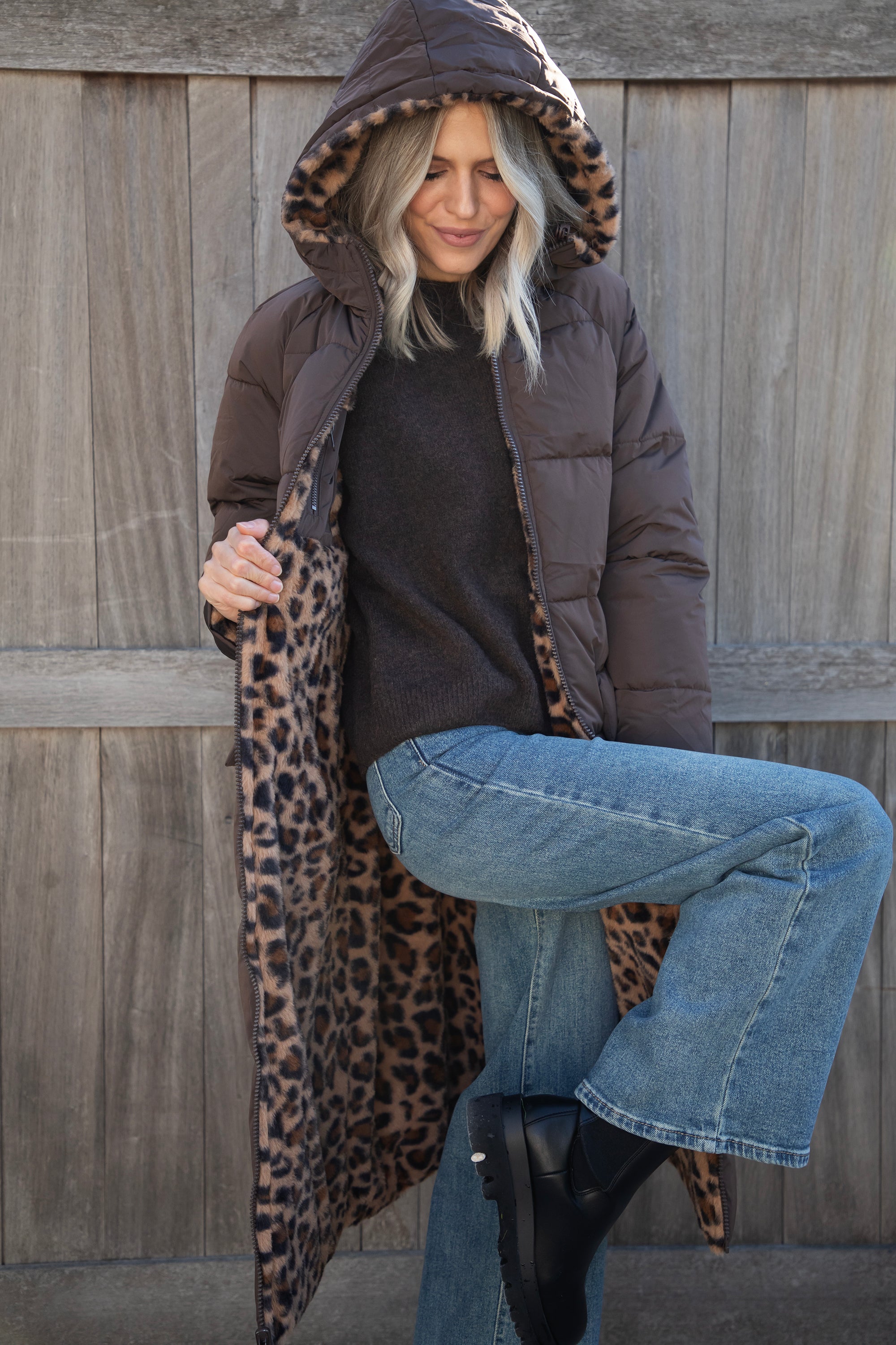 The Reversible is BACK, ladies! The coat you can wear on both sides 😍 Will you go for the puffer look on the outside or the soft leopard faux fur look? 🐆 Your choice! You get two coats in one! And in that gorgeous seasonal color, chocolate... the love is real 🤎