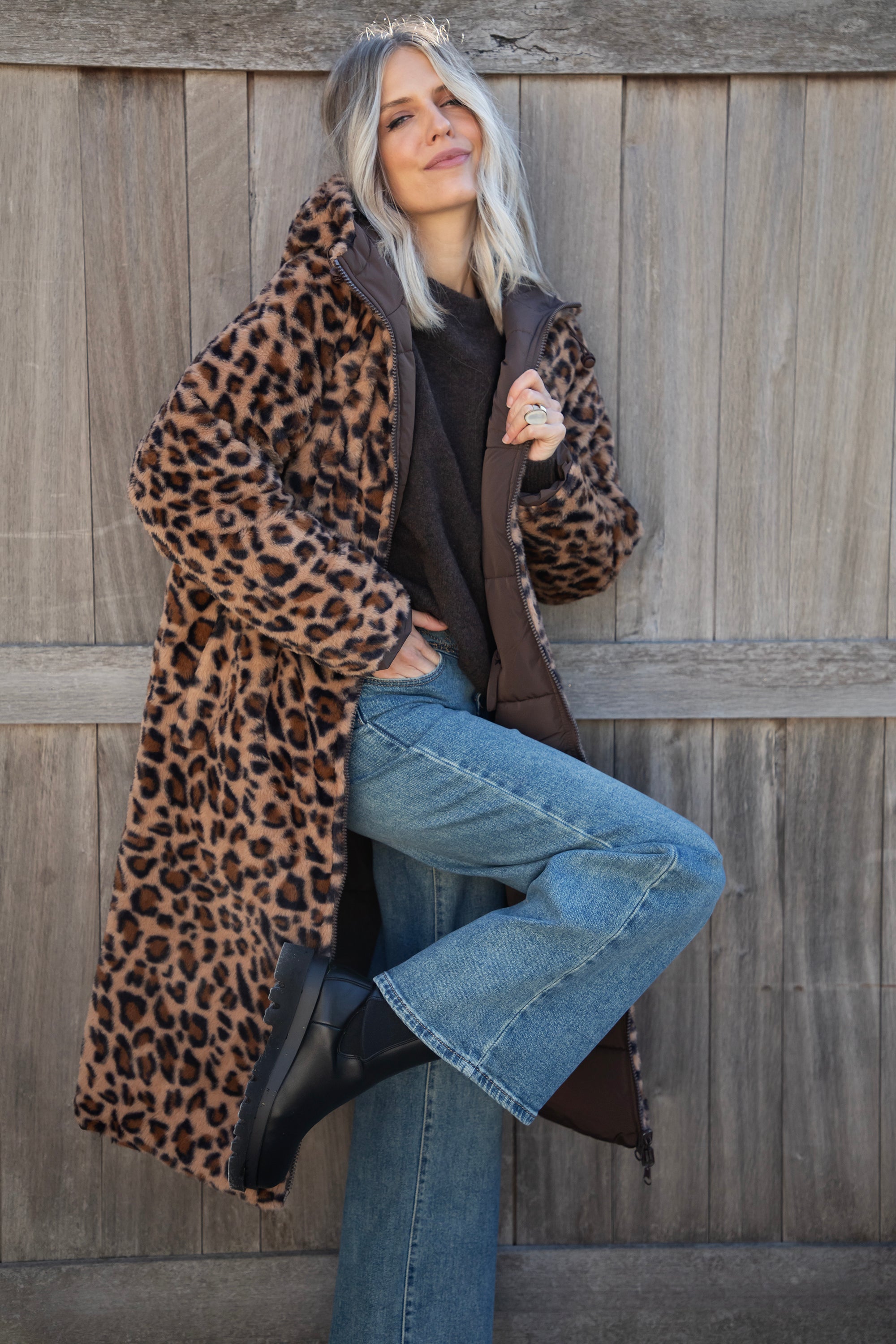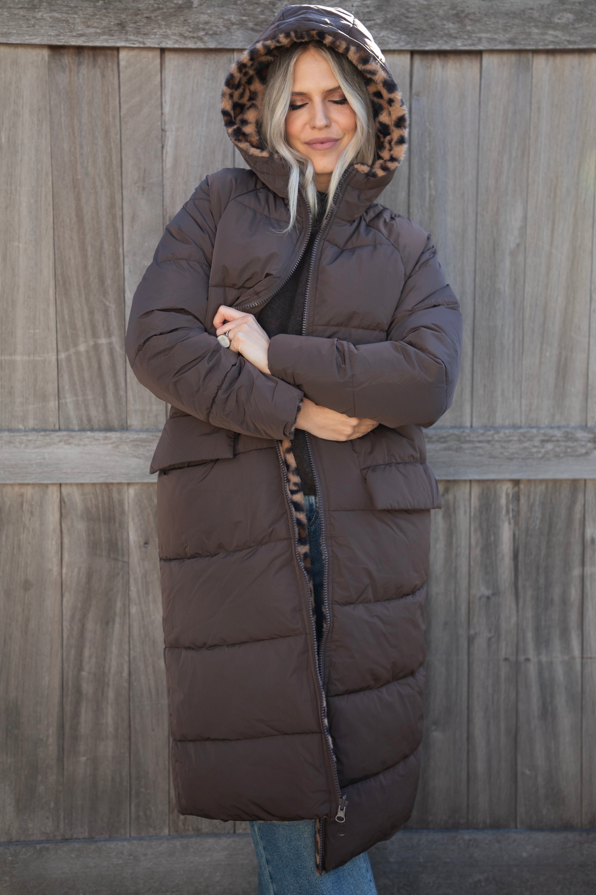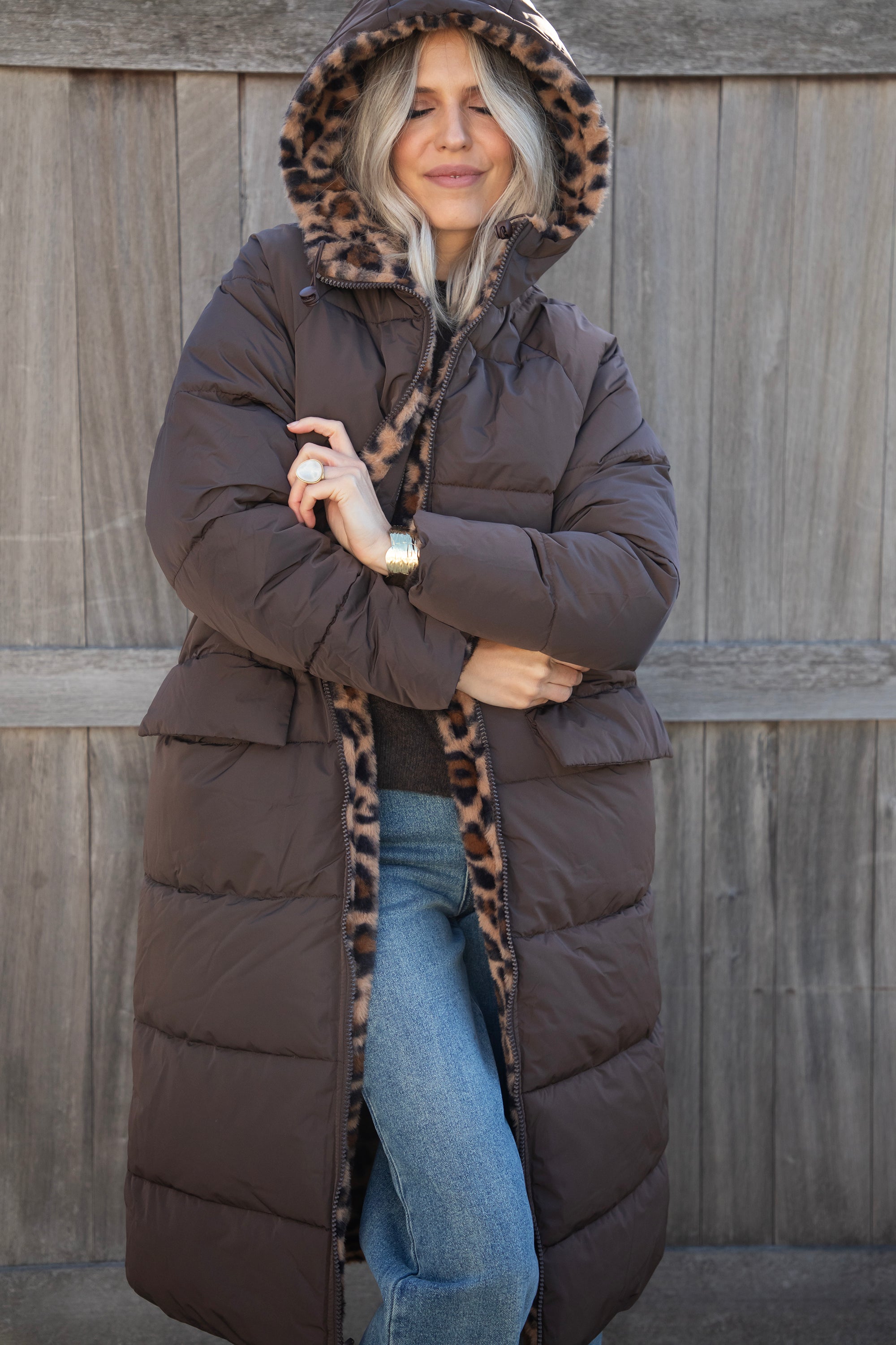 The Reversible is BACK, ladies! The coat you can wear on both sides 😍 Will you go for the puffer look on the outside or the soft leopard faux fur look? 🐆 Your choice! You get two coats in one! And in that gorgeous seasonal color, chocolate... the love is real 🤎