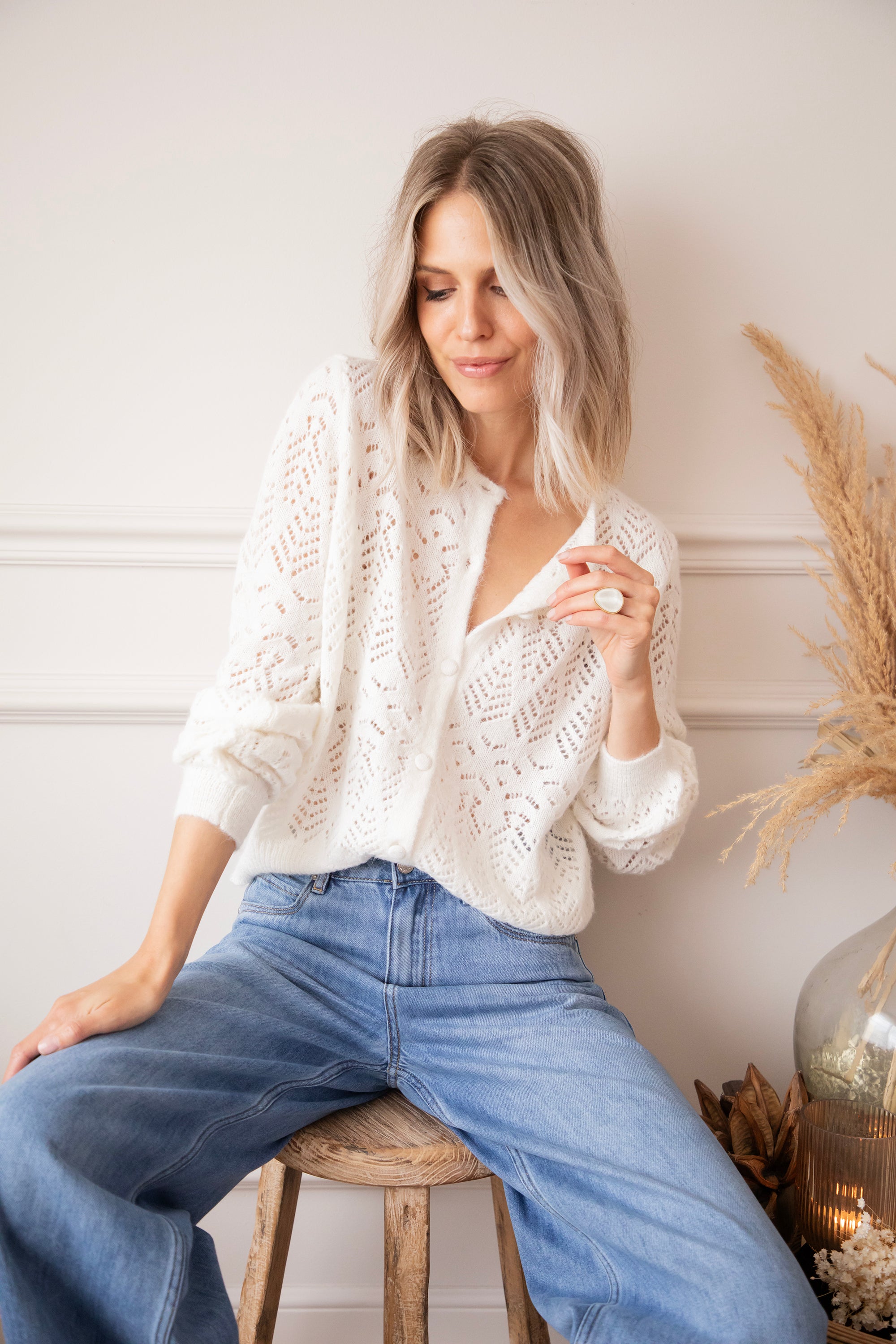 I always find crochet cardigans like this very handy to have hanging in your closet as an extra layer over your top or as a sweater on casual jeans 🙌 You always have an outfit ready with this topper!