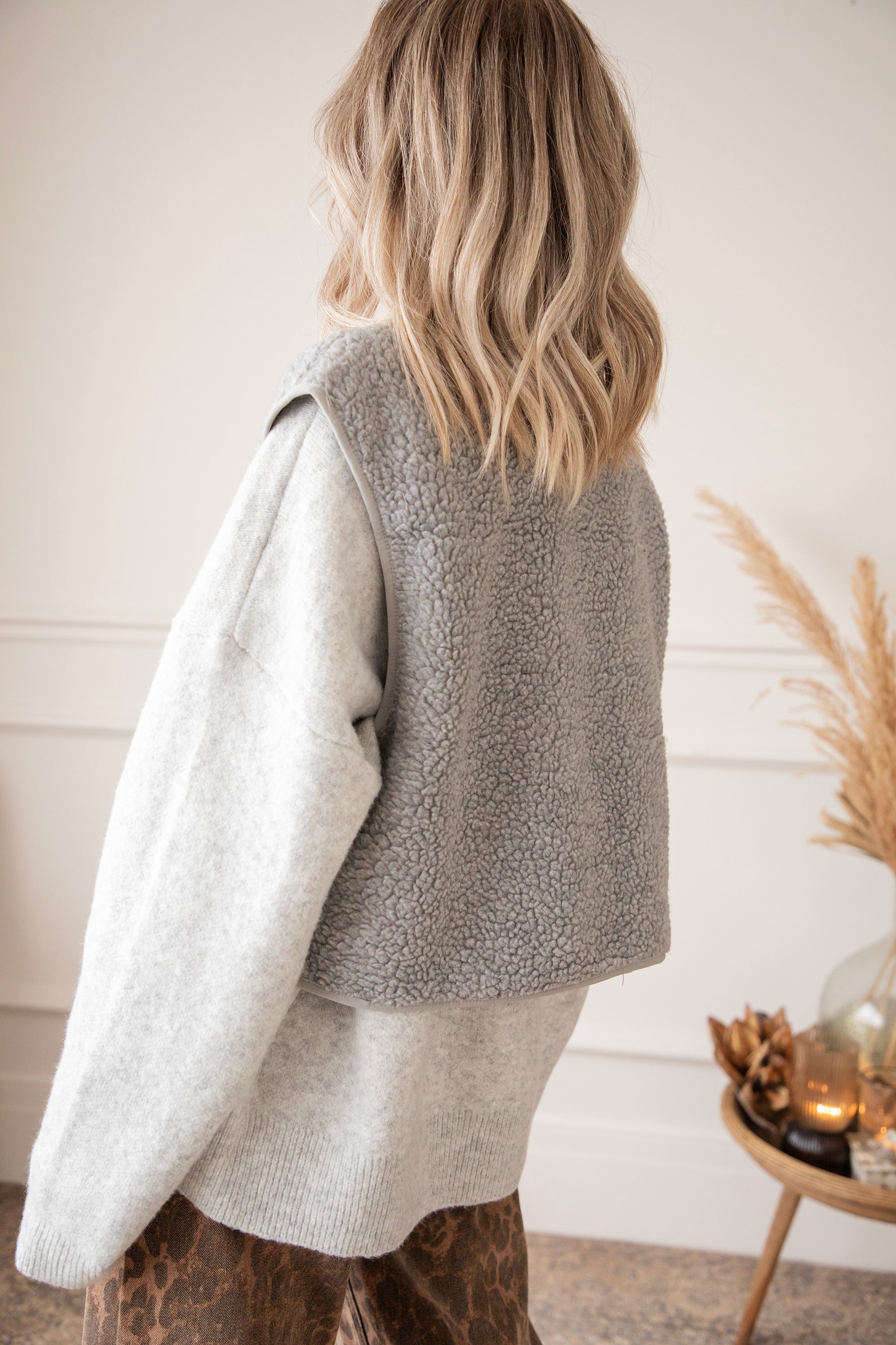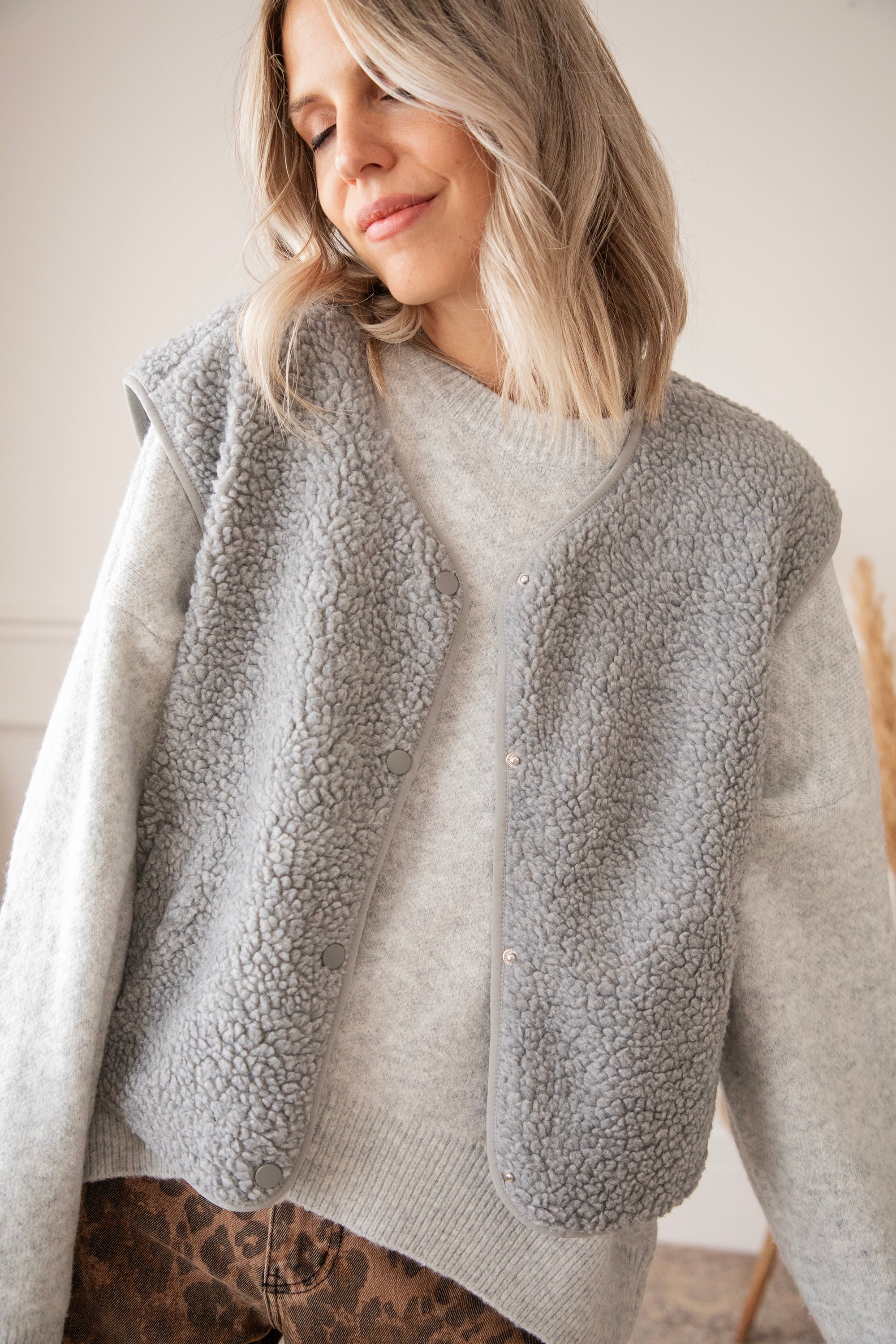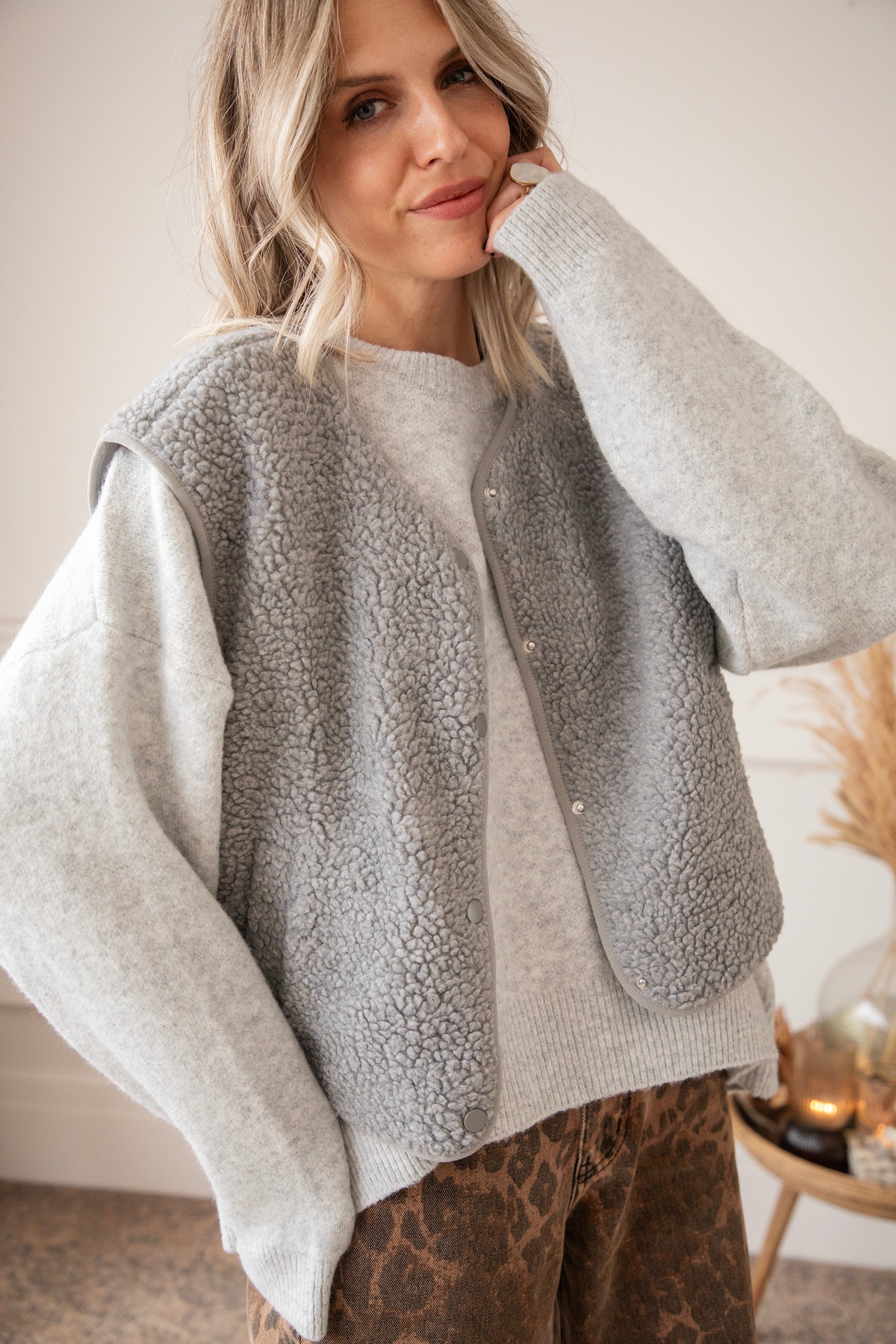 Fall means cozy layers, cozy vibes, and those soft fabrics you just want to snuggle up in 🍂 This sleeveless teddy cardigan feels like a hug and instantly adds an extra dose of warmth and comfort to your outfit. It's the kind of item you can easily throw on over anything: a basic tee, a blouse, a sweater—and instantly give your outfit a casual-chic twist 🤍