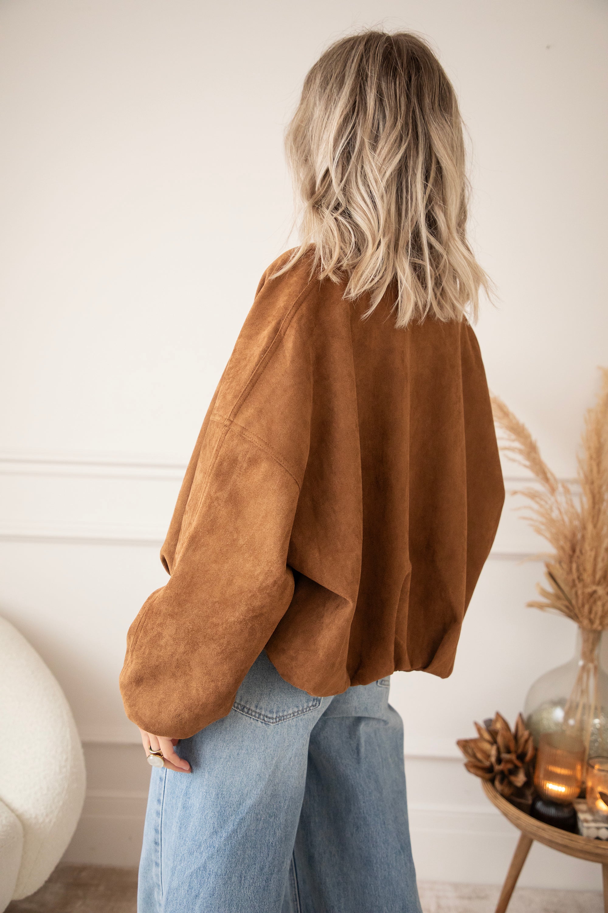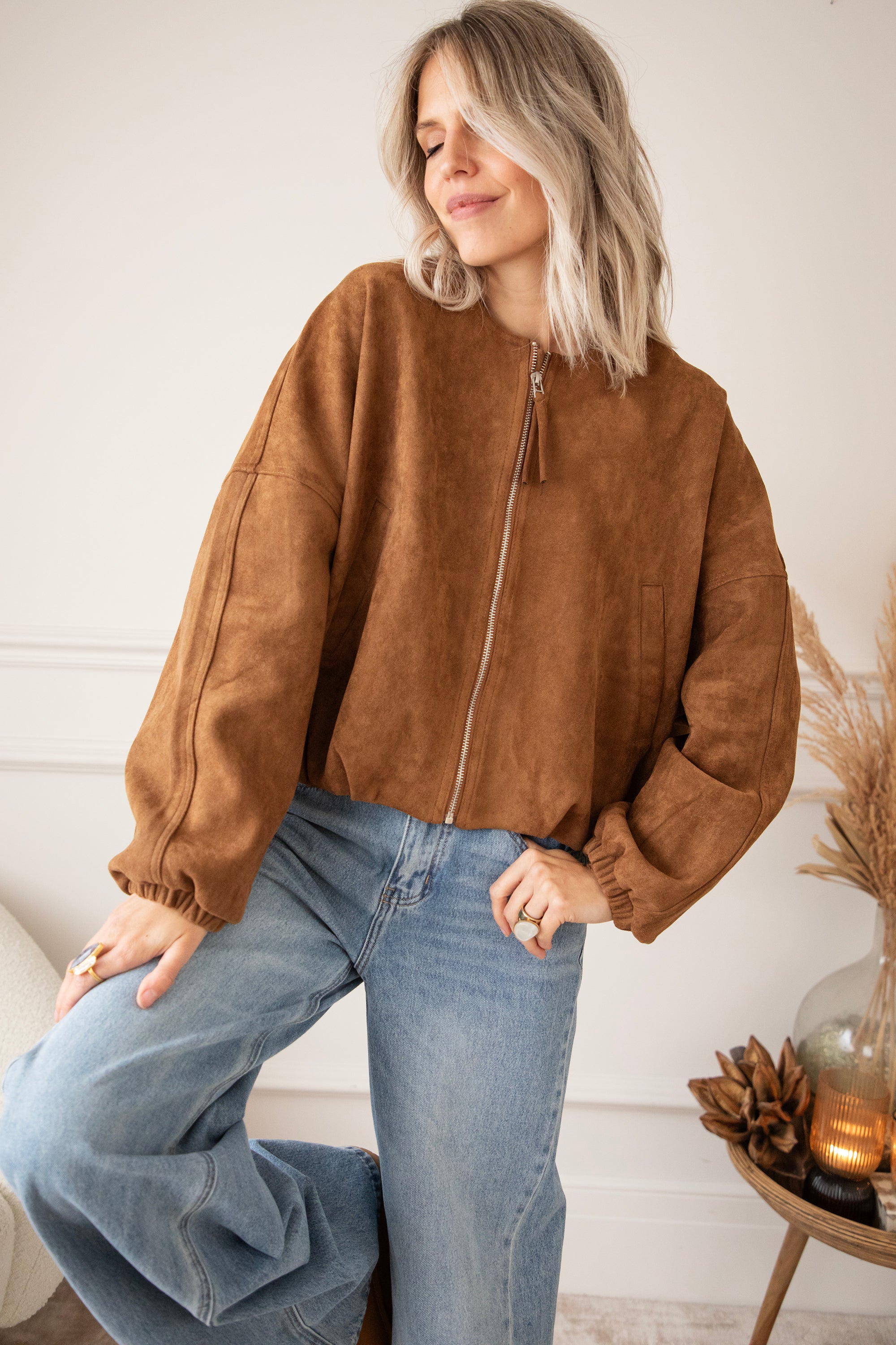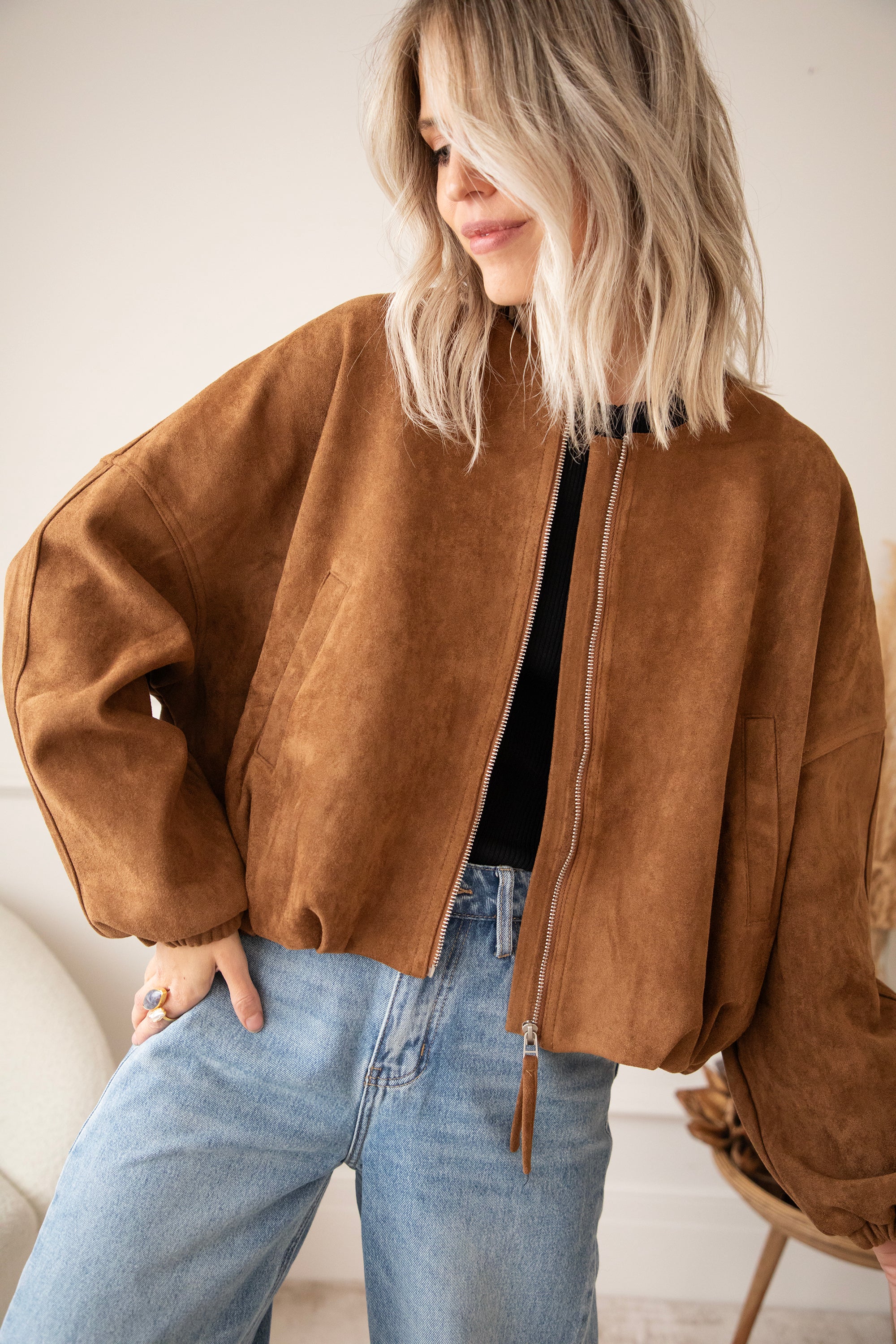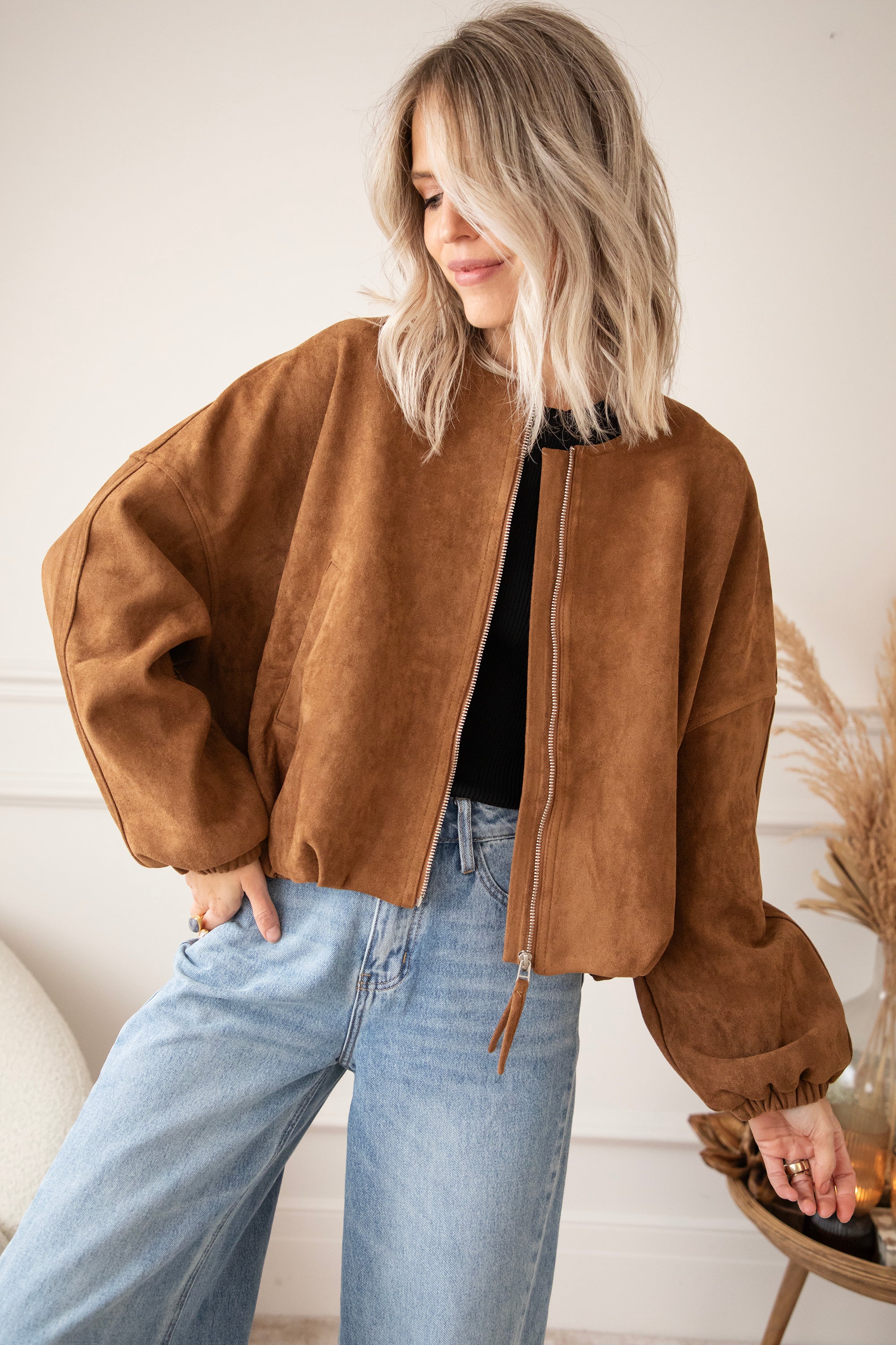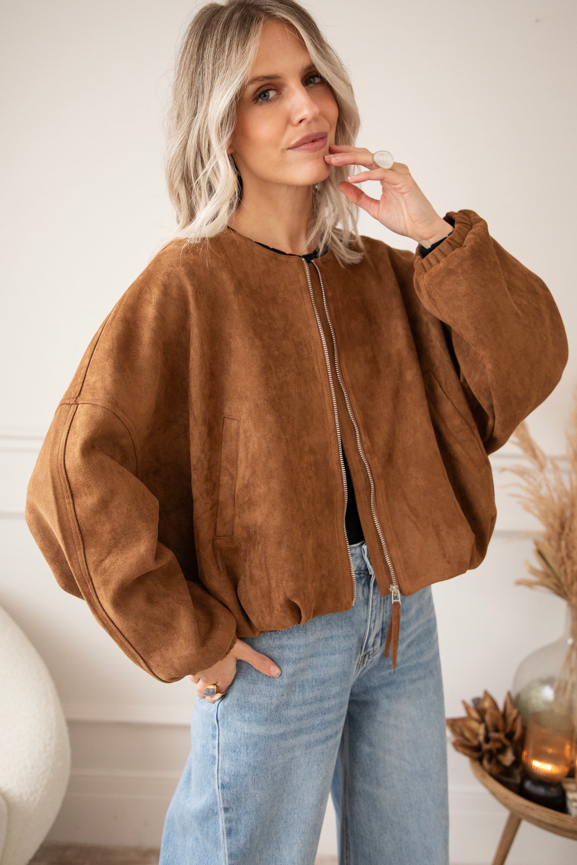 Hey girls… meet Yvana Velour! Without a doubt, this is the jacket of the season! 🥰 The perfect mix of comfy & trendy, with that typical bomber fit and a soft suede look that is just made for autumn 🍂 The caramel shade radiates warmth and literally goes with every outfit, from your favorite jeans to a cozy knit dress!