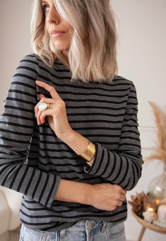 With the most beautiful collar 🥹 Striped and burgundy... that's enough for me, hehe! Come to mamaaa 🤗 AND THAT COLLAR! Ooh, I love it! Buttoned up to the top with fancy gold embossed buttons ✨ This sweater has so...