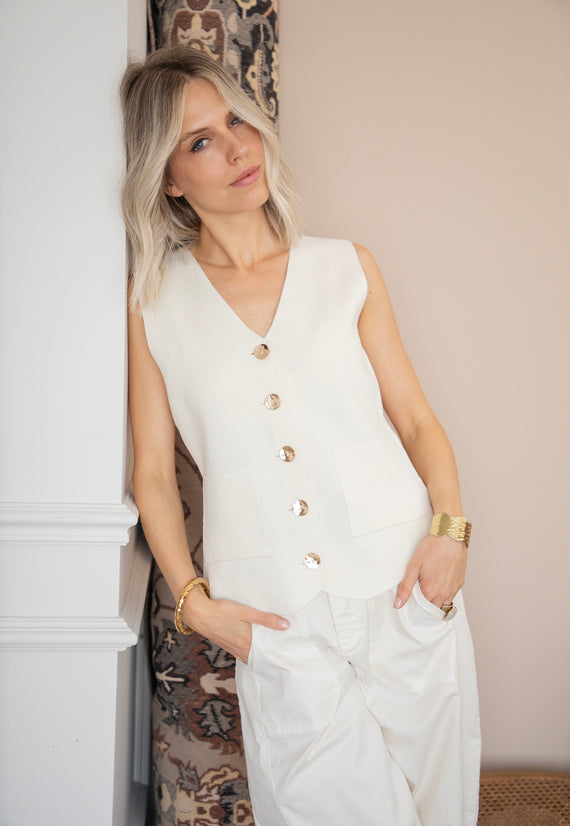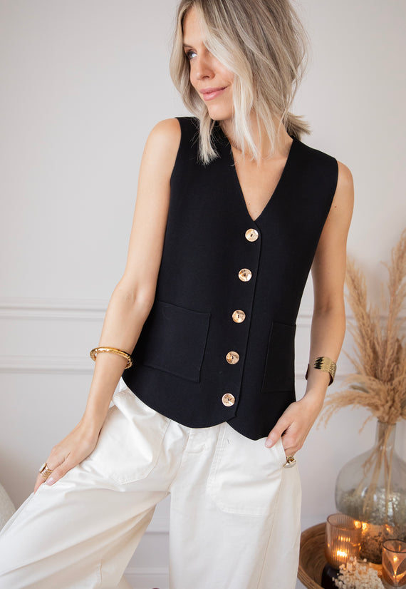 With the most beautiful buttons Ohhh girls, a sleeveless jacket instantly gives your look a dressed-up feel, especially when it has those gorgeous gold decorative buttons! That's exactly why I love Jacky so much; it combines comfort with a touch...