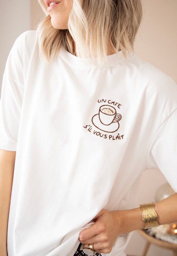 Un café s'll vous plait! ☕️ Our Coffee Love shirt was such a hit that we just had to make a sequel! Time for even more fun loose shirts with that cozy coffee vibe. Un Café is the result: a...