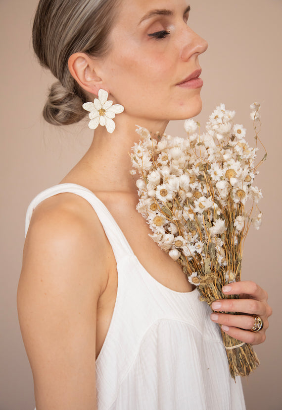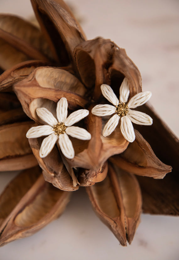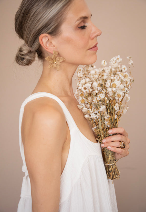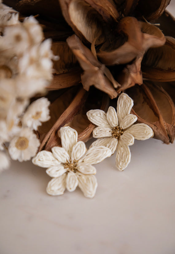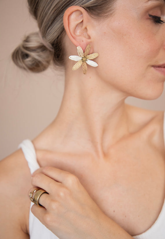 Blooming ears! 🌼 Oh, what a cute pair of earrings! 🥹 We're seeing lots of raffia earrings this season, and they've stolen my heart too! This pair beautifully covers your ear with its rattan leaves and gold details in the...