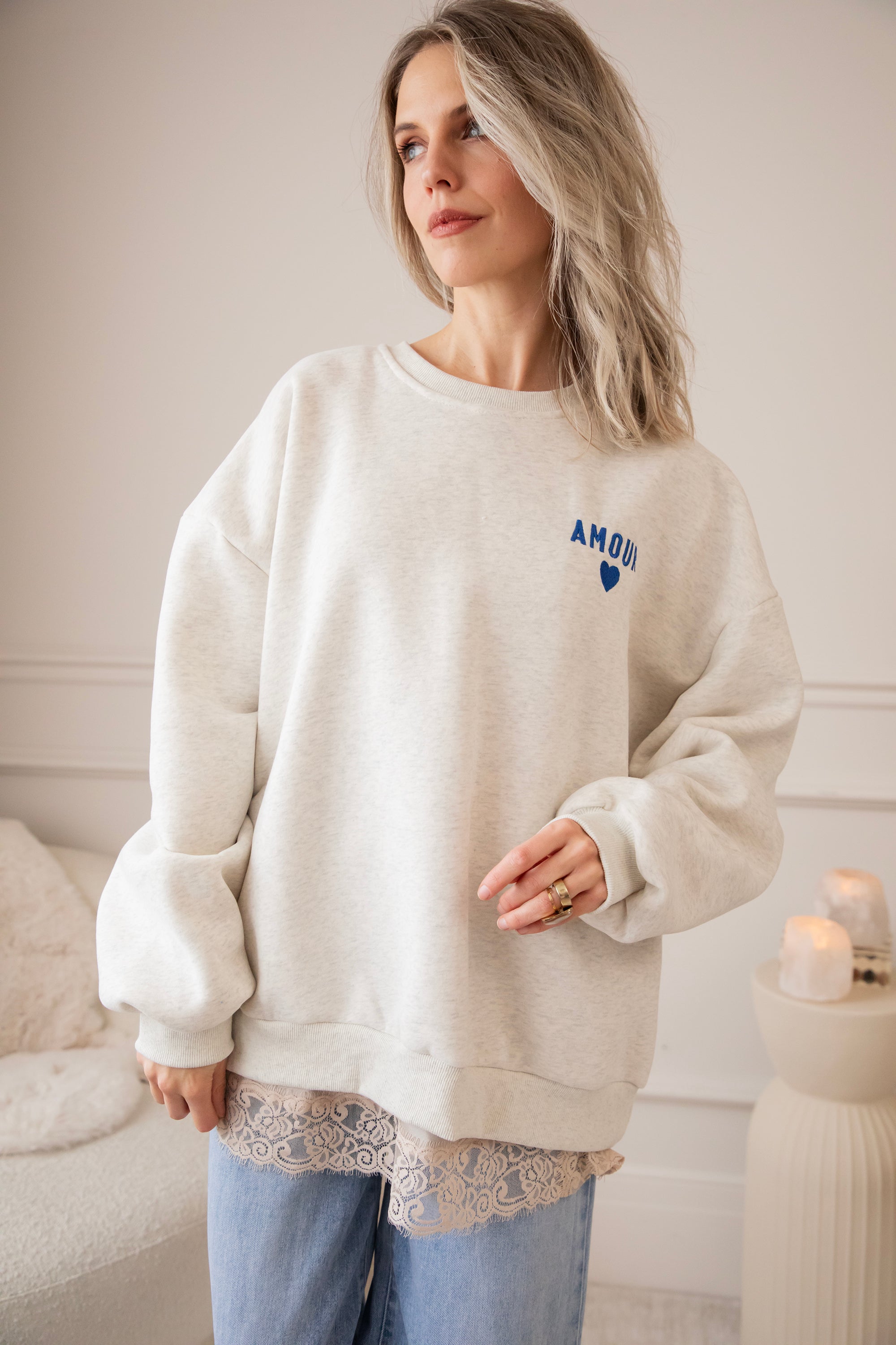 Our Simplicity sweaters have been favorites for so long—and rightly so—but this version really has a special place in my heart. We had a soft embroidered “Amour” logo put on it, with a little heart underneath... need I say more? 🥹