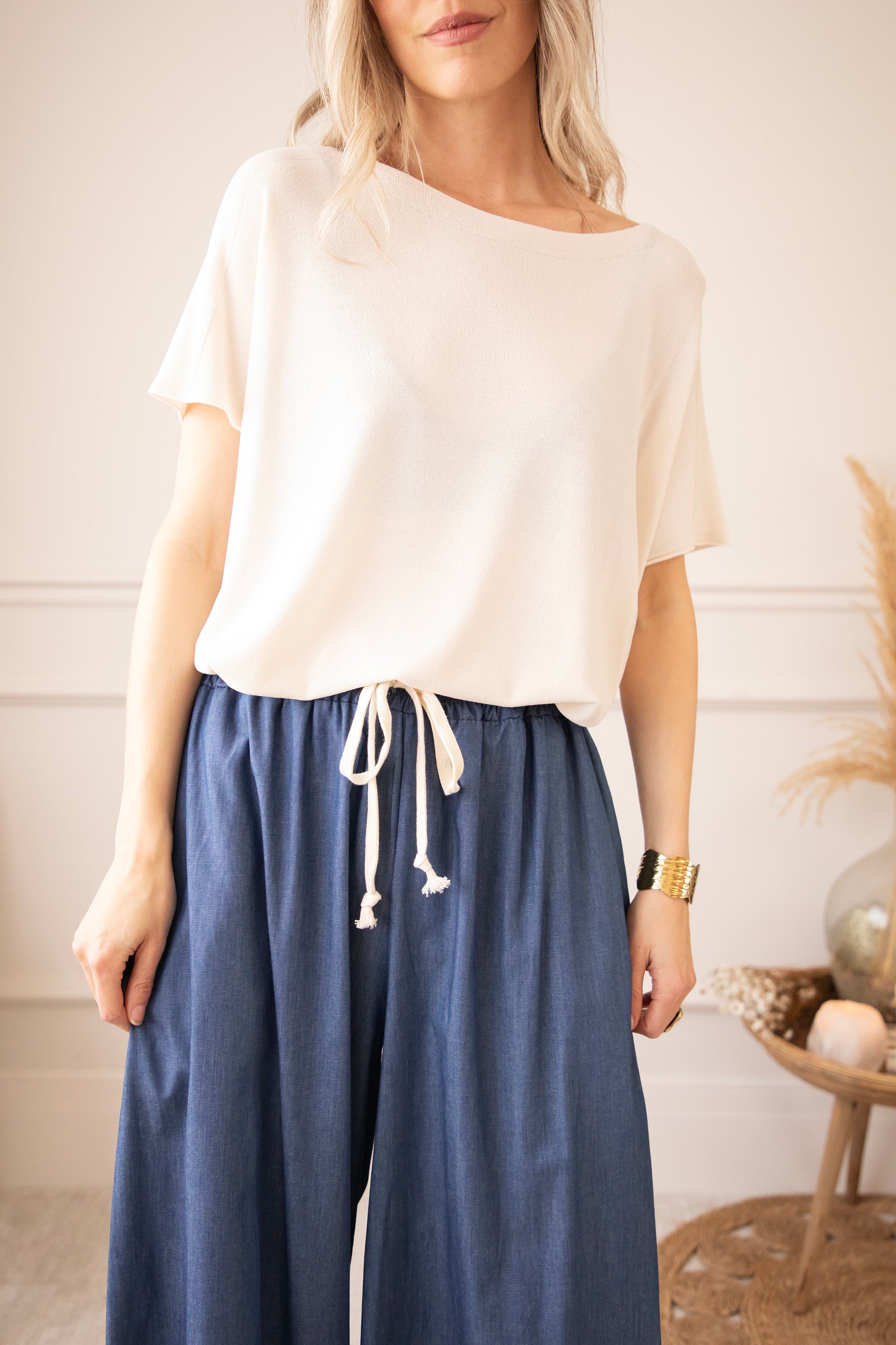 Bloom Below includes these wide, loose-fit denim pants and a matching blouse! You can order them separately though π Because they look amazing both apart and together!