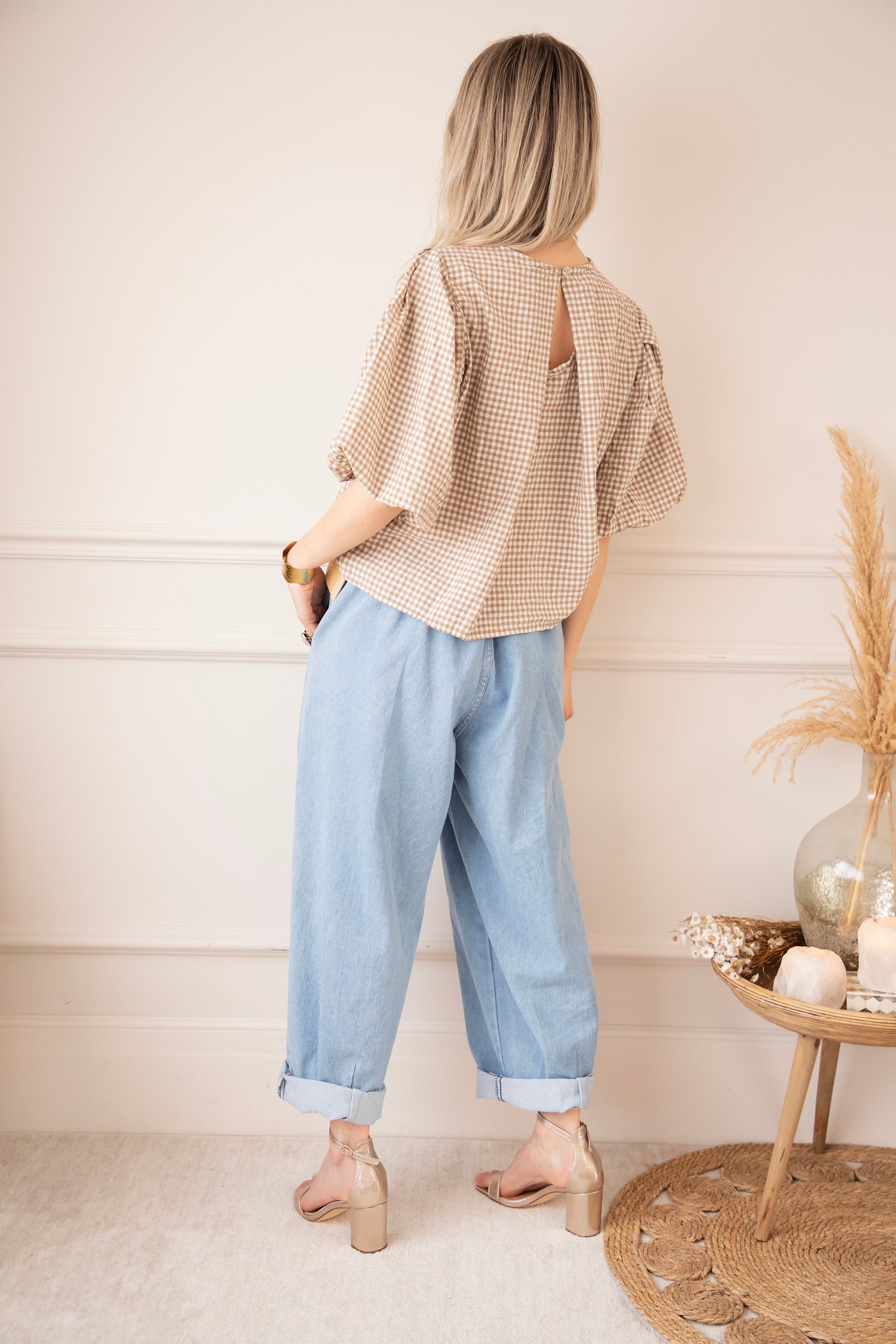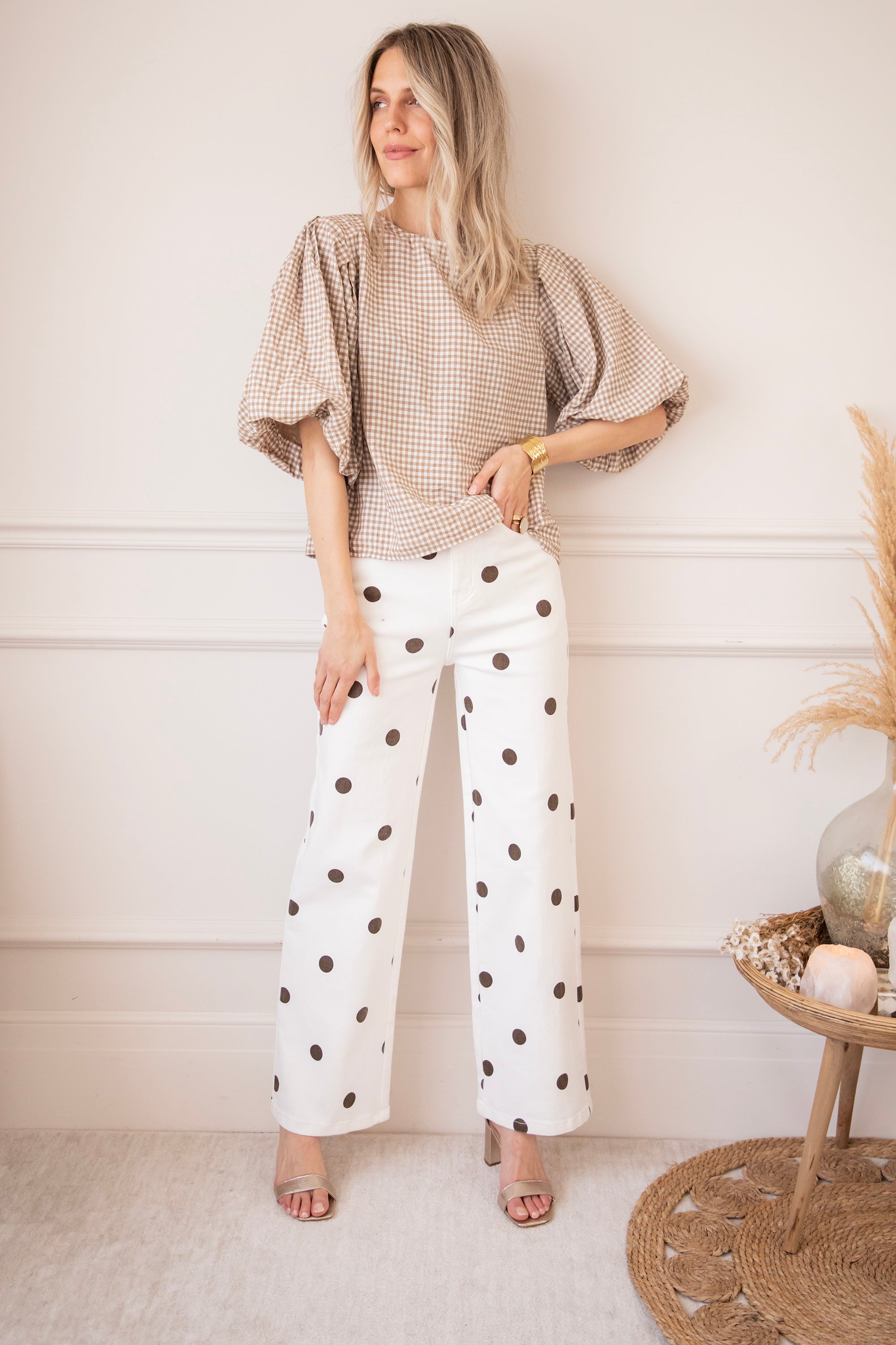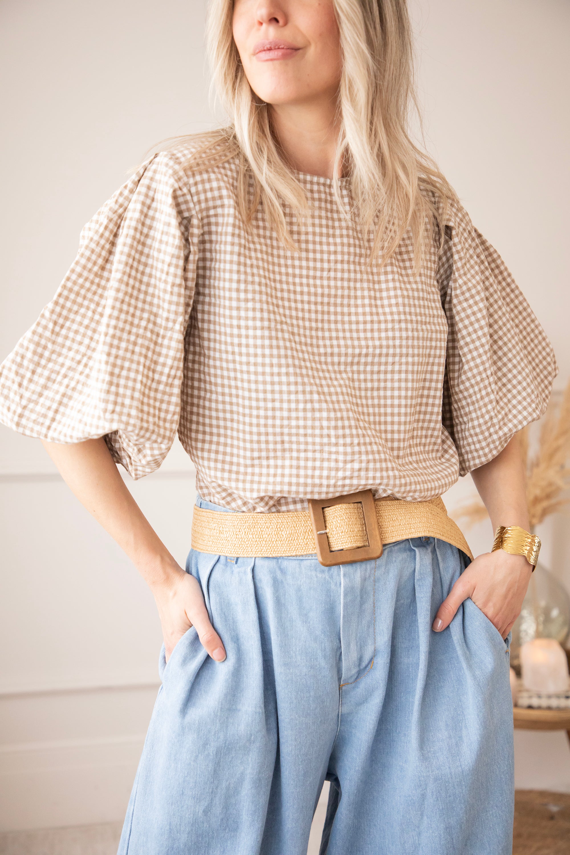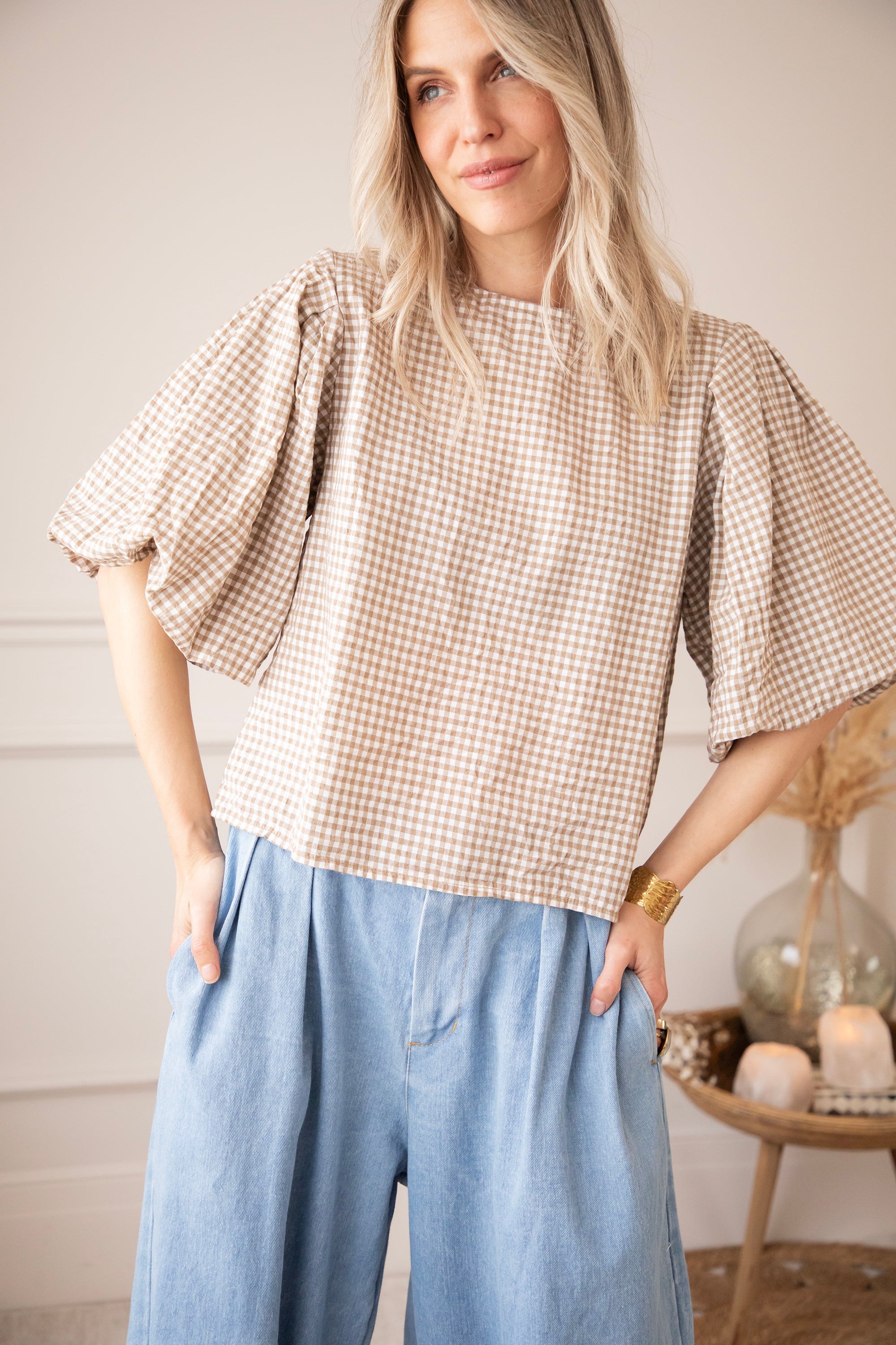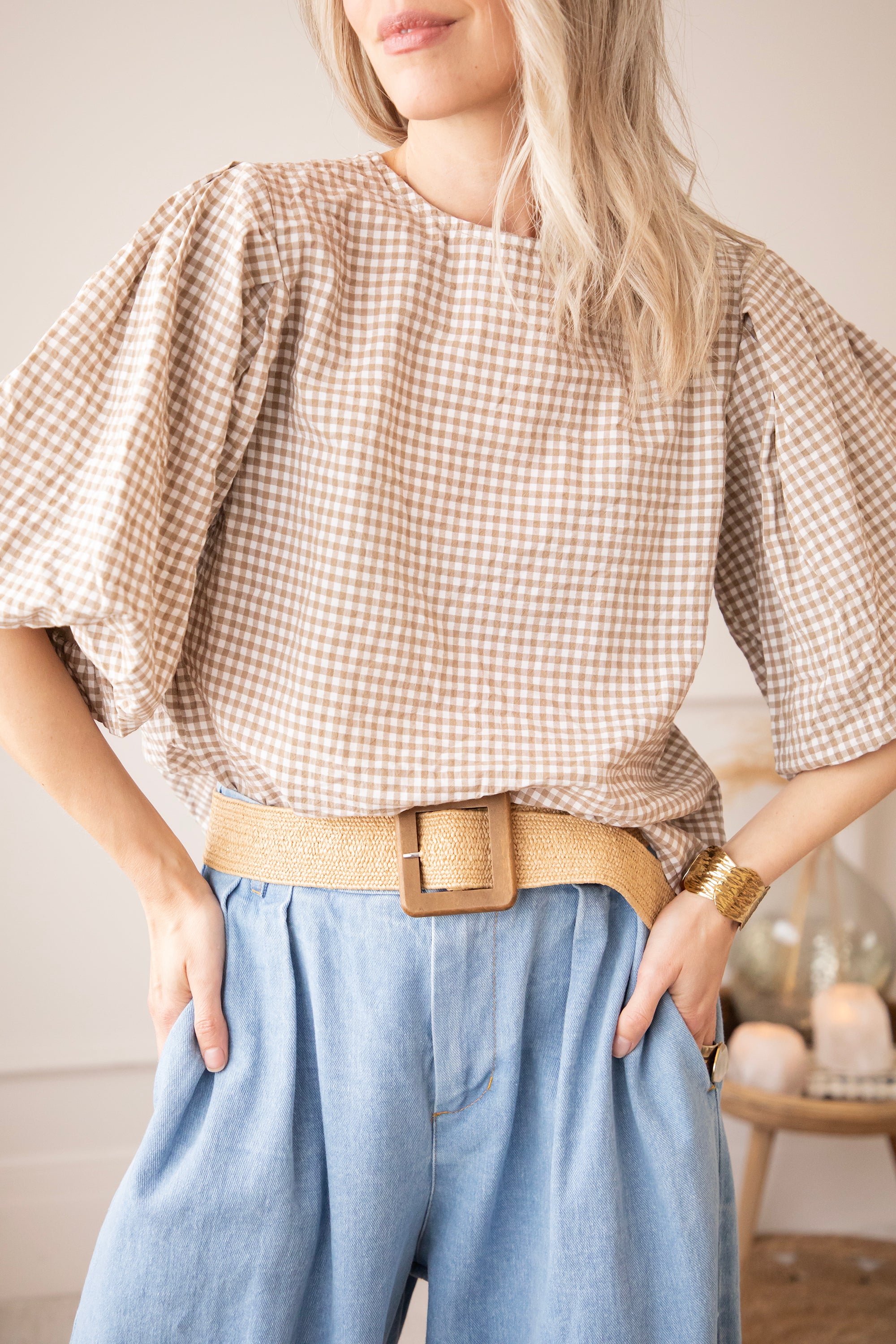 Candice Check Taupe - Blouse