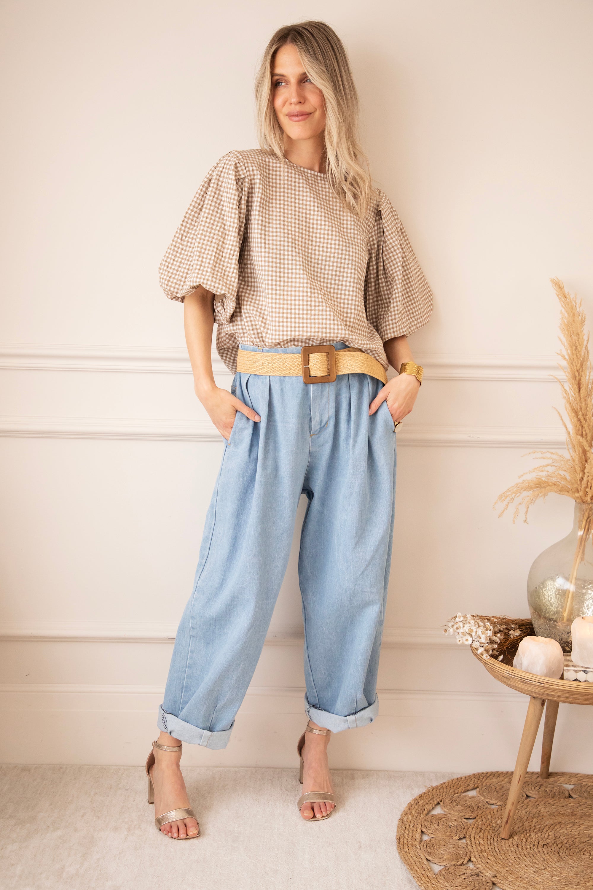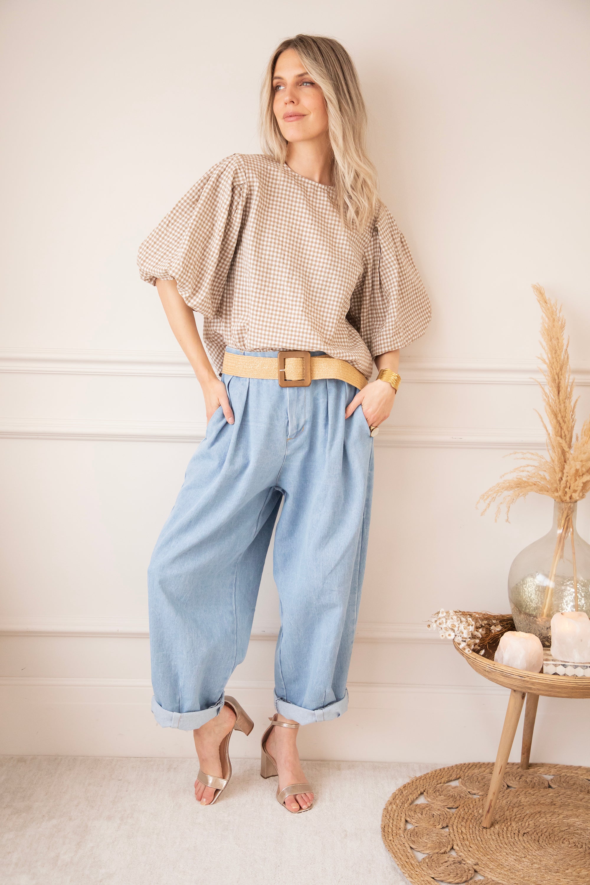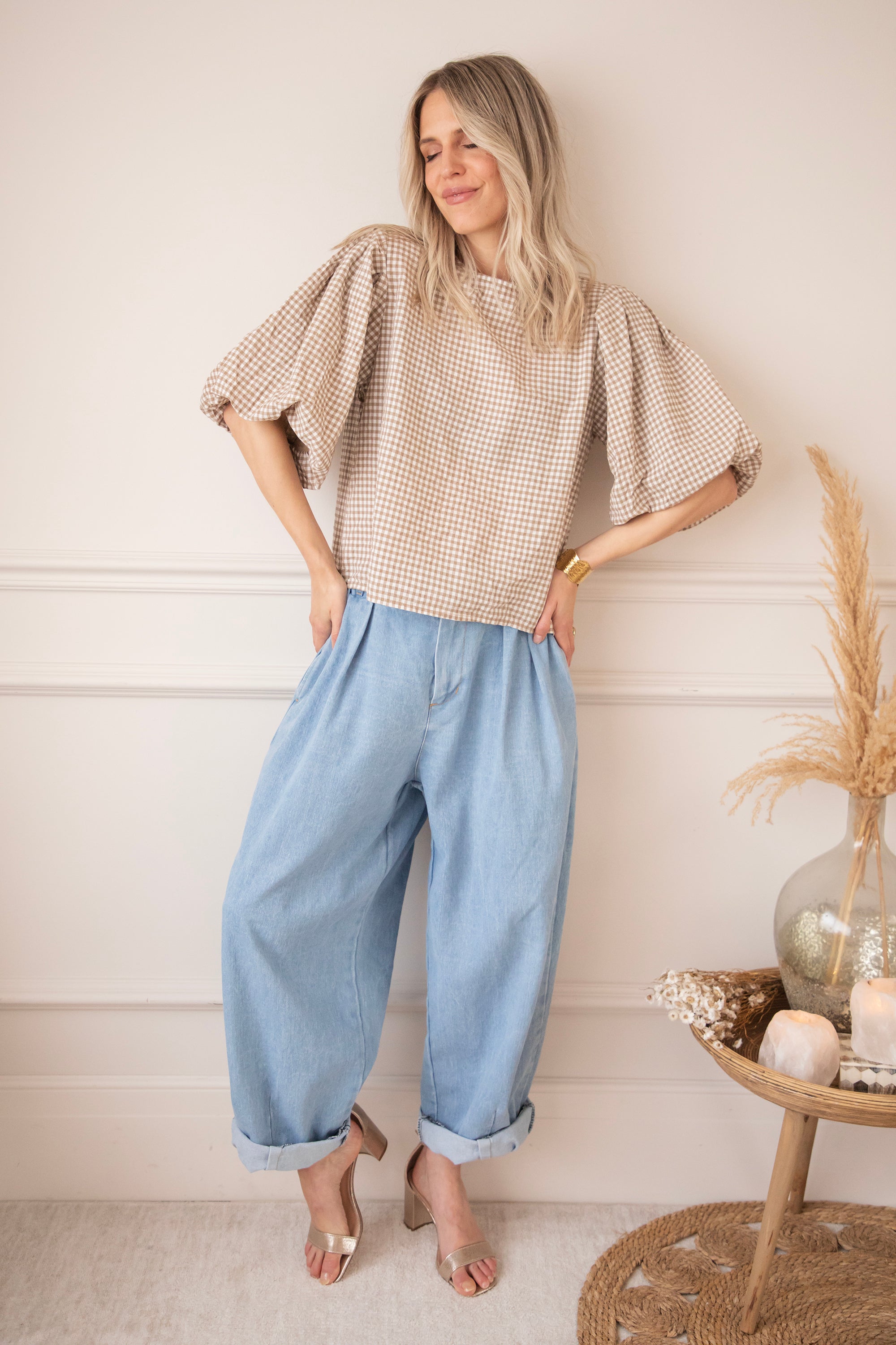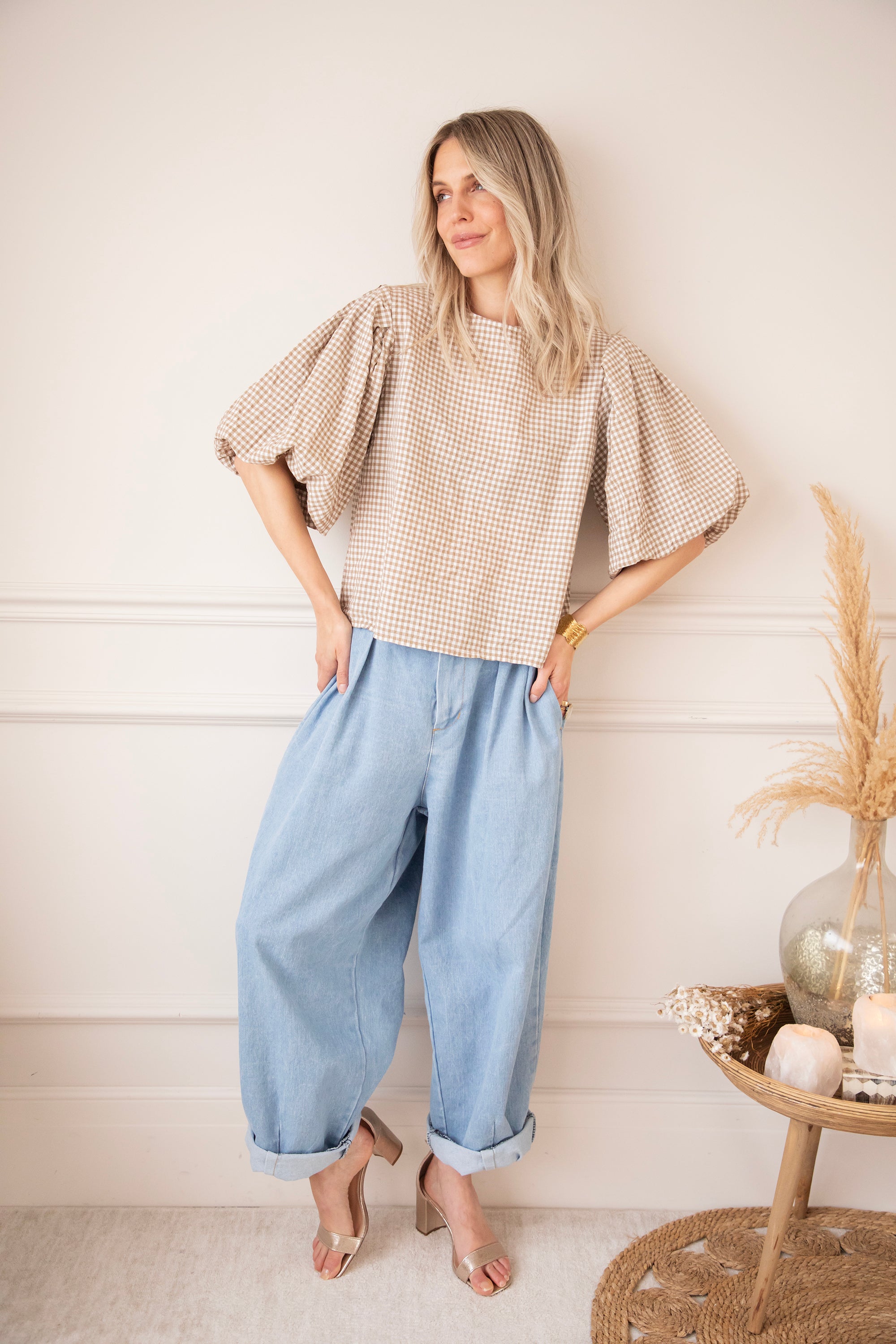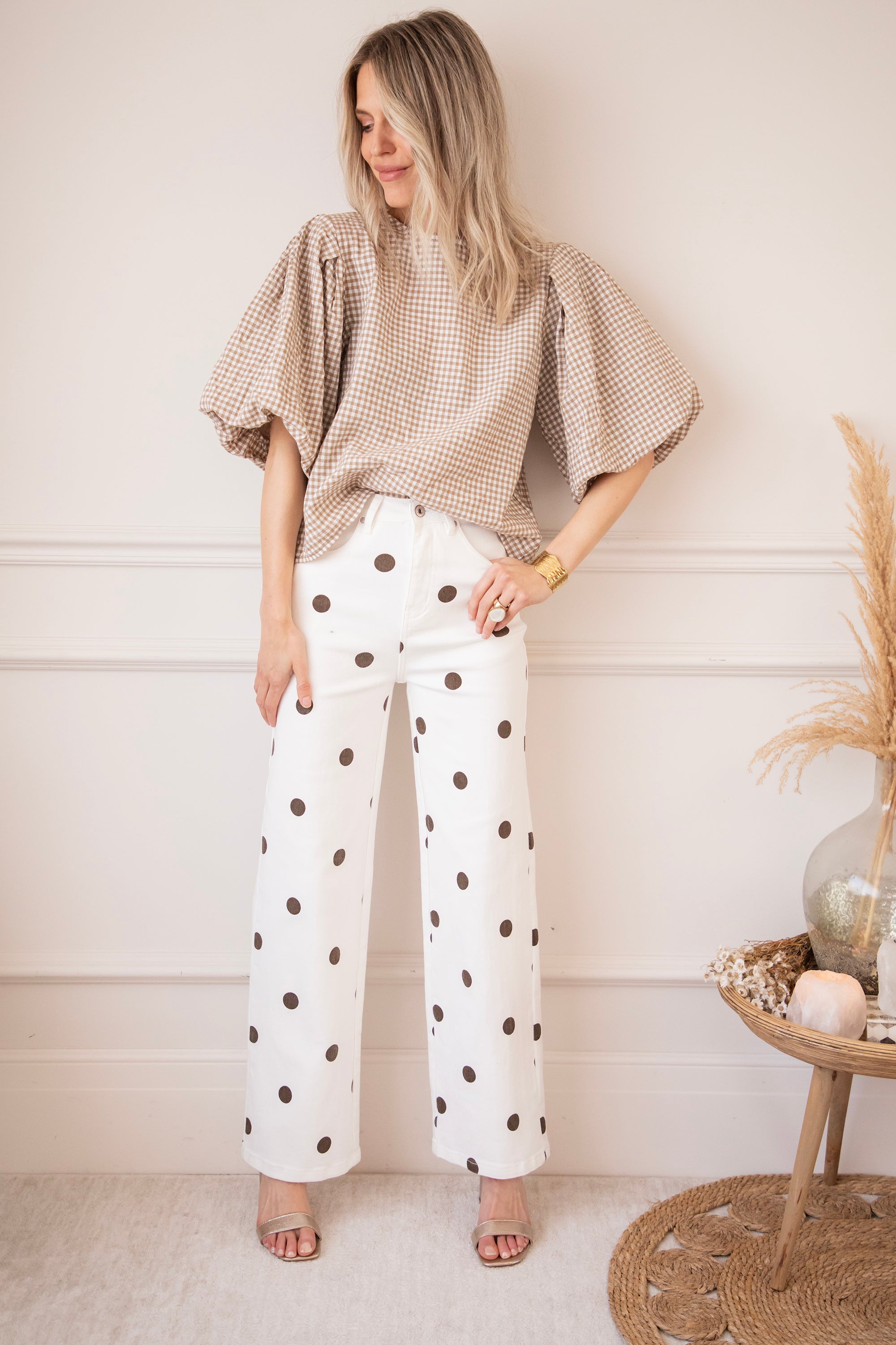 Candice Check Taupe - Blouse