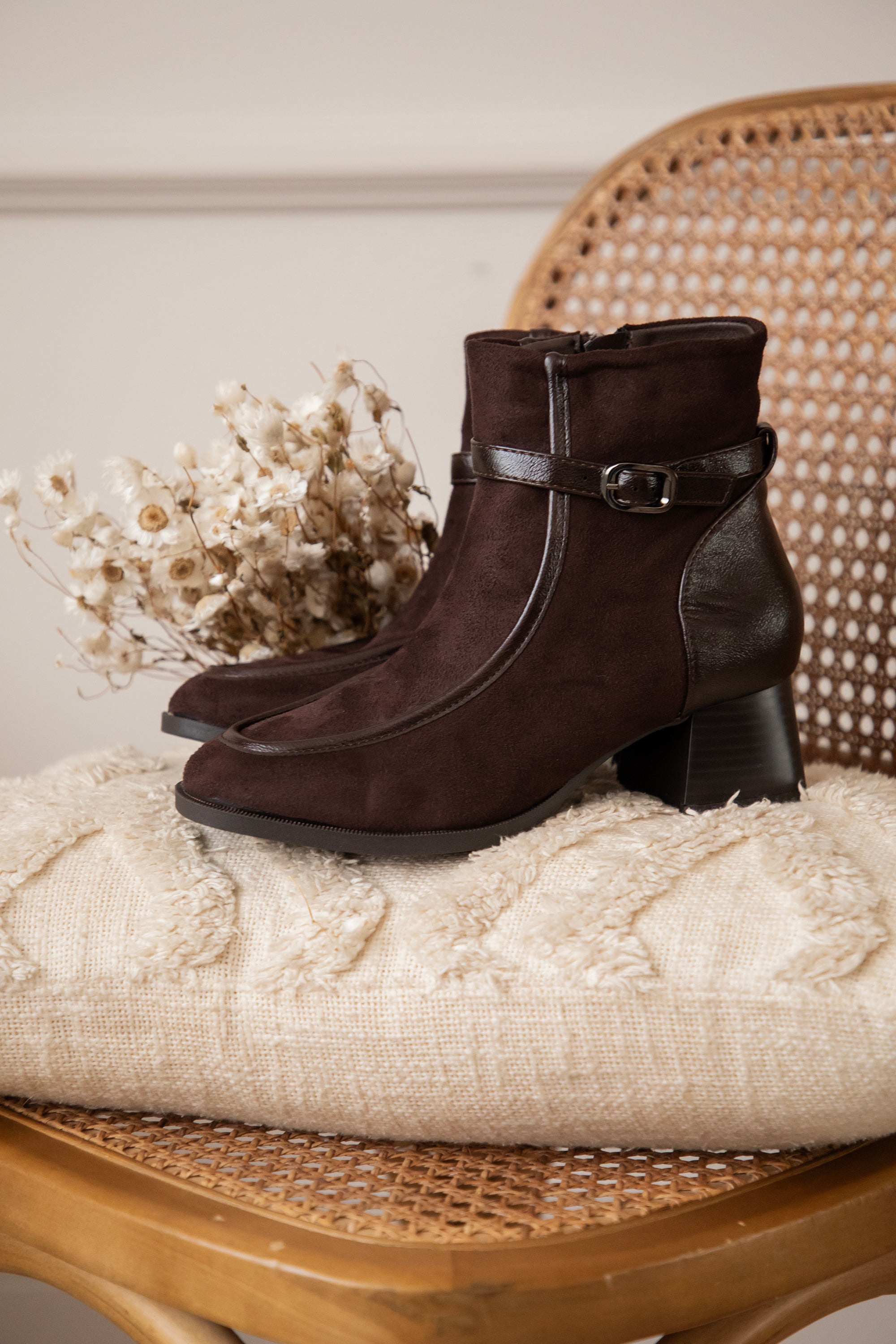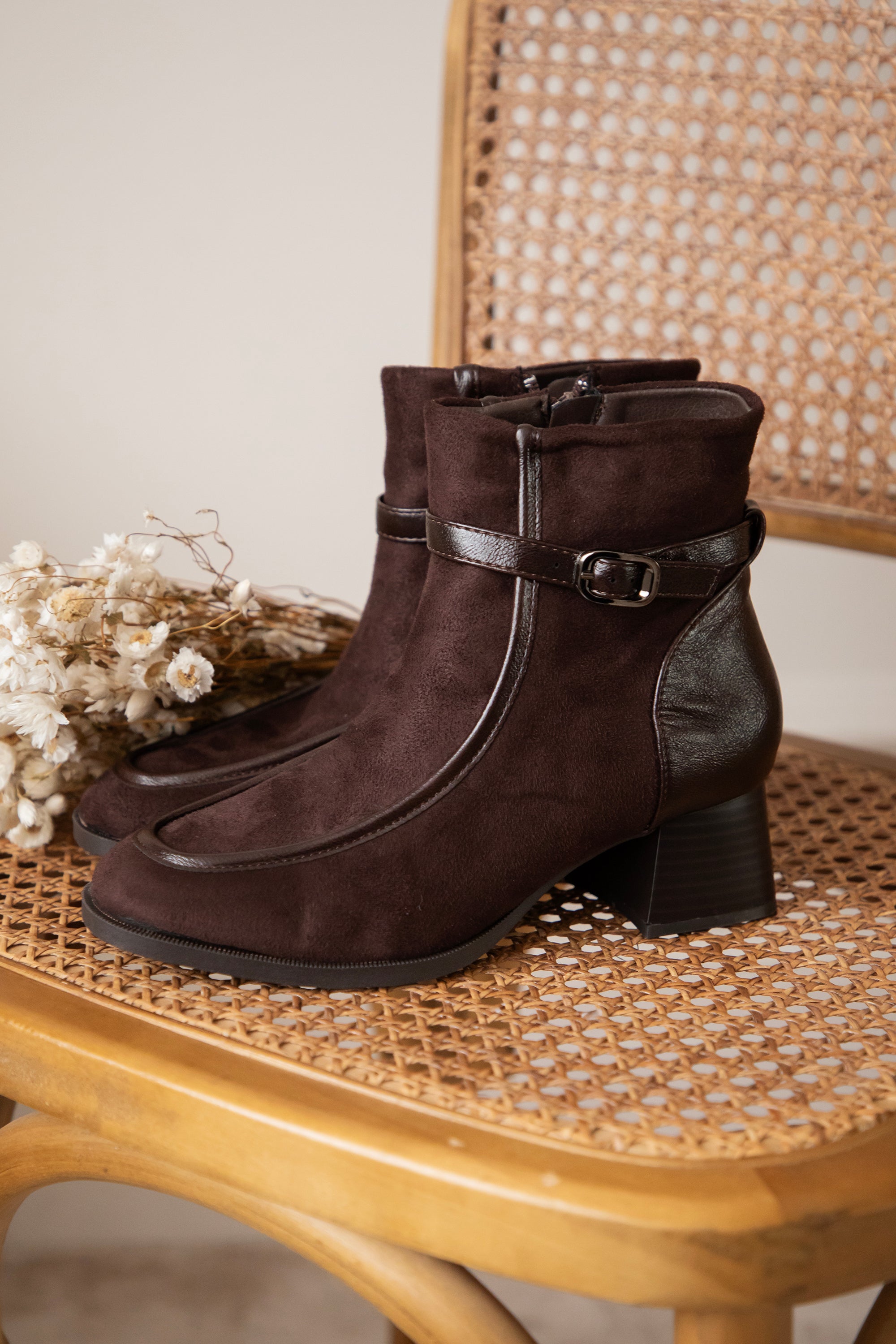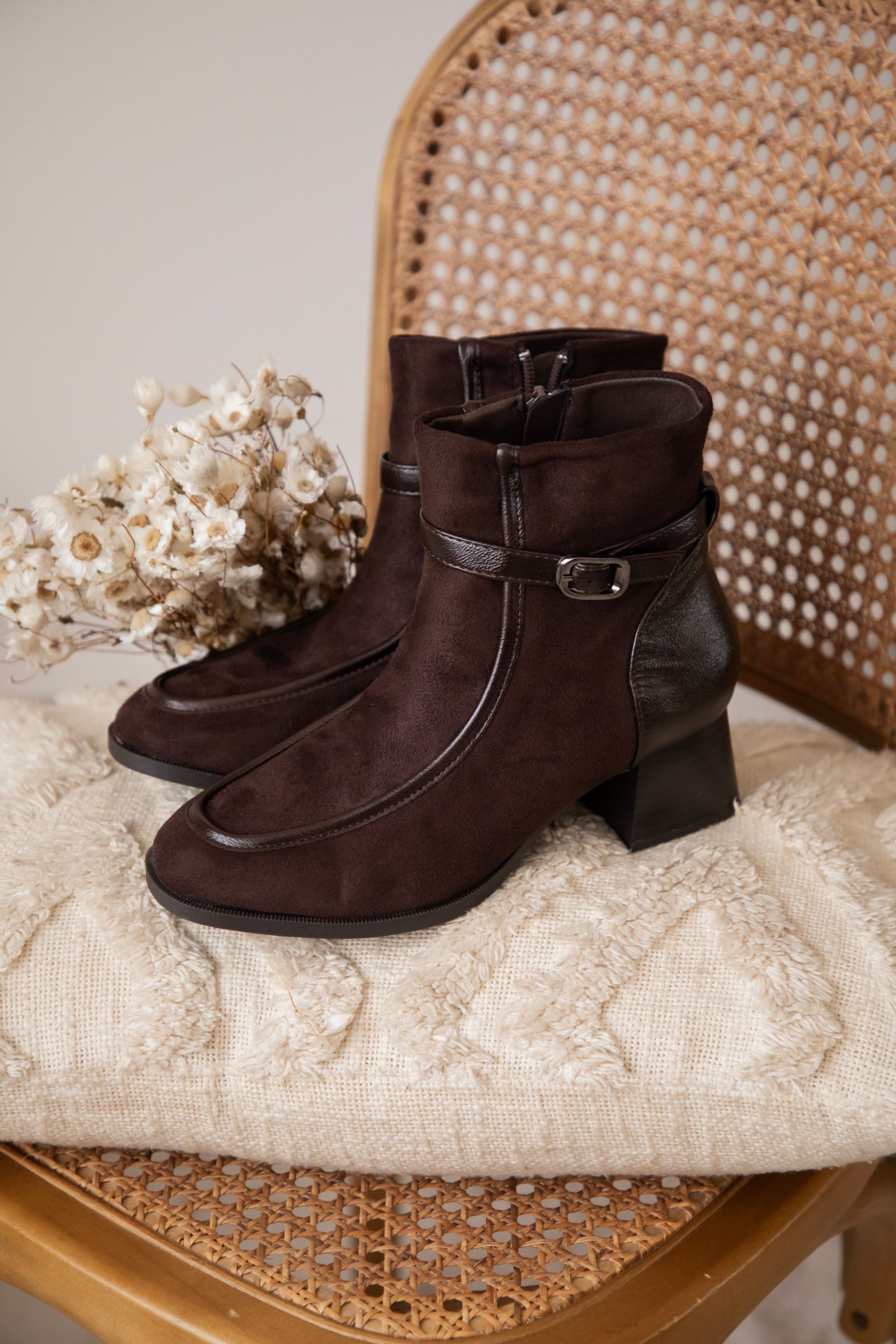 Carina combines classy and cool in one pair 🤎 They are fully lined with soft suede fabric and finished with beautiful leather details. Think of a leather patch on the heel, a fine leather strap around the ankle, and a sleek leather stripe across the instep 😍 Such nice extras that immediately give an edgy touch to a timeless design. The black sole and 5 cm block heel make them even cooler and so comfortable to wear every day 👢