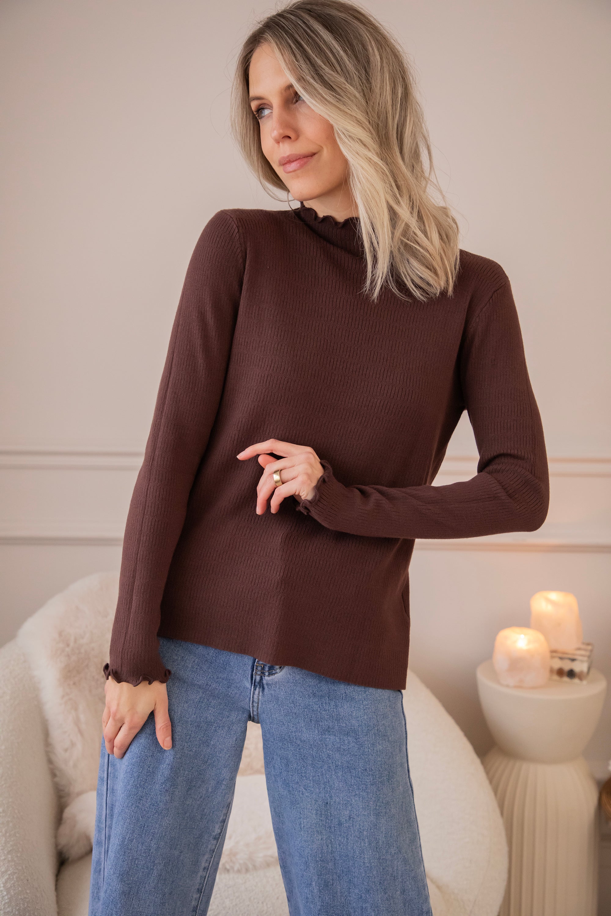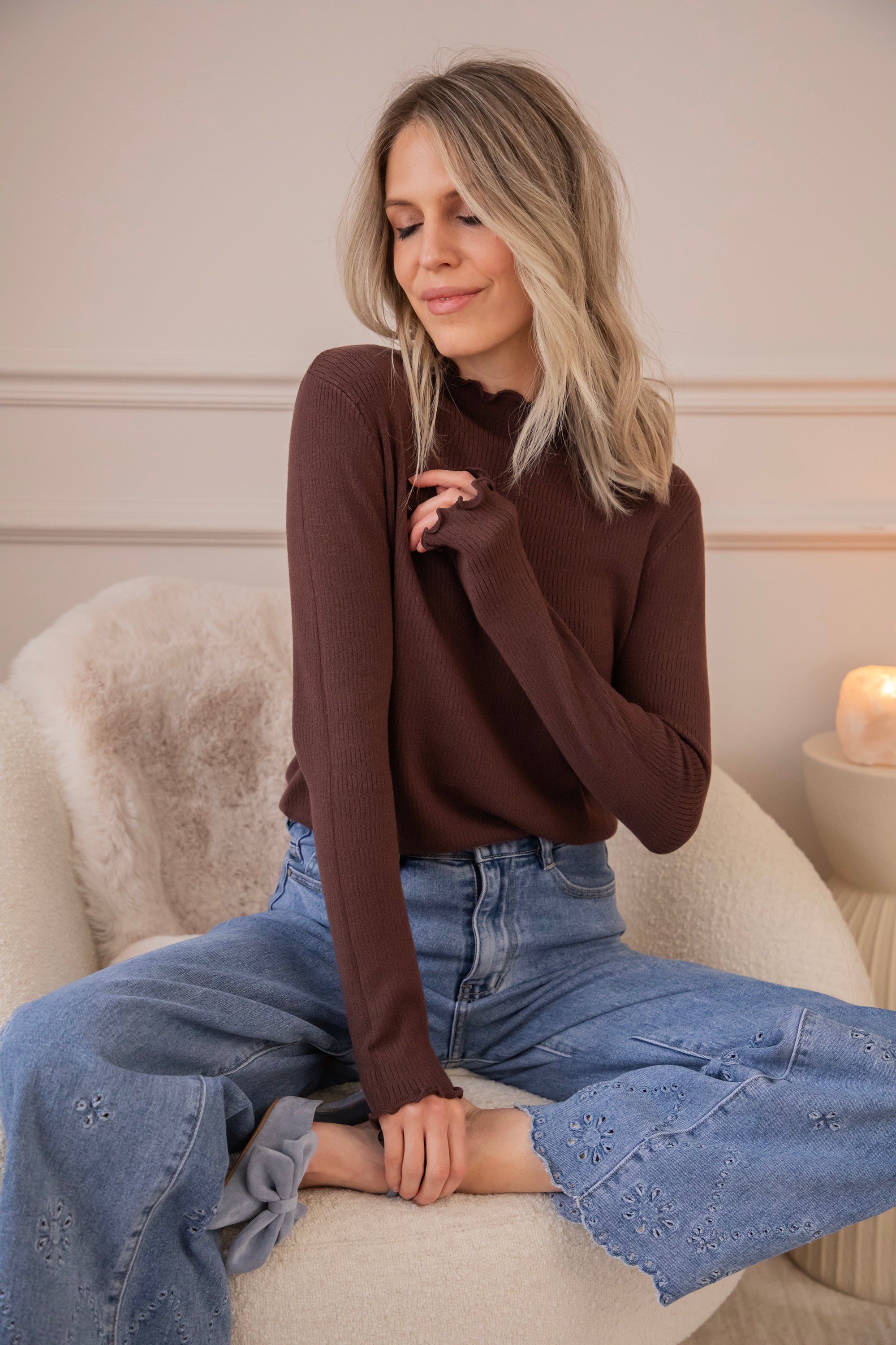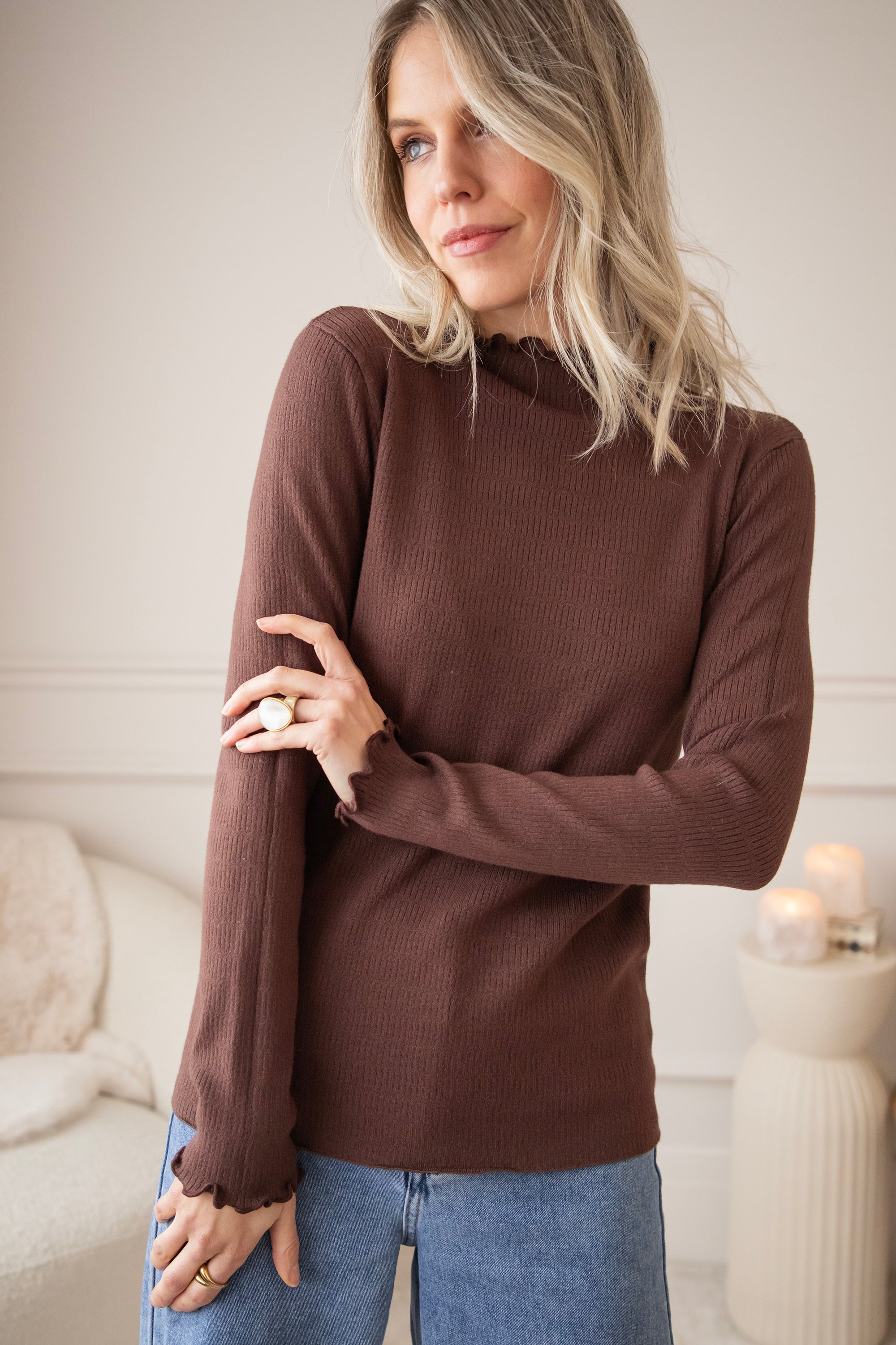 Cute Collar Ruches Brown - Longsleeve