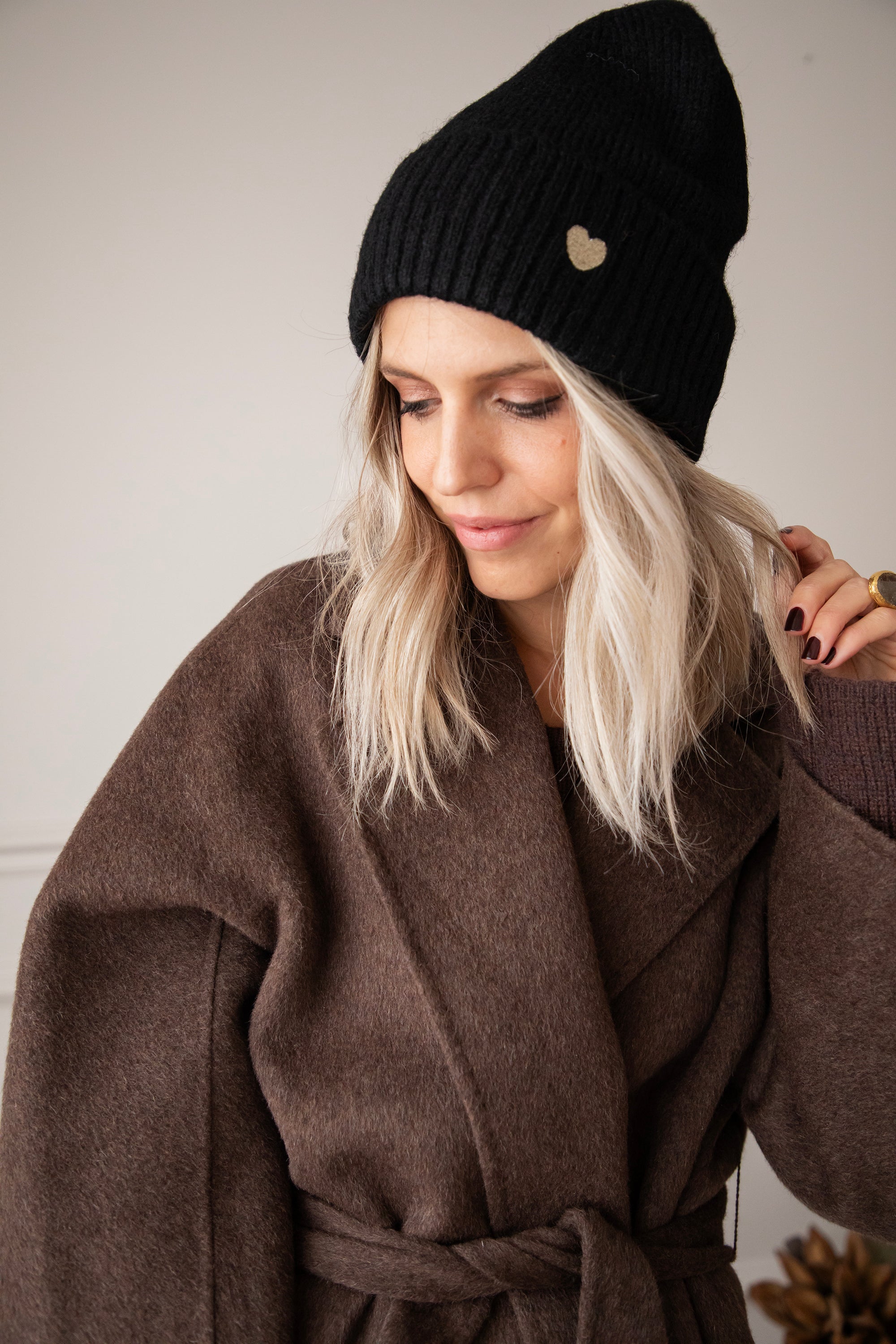 The Heartwarming comes in black: timeless, elegant, and truly versatile. Whether you're wearing a brown teddy coat, a classy cloak, or your favorite puffer jacket... this hat always goes with it 🙌